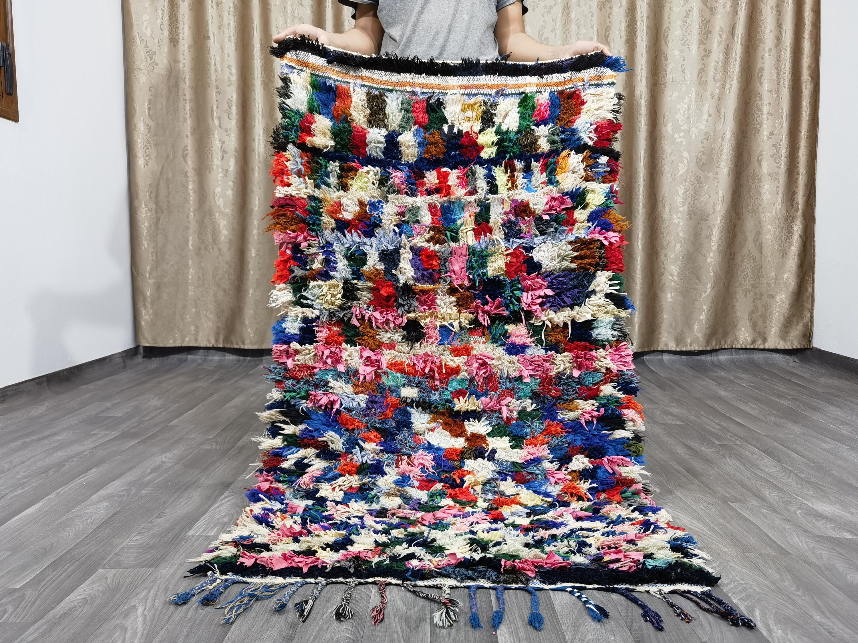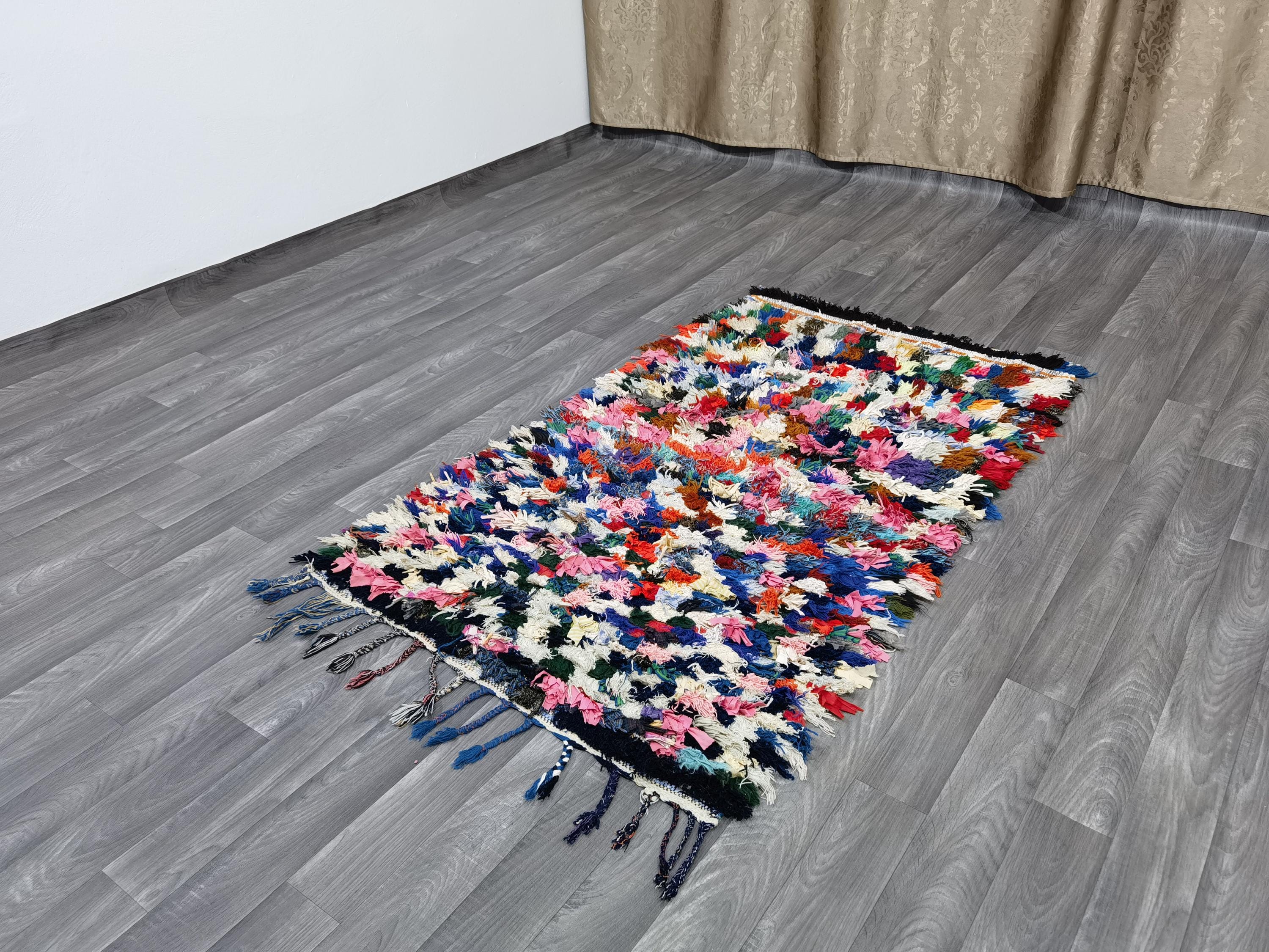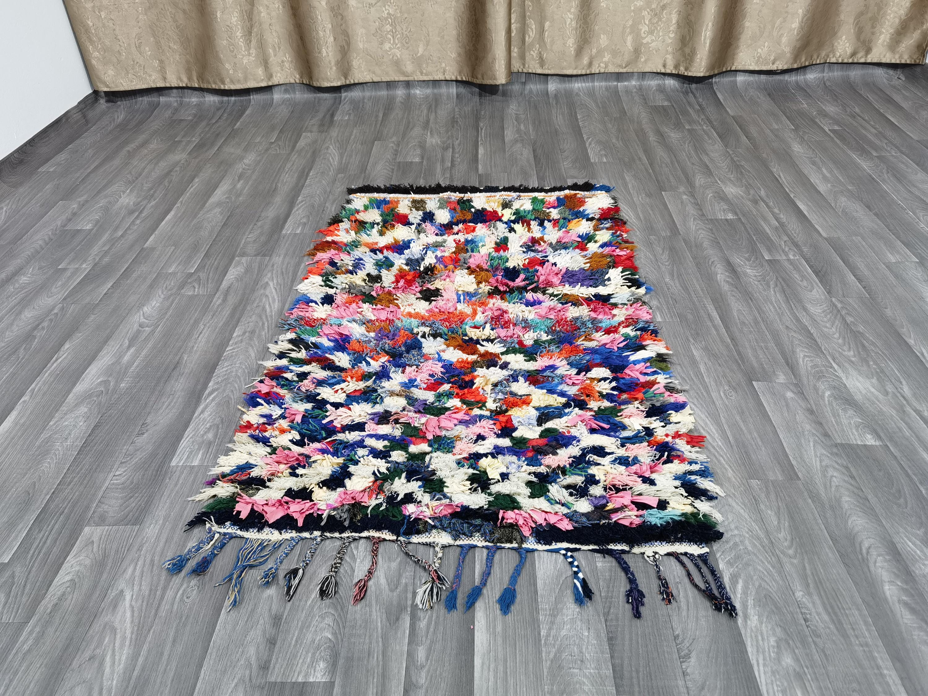 Small Vintage Handmade Cotton Boujaad Area Rug, Soft Vintage Rug, Authentic Handwoven Rug, Moroccan area rug, 2.8x5 Moroccan Rug