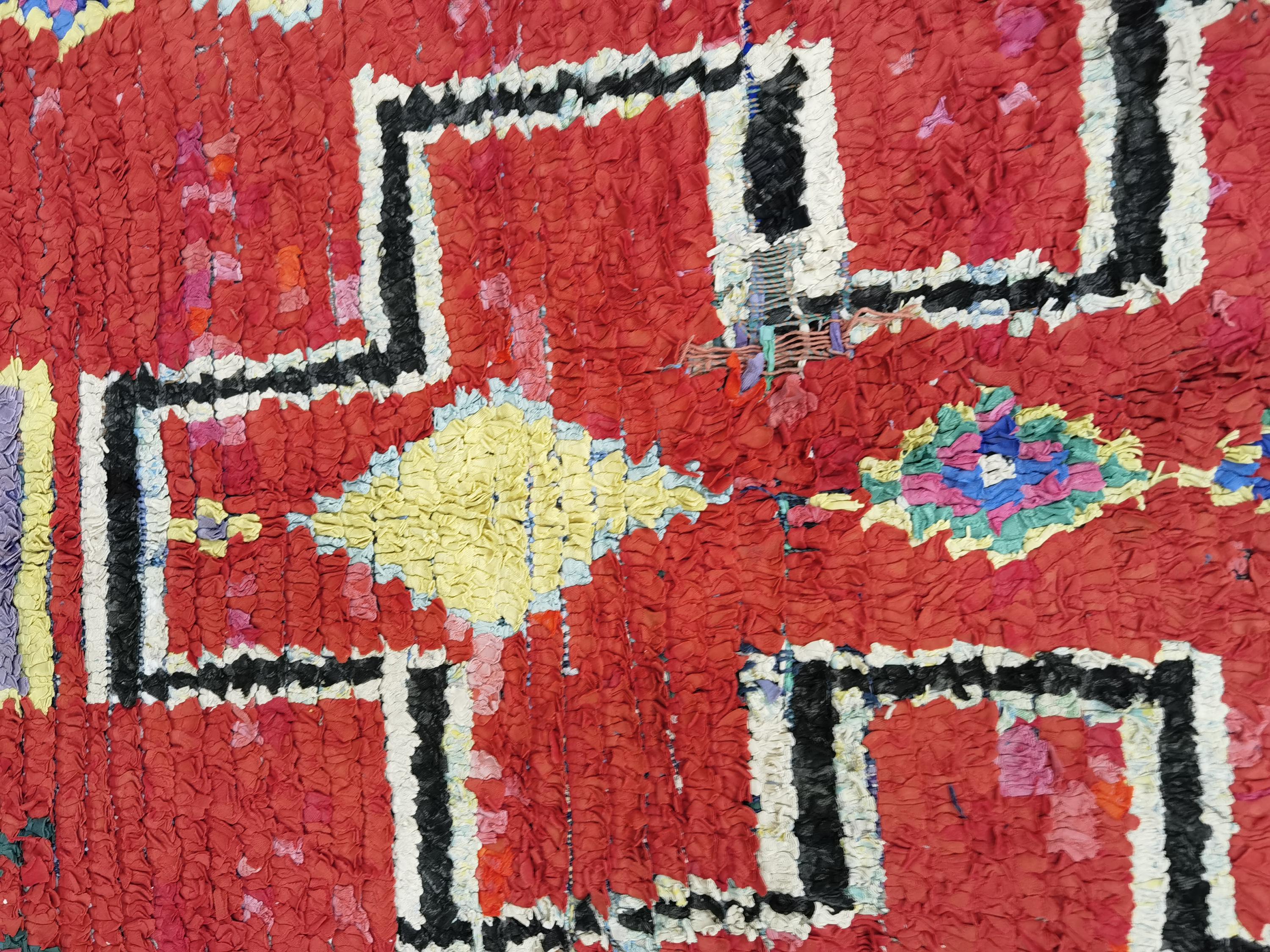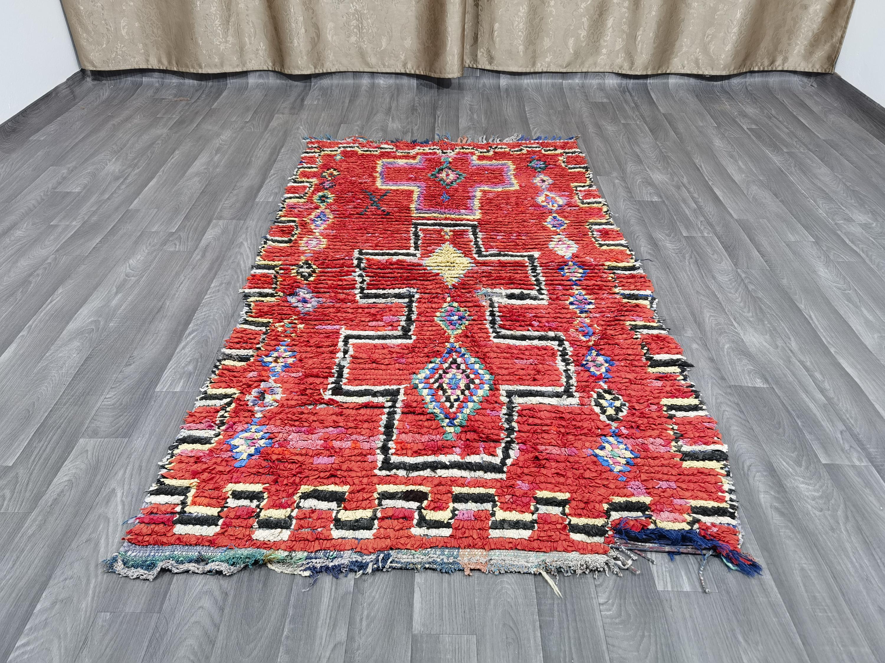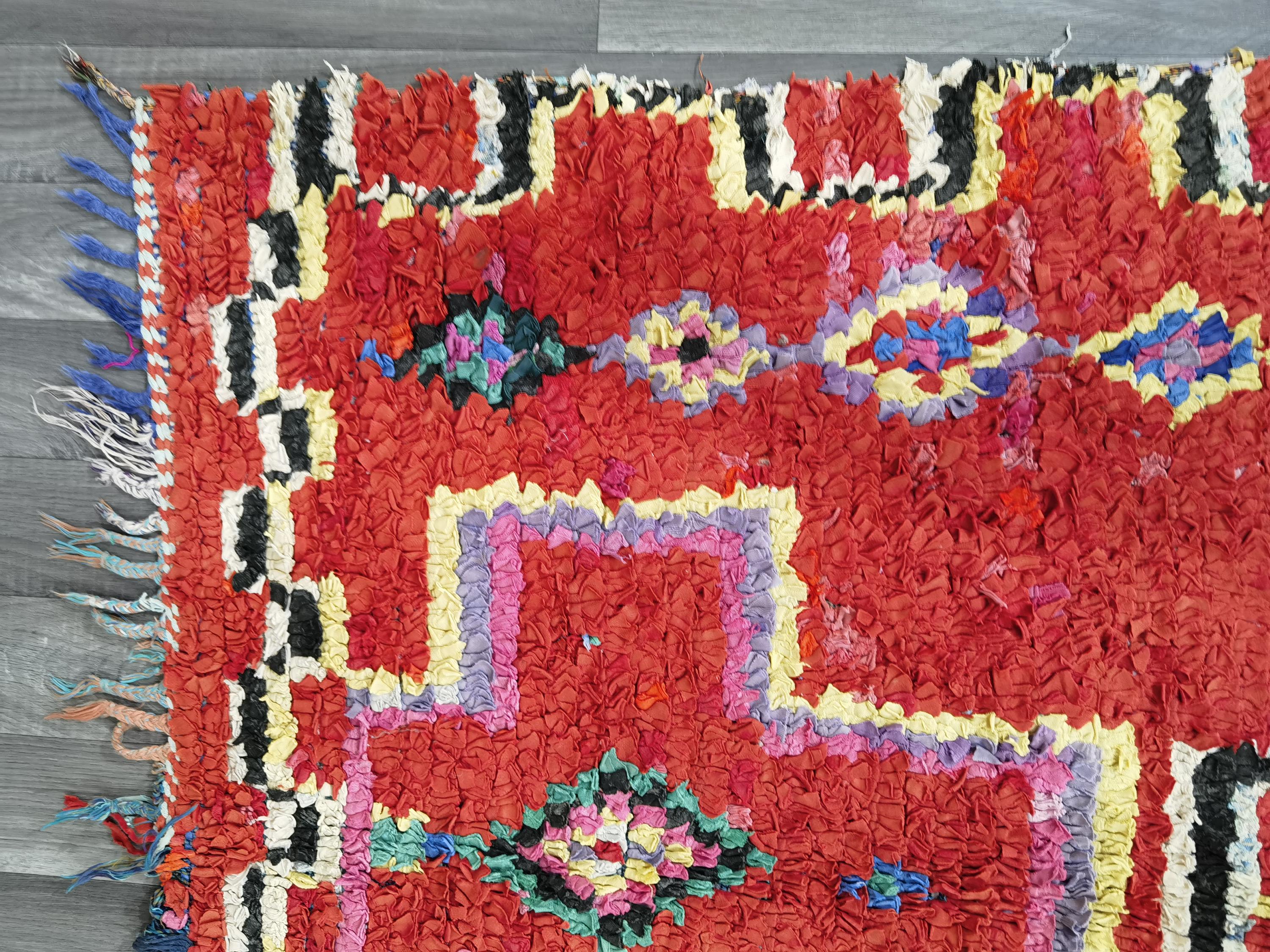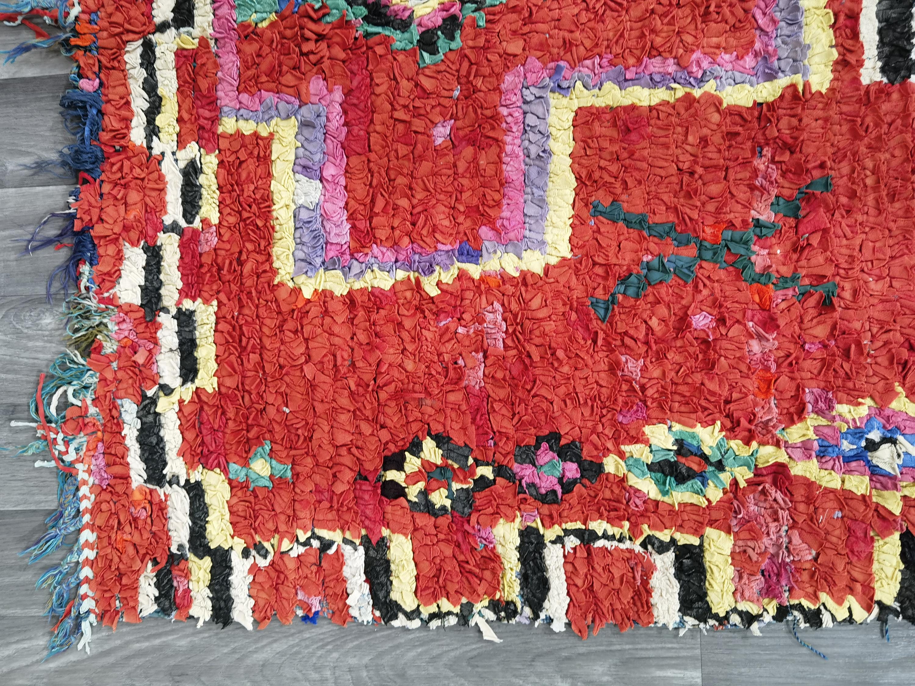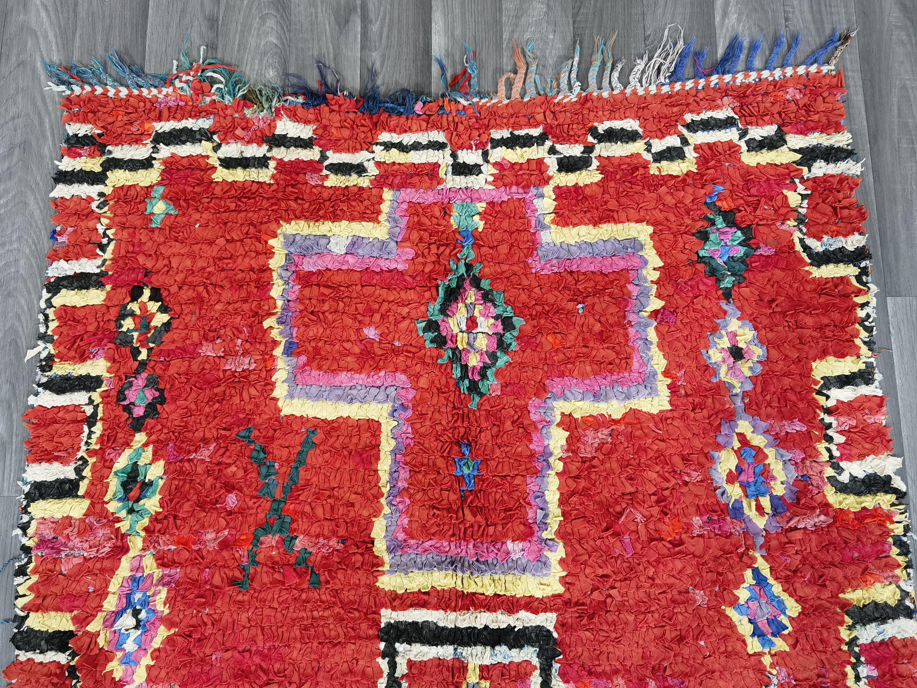 Gorgeous Handmade Moroccan Bohemian Shag Rug - Moroccan Colorful Boucherouite Rug - Old Boucherouite Rug 3.6x6.6 FT ( 111 X 201 Cm) .