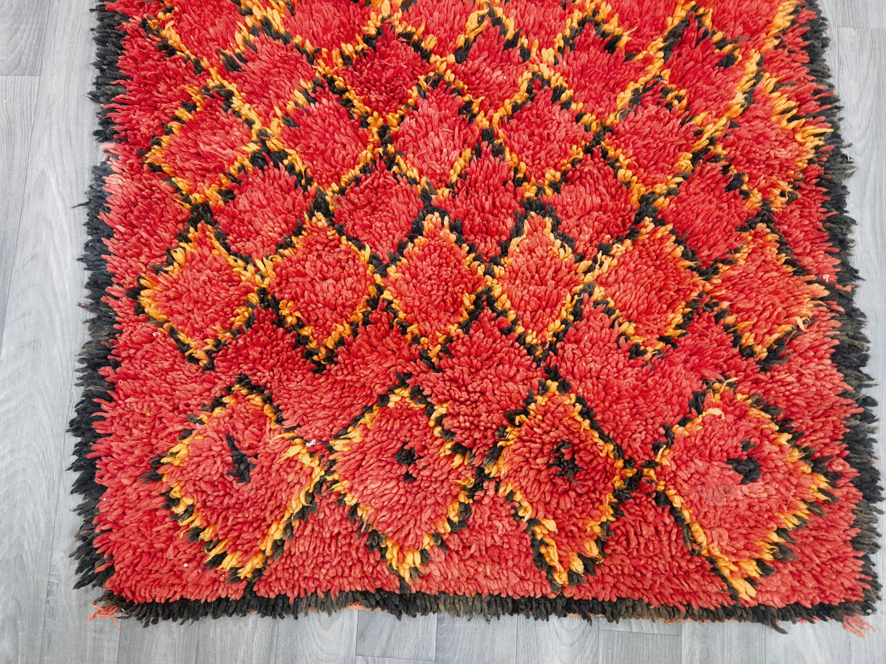 Boujaad is a vibrant and colorful wool runner that will add life to any room in your home. Made from 100% wool, this rug is perfect for use in the living room, bedroom, or anywhere you want to add some beautiful Moroccan flair. The soft and fluffy texture makes it comfortable to walk on, and the vivid colors will brighten up any space. Whether you're looking for a traditional shag rug or something a little more bohemian, Boujaad is sure to be a hit with your guests.