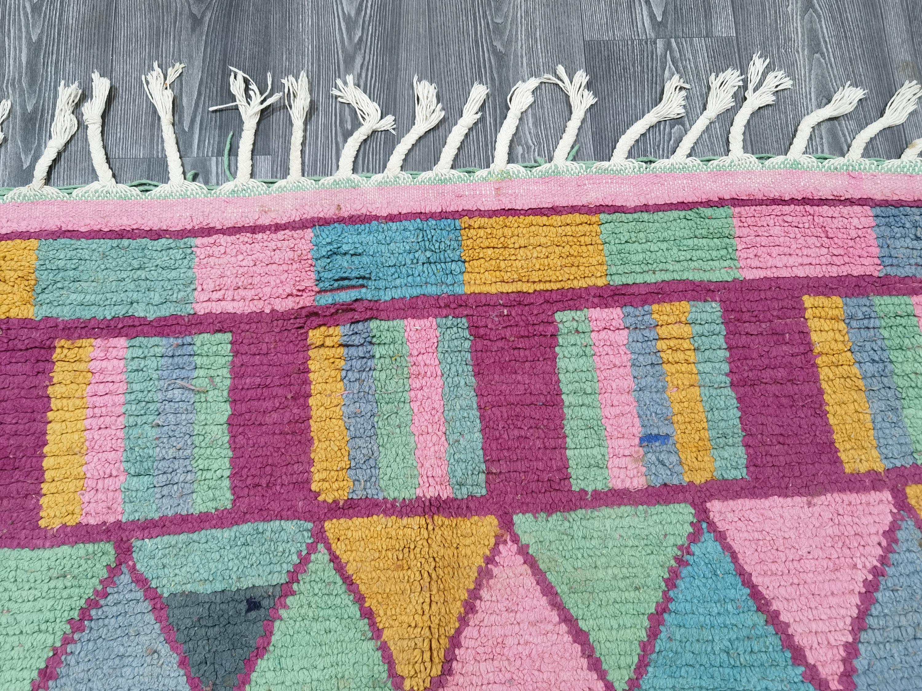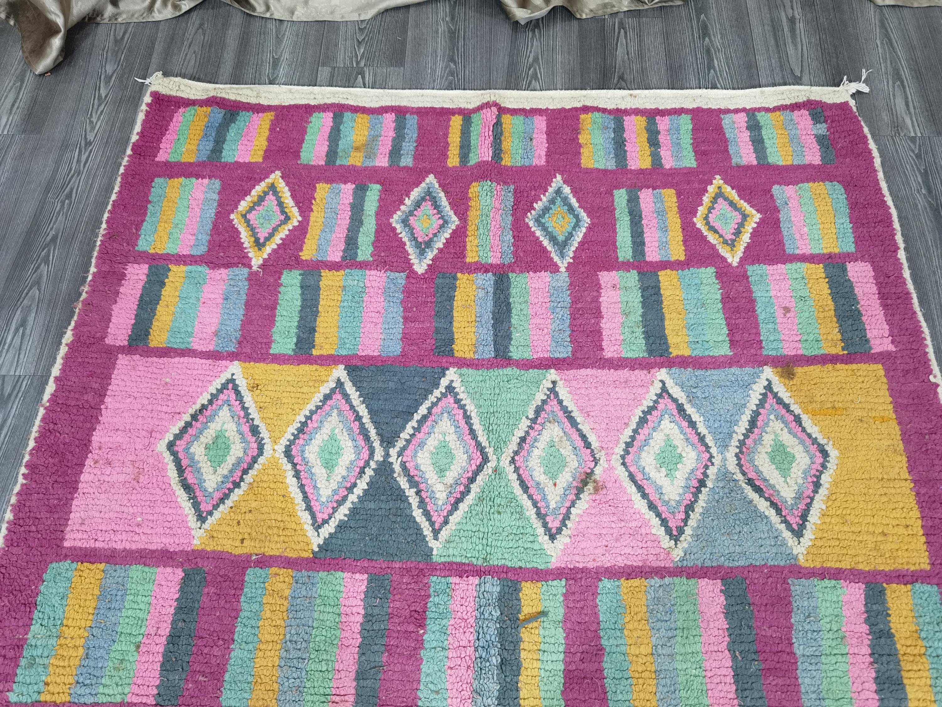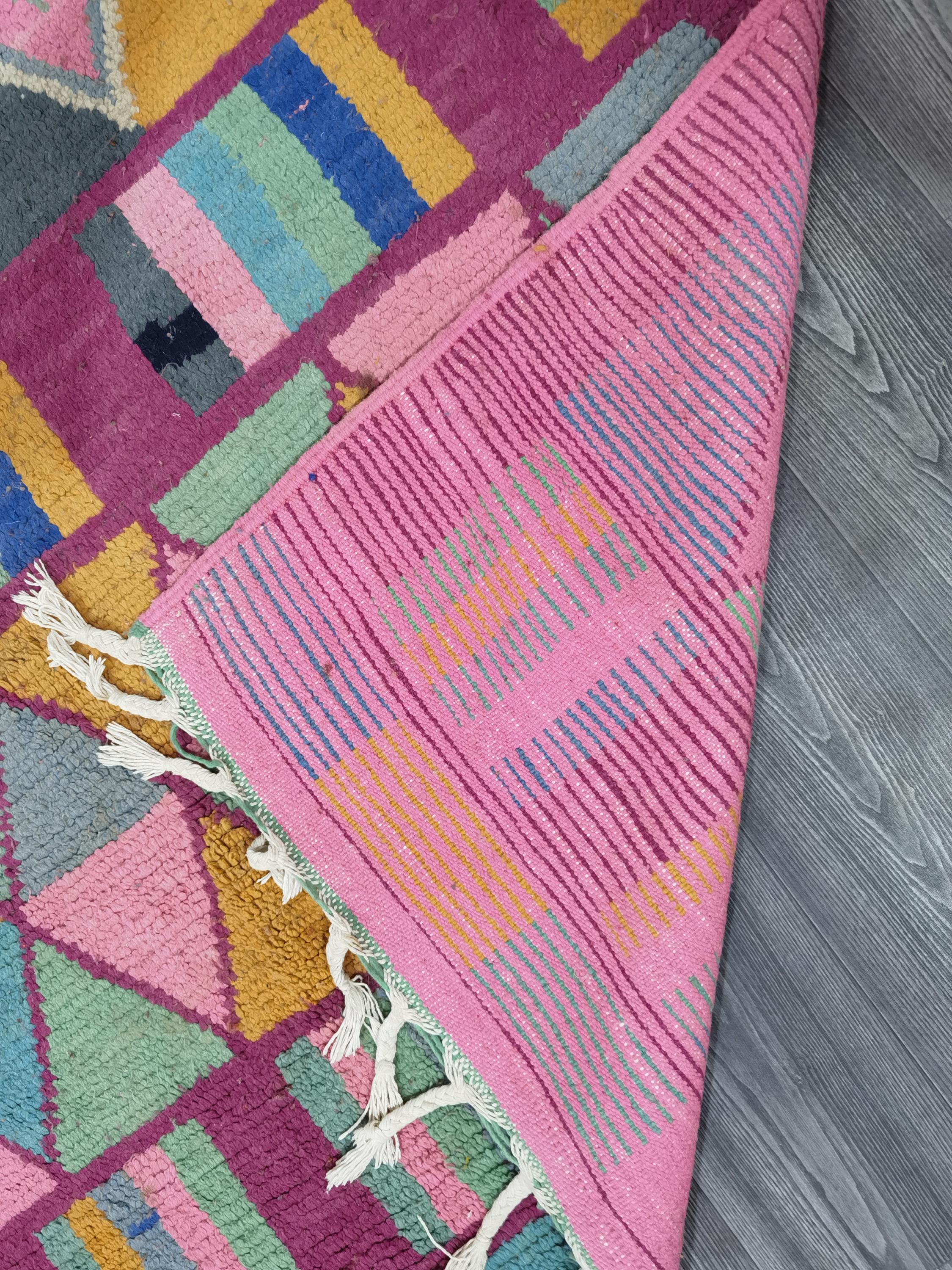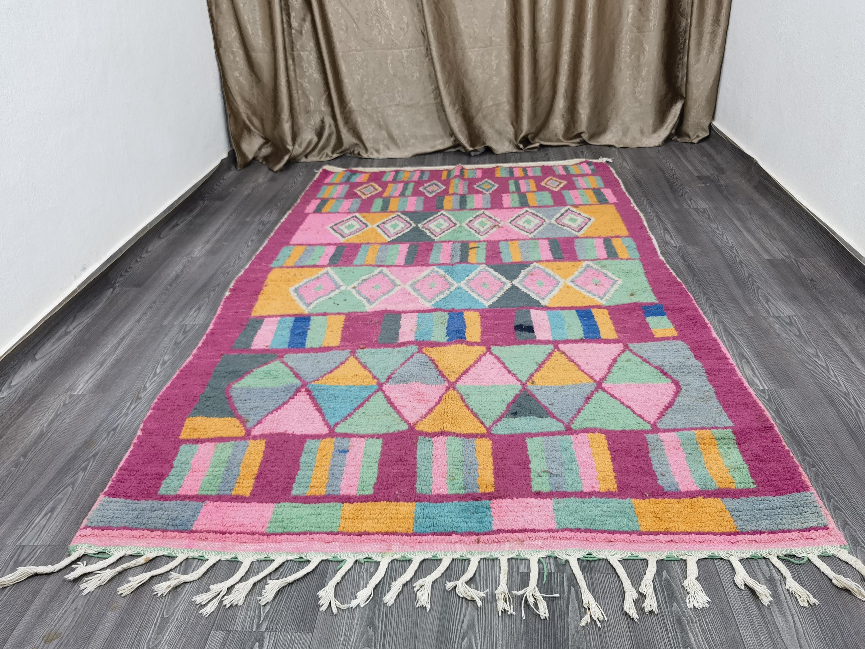 This unique Handwoven Moroccan Boujaad wool rug is one of a kind. A unique rare artistic handmade art, a beautiful combination of colors. which makes it the best choice whether for your house or your showroom. The famous Boujaad rug is now on the cover of the world’s leading home decoration magazines. This rug with character goes perfectly with all interior styles, Bohemian, Modern, Minimalist, Scandinavian, Traditional, which makes it the best choice for your needs.