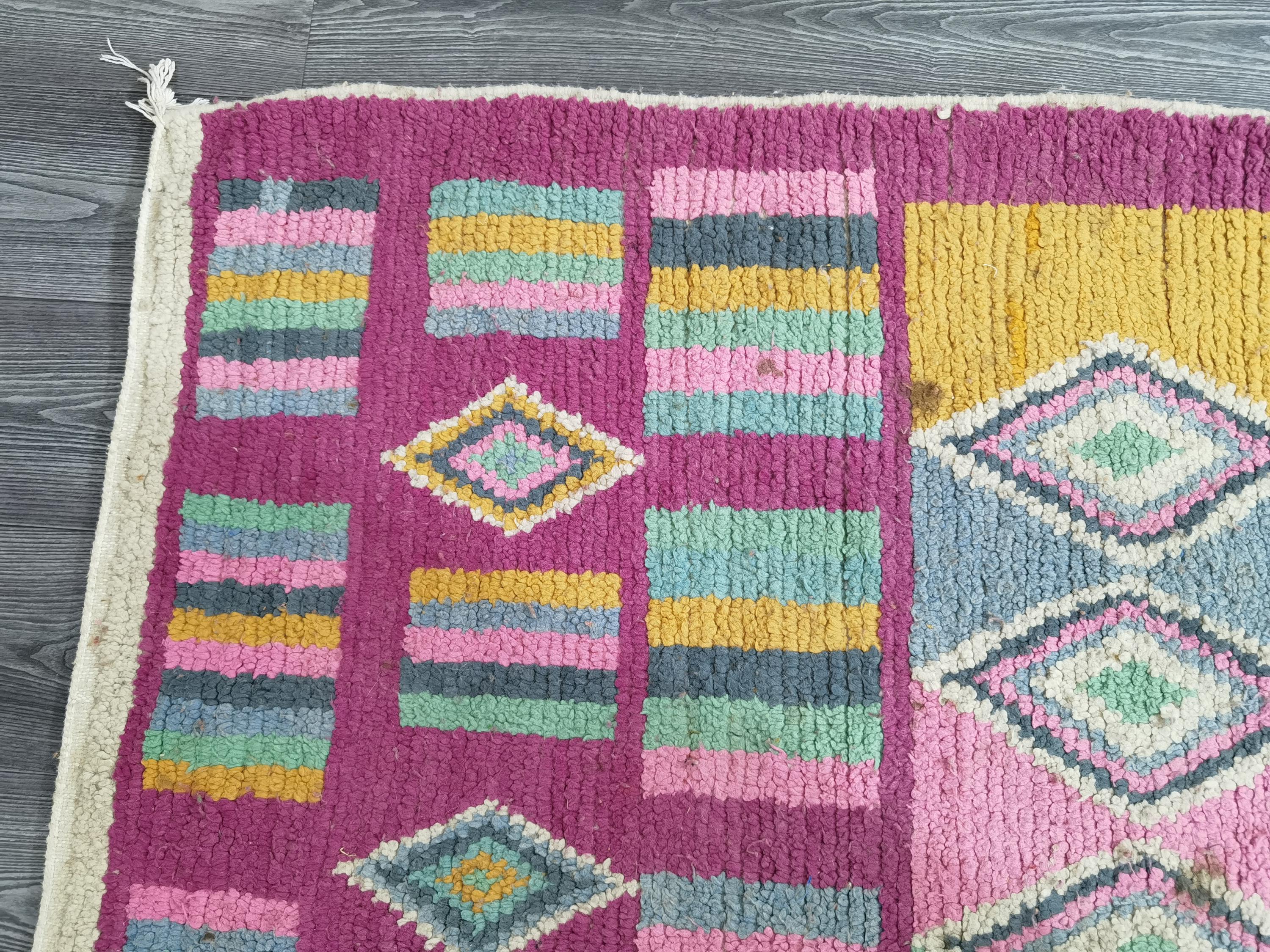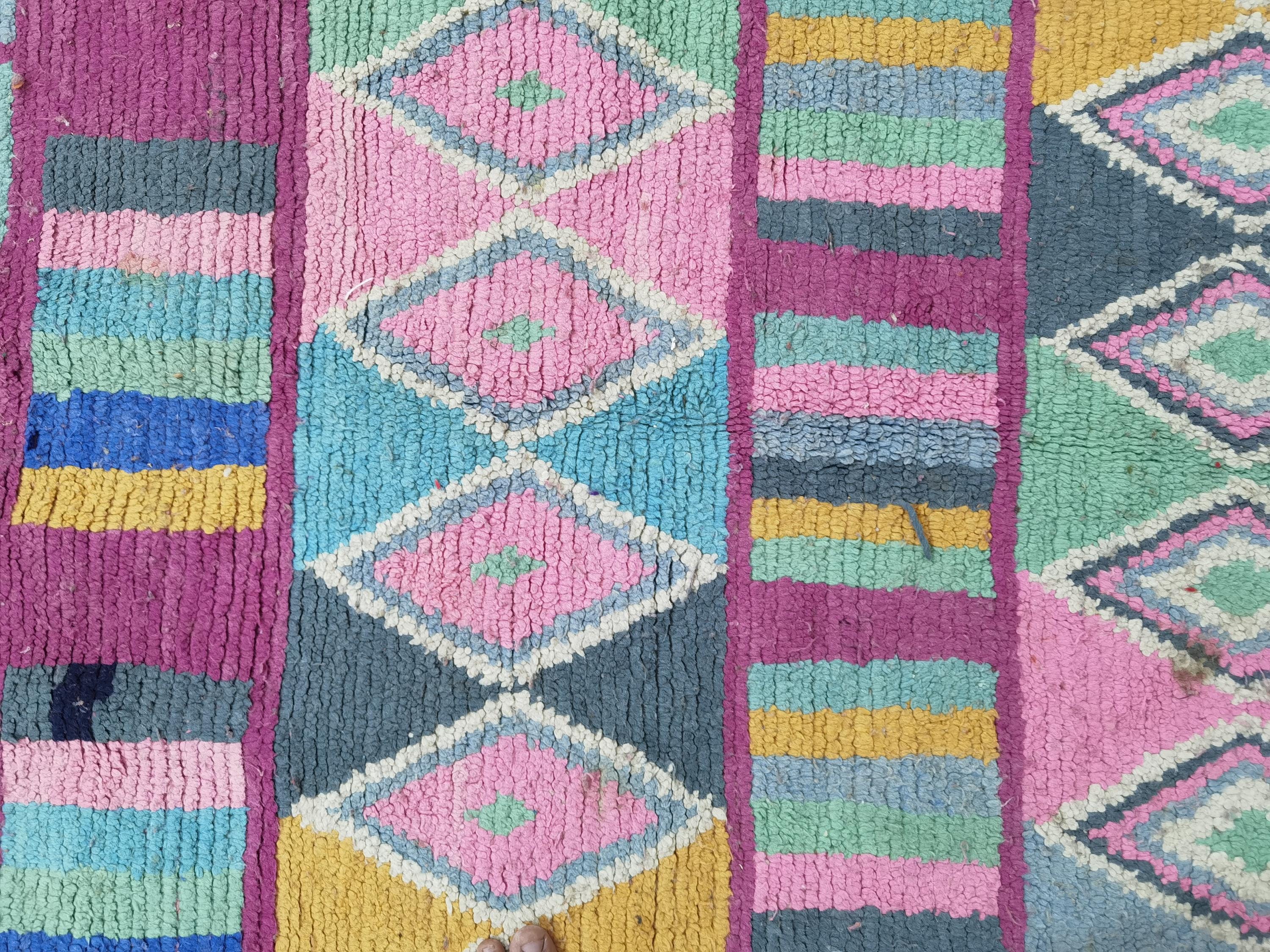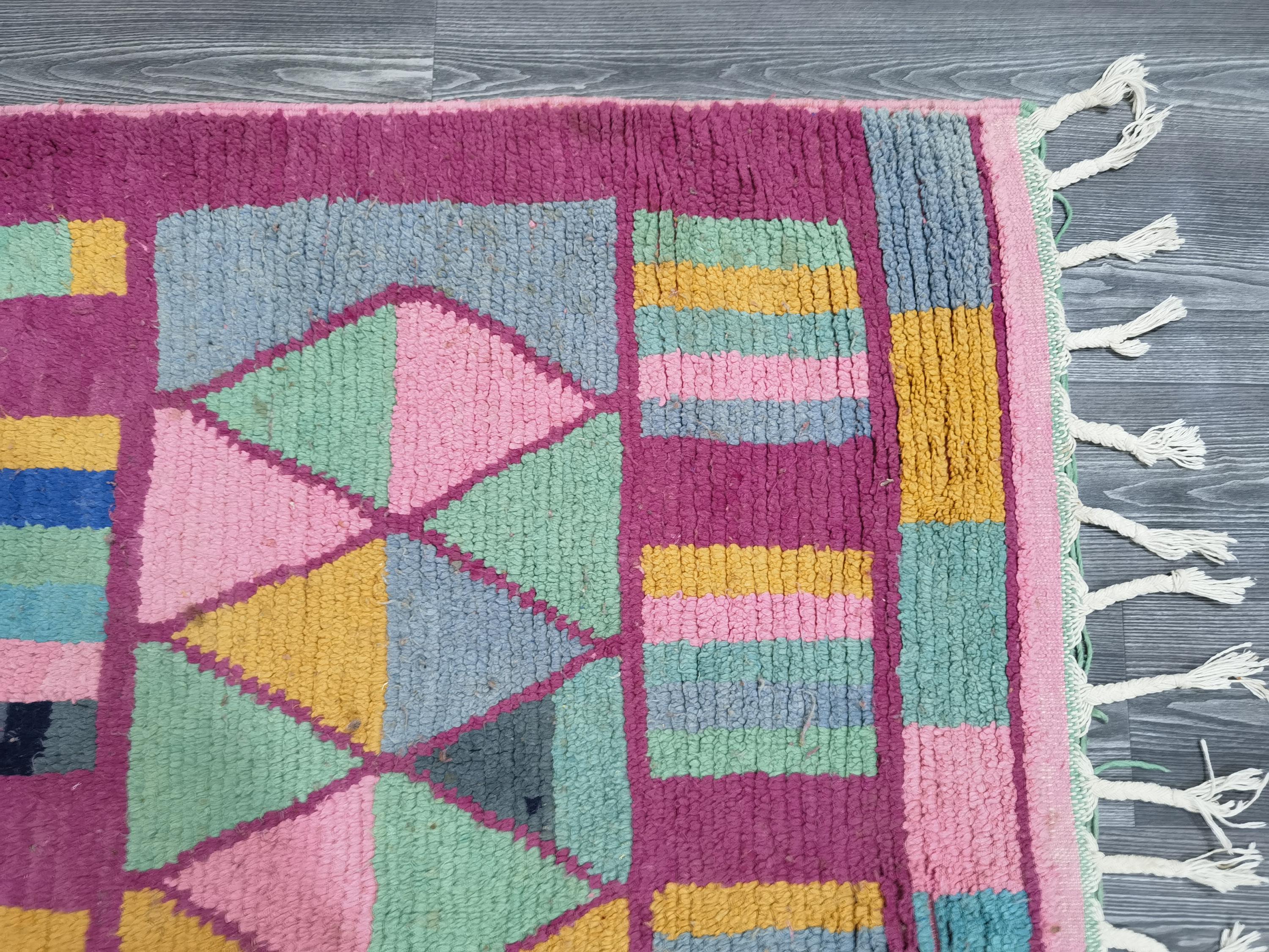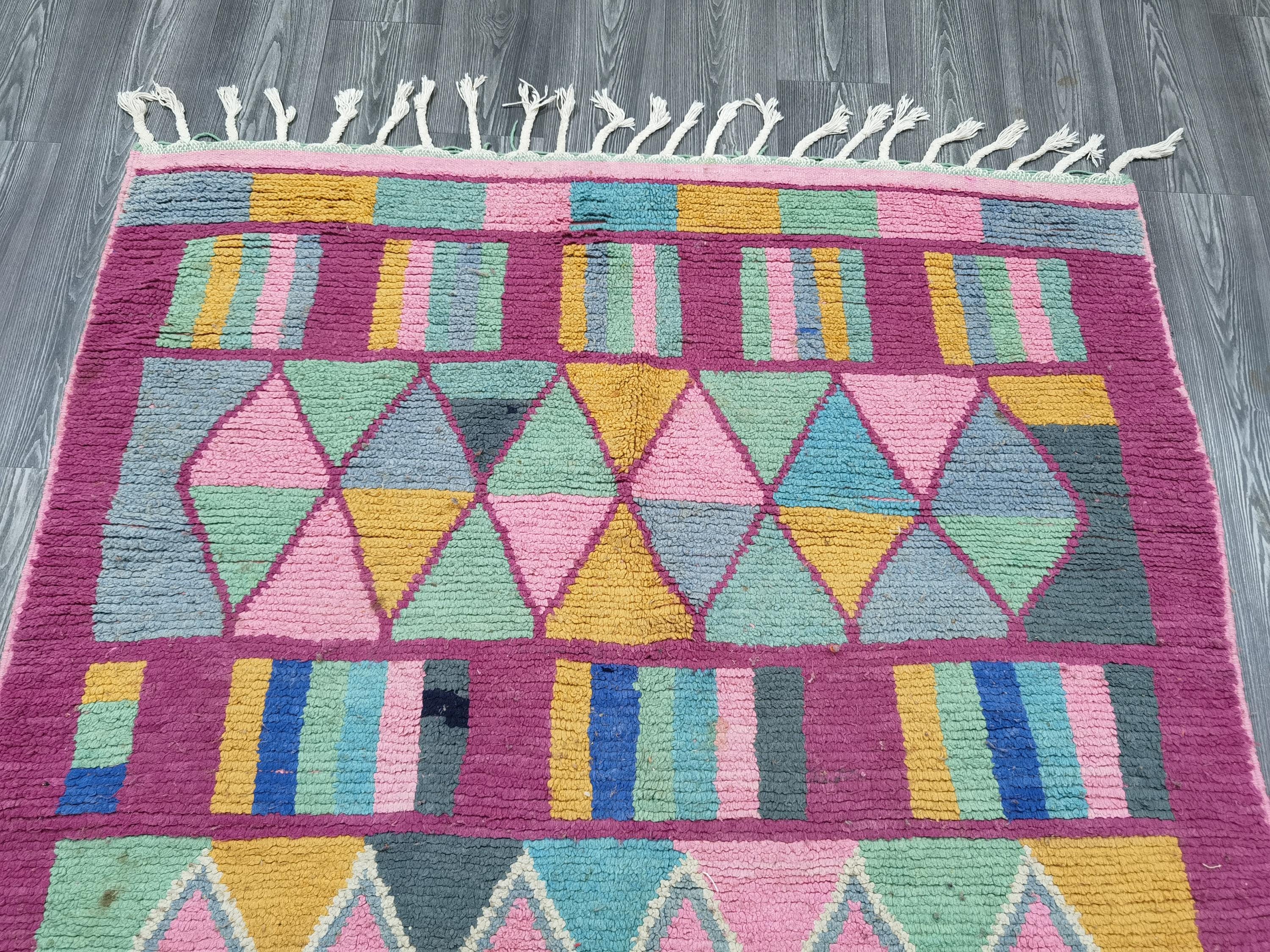 This unique Handwoven Moroccan Boujaad wool rug is one of a kind. A unique rare artistic handmade art, a beautiful combination of colors. which makes it the best choice whether for your house or your showroom. The famous Boujaad rug is now on the cover of the world’s leading home decoration magazines. This rug with character goes perfectly with all interior styles, Bohemian, Modern, Minimalist, Scandinavian, Traditional, which makes it the best choice for your needs.