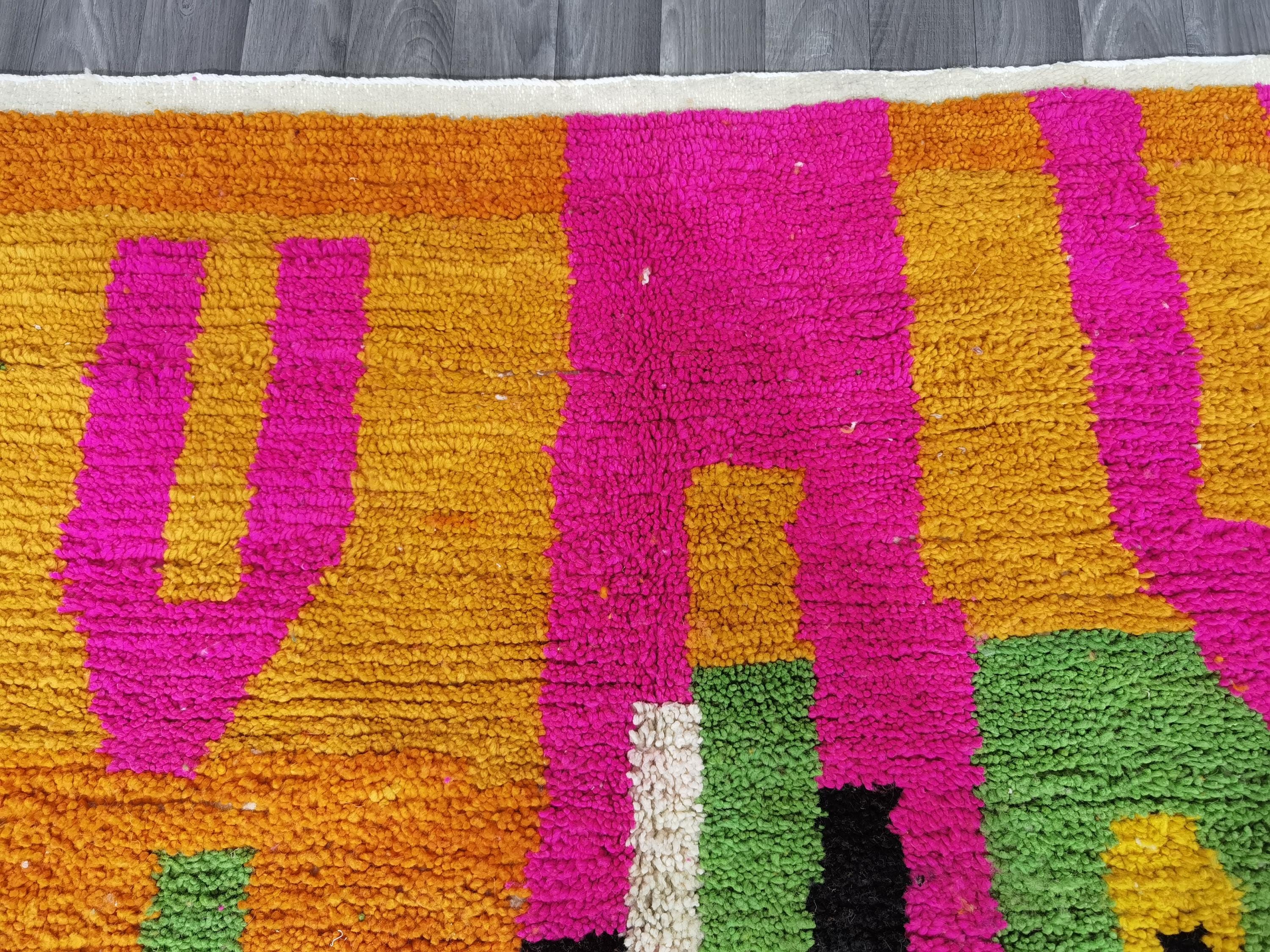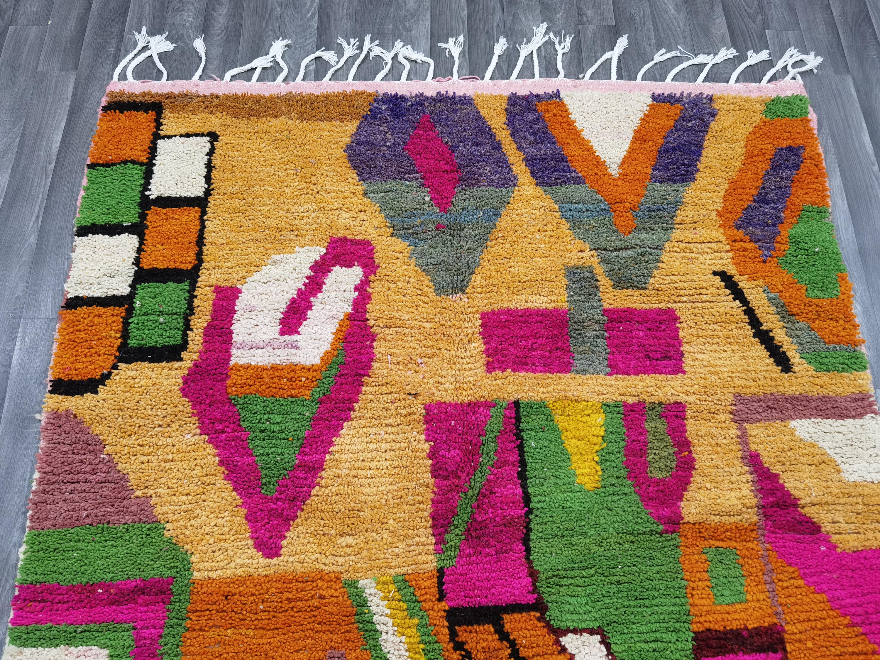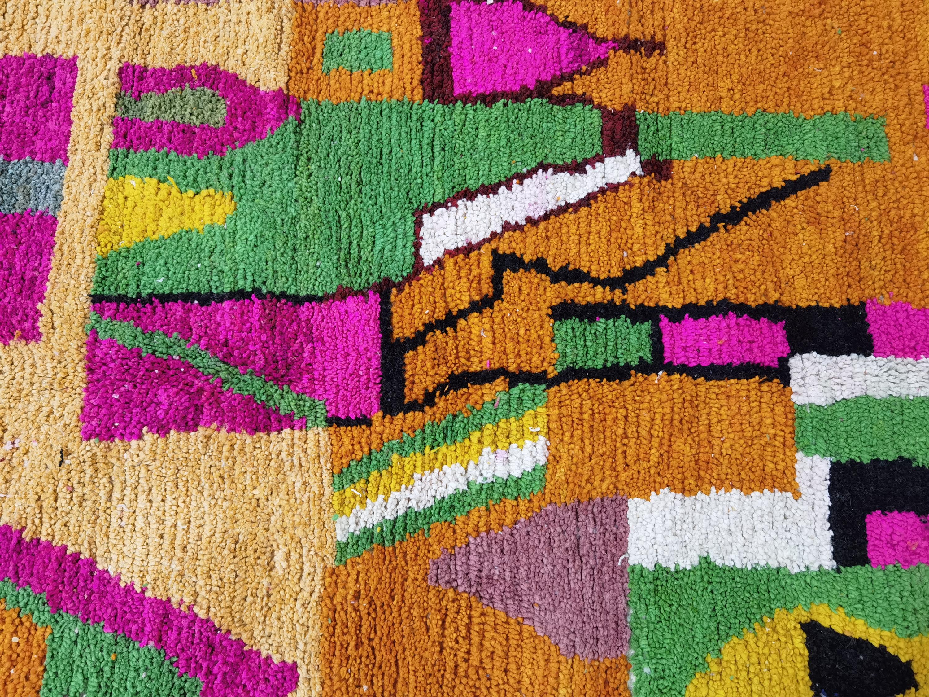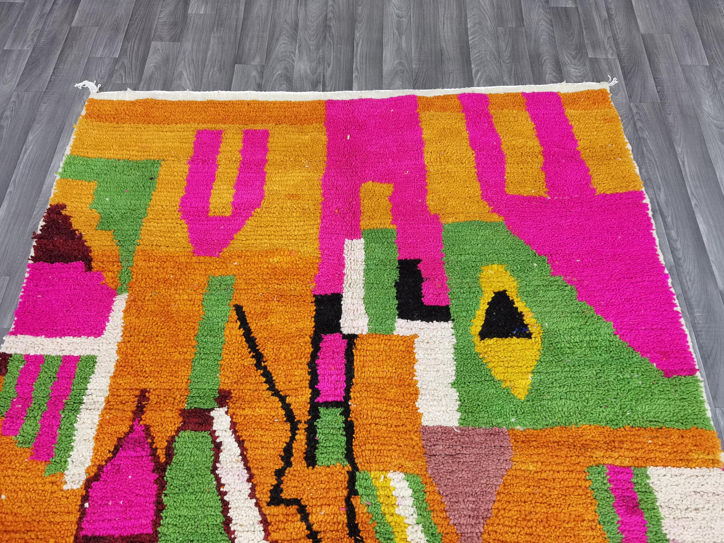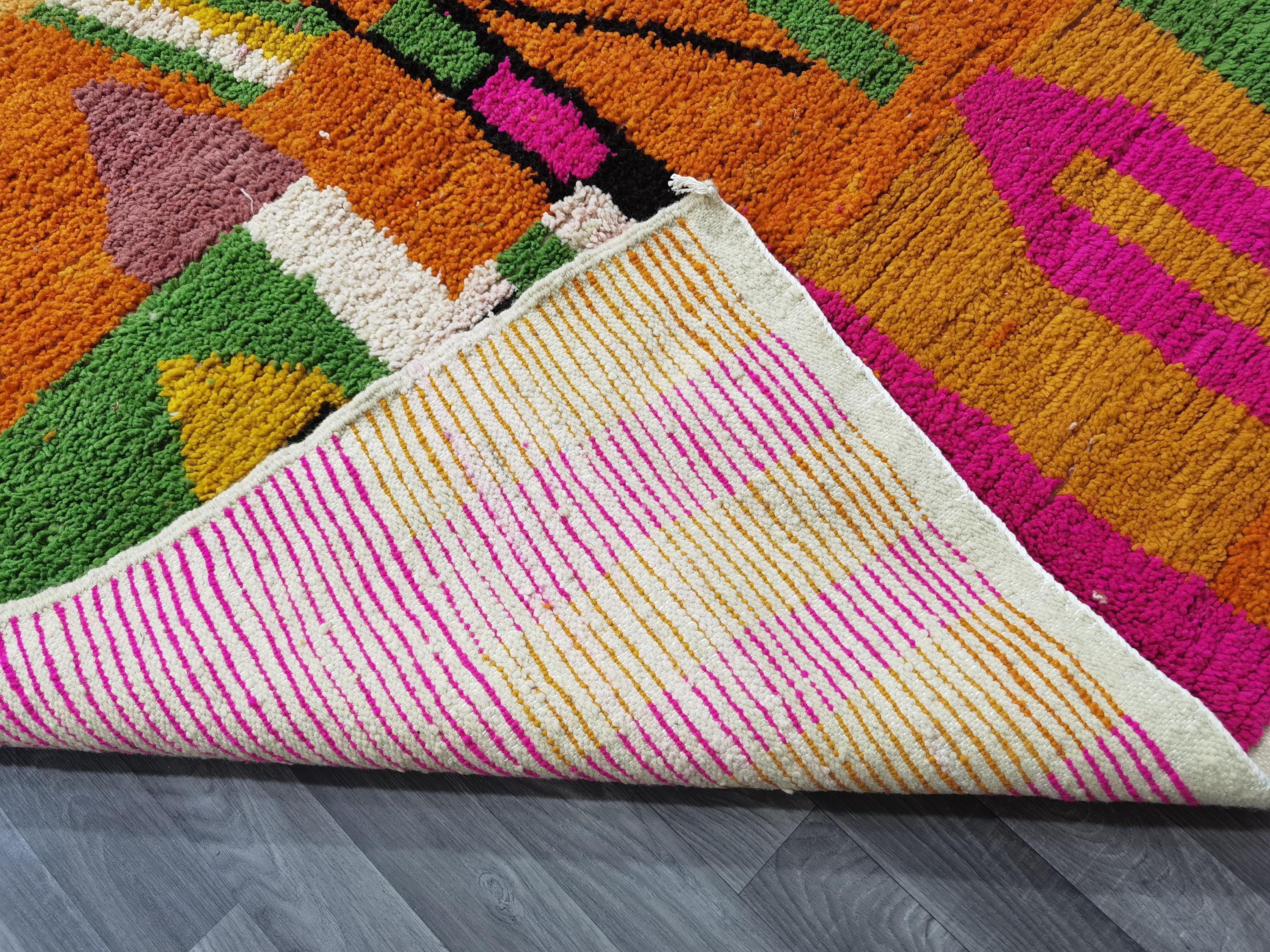 Artistic Beni Ourain Rug - Berber Colorful Runner Rug - Moroccan Orange Rug - Hand Knotted Wool Rug - Soft Area Rug - Rugs For Living Room