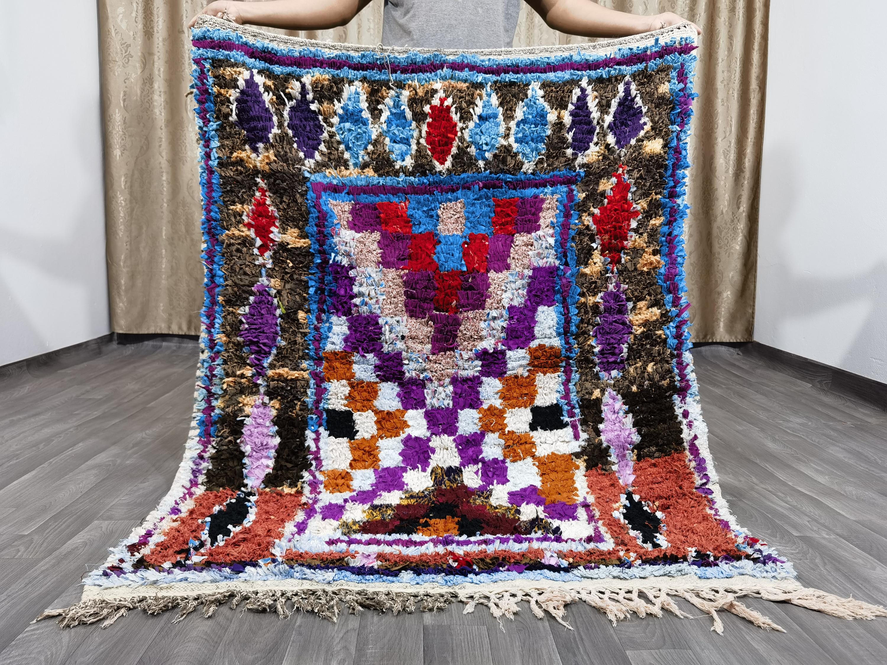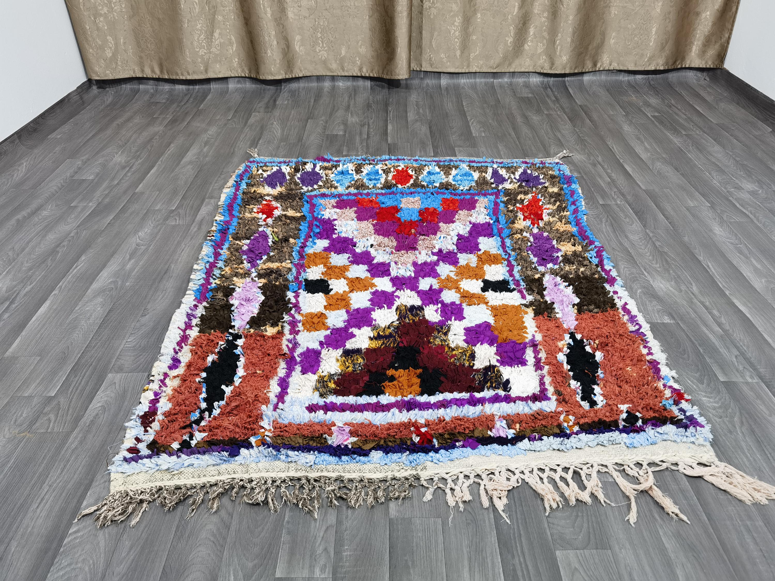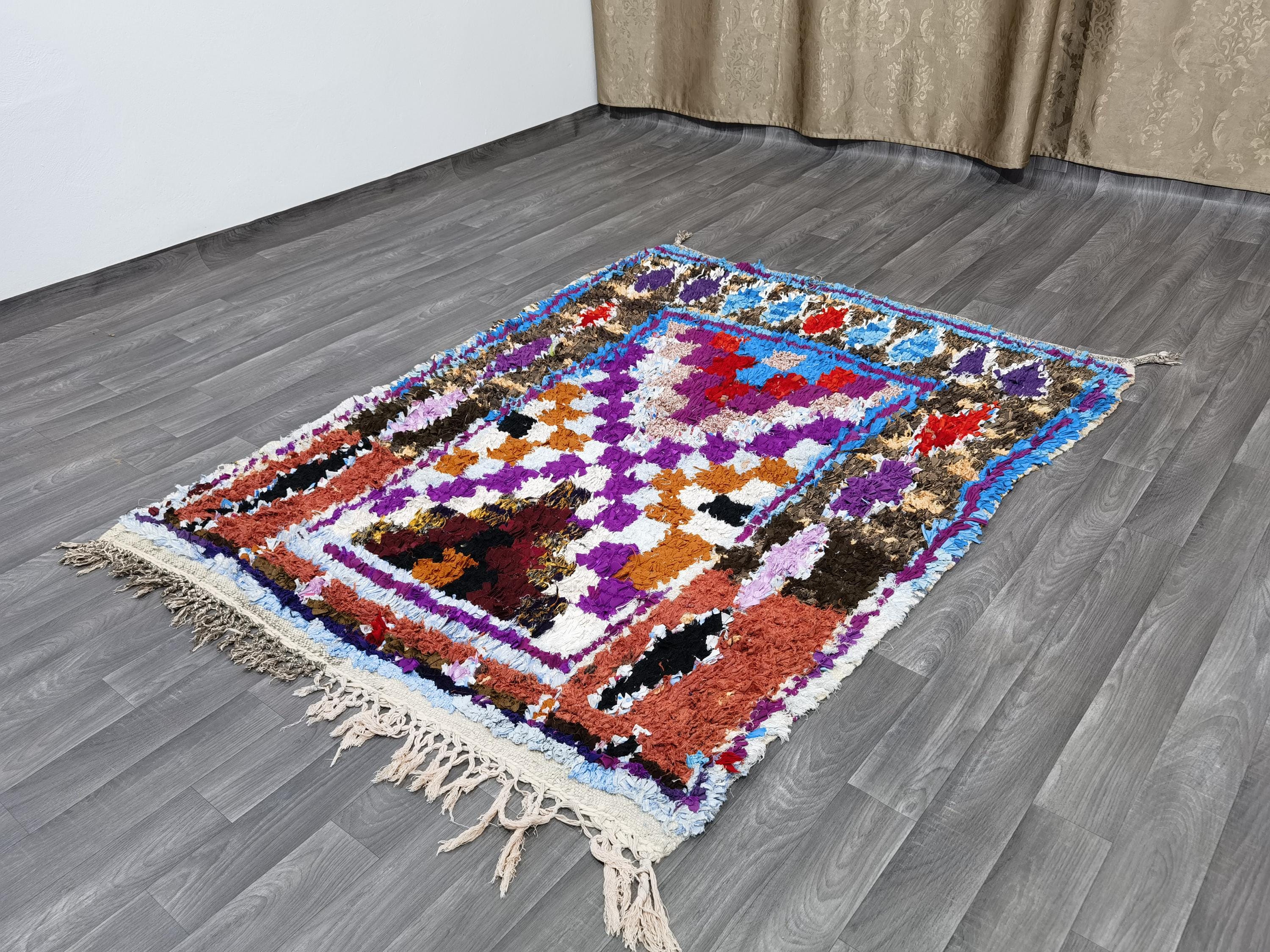 Boujaad Rugs For Living Room - Vintage Boujaad rug , Authentic Moroccan rug 4.3x5.6 ft ( 130 x 172 cm) .