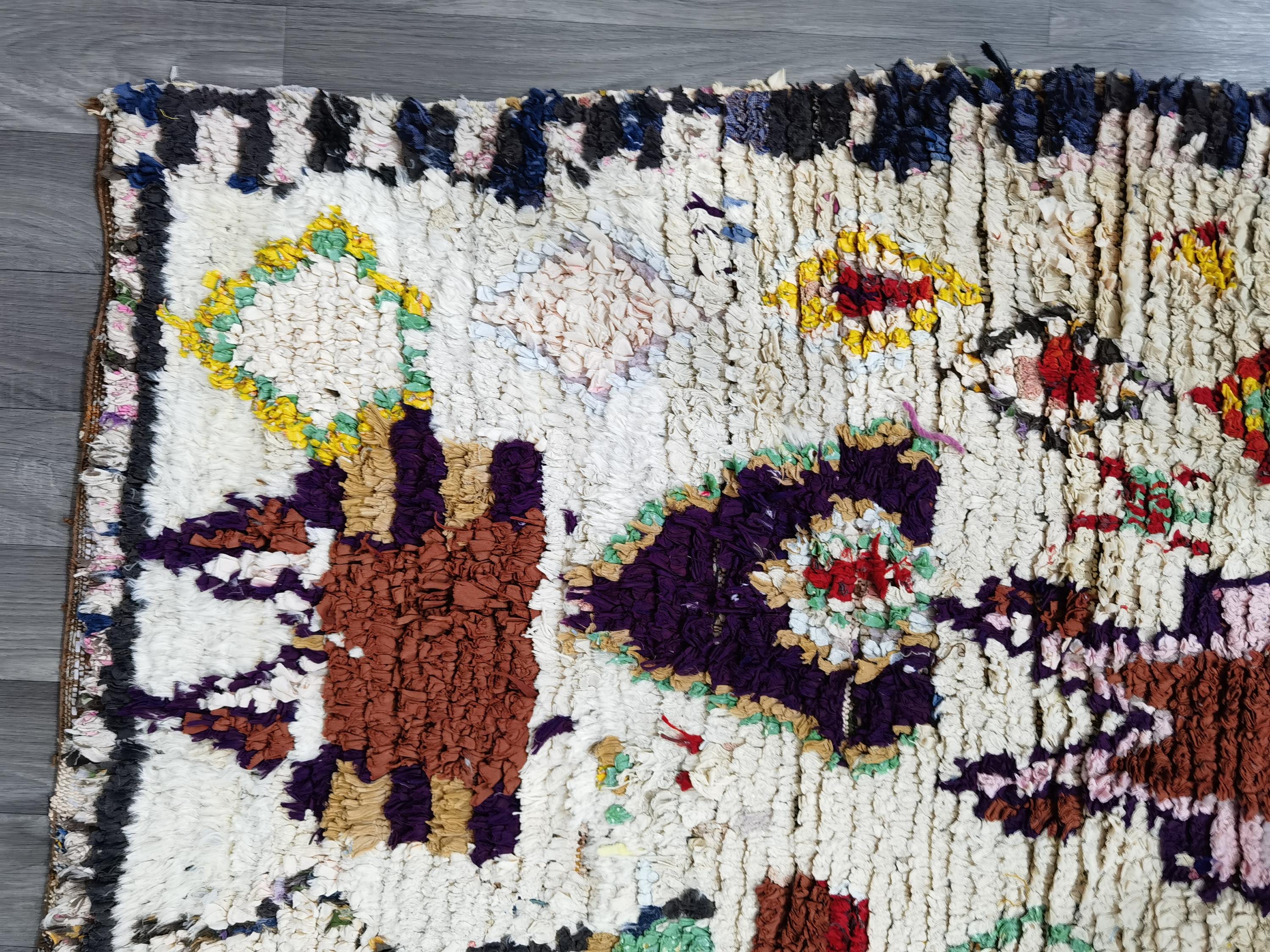 White Boucherouite Vintage Moroccan Runner Rug, Moroccan Vintage rug, Colorful Runner rug, Traditional runner rug, Berber runner rug
