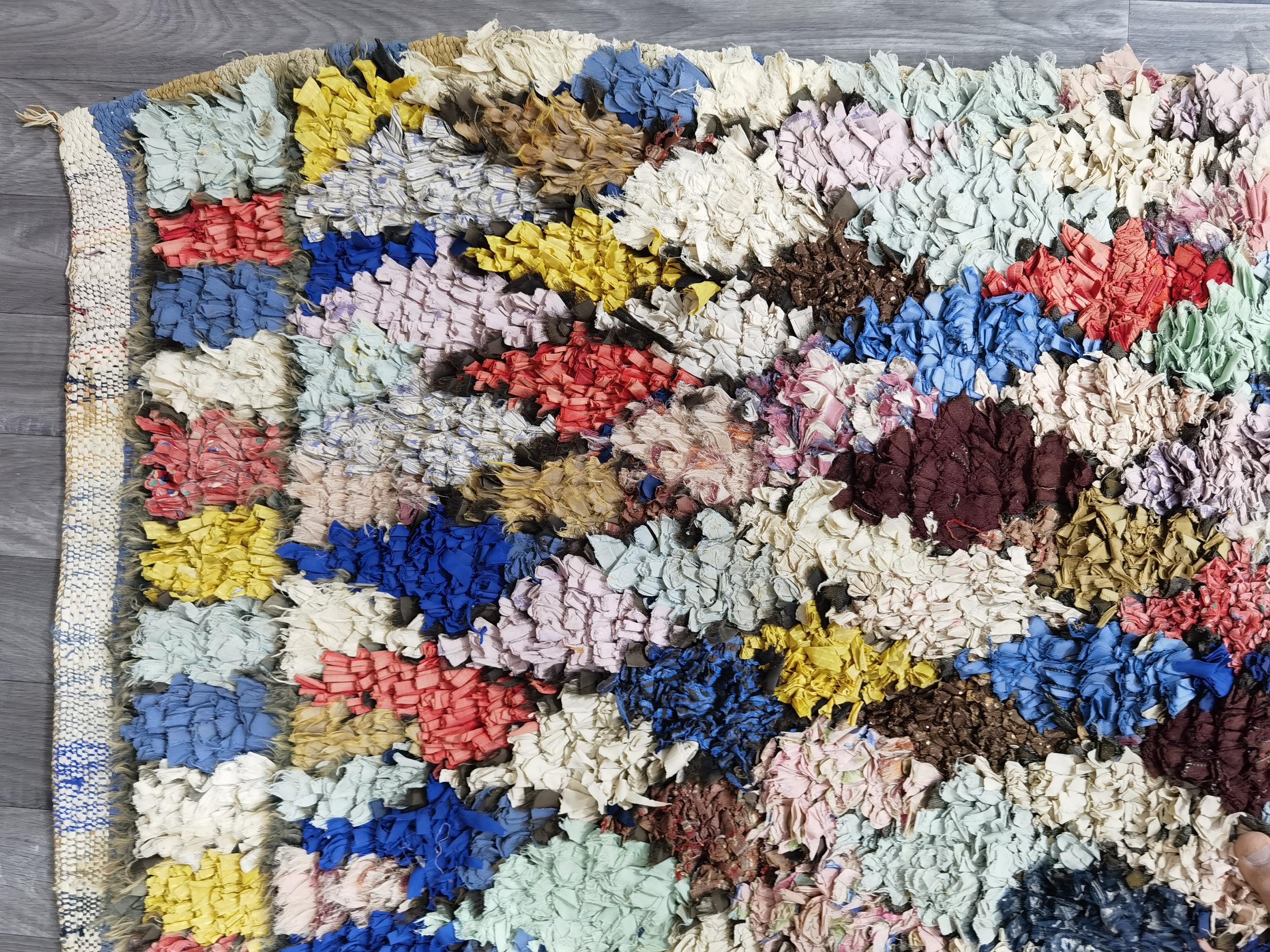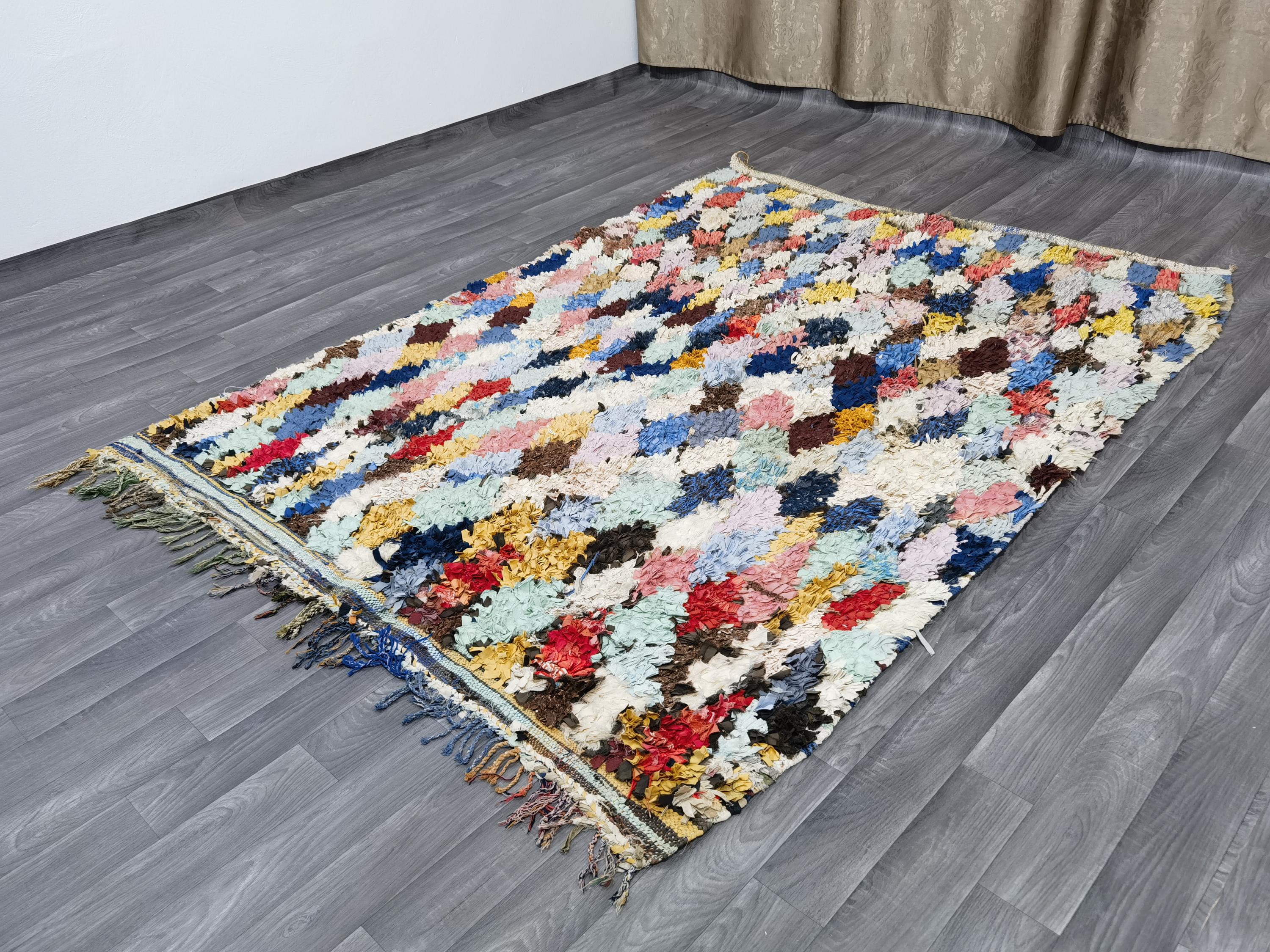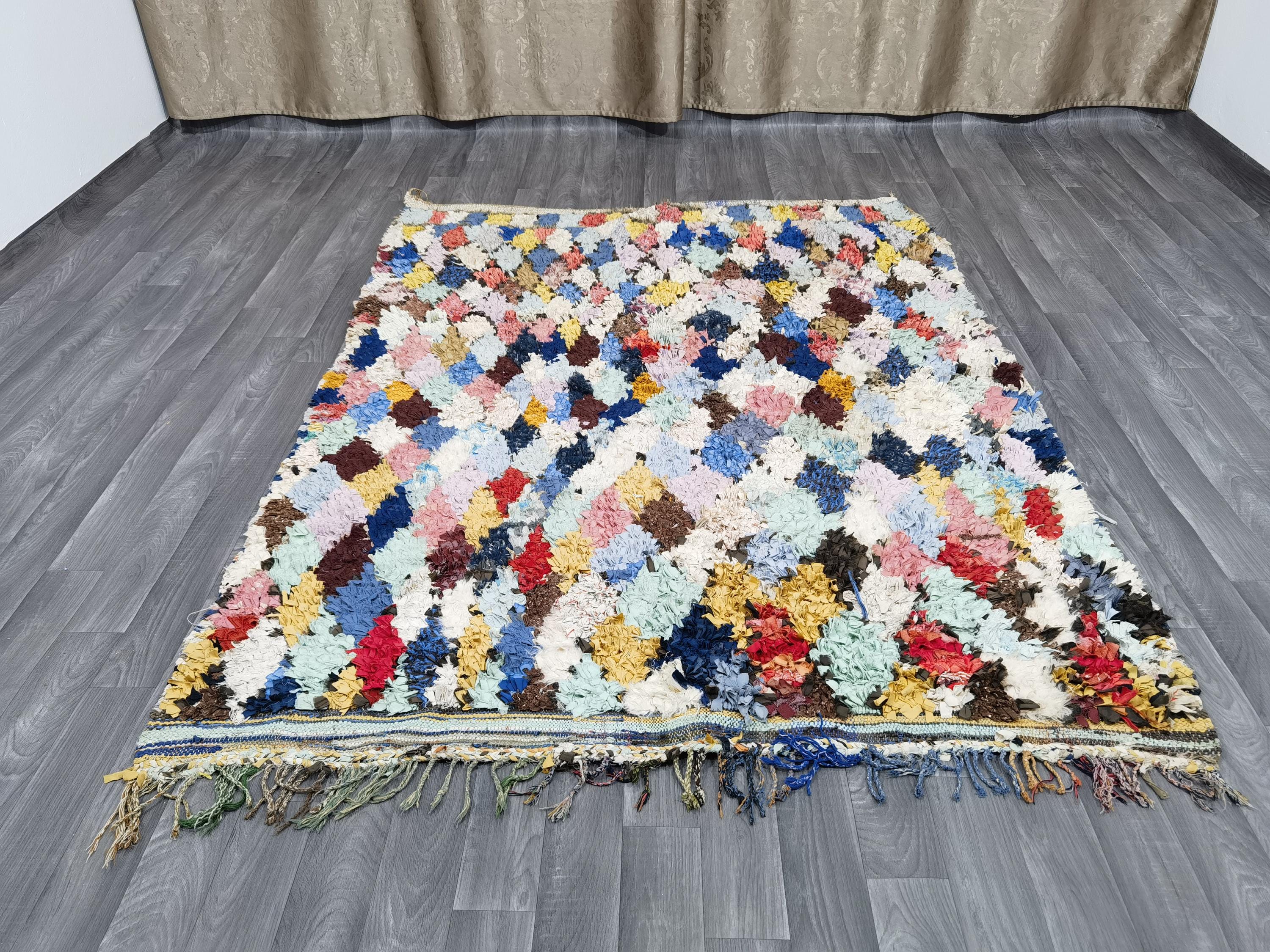 Gorgeous Handmade Moroccan Bohemian Shag Rug - Moroccan Colorful Boucherouite Rug - Old Boucherouite Rug 5.1x6.8 FT ( 156 X 209 Cm) .