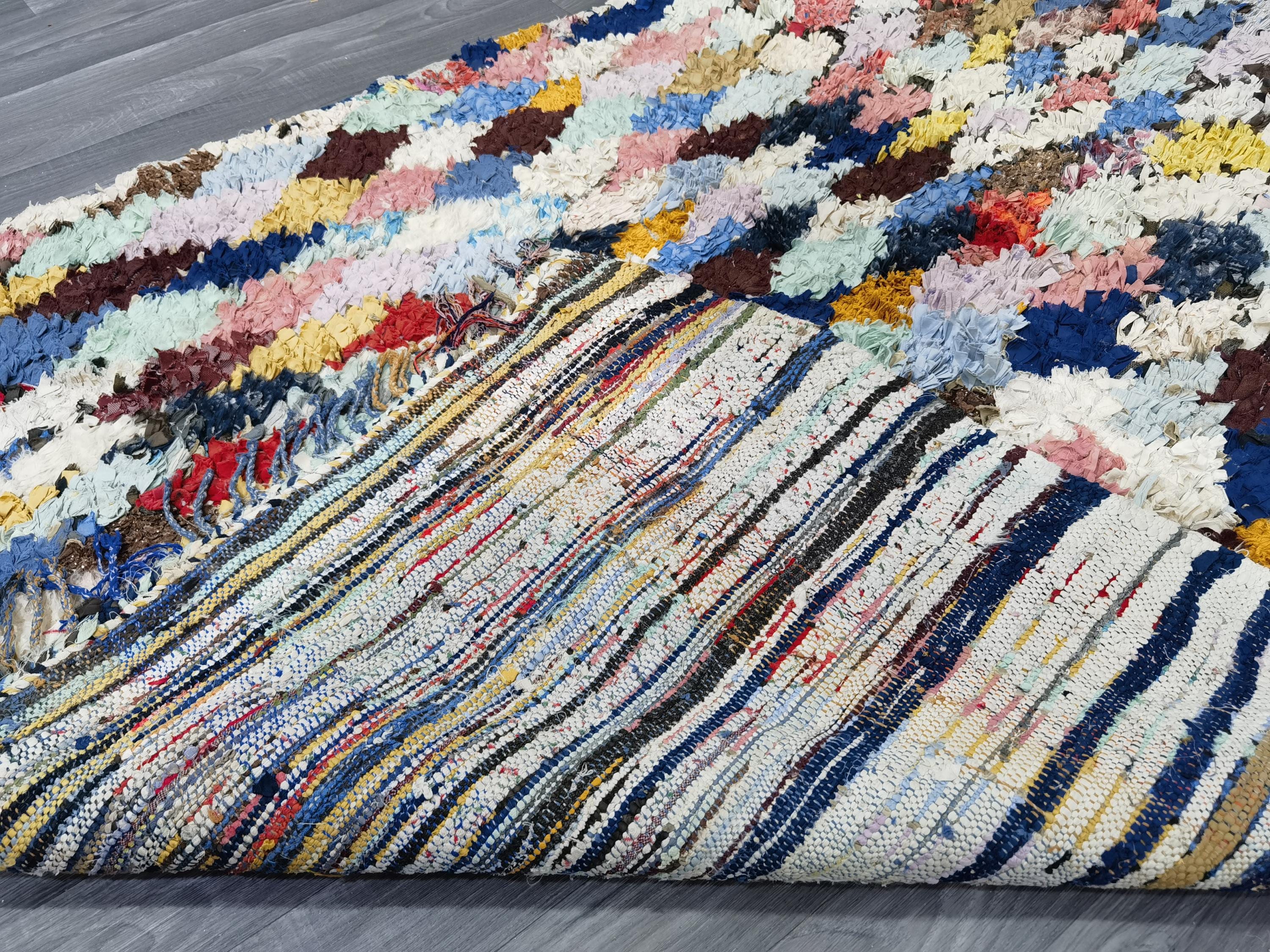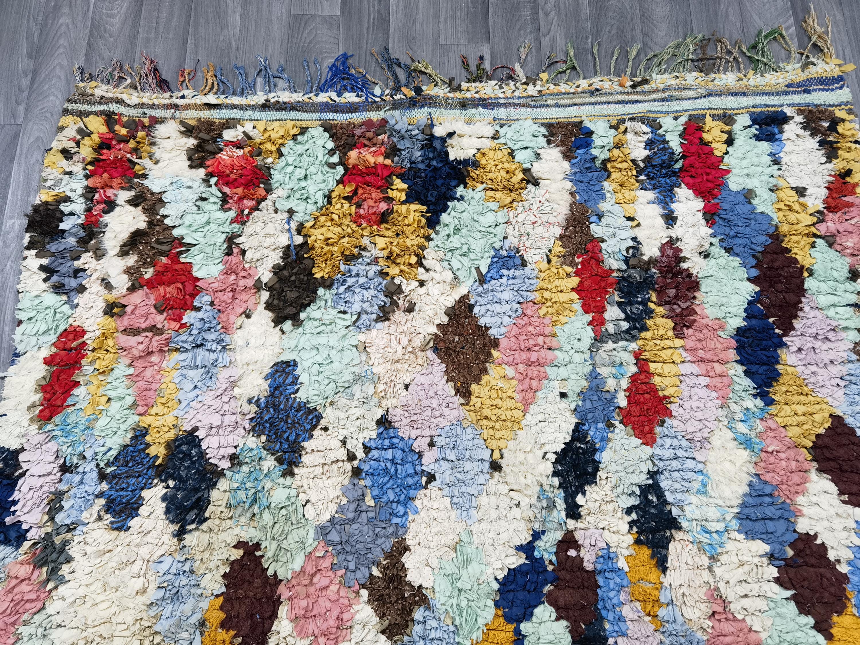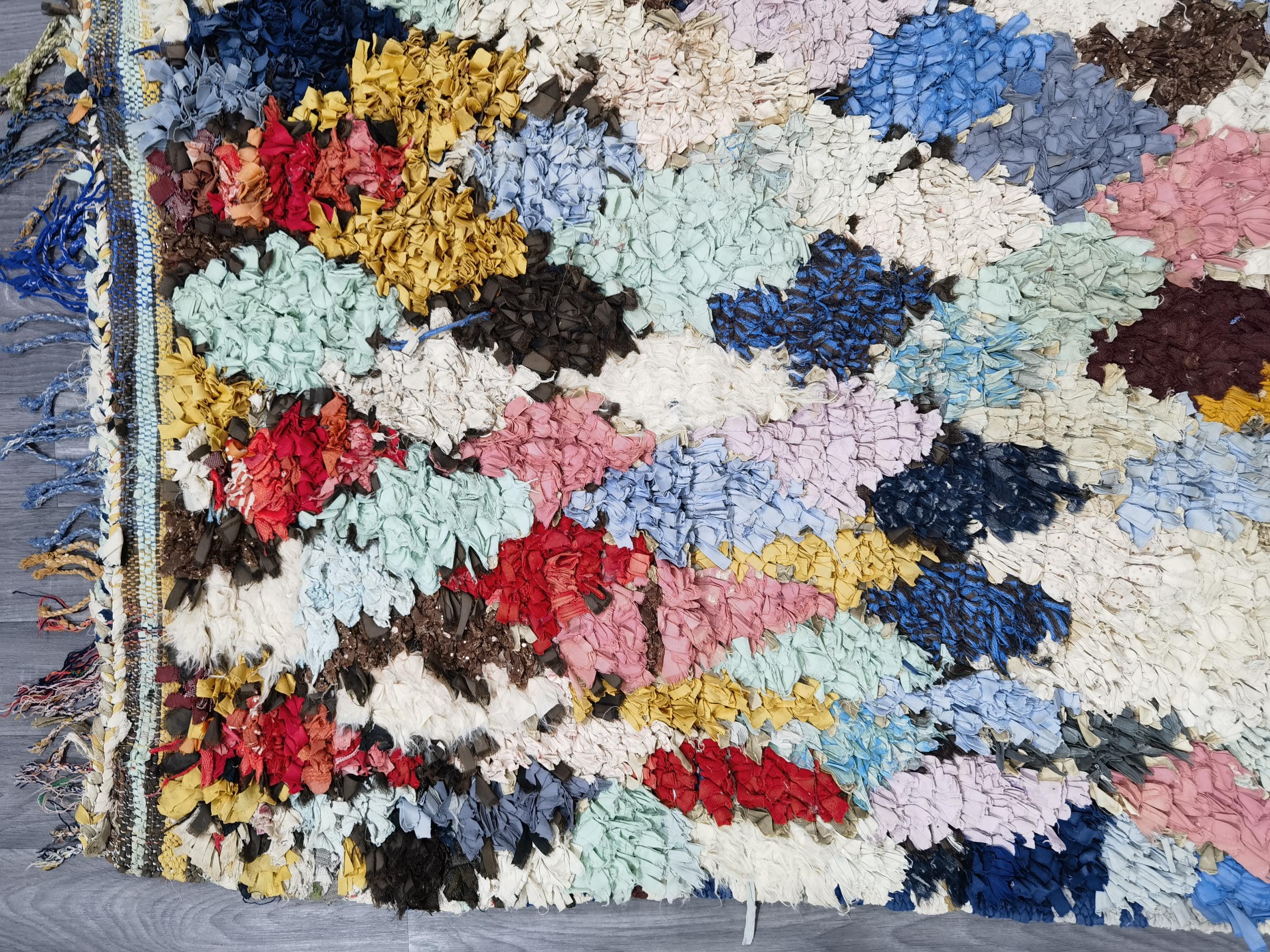 Gorgeous Handmade Moroccan Bohemian Shag Rug - Moroccan Colorful Boucherouite Rug - Old Boucherouite Rug 5.1x6.8 FT ( 156 X 209 Cm) .