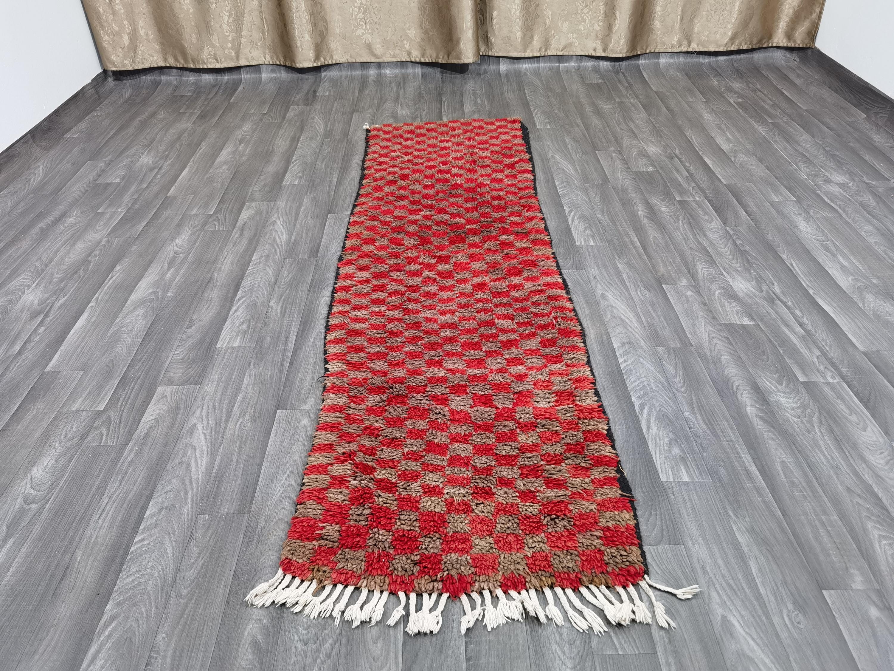 Red Moroccan Carpet, Berber Carpet, Tapis Boho Outdoor Runner, Handmade Rug ,Rugs For Living Room, Moroccan Rugs, Boujad Rug 2.1x7.6 ft