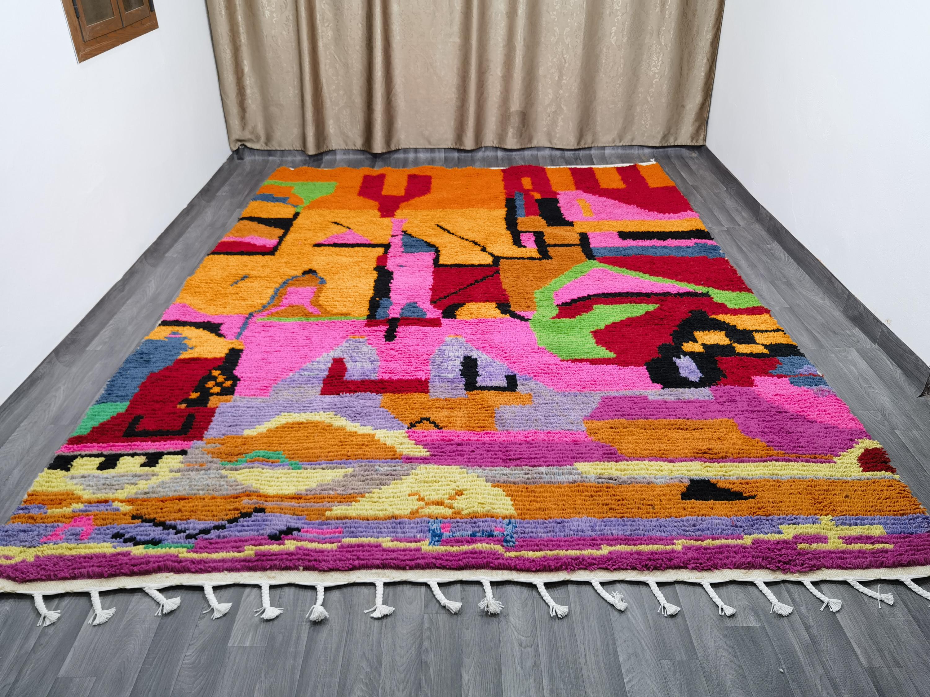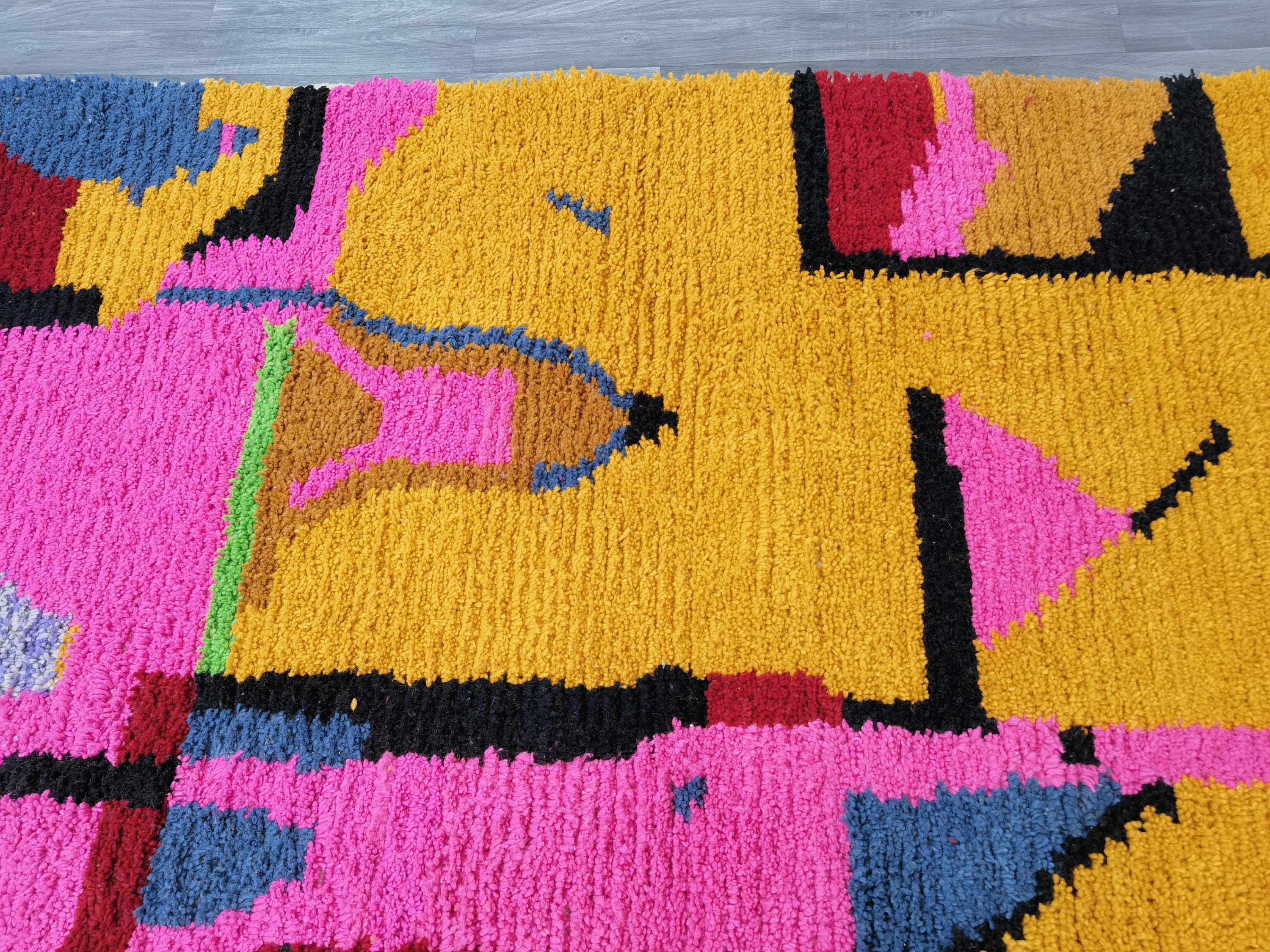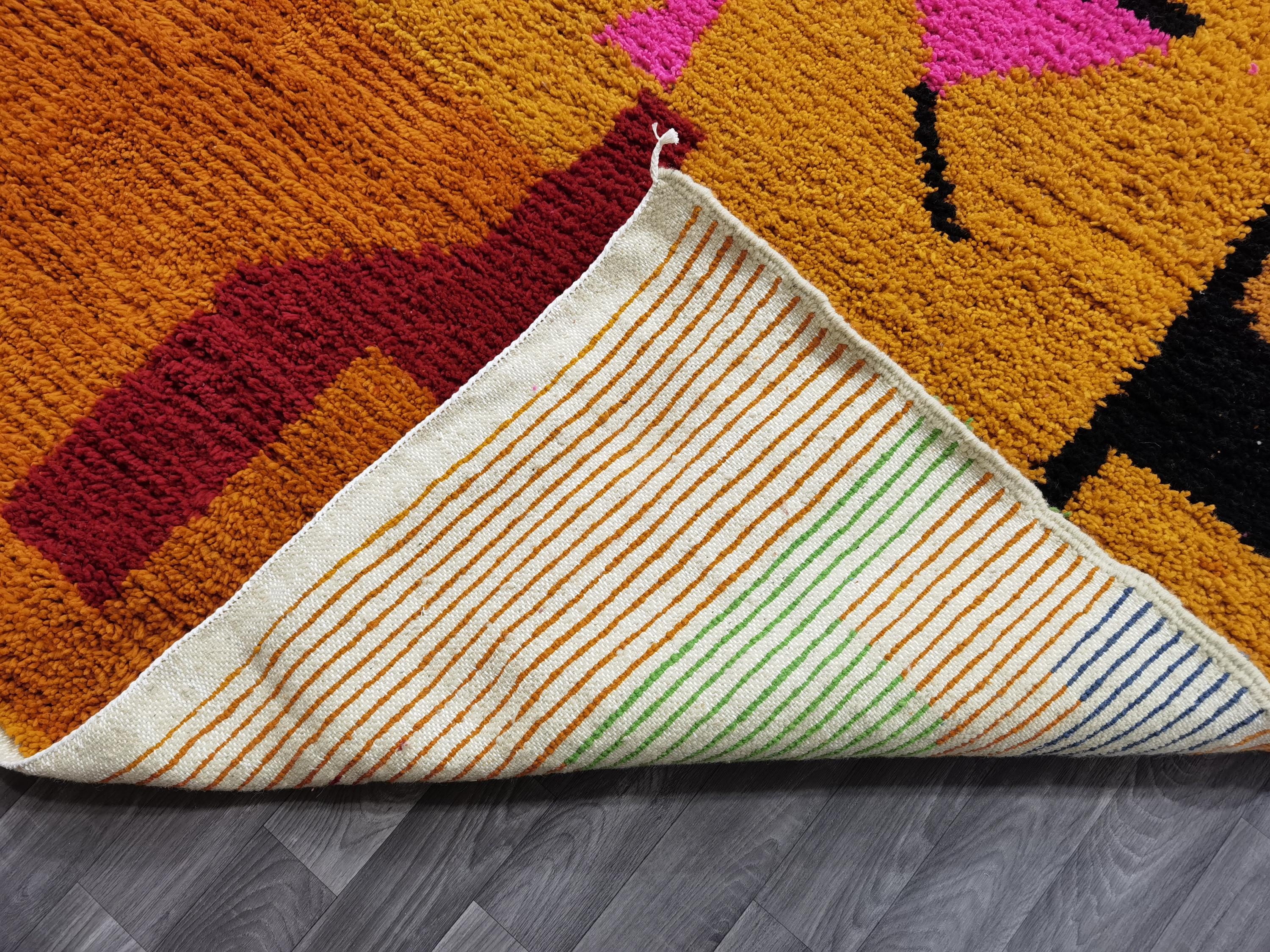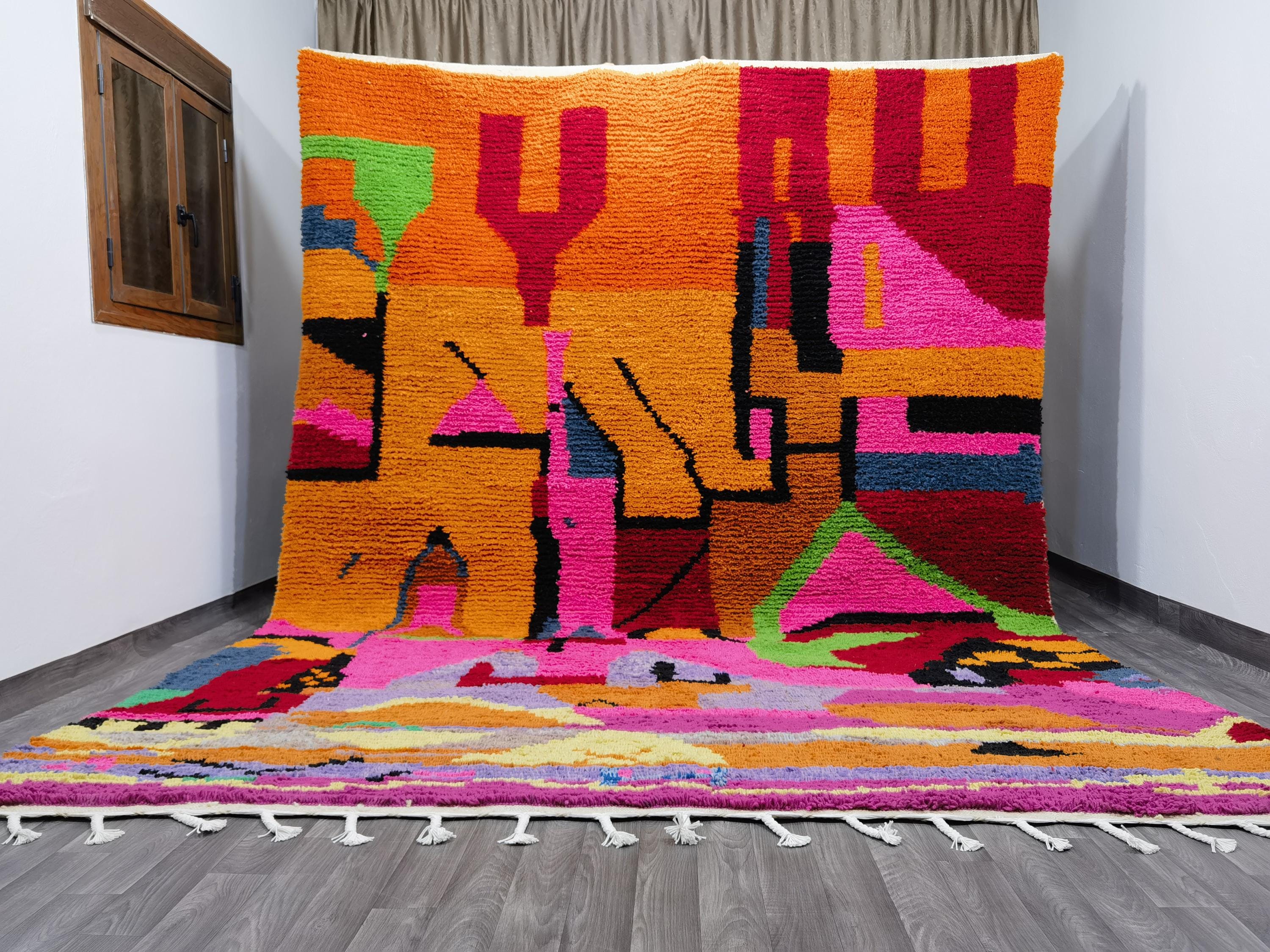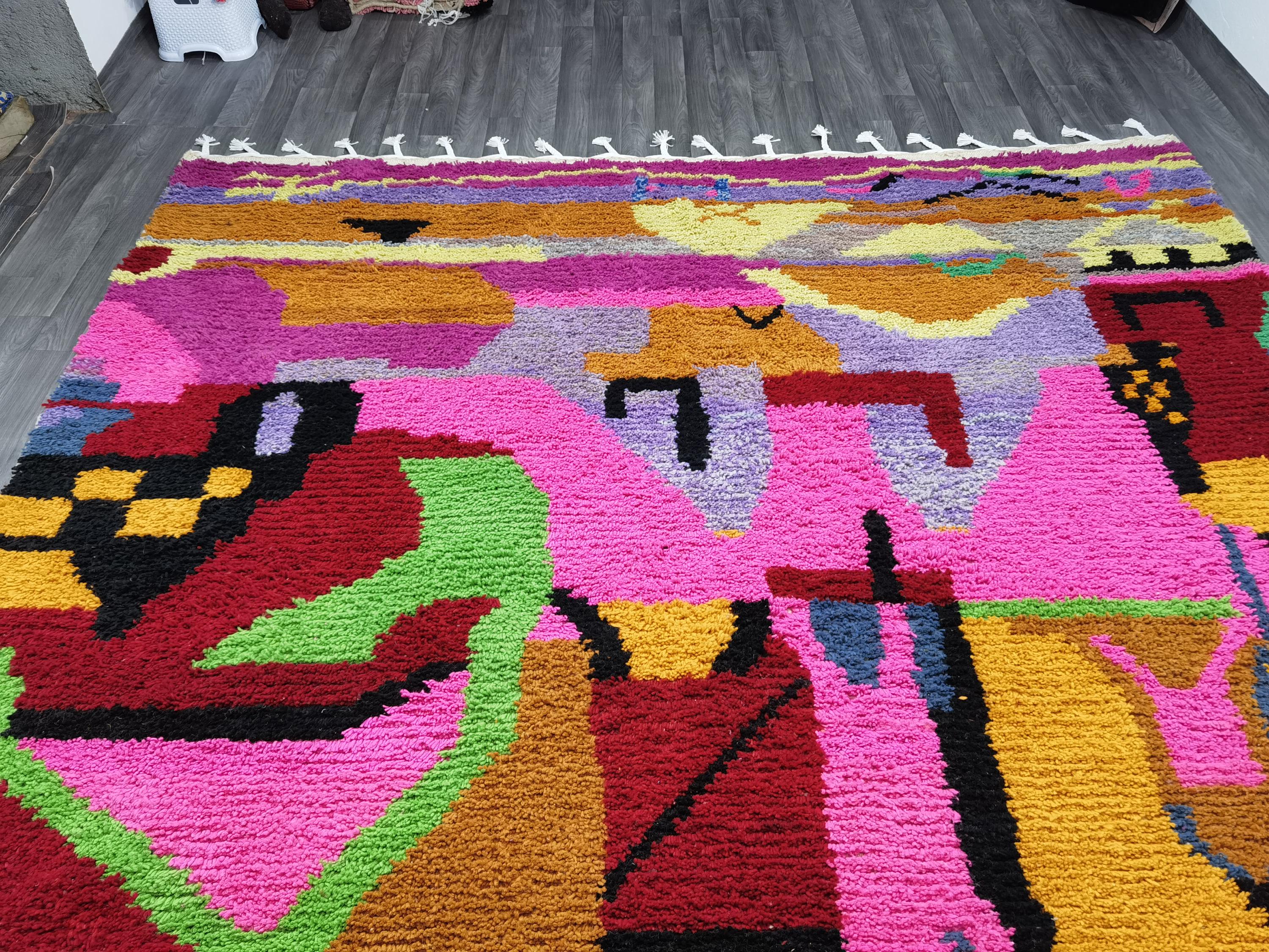 This unique Handwoven Moroccan Boujaad wool rug is one of a kind. A unique rare artistic handmade art, a beautiful combination of colors. which makes it the best choice whether for your house or your showroom. The famous Boujaad rug is now on the cover of the world’s leading home decoration magazines. This rug with character goes perfectly with all interior styles, Bohemian, Modern, Minimalist, Scandinavian, Traditional, which makes it the best choice for your needs.