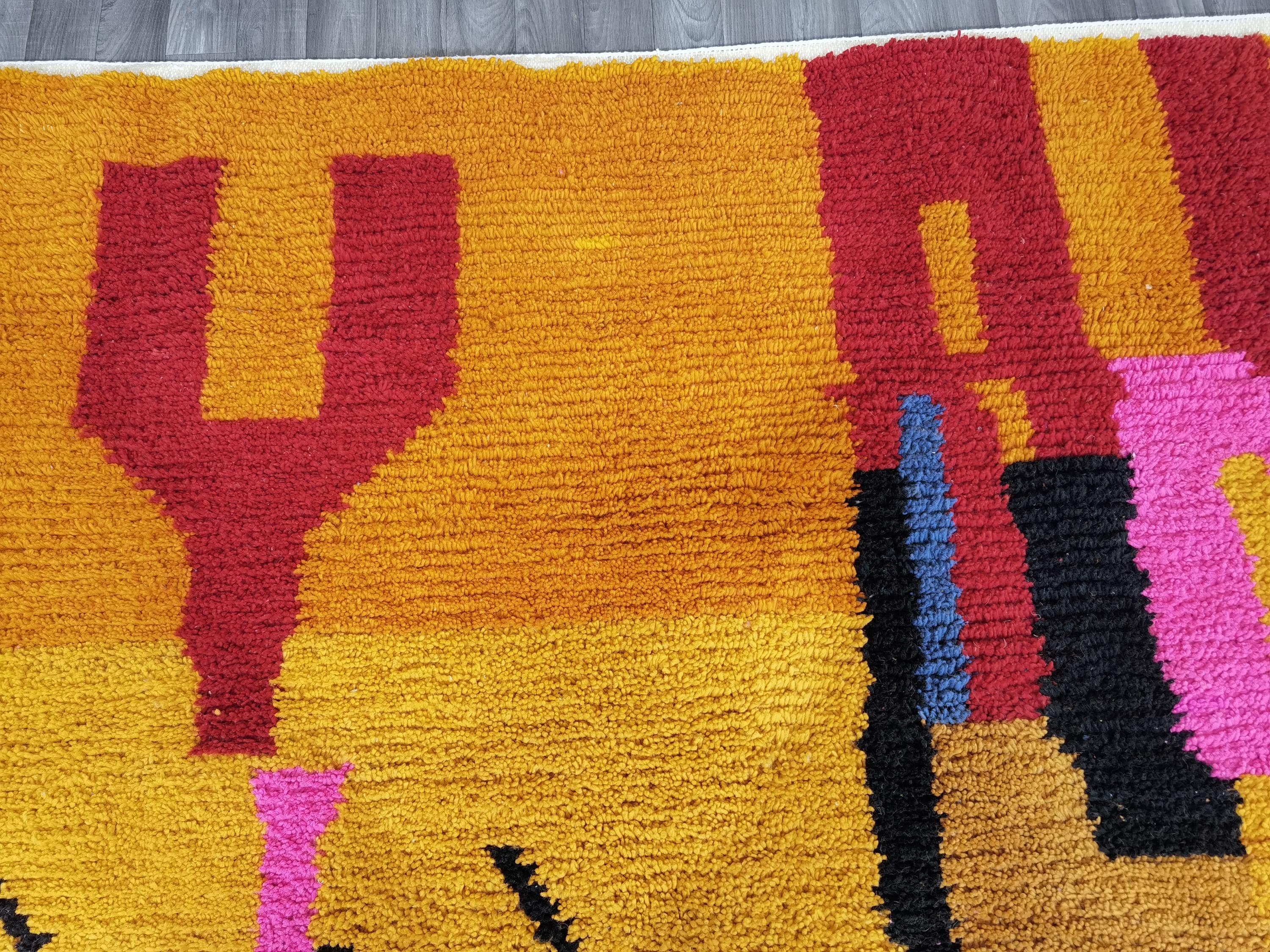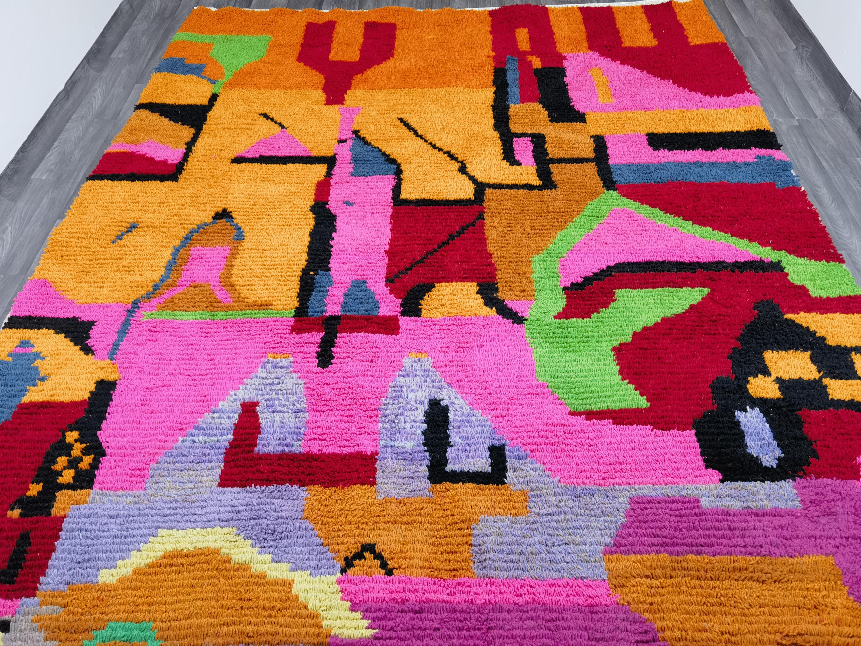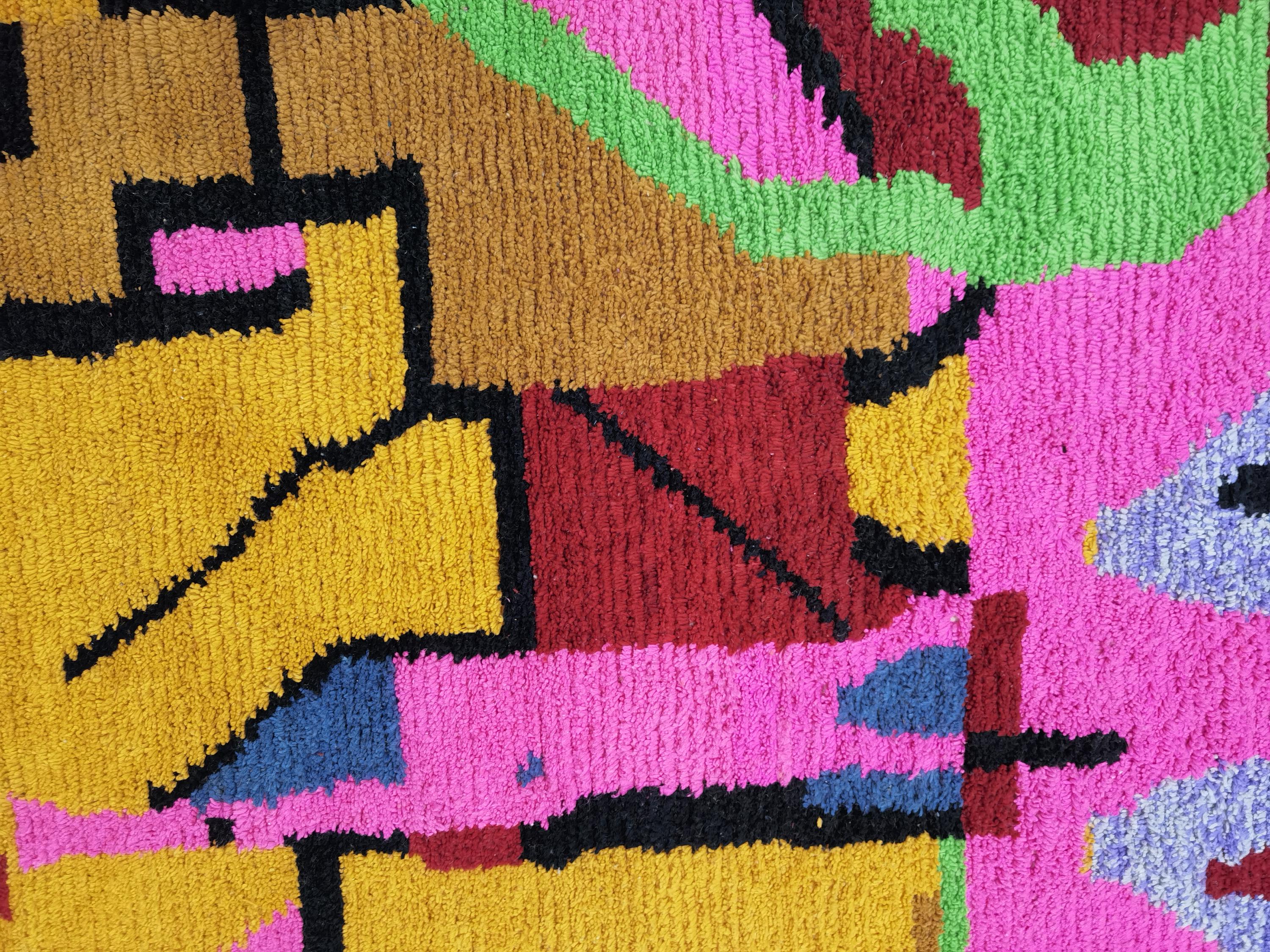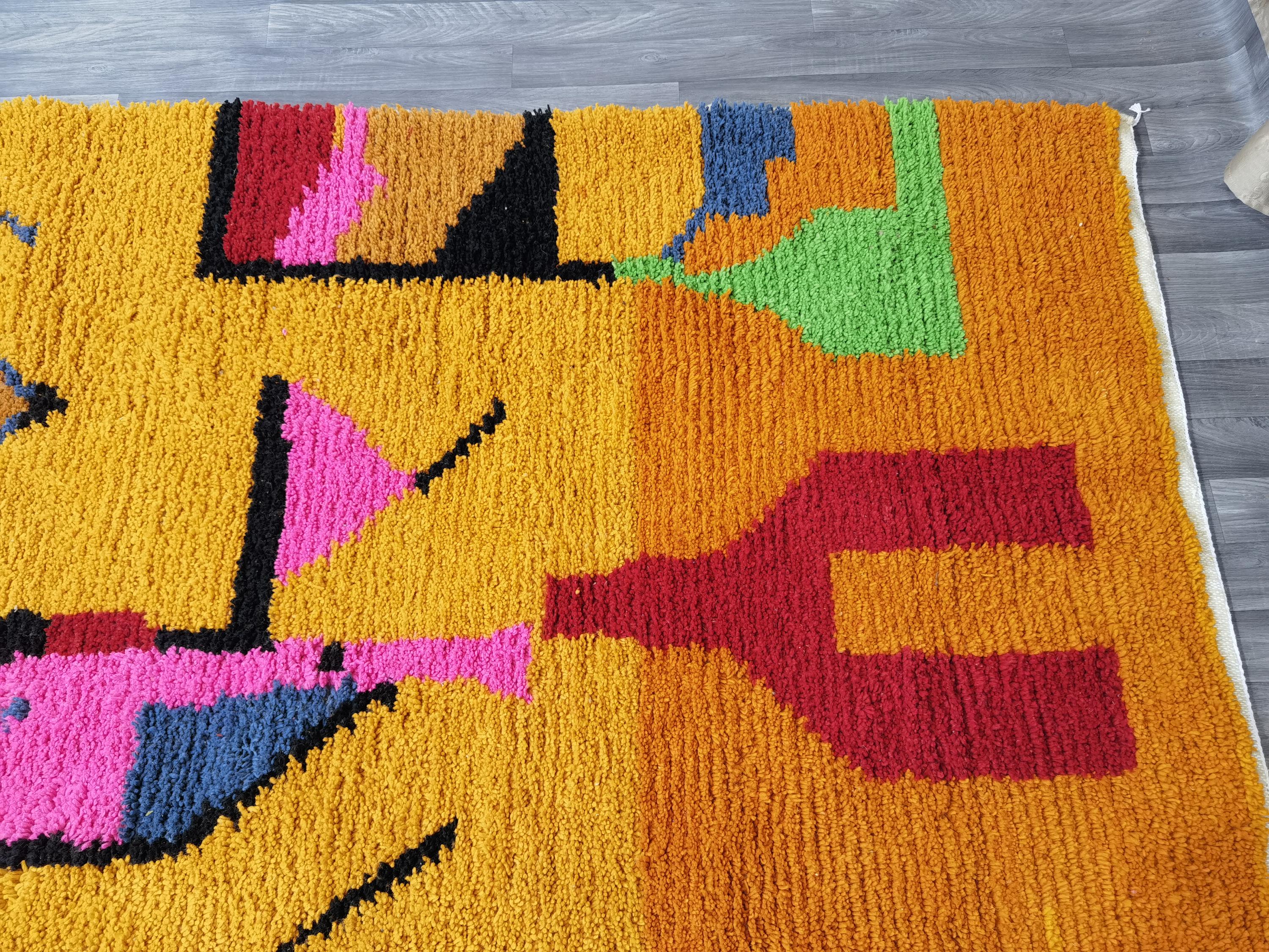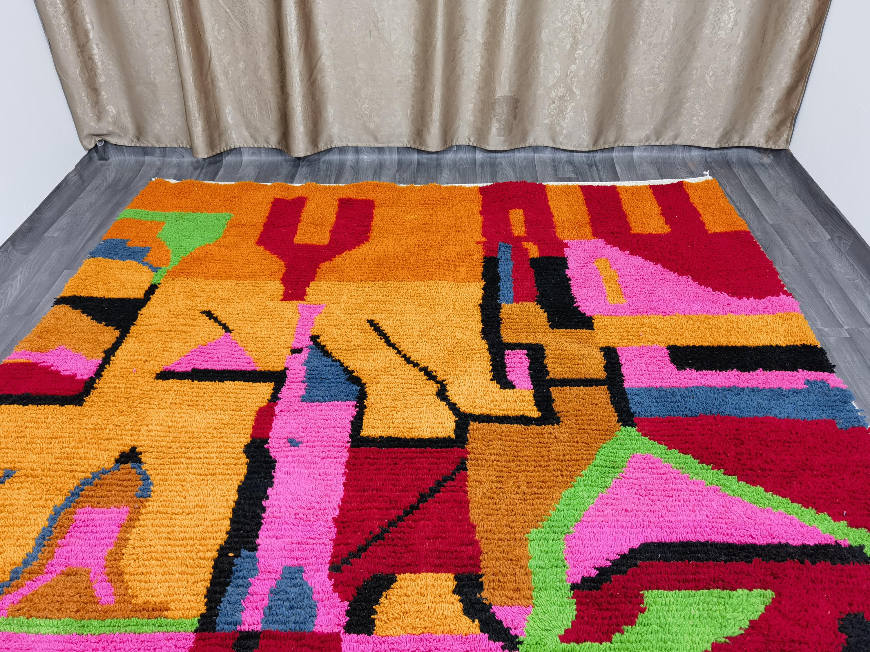 This unique Handwoven Moroccan Boujaad wool rug is one of a kind. A unique rare artistic handmade art, a beautiful combination of colors. which makes it the best choice whether for your house or your showroom. The famous Boujaad rug is now on the cover of the world’s leading home decoration magazines. This rug with character goes perfectly with all interior styles, Bohemian, Modern, Minimalist, Scandinavian, Traditional, which makes it the best choice for your needs.