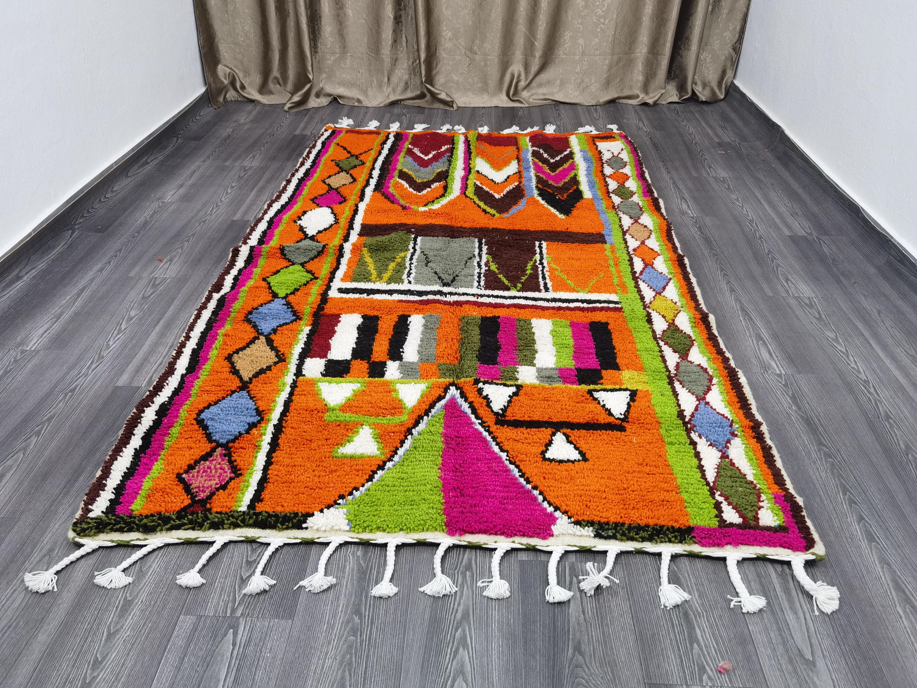 Gorgeous Orange Rug, Authentic Orange Rug, Orange Rugs, Bohemian Rug For Living Room, Handmade Morrocan Rug, Moroccan Wool Rug, Antique Rug
