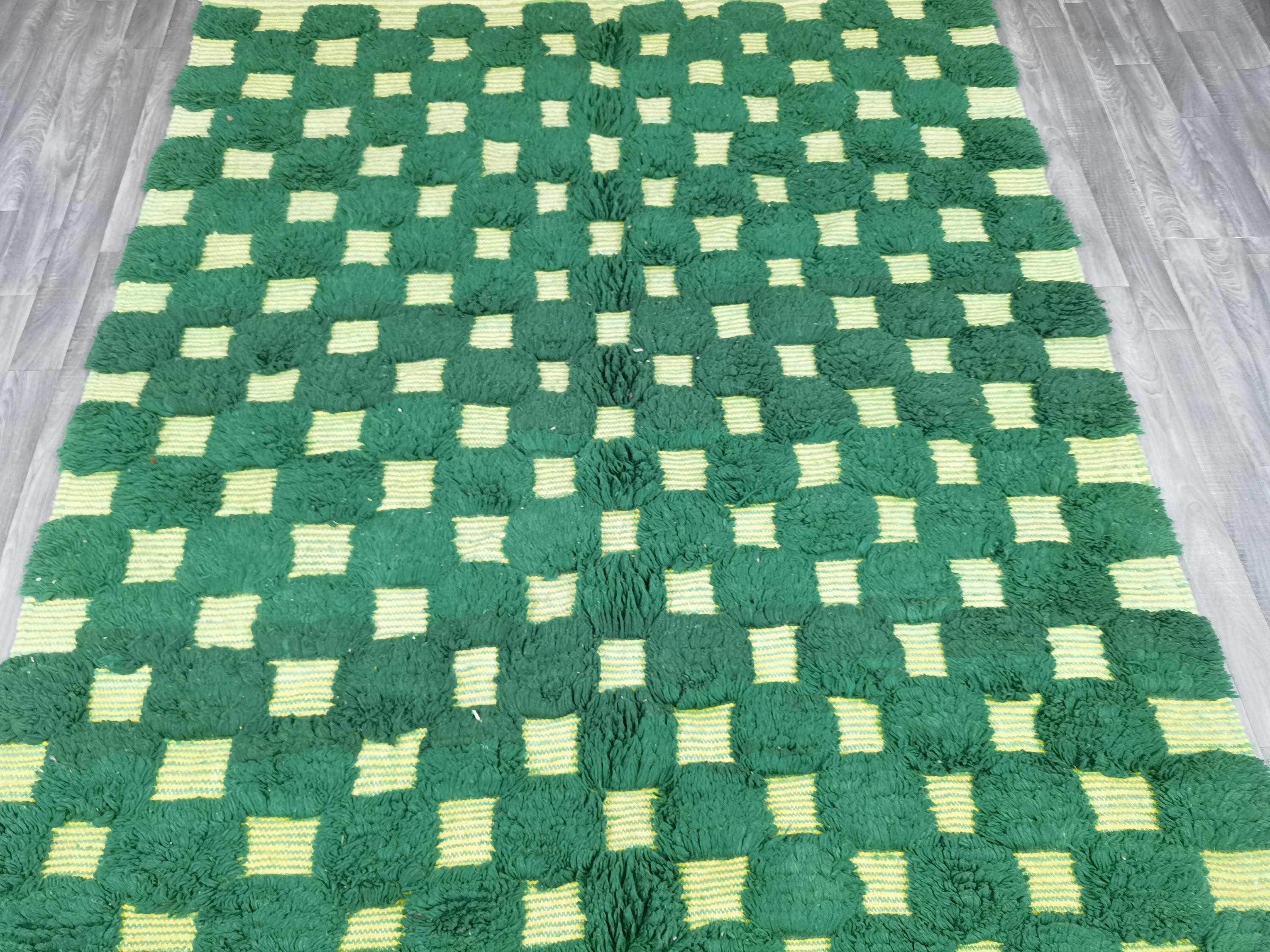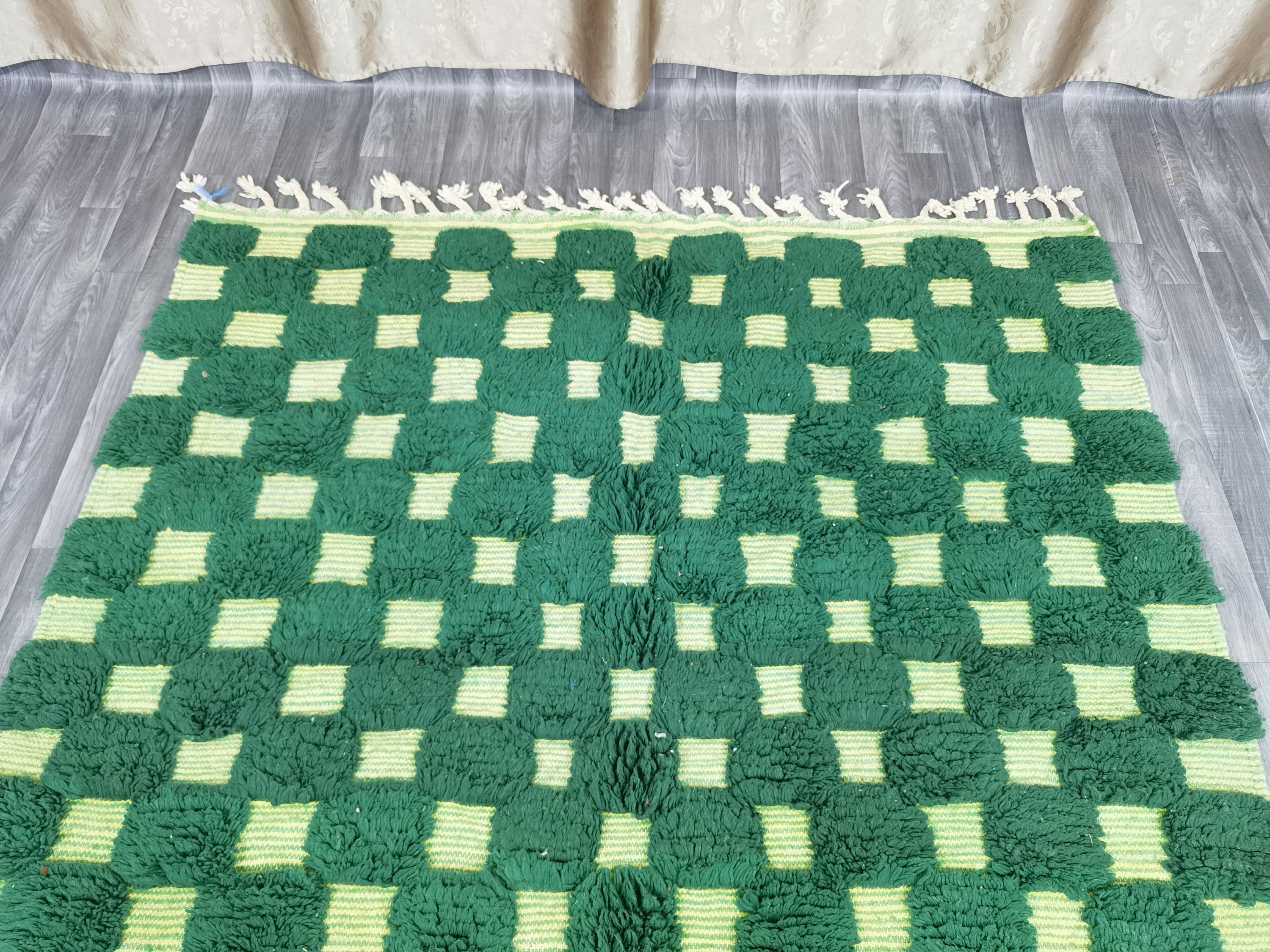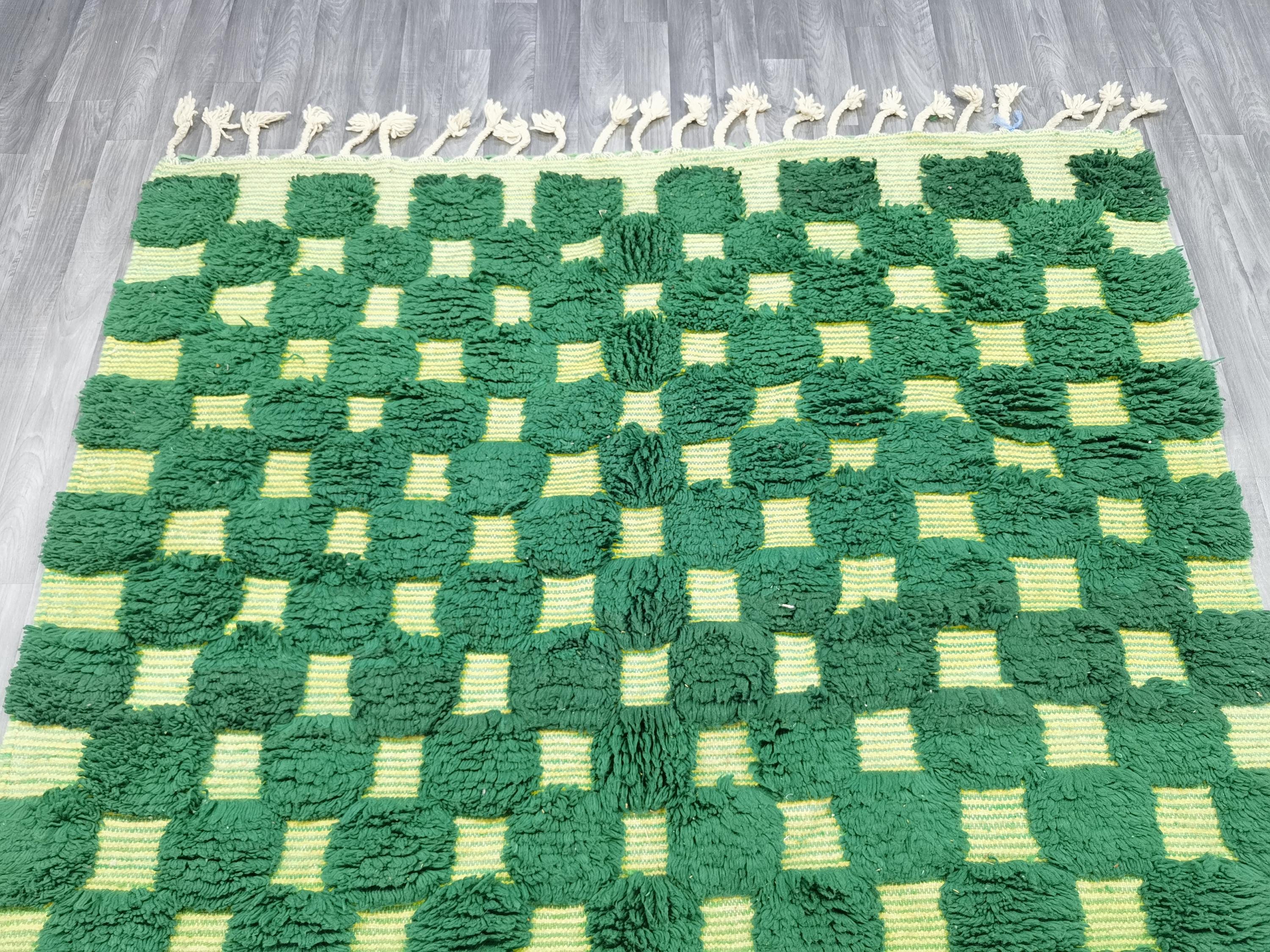 Gorgeous Beni Ourain Rug, Moroccan Green checkered rug, checkerboard Handmade area rugs , Wool Green Shaggy Rug, Custom Rugs For Living Room