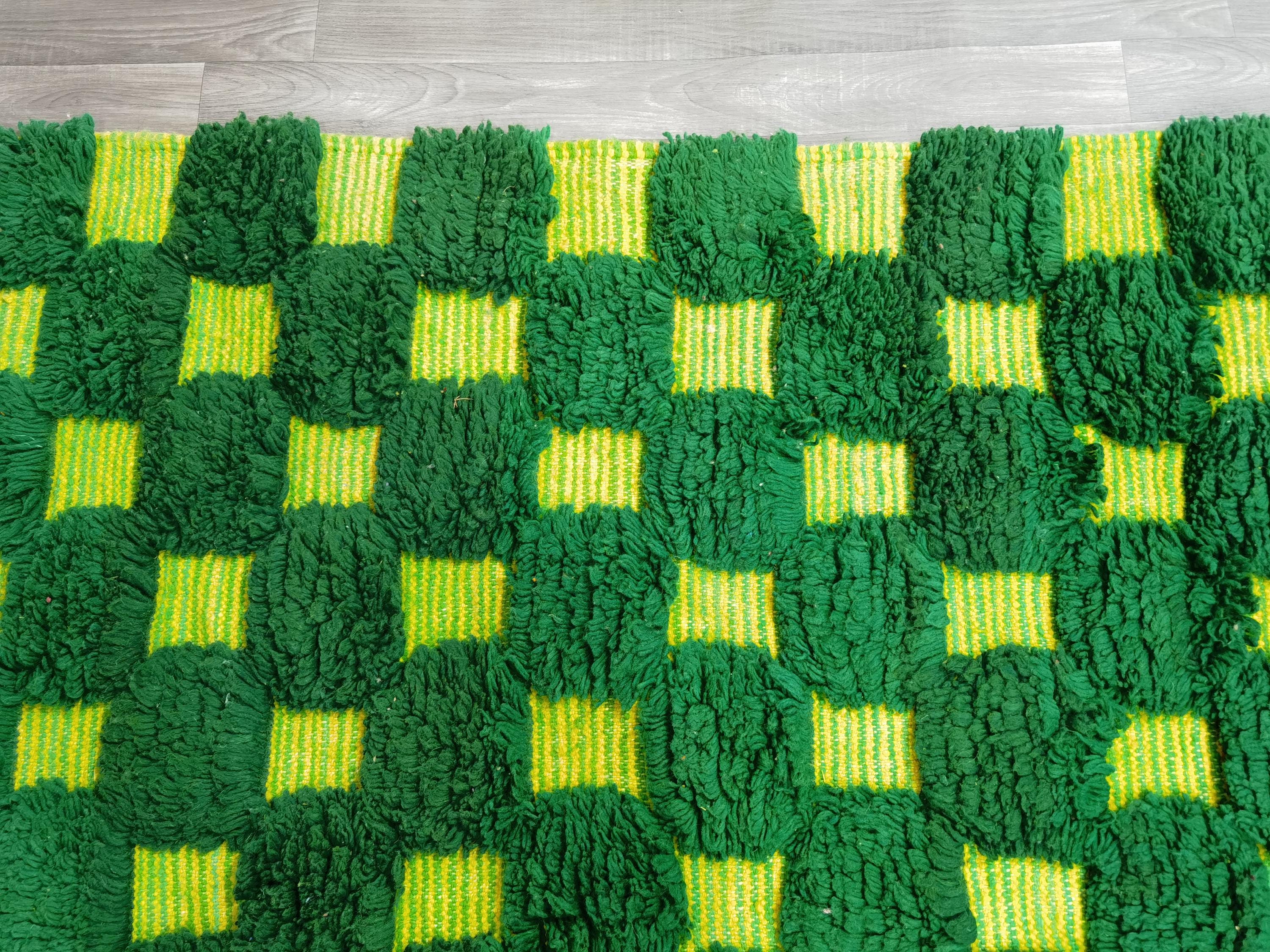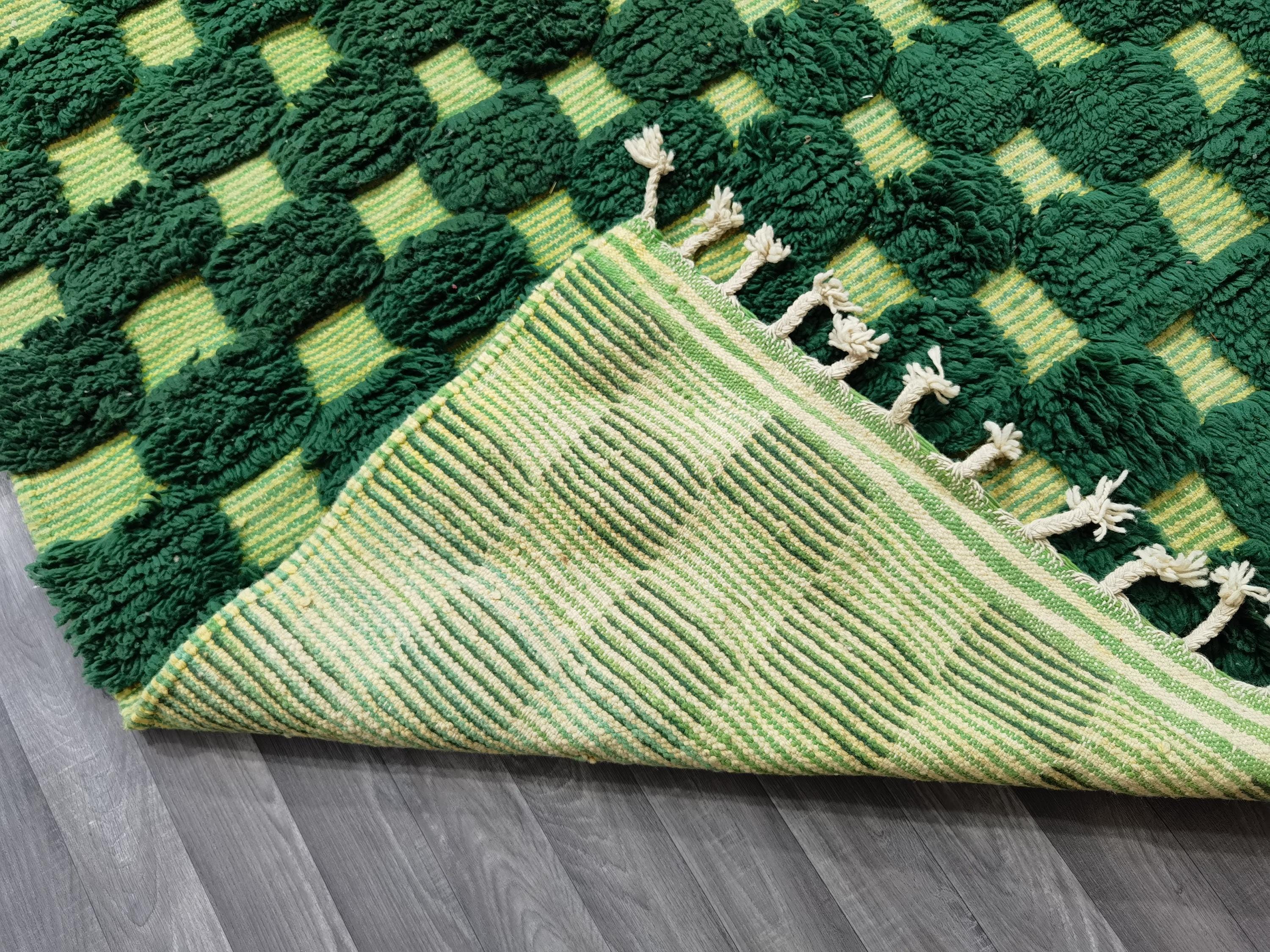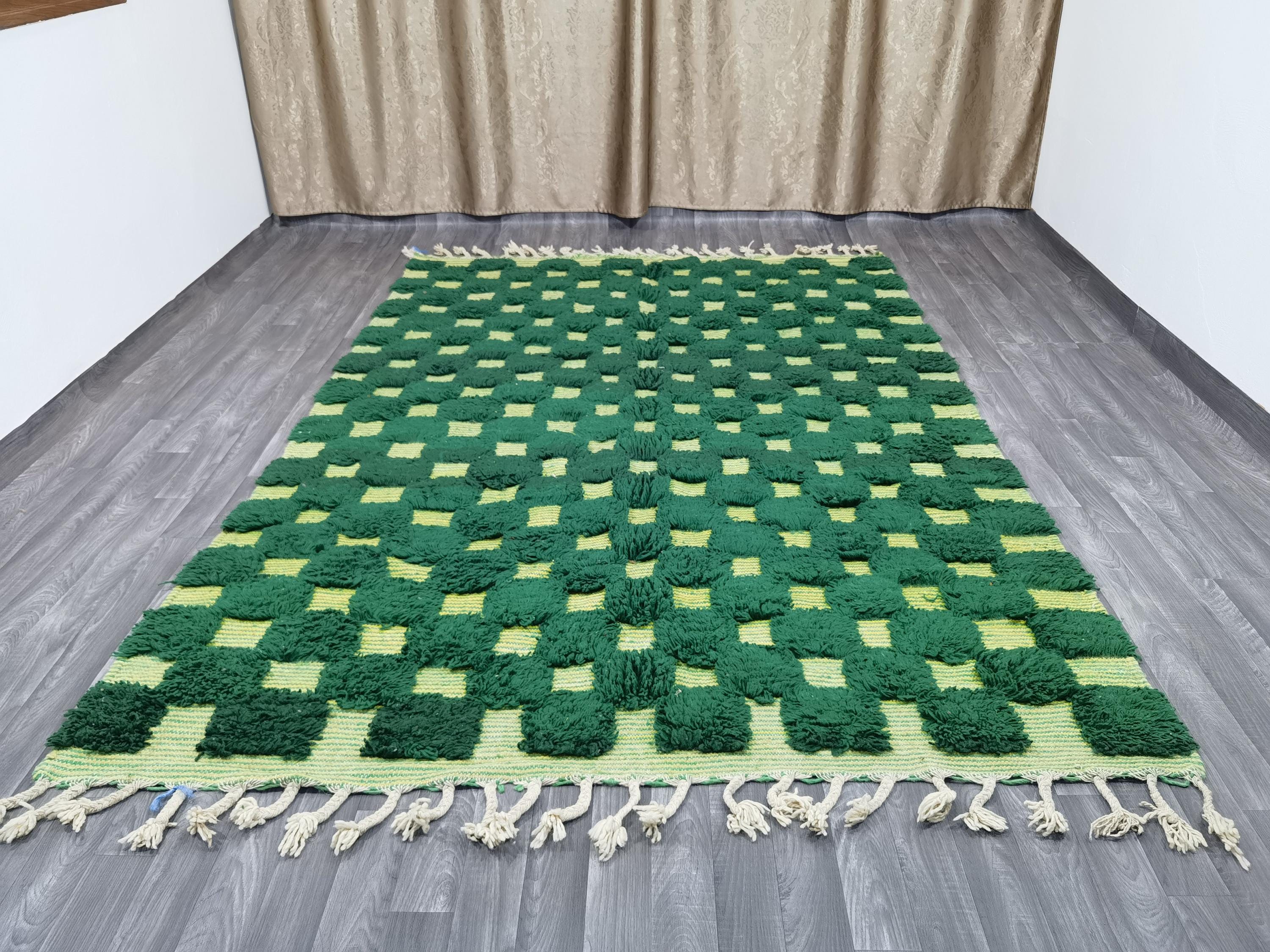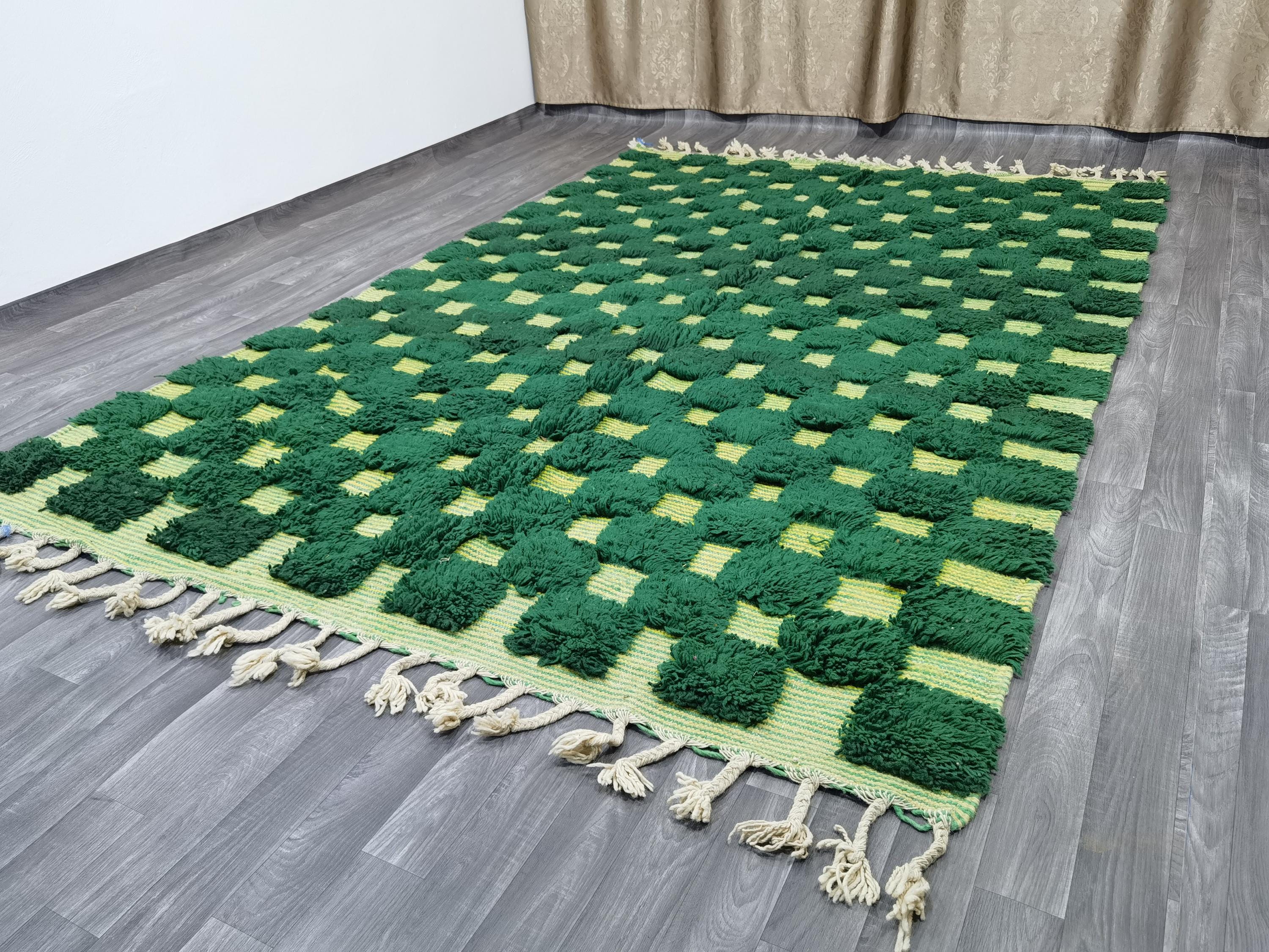 Gorgeous Beni Ourain Rug, Moroccan Green checkered rug, checkerboard Handmade area rugs , Wool Green Shaggy Rug, Custom Rugs For Living Room