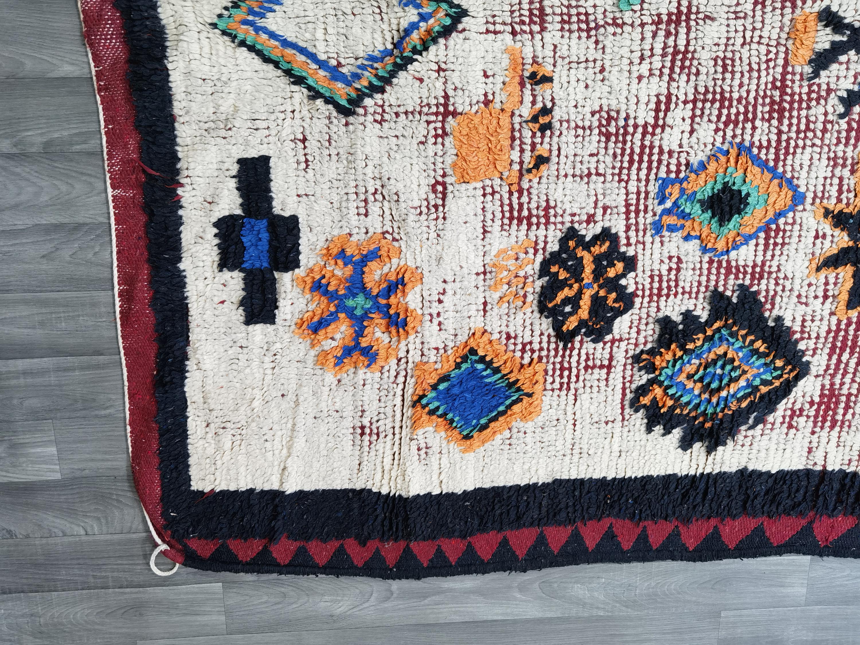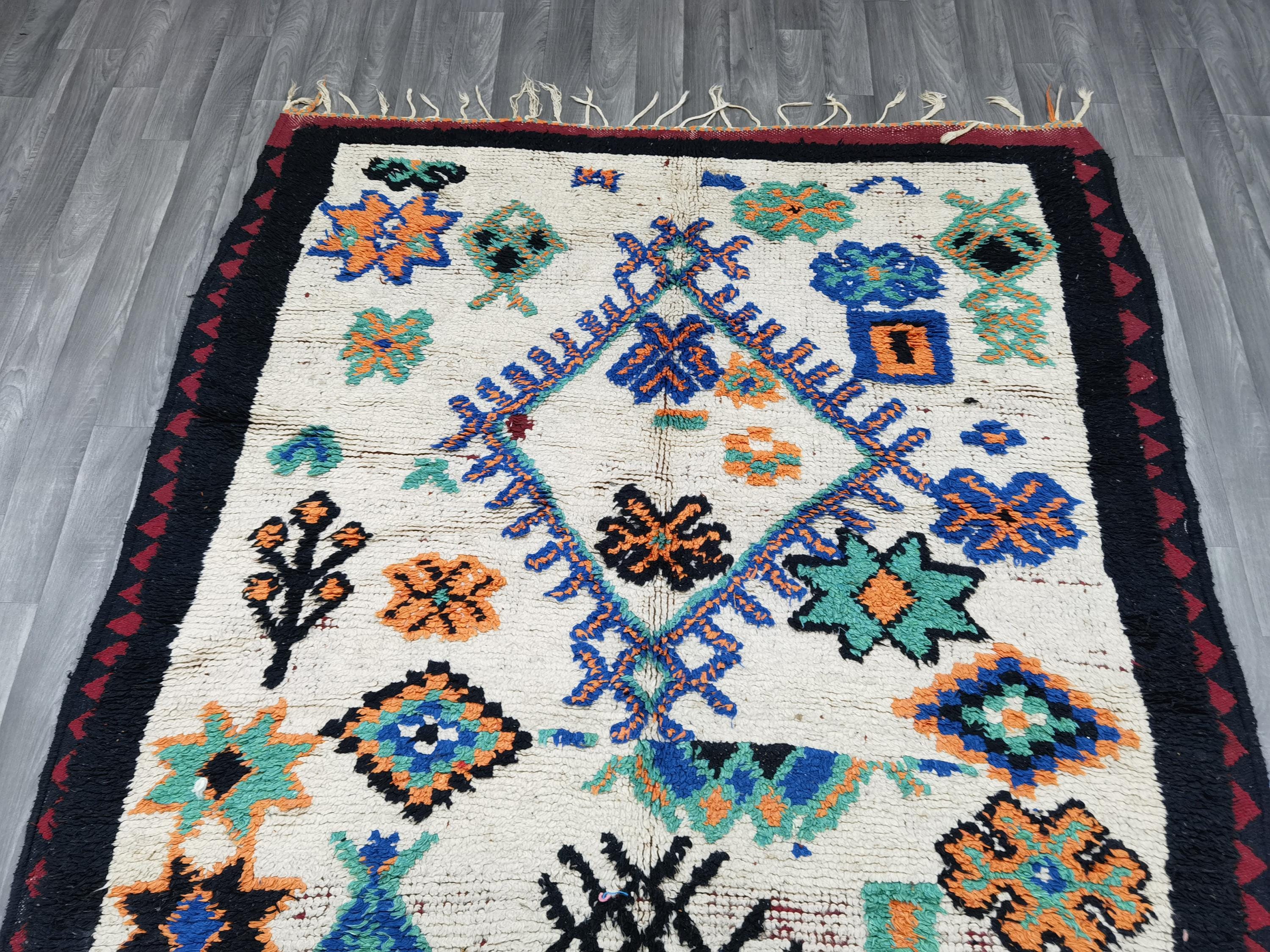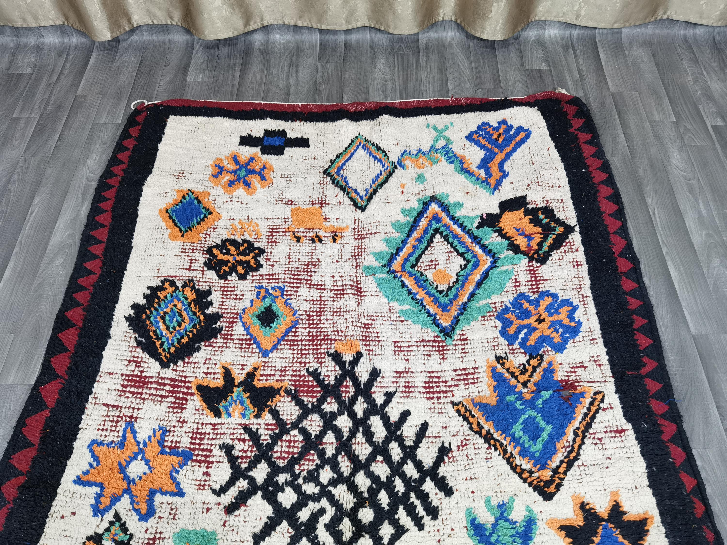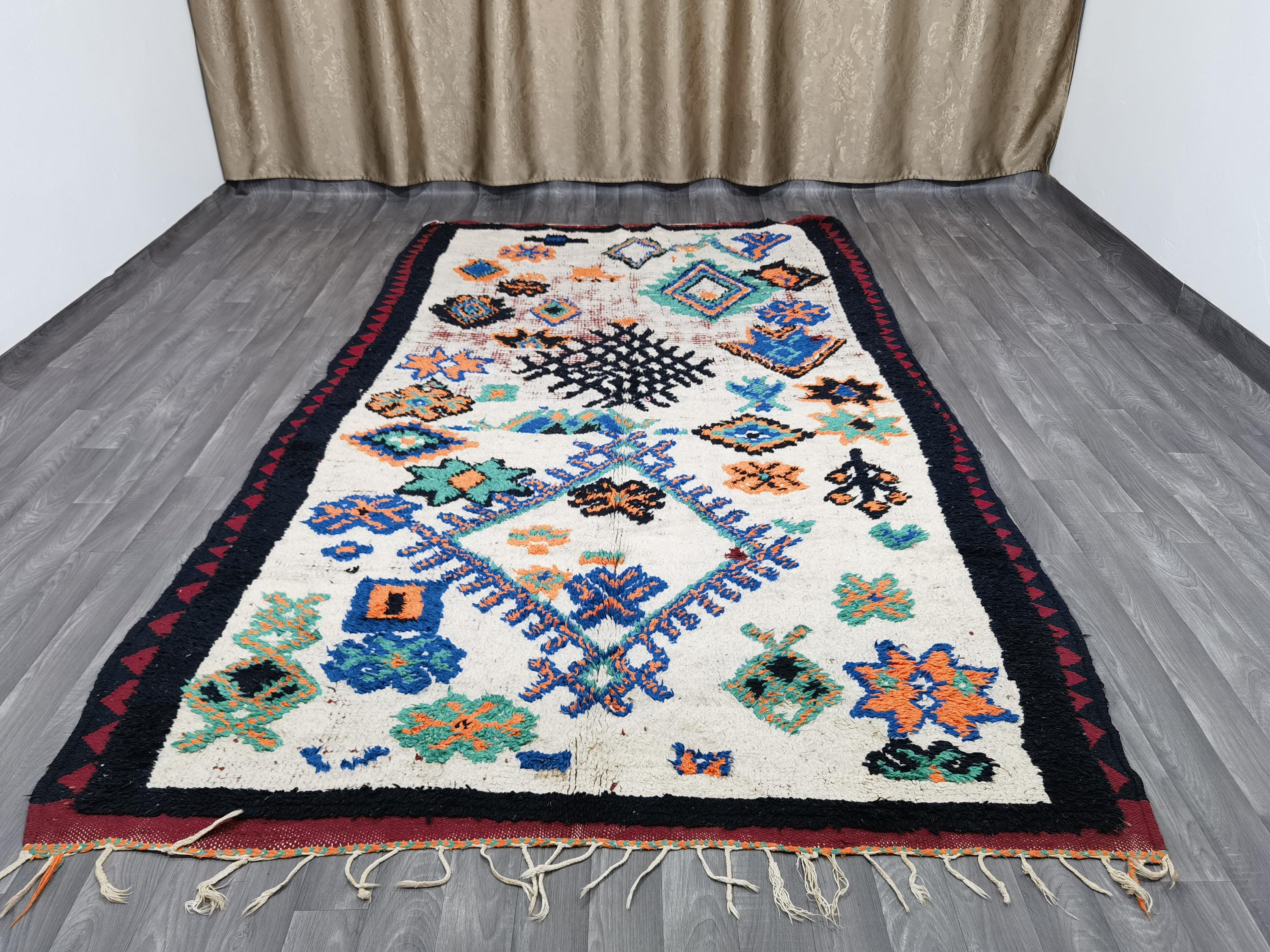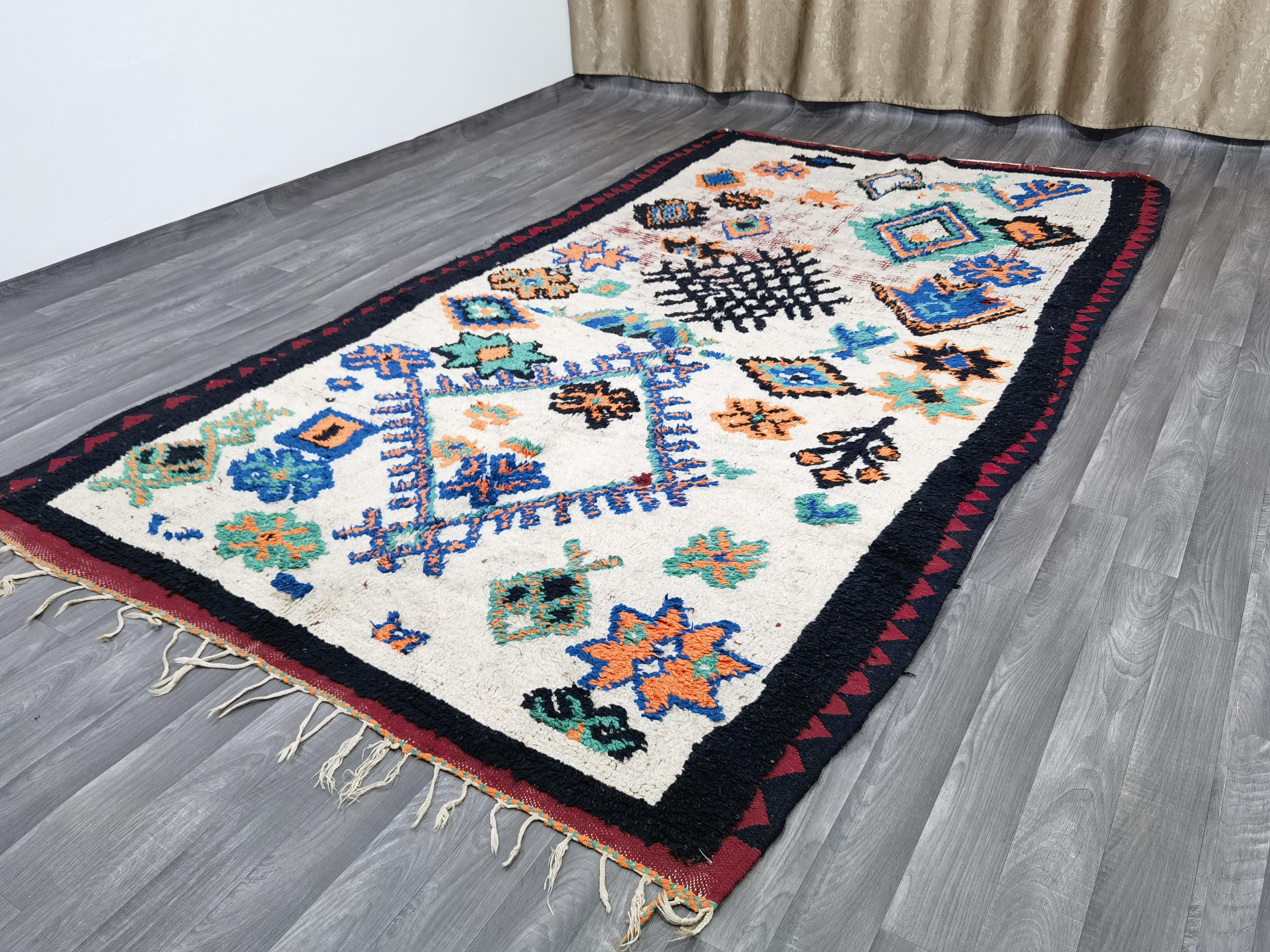 Amazing Vintage Moroccan Boujad Rug 5.7×9.8 Ft - Rugs For Living Room - Woven Azilal Rugs - Unique Geometric Rug - Berber Woven Area Rug .