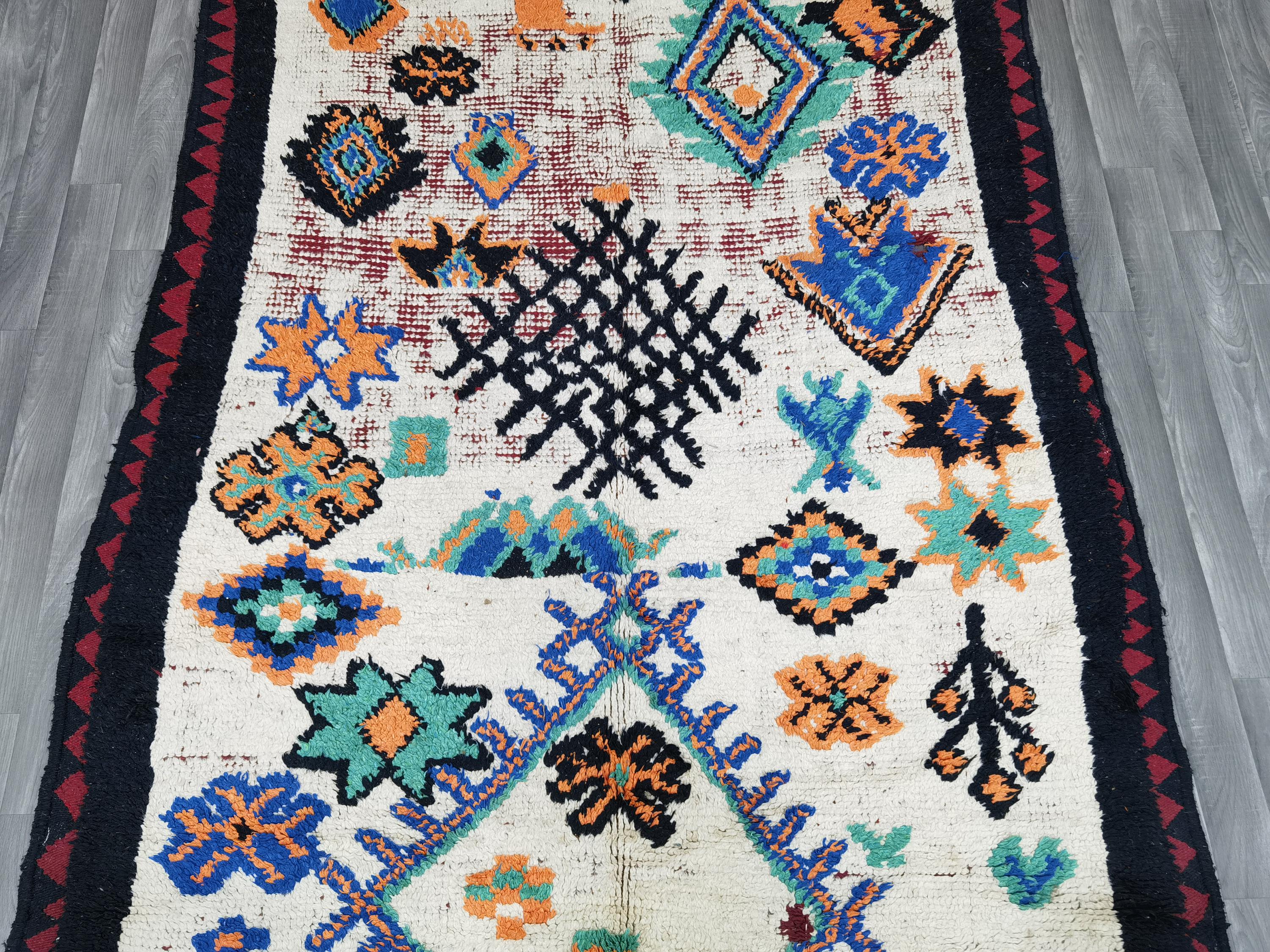 Boujaad is a vibrant and colorful wool runner that will add life to any room in your home. Made from 100% wool, this rug is perfect for use in the living room, bedroom, or anywhere you want to add some beautiful Moroccan flair. The soft and fluffy texture makes it comfortable to walk on, and the vivid colors will brighten up any space. Whether you're looking for a traditional shag rug or something a little more bohemian, Boujaad is sure to be a hit with your guests.