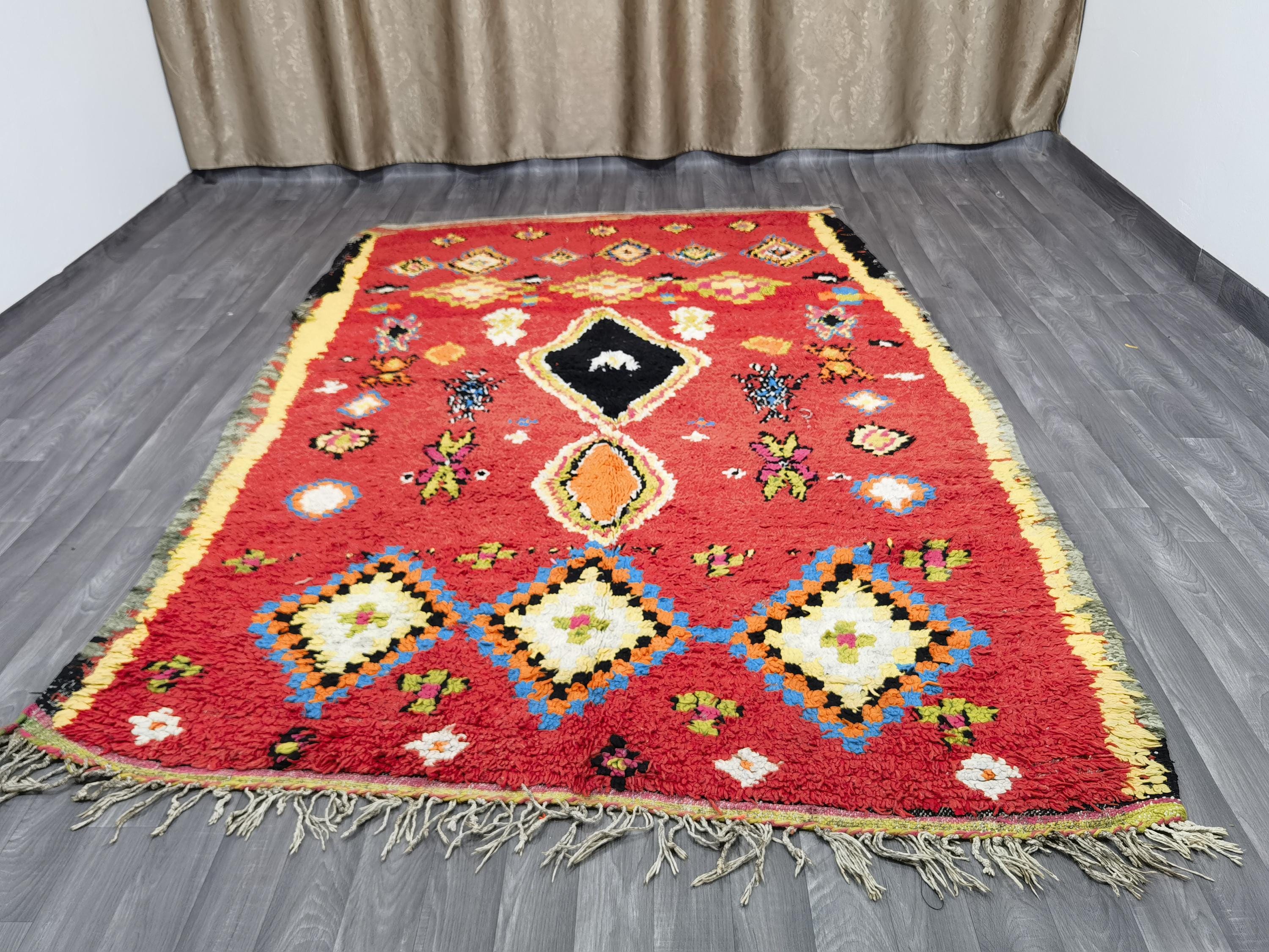 Boujaad is a vibrant and colorful wool rug that will add life to any room in your home. Made from 100% wool, this rug is perfect for use in the living room, bedroom, or anywhere you want to add some beautiful Moroccan flair. The soft and fluffy texture makes it comfortable to walk on, and the vivid colors will brighten up any space. Whether you're looking for a traditional shag rug or something a little more bohemian, Boujaad is sure to be a hit with your guests.