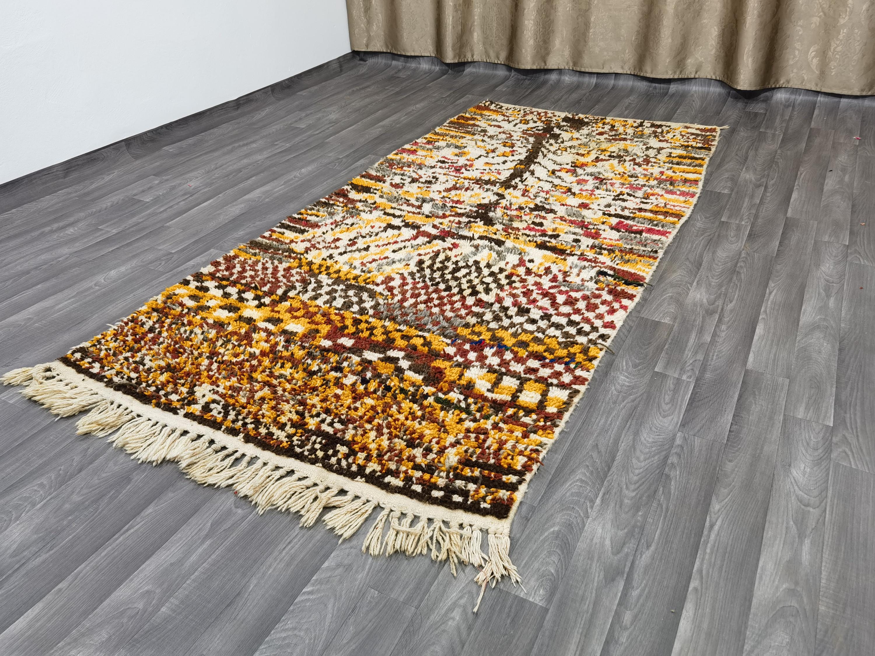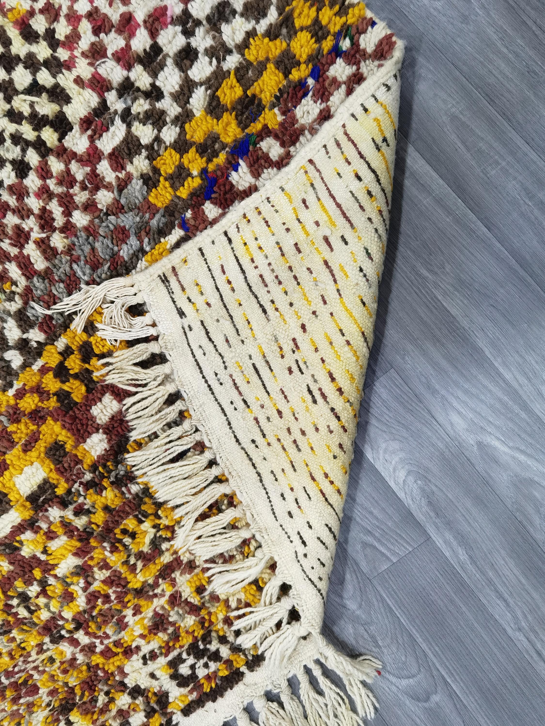 Boujaad is a vibrant and colorful wool rug that will add life to any room in your home. Made from 100% wool, this rug is perfect for use in the living room, bedroom, or anywhere you want to add some beautiful Moroccan flair. The soft and fluffy texture makes it comfortable to walk on, and the vivid colors will brighten up any space. Whether you're looking for a traditional shag rug or something a little more bohemian, Boujaad is sure to be a hit with your guests.