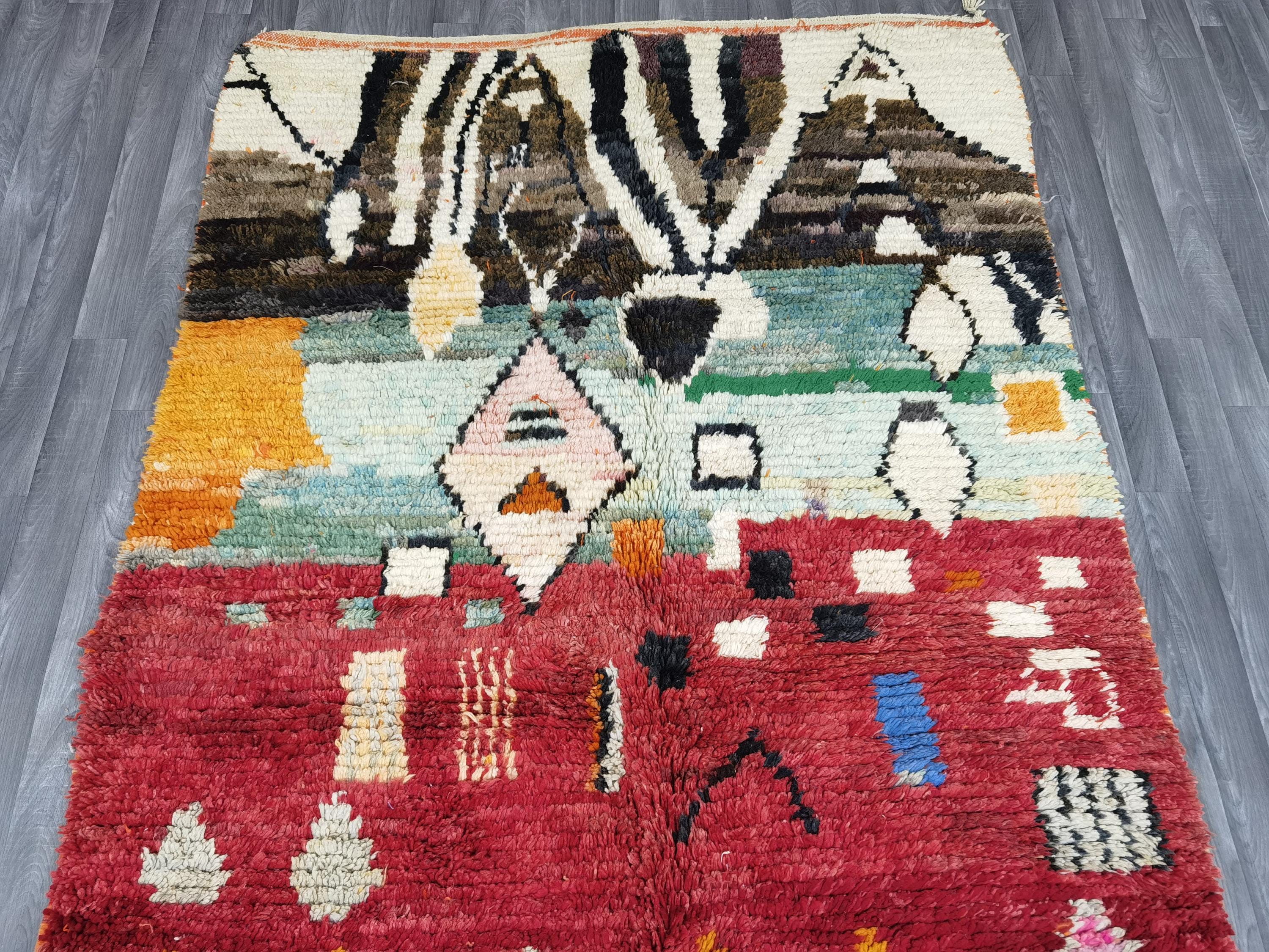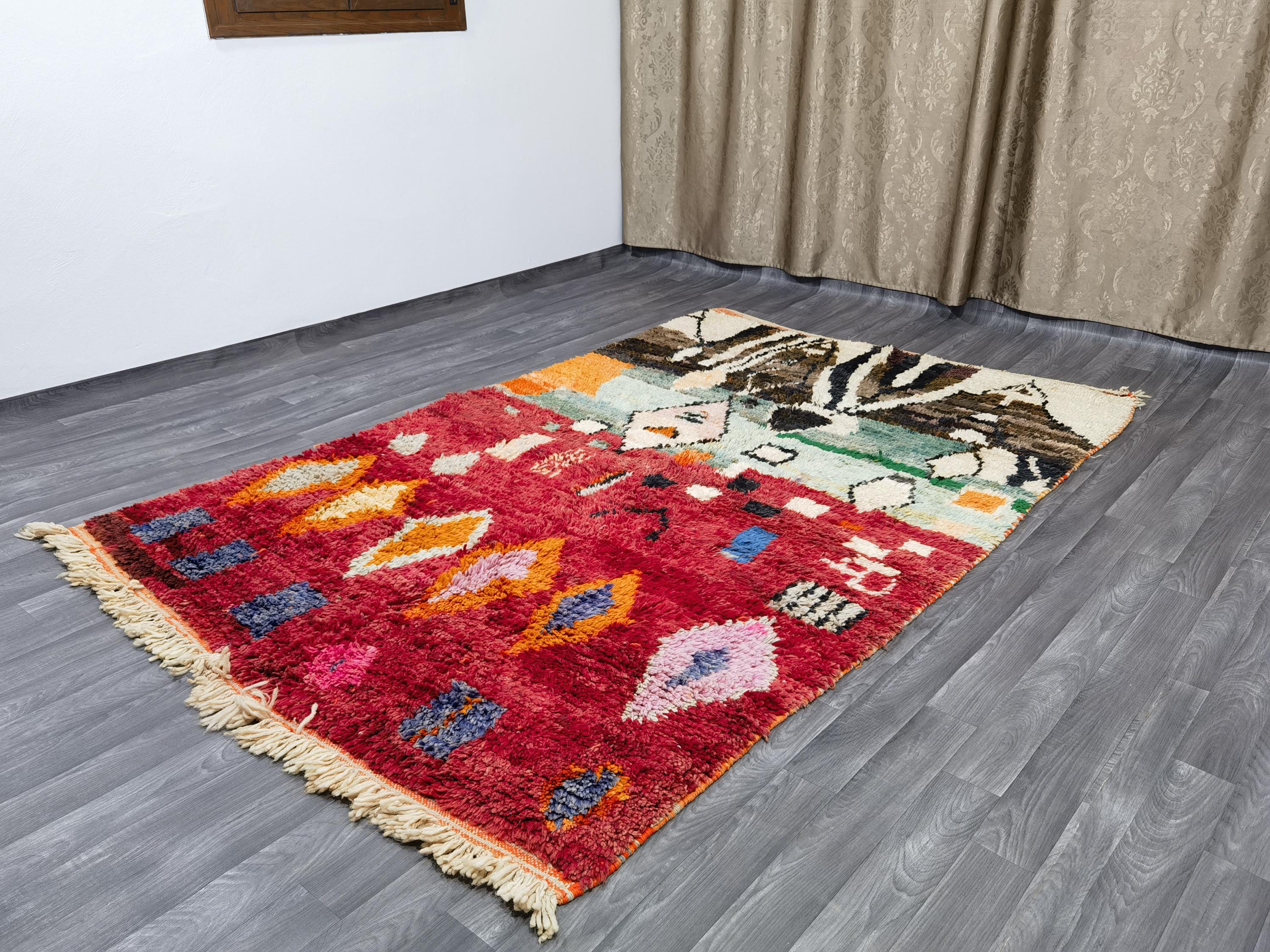 Gorgeous Multicolored Rug - Red Wool Rug - Fabulous Boujaad Rug - Moroccan Berber Rug - Handmade Rug - Traditional Moroccan Carpet