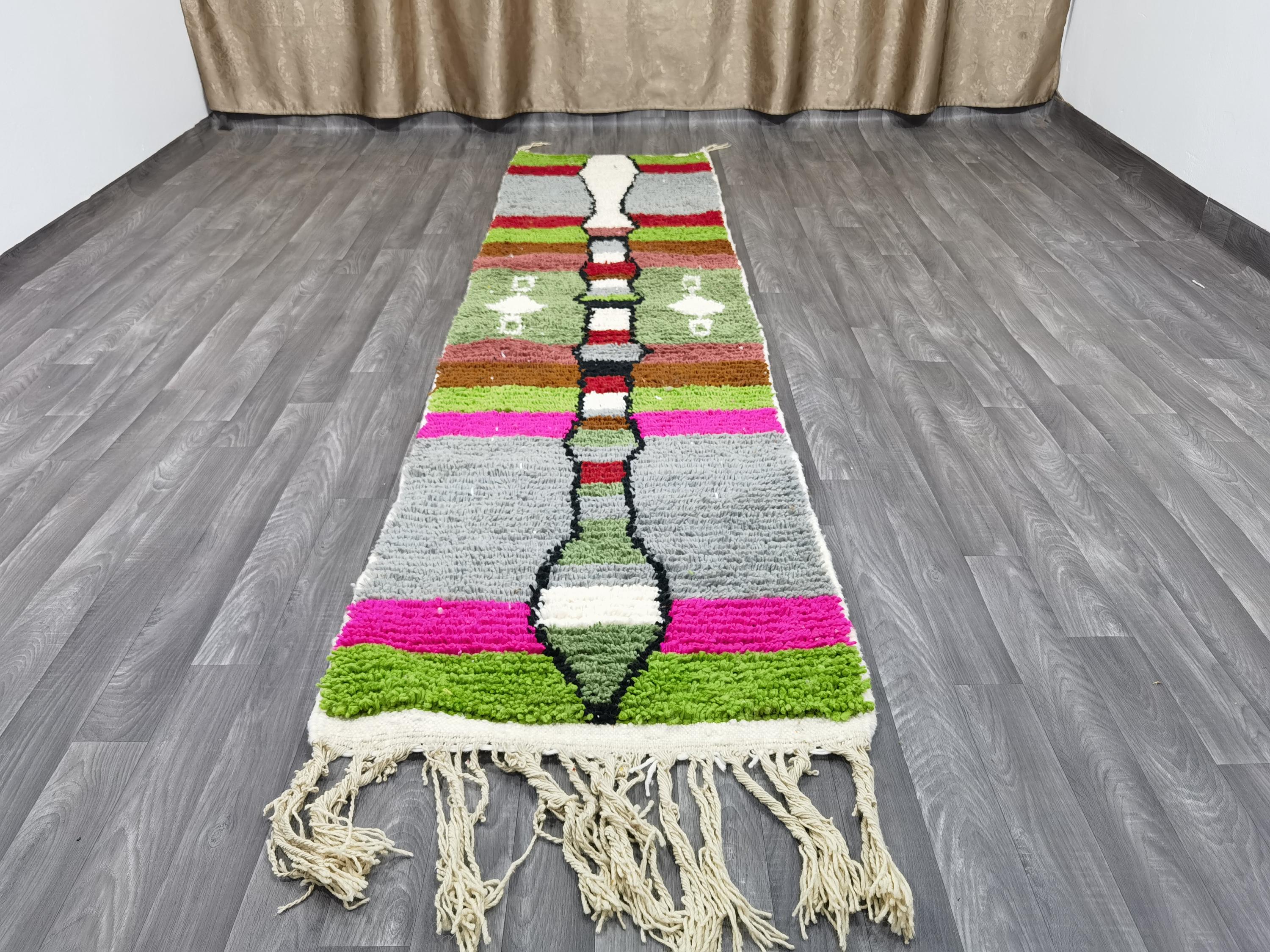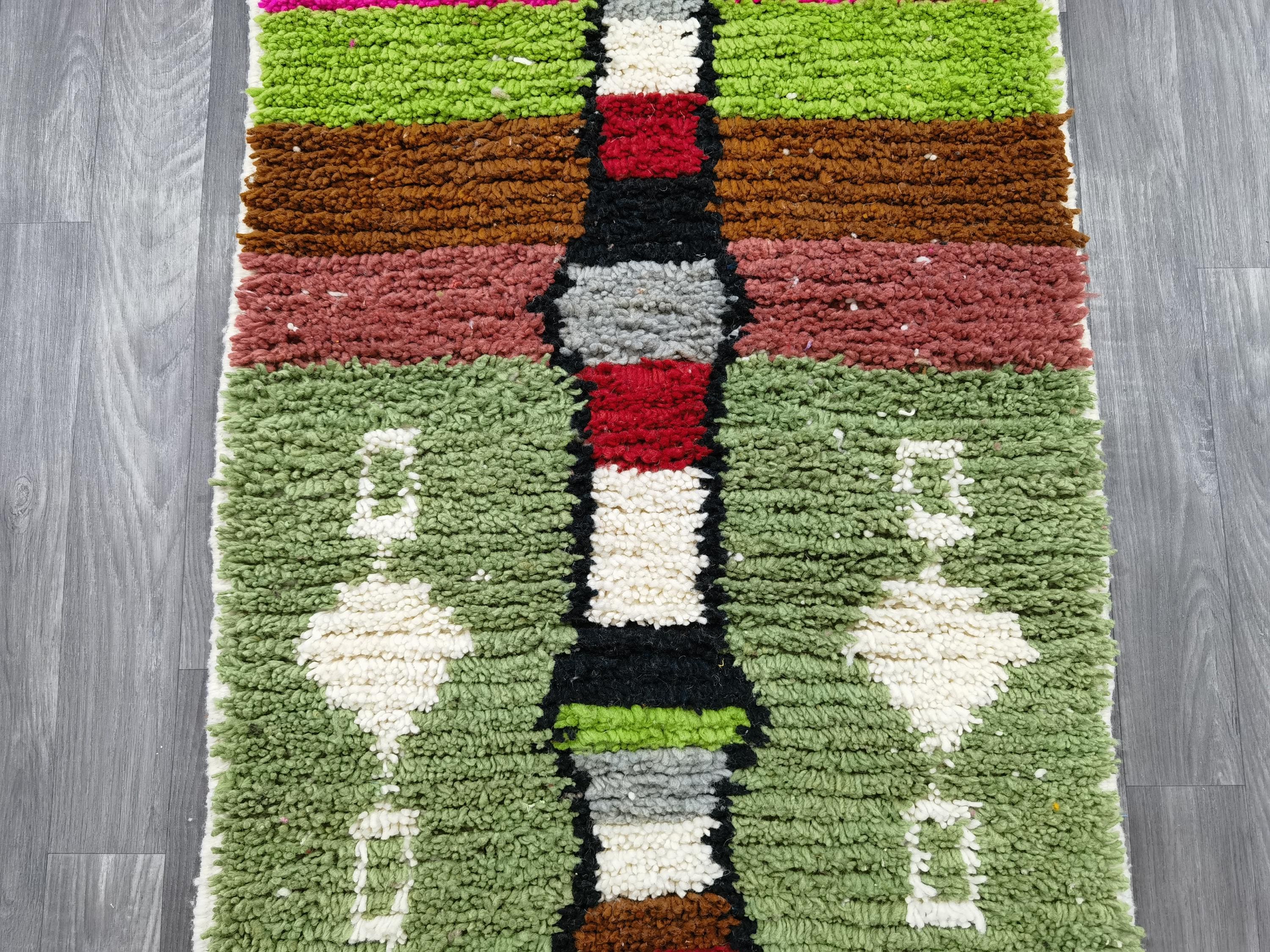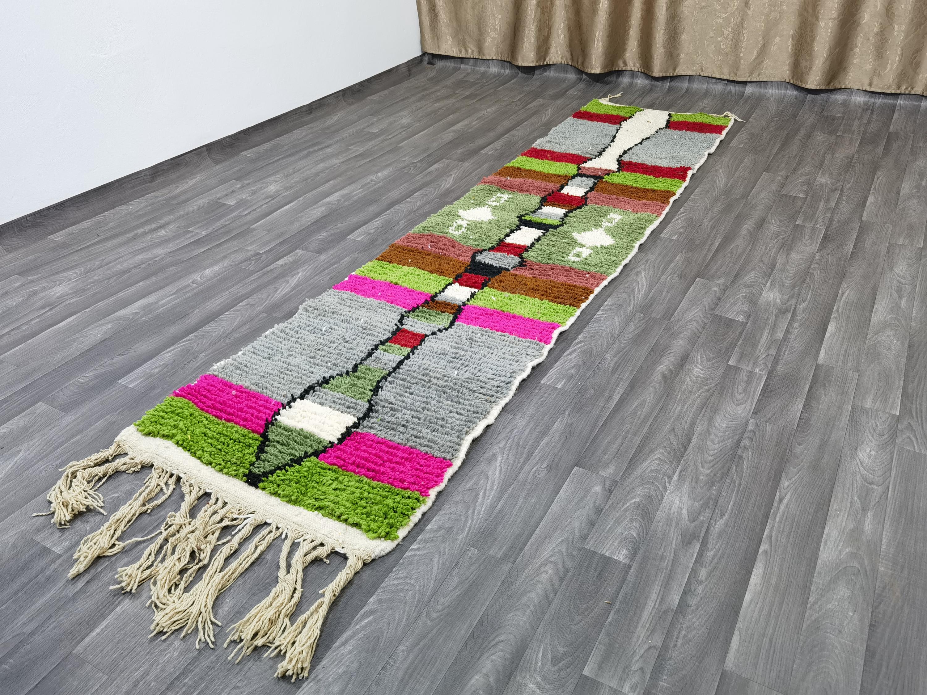 Moroccan handmade rug - luxurious moroccan runner rug - authentic moroccan green rug - berber runner carpet - abstract green rug