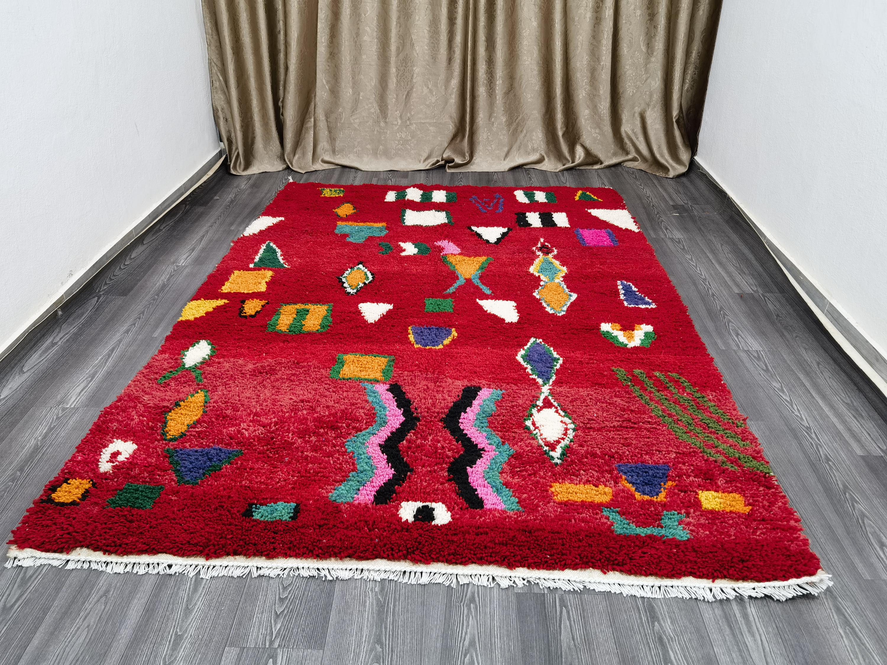 Gorgeous Beni Ourain Rug - Red Vintage Rug 8x10, Moroccan Rug 8x10, Gift Heriz Red Rugs 8x10, Gift Oriental Area, Handmade Wool Rug