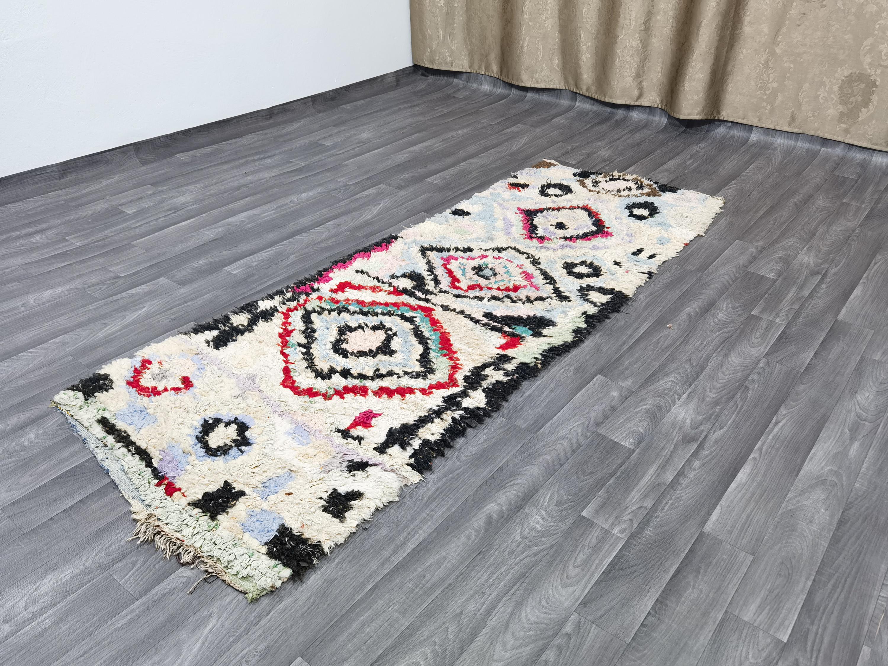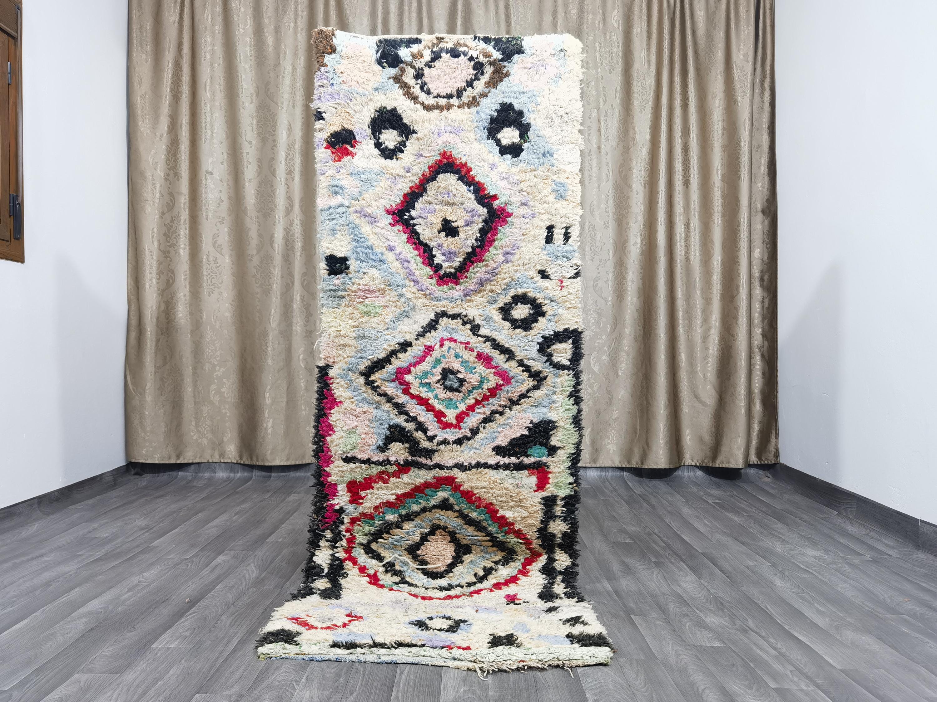 Boujaad is a vibrant and colorful wool runner that will add life to any room in your home. Made from 100% wool, this rug is perfect for use in the living room, bedroom, or anywhere you want to add some beautiful Moroccan flair. The soft and fluffy texture makes it comfortable to walk on, and the vivid colors will brighten up any space. Whether you're looking for a traditional shag rug or something a little more bohemian, Boujaad is sure to be a hit with your guests.