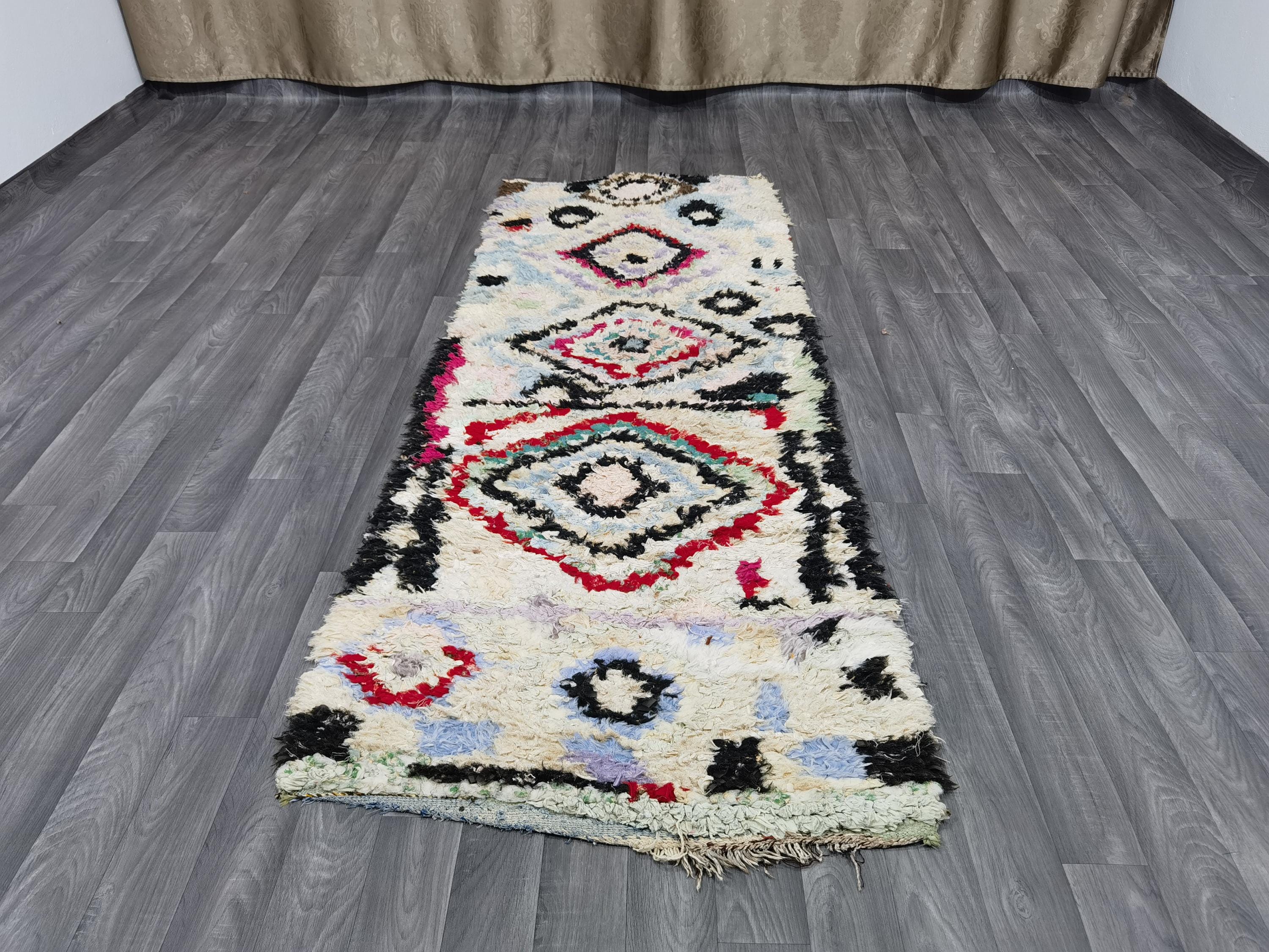 White Moroccan Runner Rug, Moroccan Handmade Runner Rug,Authentic Moroccan Rug, Traditional Rug, Boho Rug, Boucherouite 2.6x7.5 Ft 80x227 cm