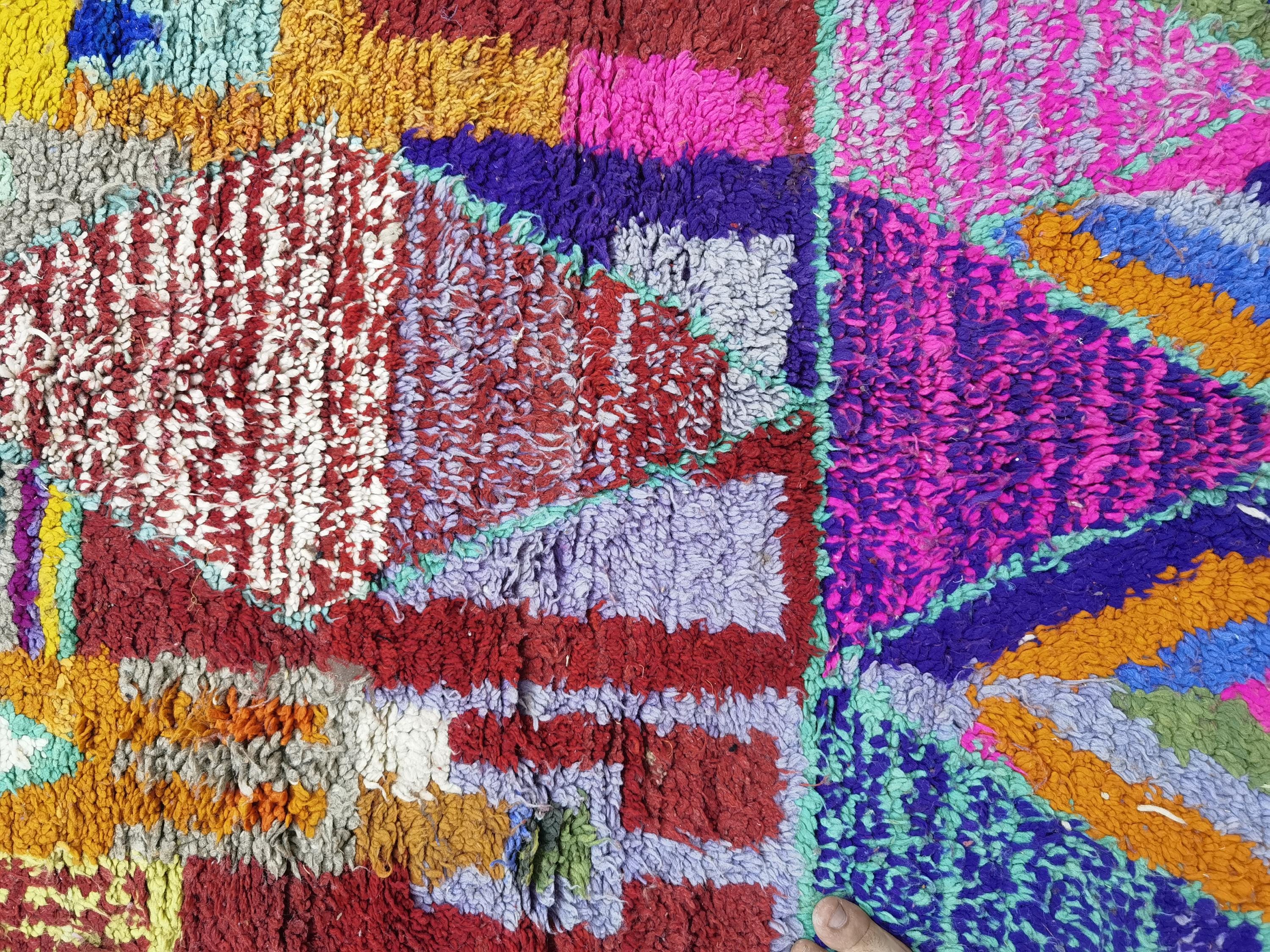 Custom Boujaad Moroccan Rug: Multicolored Wool Shaggy Area Rug