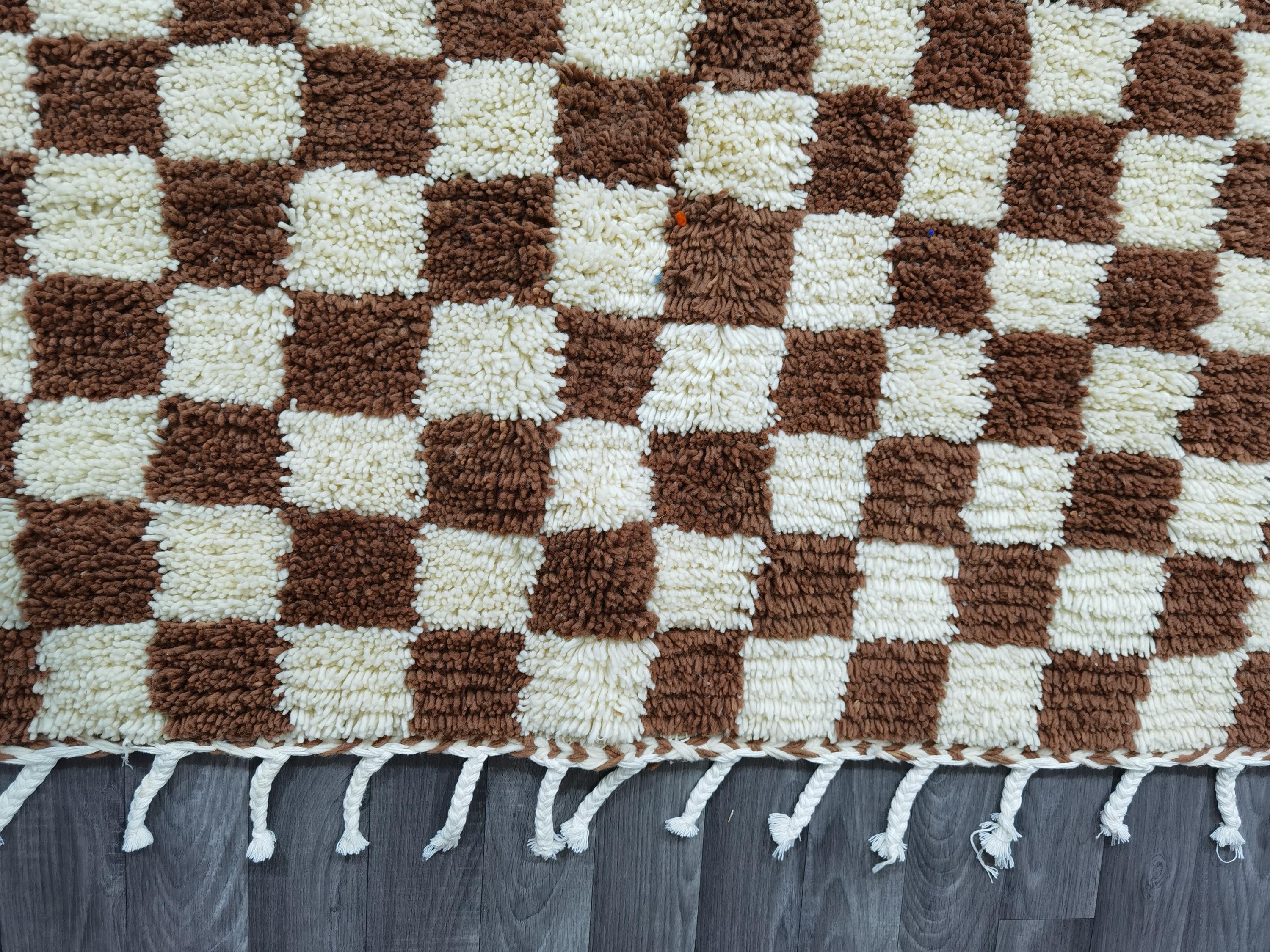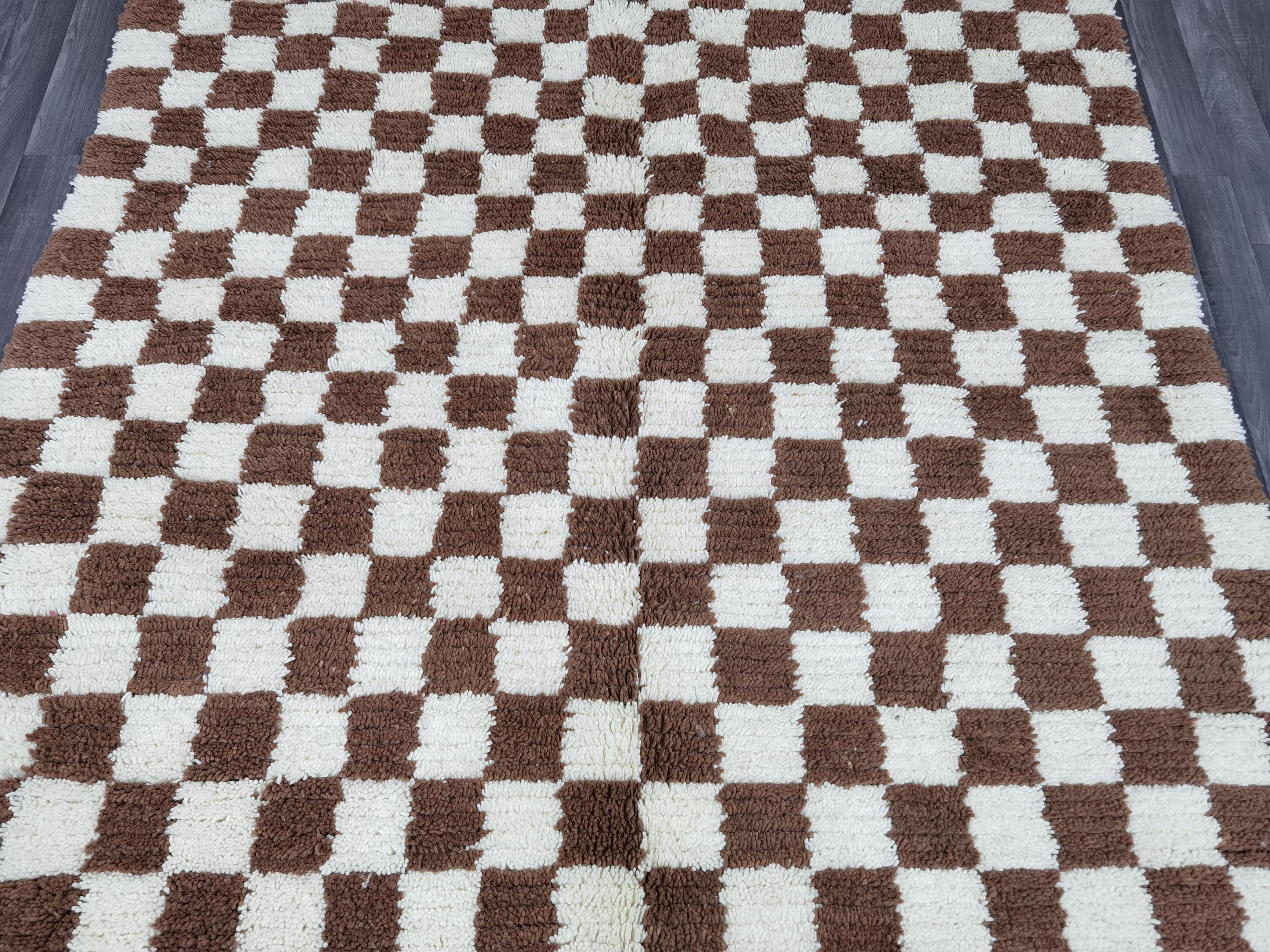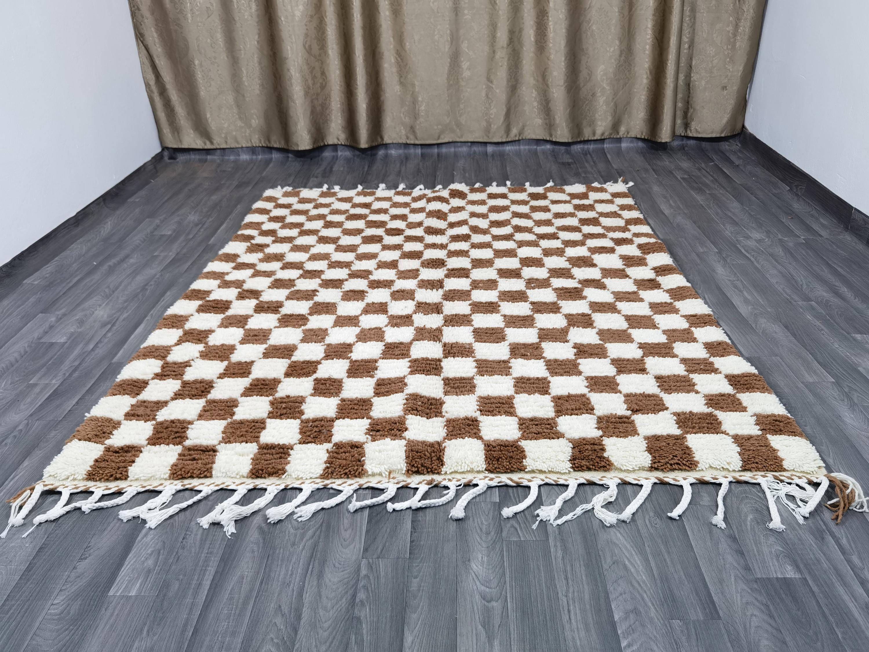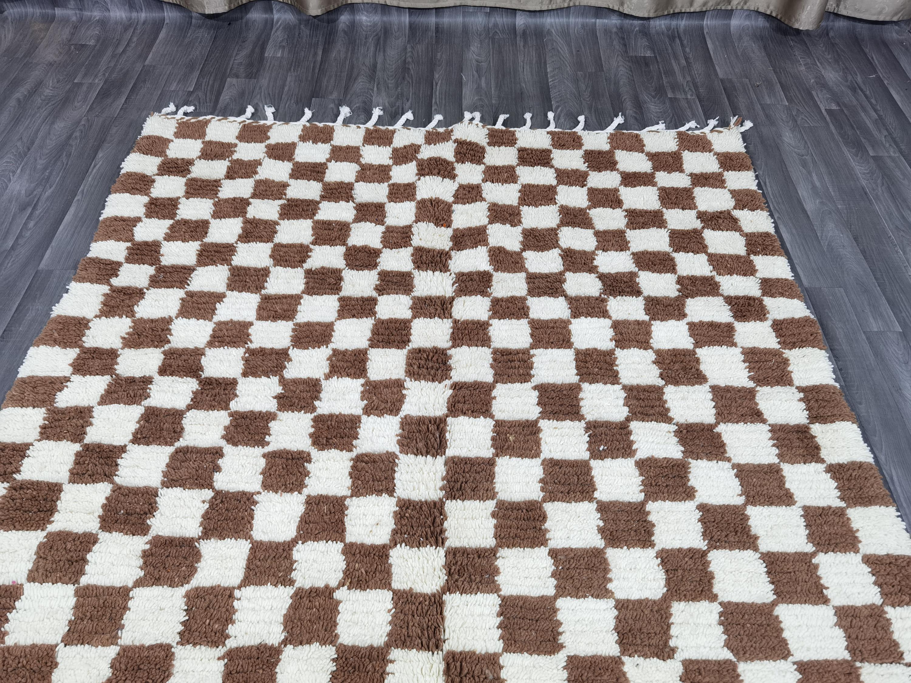 Amazing Moroccan Brown Rug - Brown And White Rug- - Wool Rug Brown - Moroccan Checkered rug - Unique Geometric Rug - Azilal Boujaad rug 8x10