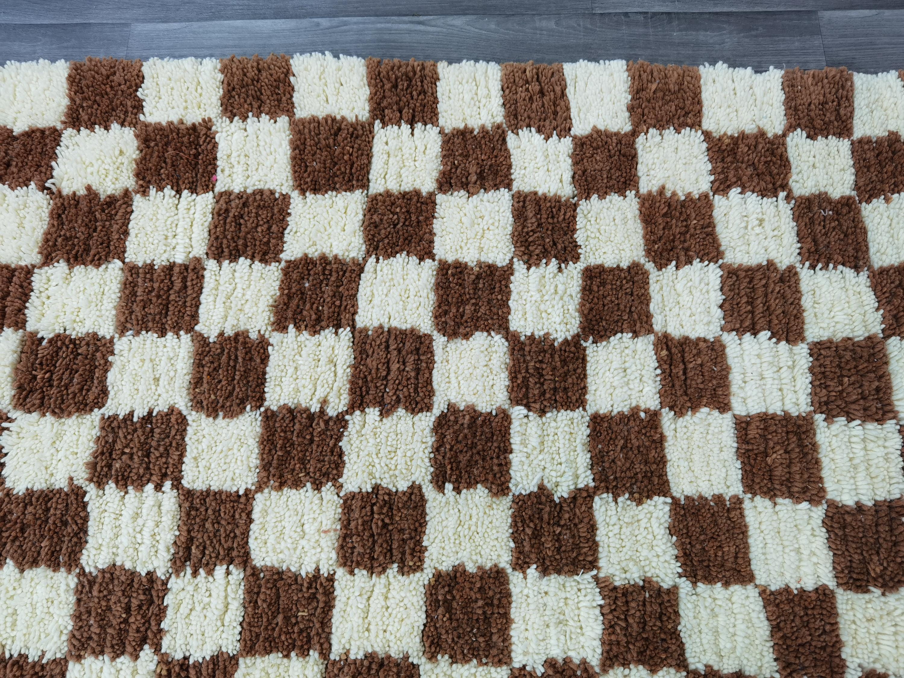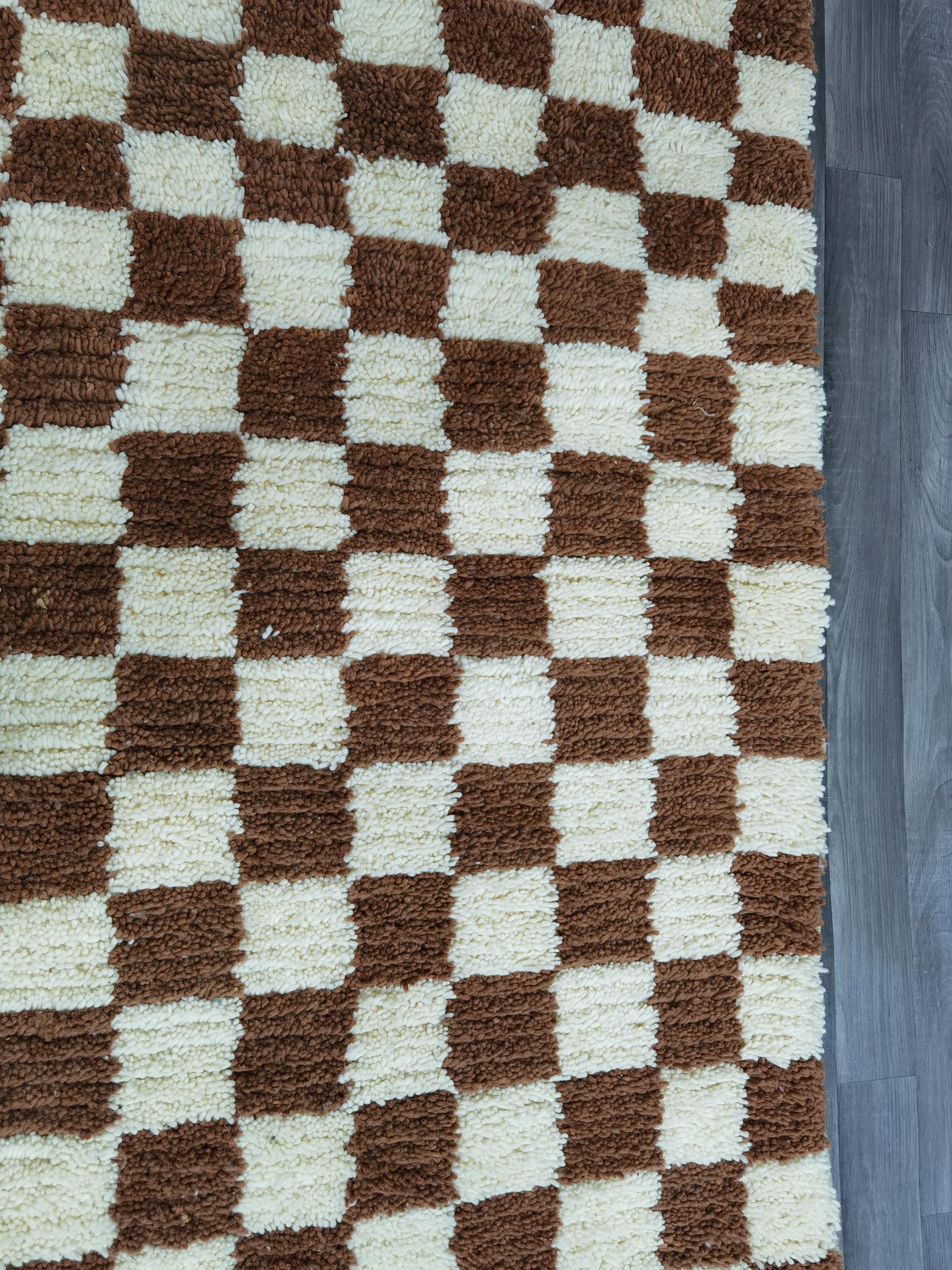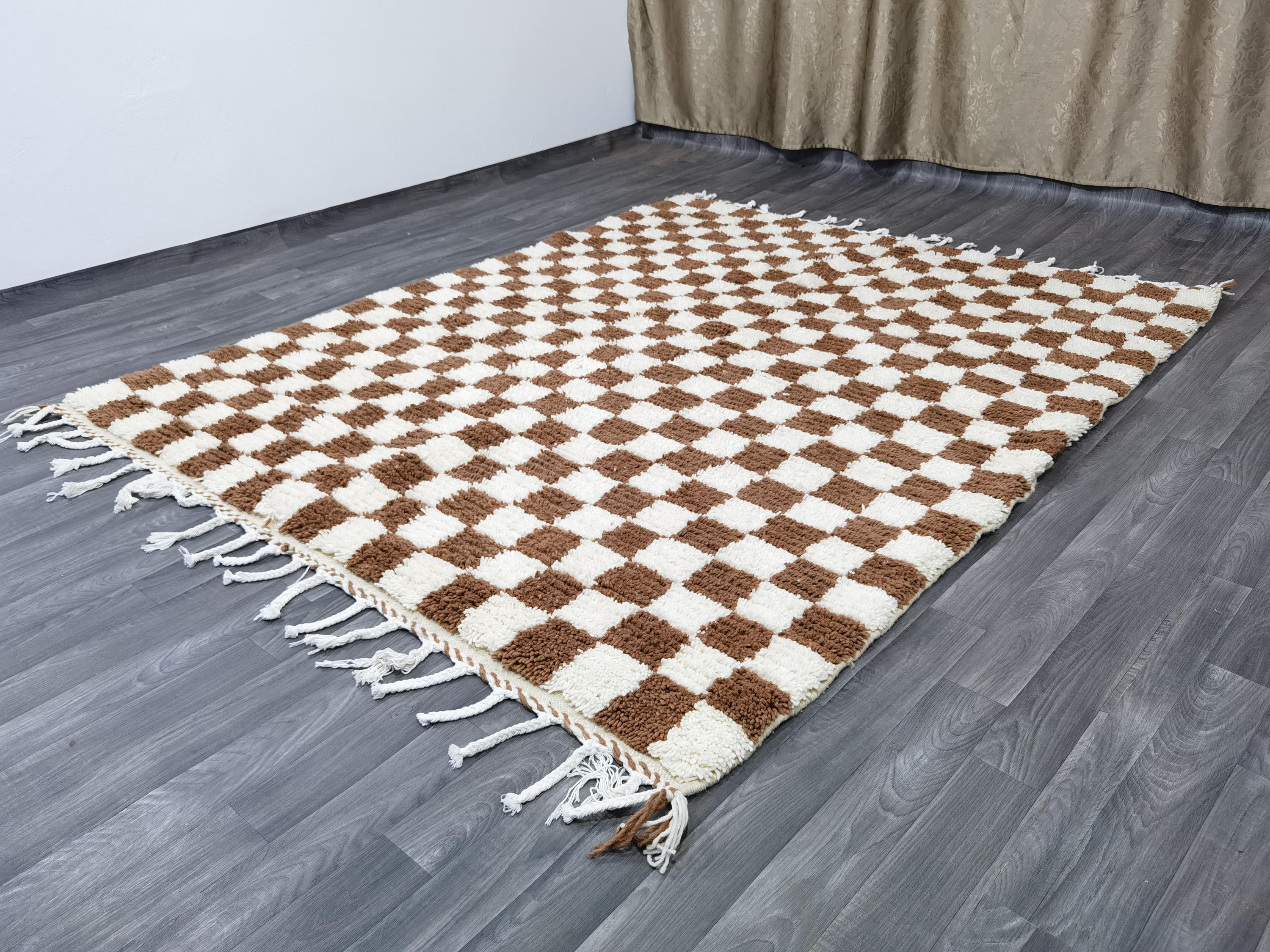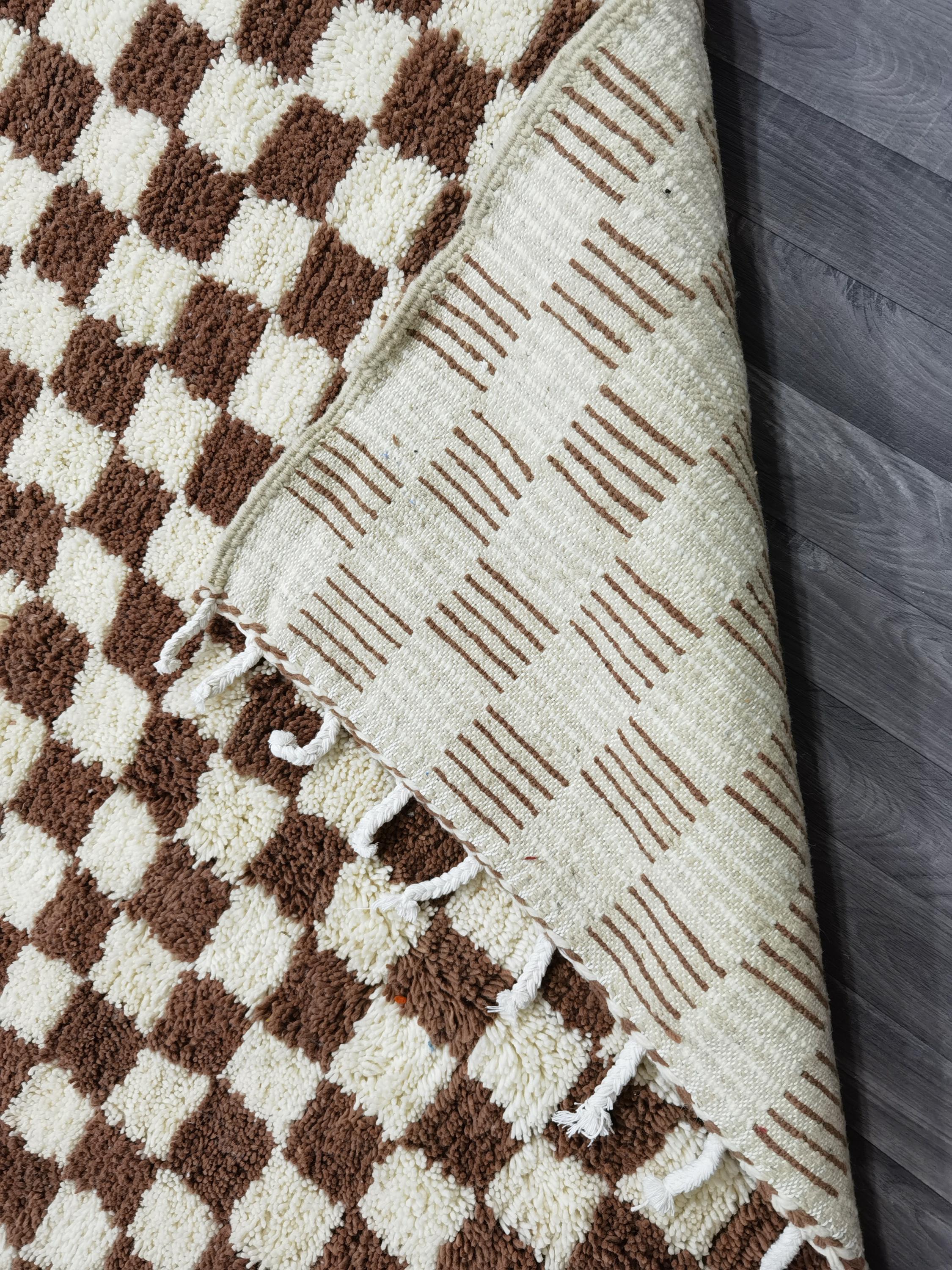 Amazing Moroccan Brown Rug - Brown And White Rug- - Wool Rug Brown - Moroccan Checkered rug - Unique Geometric Rug - Azilal Boujaad rug 8x10