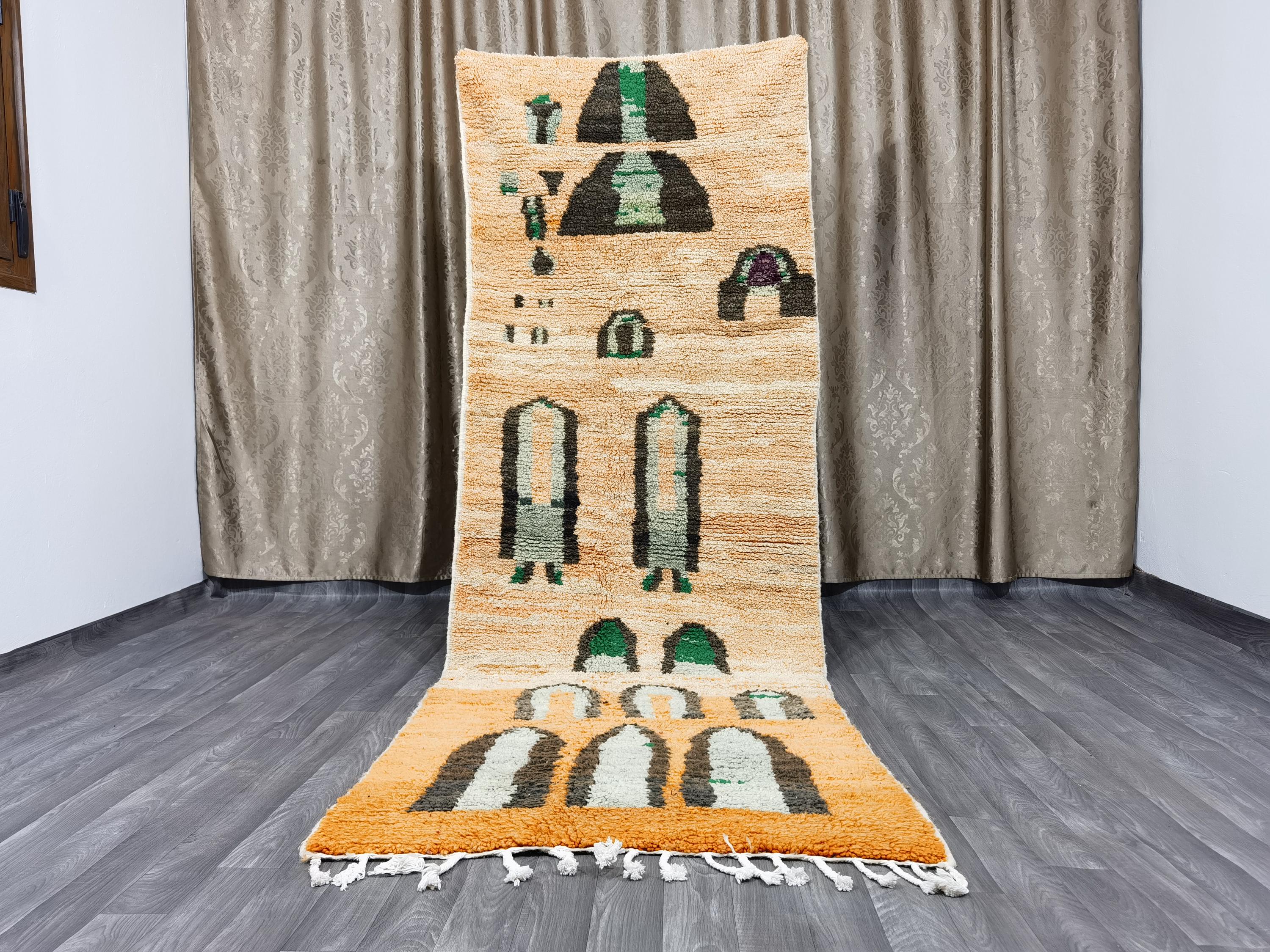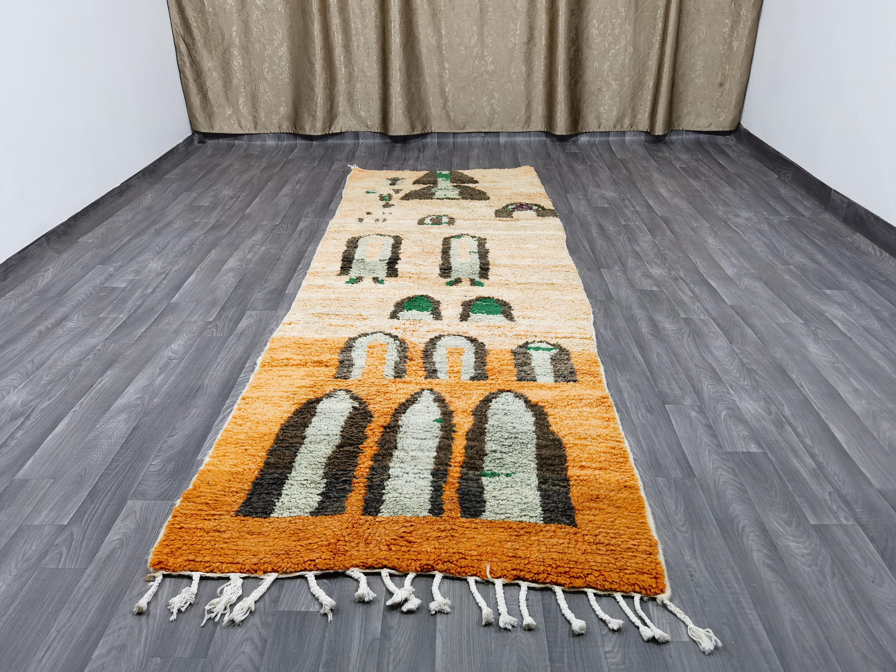 Amazing Moroccan Runner Rug , berber runner carpet, boujaad runner rug, Amazing Moroccan Orange Rug, Cozy Chic Rug, Wool Shaggy Carpet