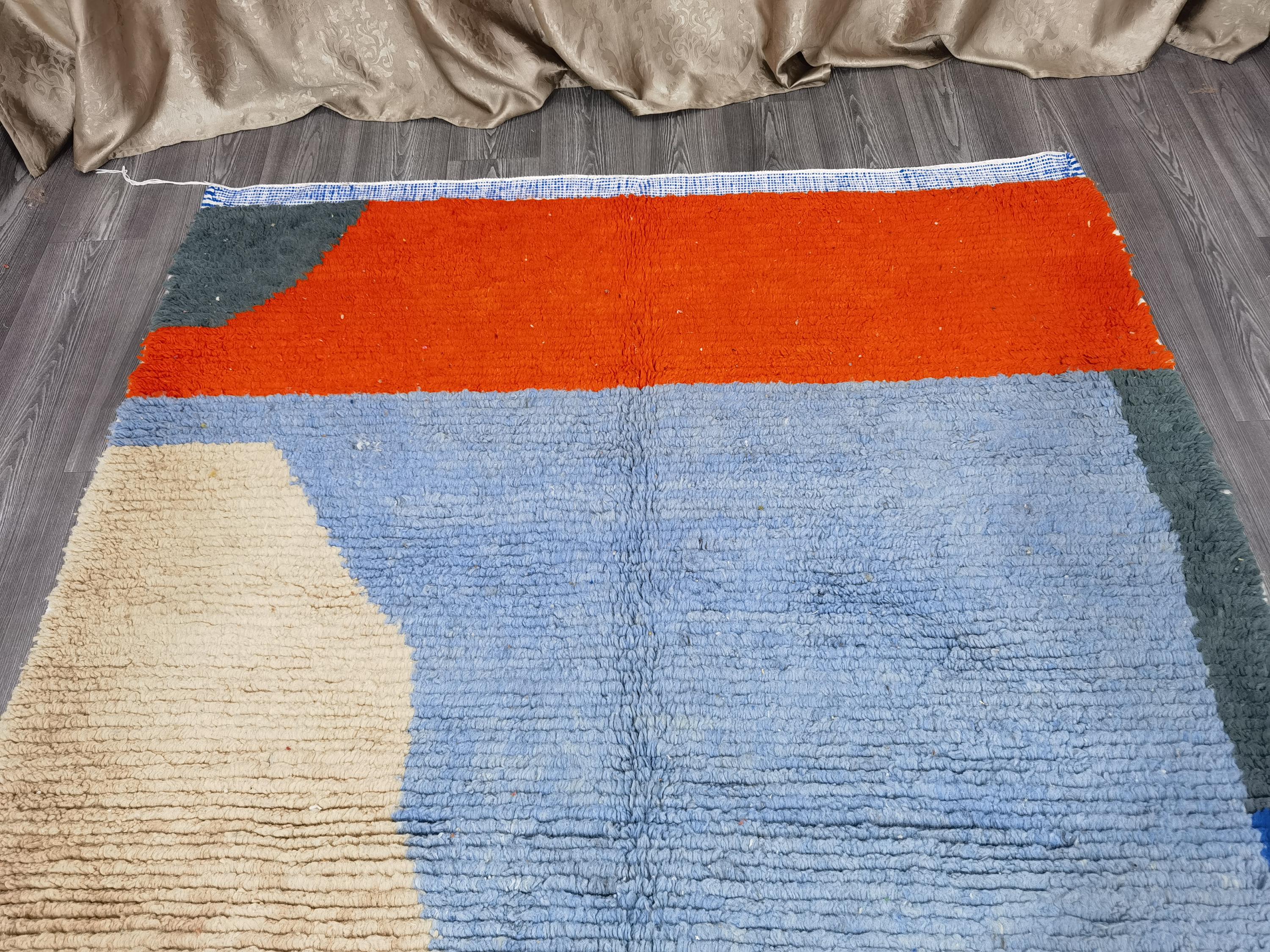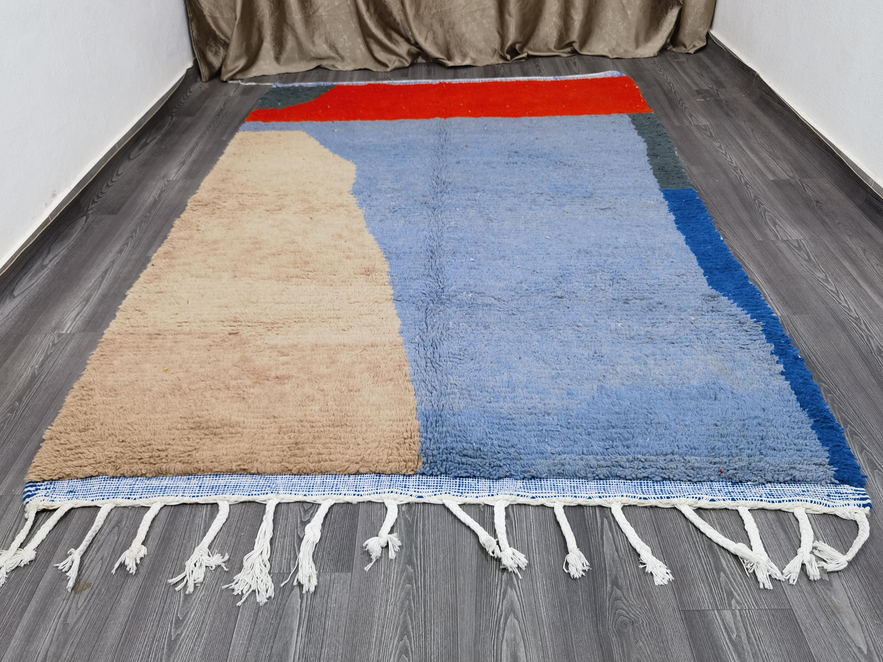 Beni ourain rug -Handmade rug - Moroccan rug- Berber carpet - Blue Beni ourain style - Custom Rug- large area rug 9x12- authentic orange rug