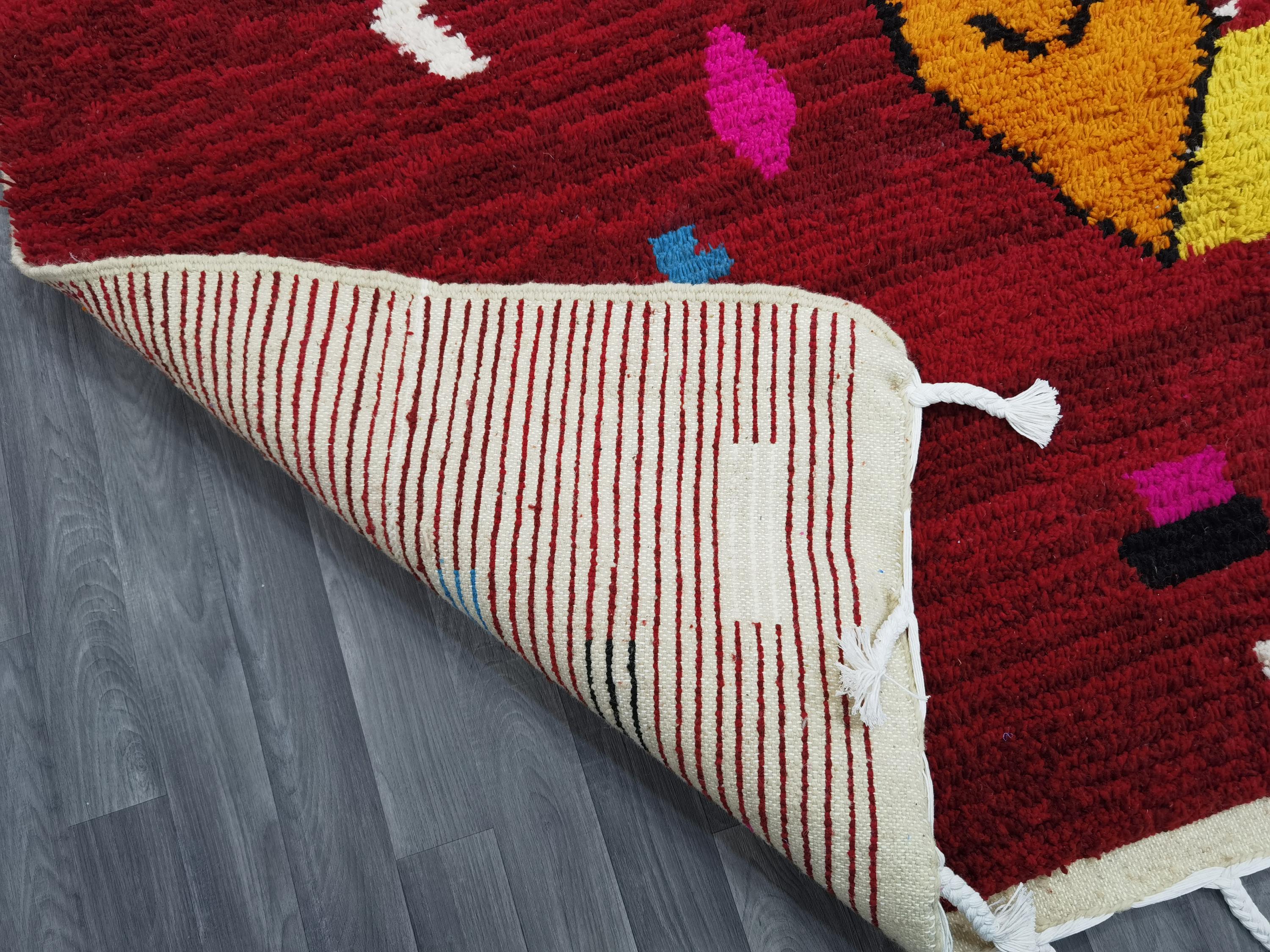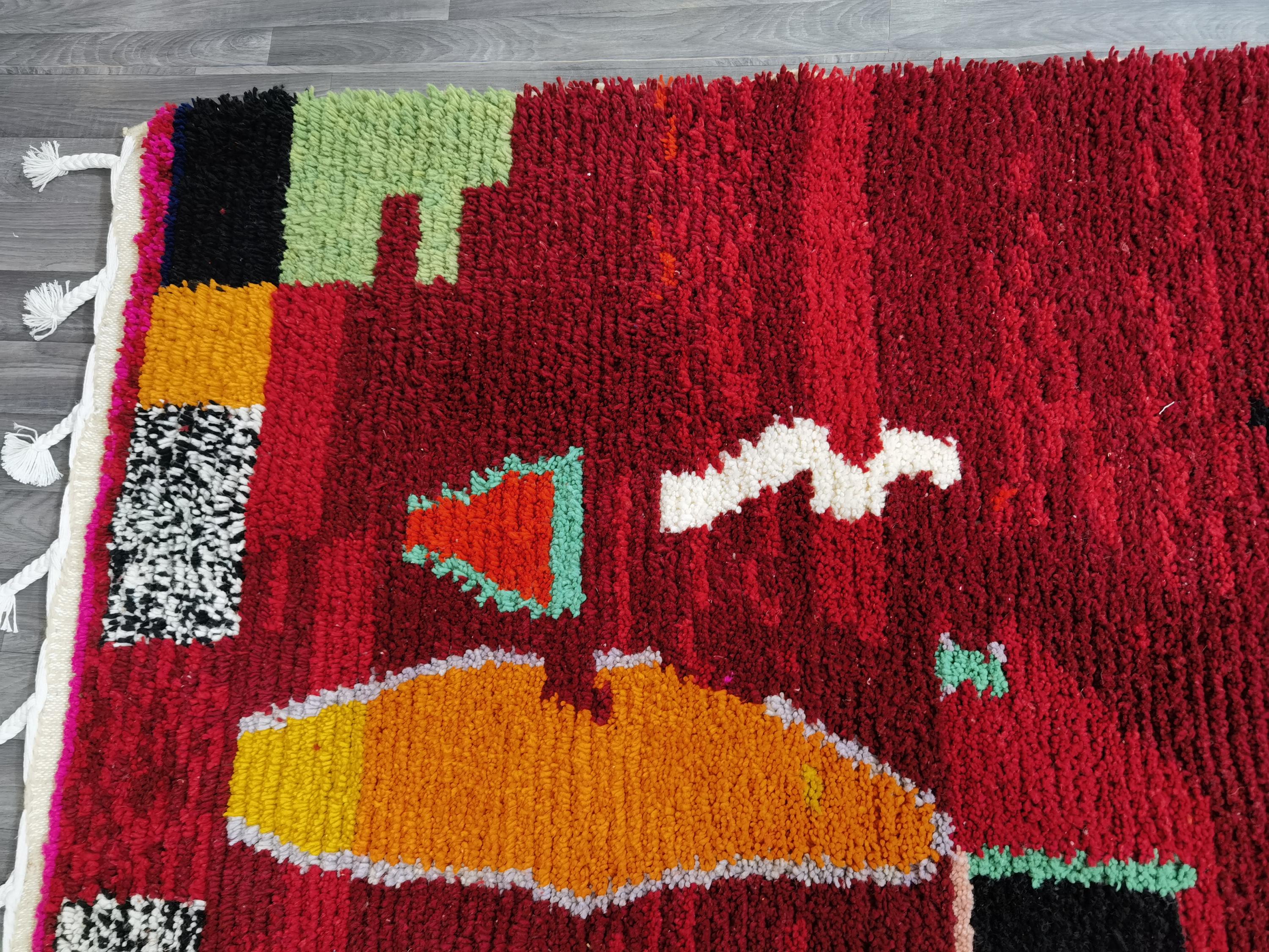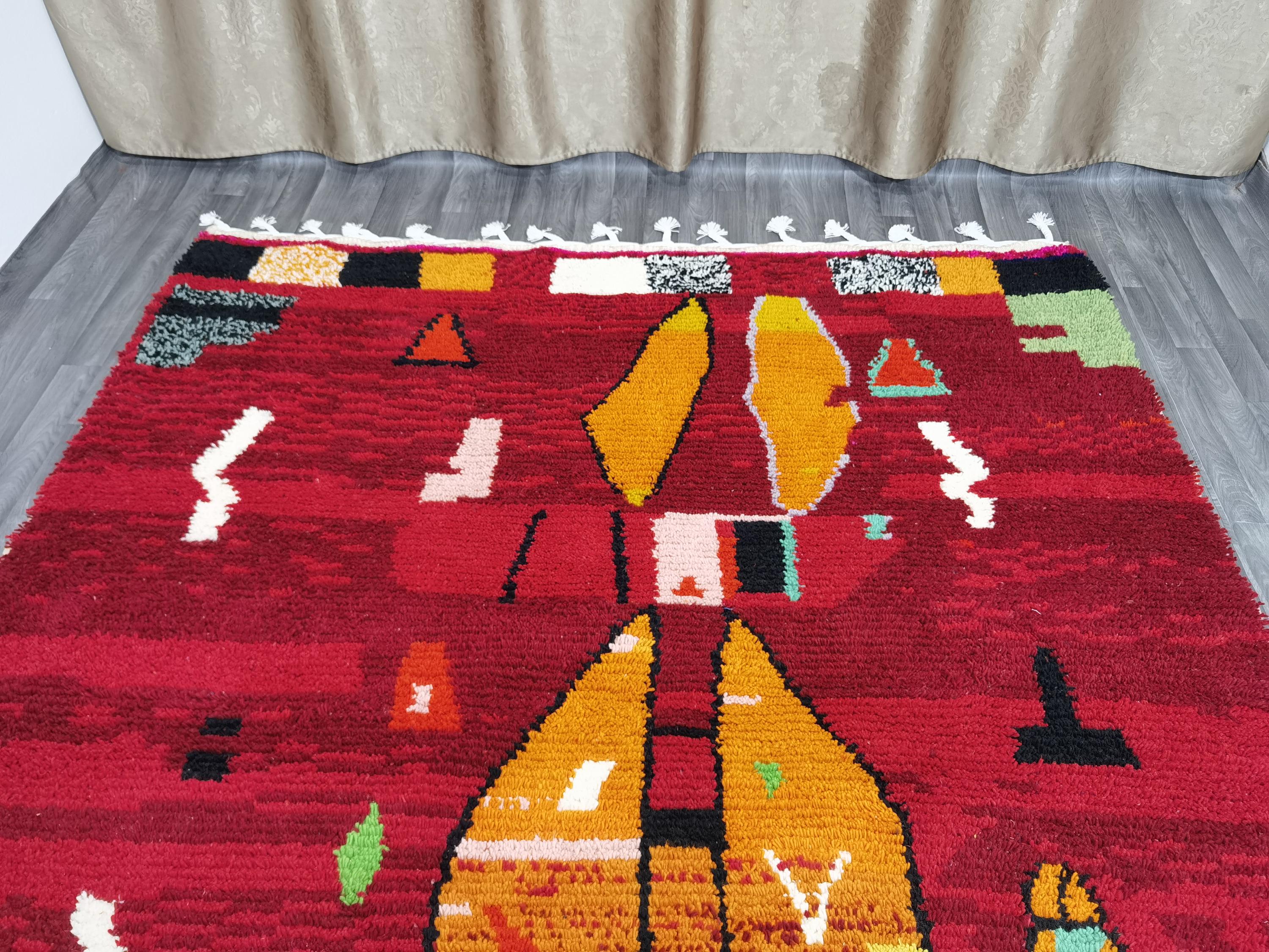 Red Moroccan Rug: Handwoven Boujad Wool, Abstract Bohemian Carpet