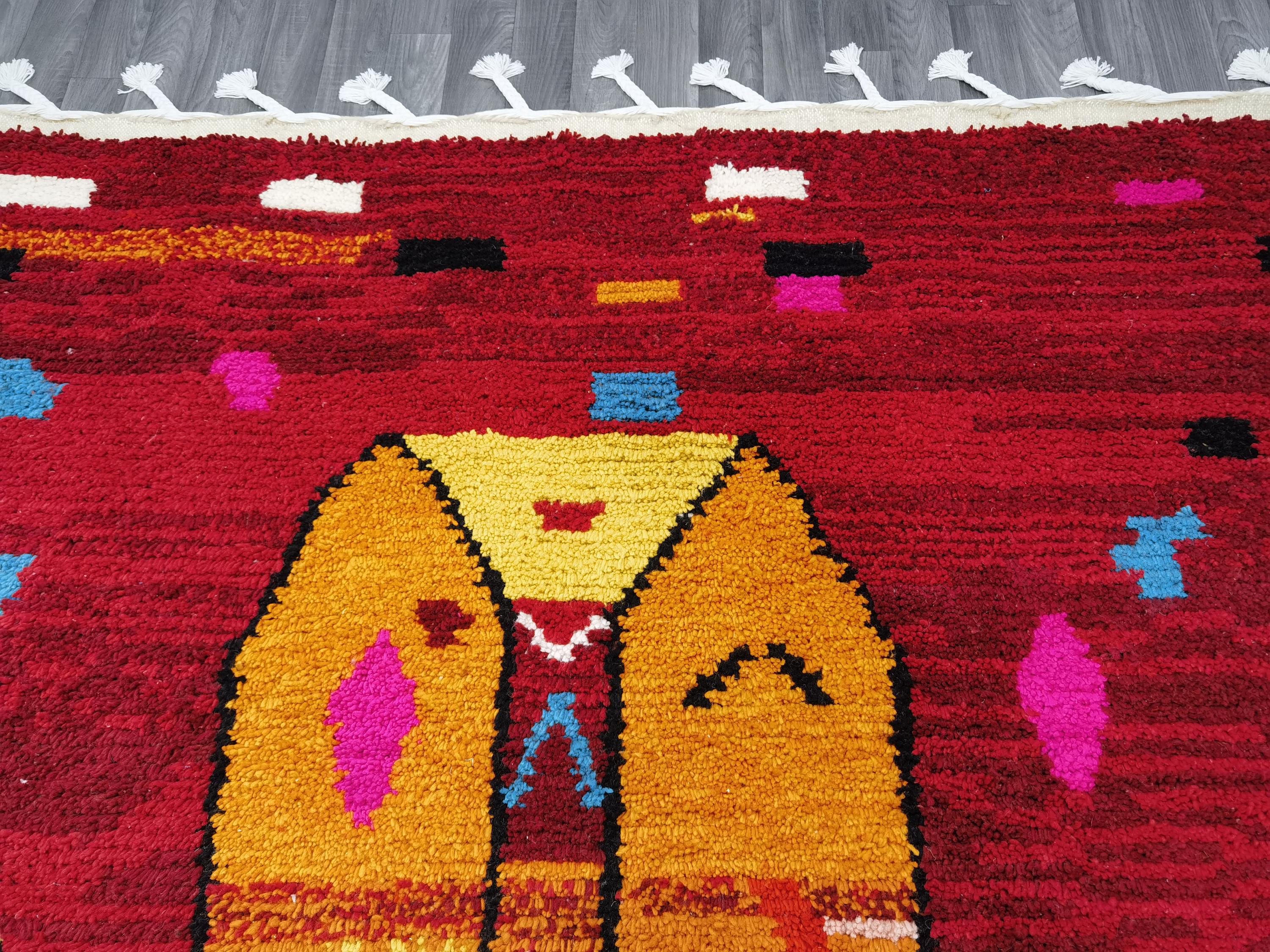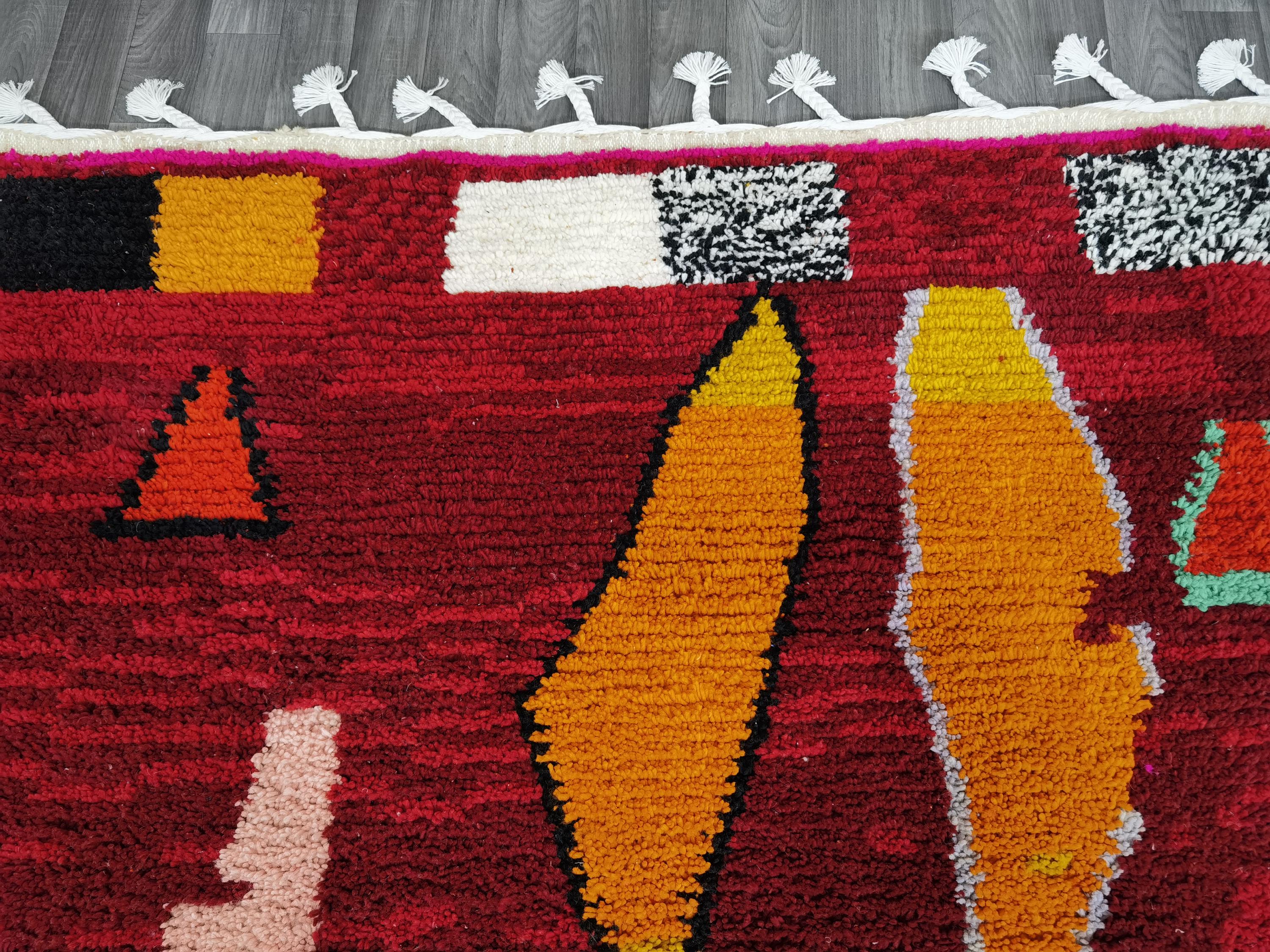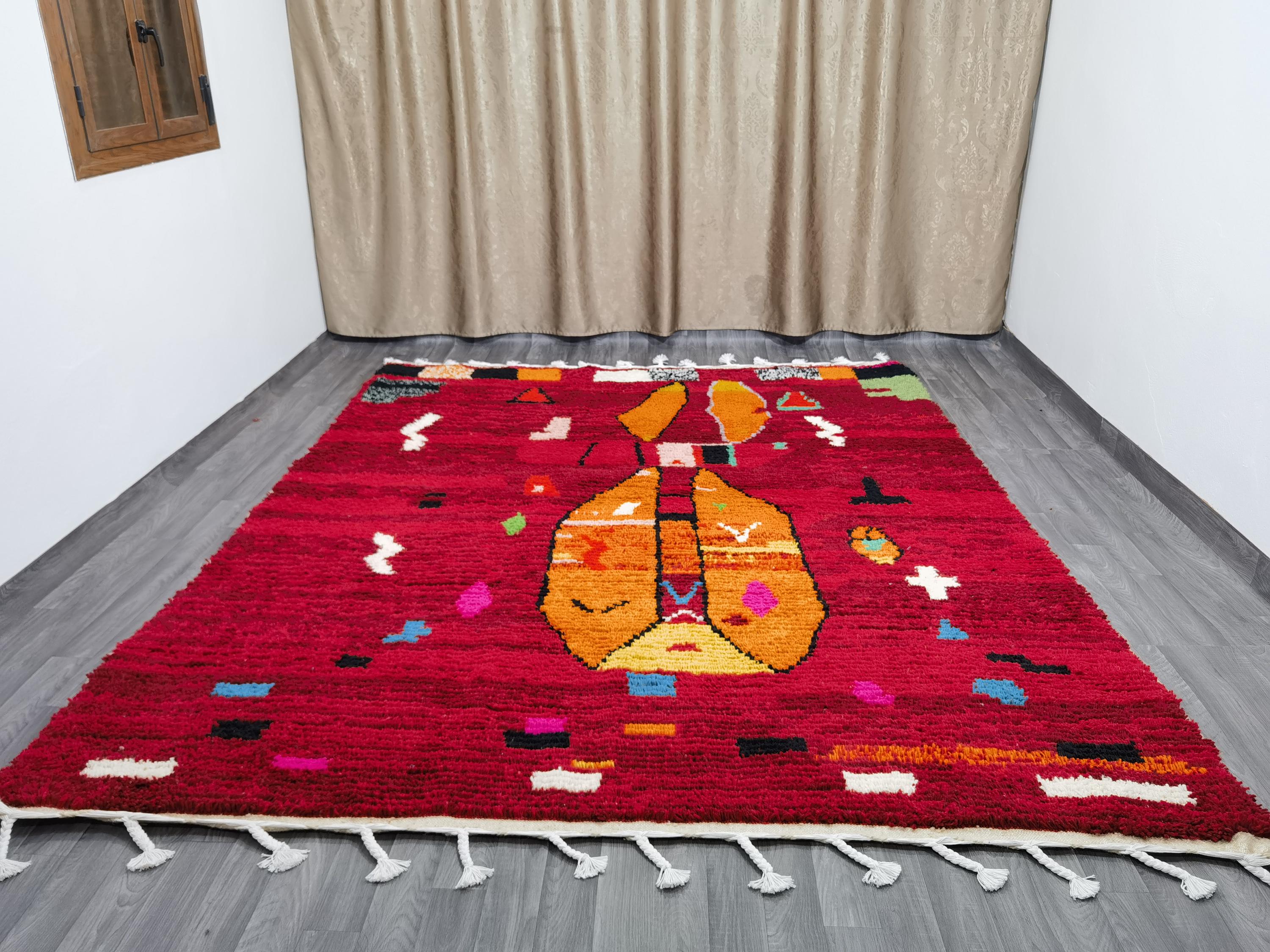 Red Moroccan Rug: Handwoven Boujad Wool, Abstract Bohemian Carpet