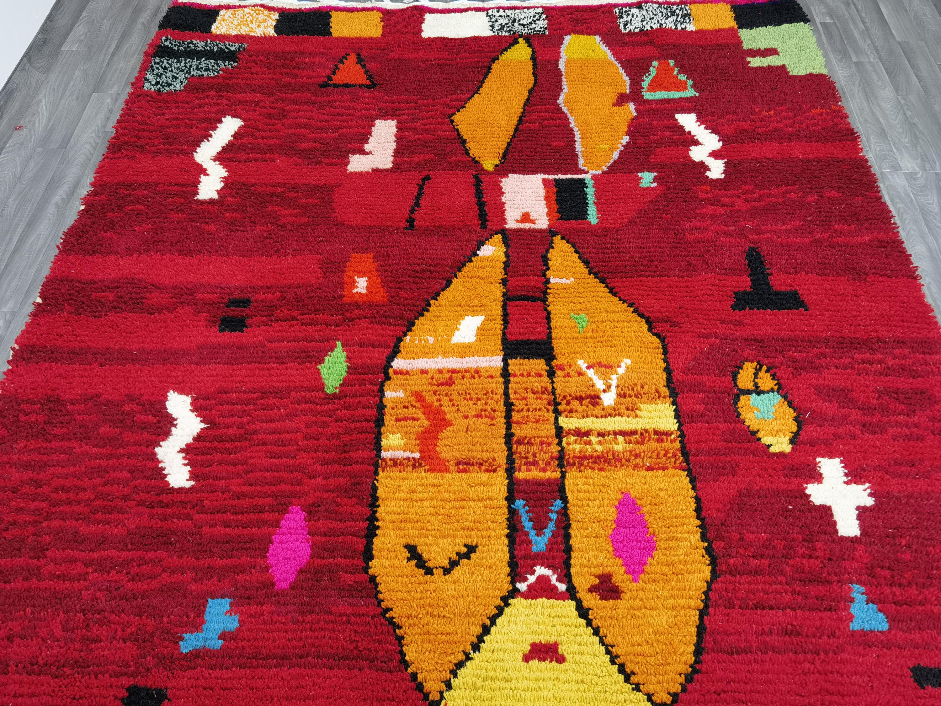 This unique Handwoven Moroccan Boujaad wool rug is one of a kind. A unique rare artistic handmade art, a beautiful combination of colors. which makes it the best choice whether for your house or your showroom. The famous Boujaad rug is now on the cover of the world’s leading home decoration magazines. This rug with character goes perfectly with all interior styles, Bohemian, Modern, Minimalist, Scandinavian, Traditional, which makes it the best choice for your needs.