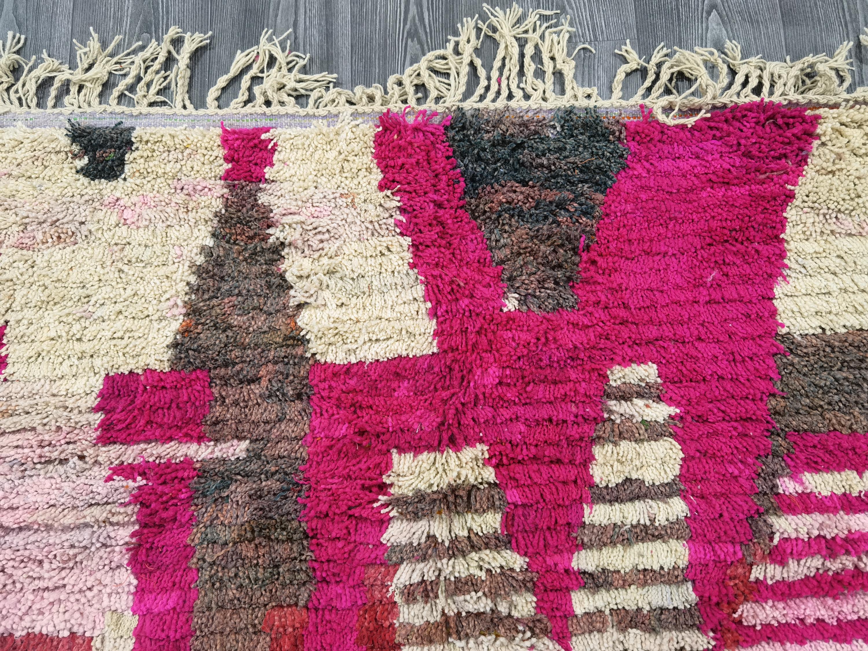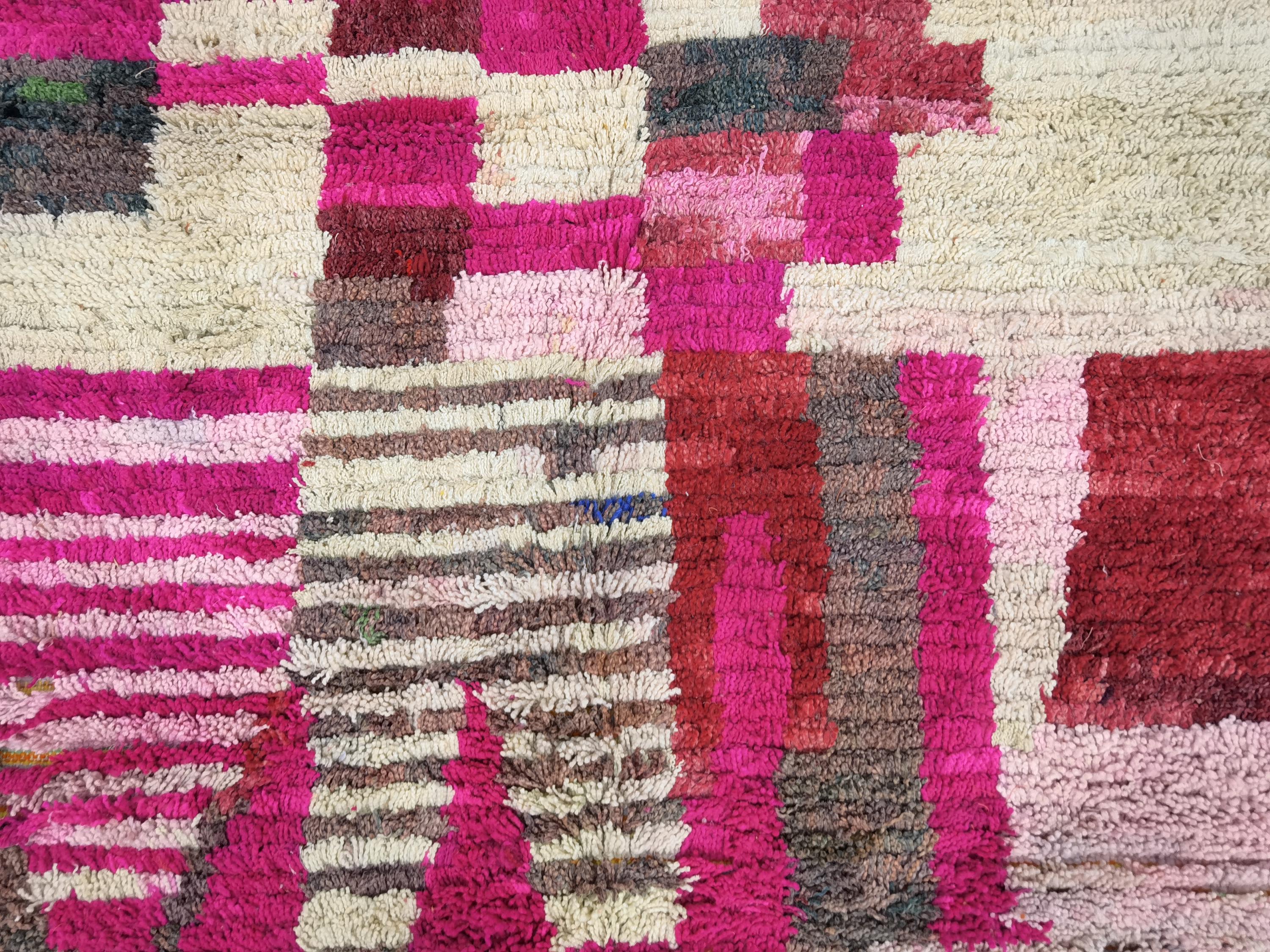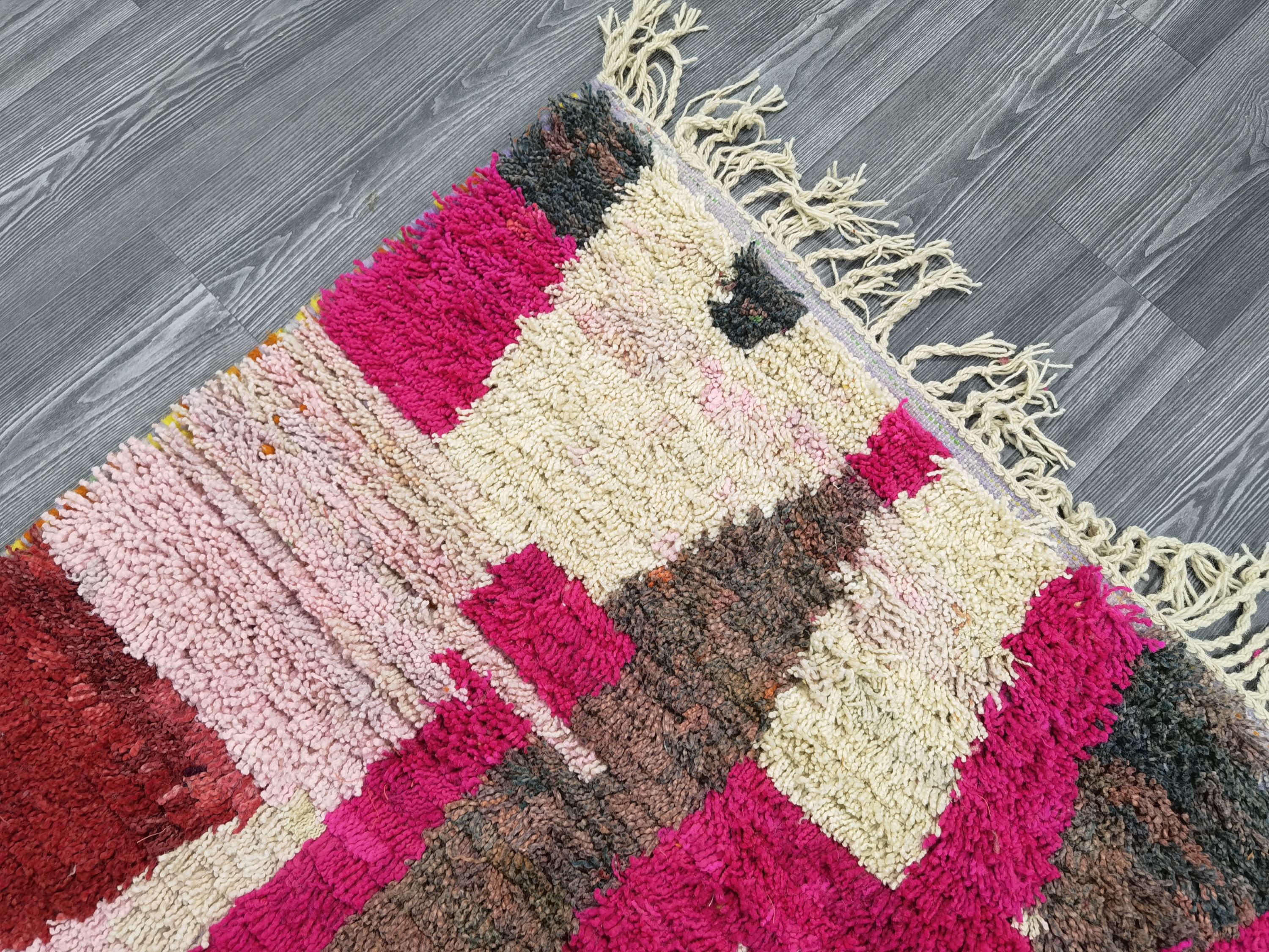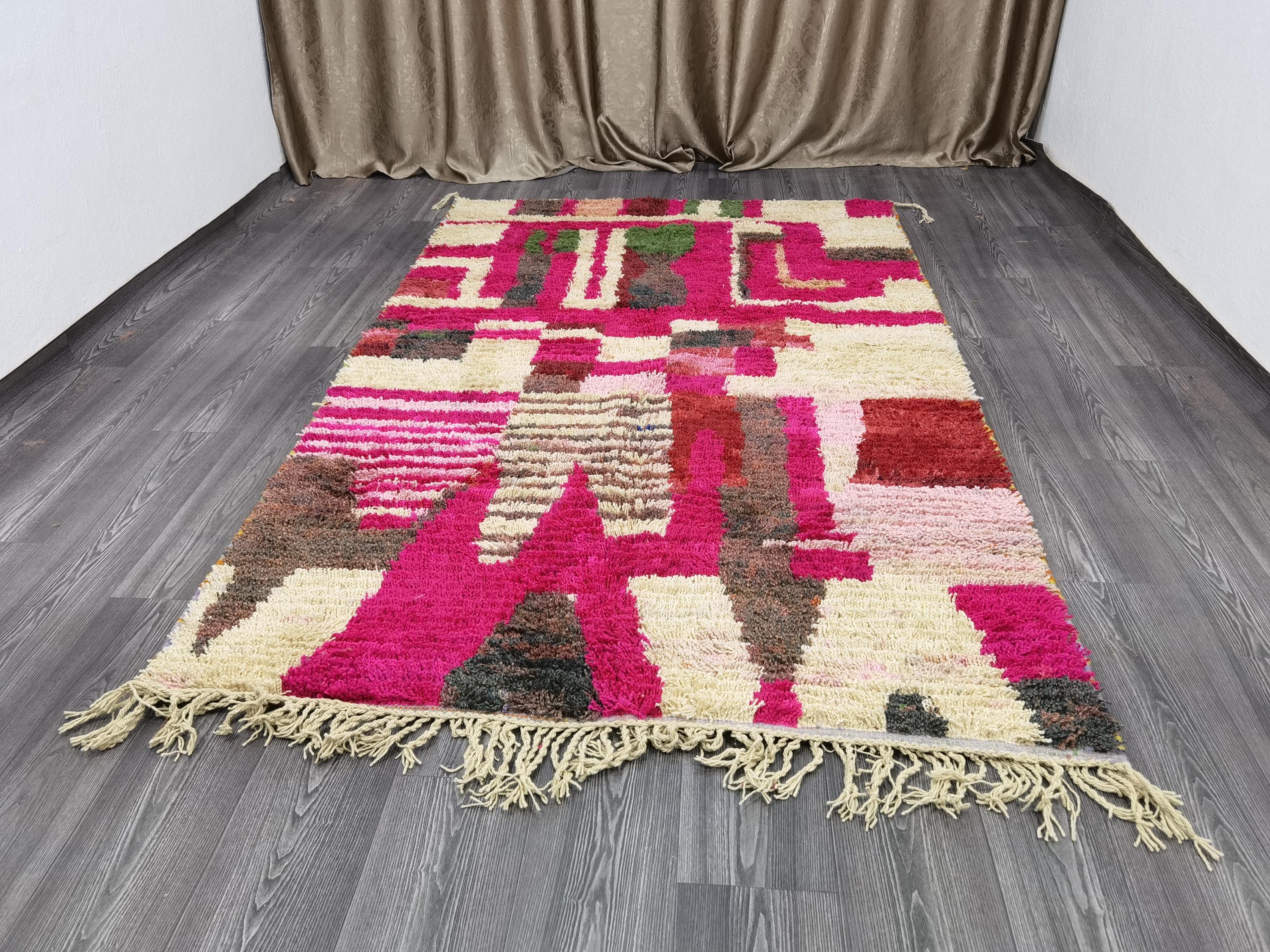 Handmade Pink Moroccan Rug: Bohemian Wool Carpet