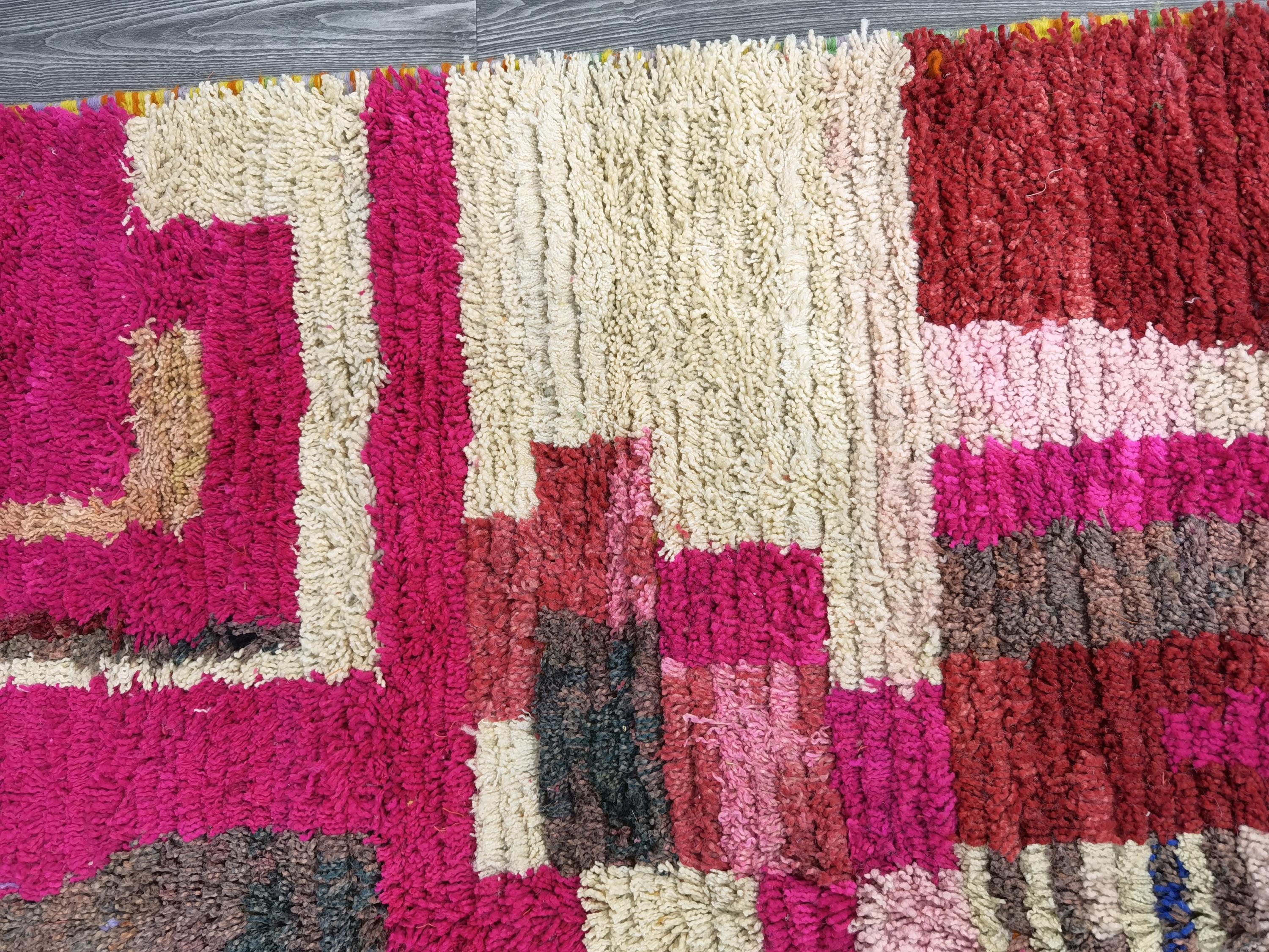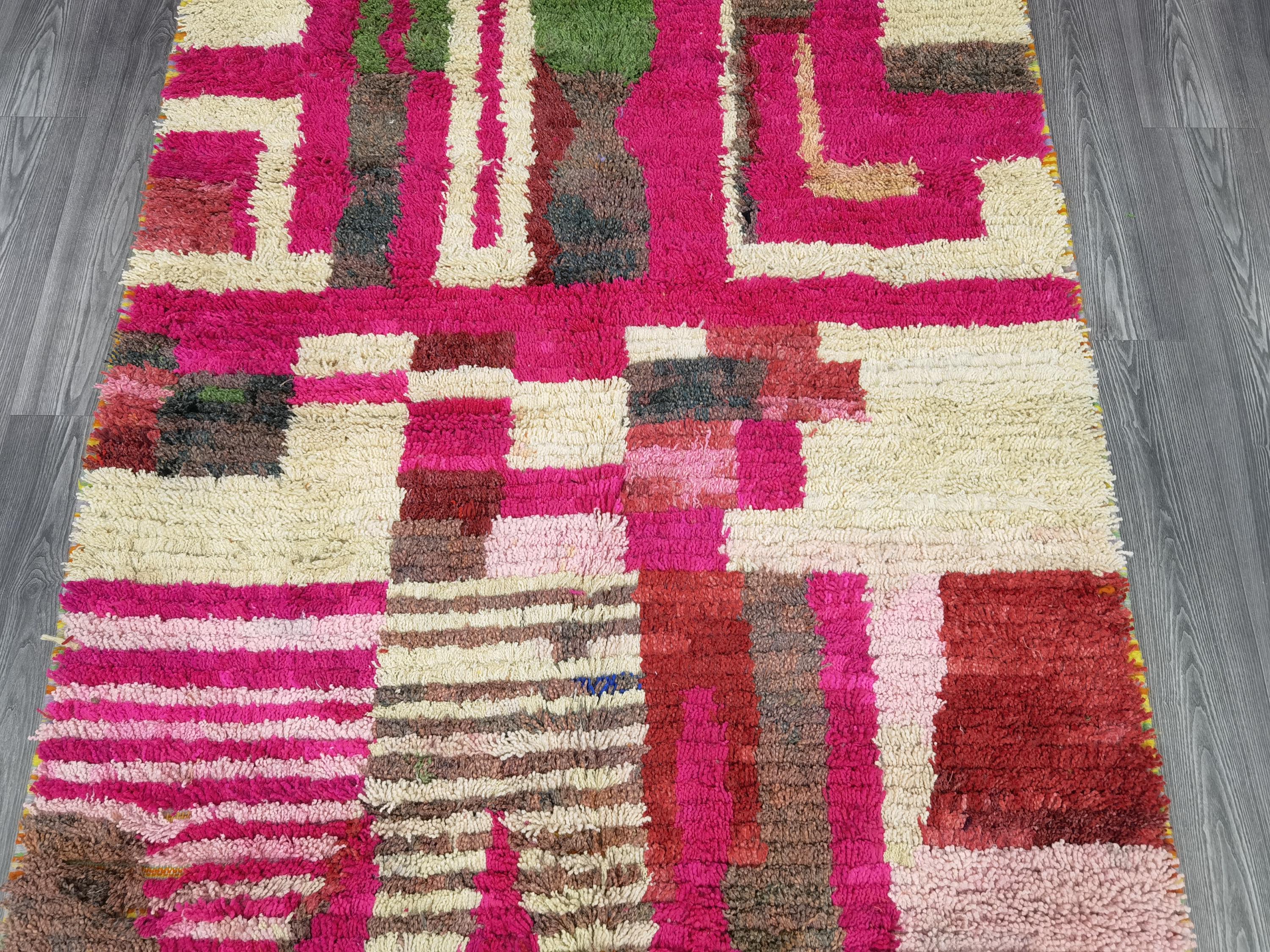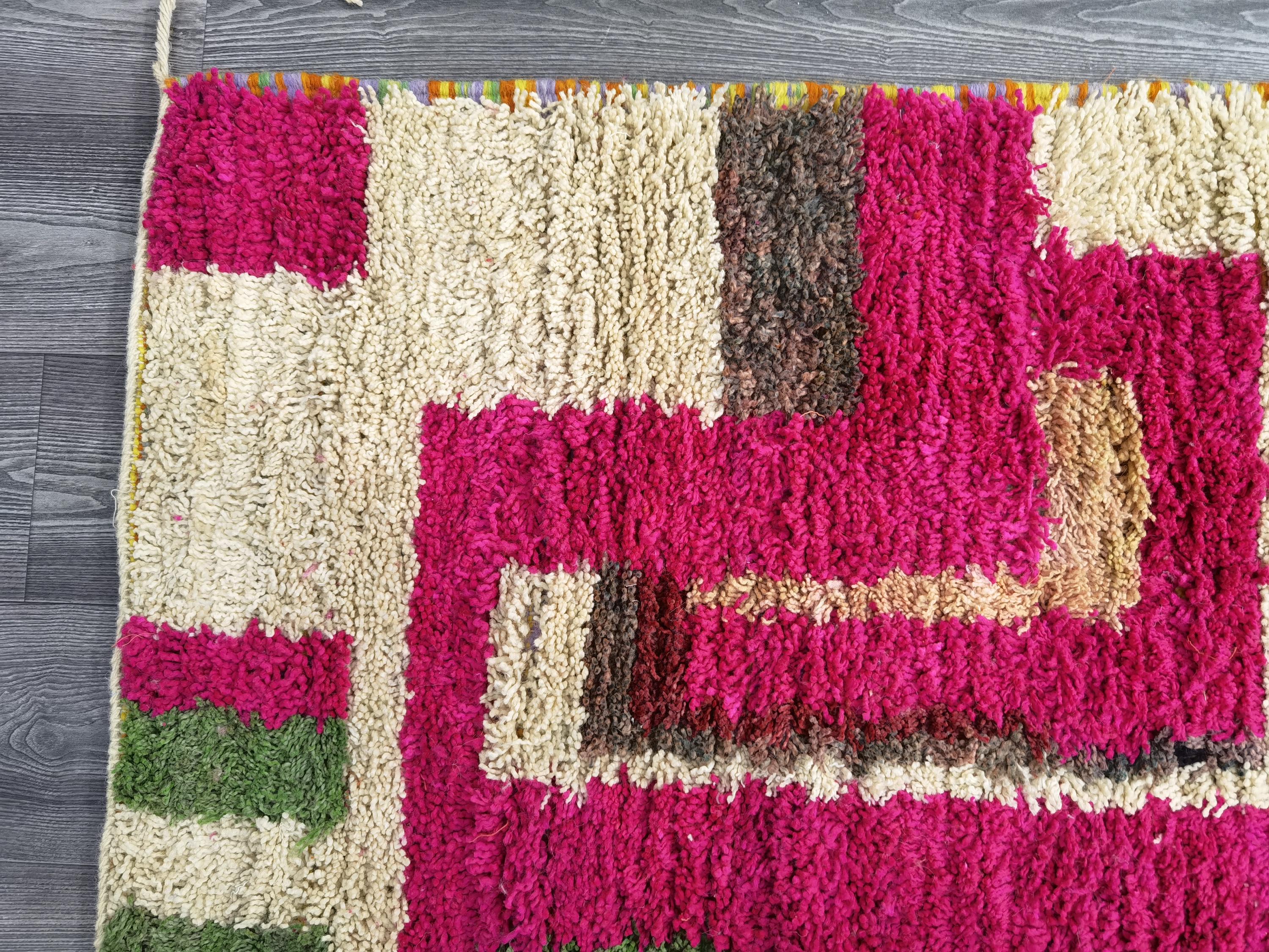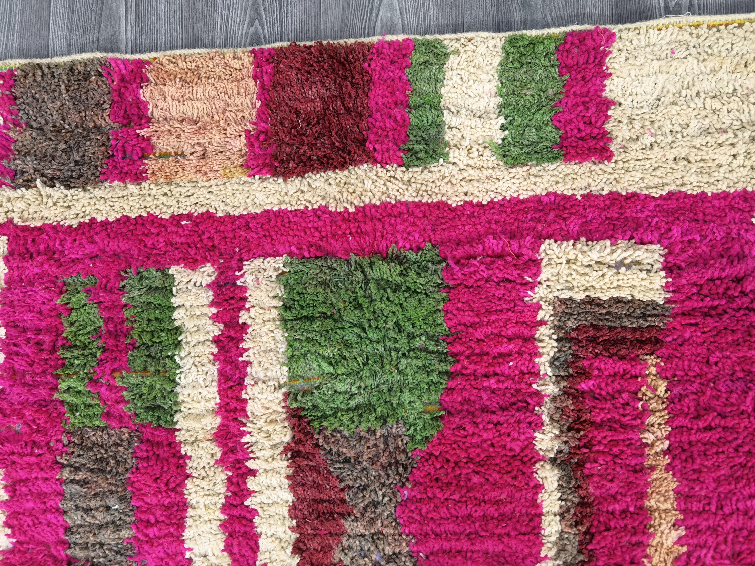 Handmade Pink Moroccan Rug: Bohemian Wool Carpet
