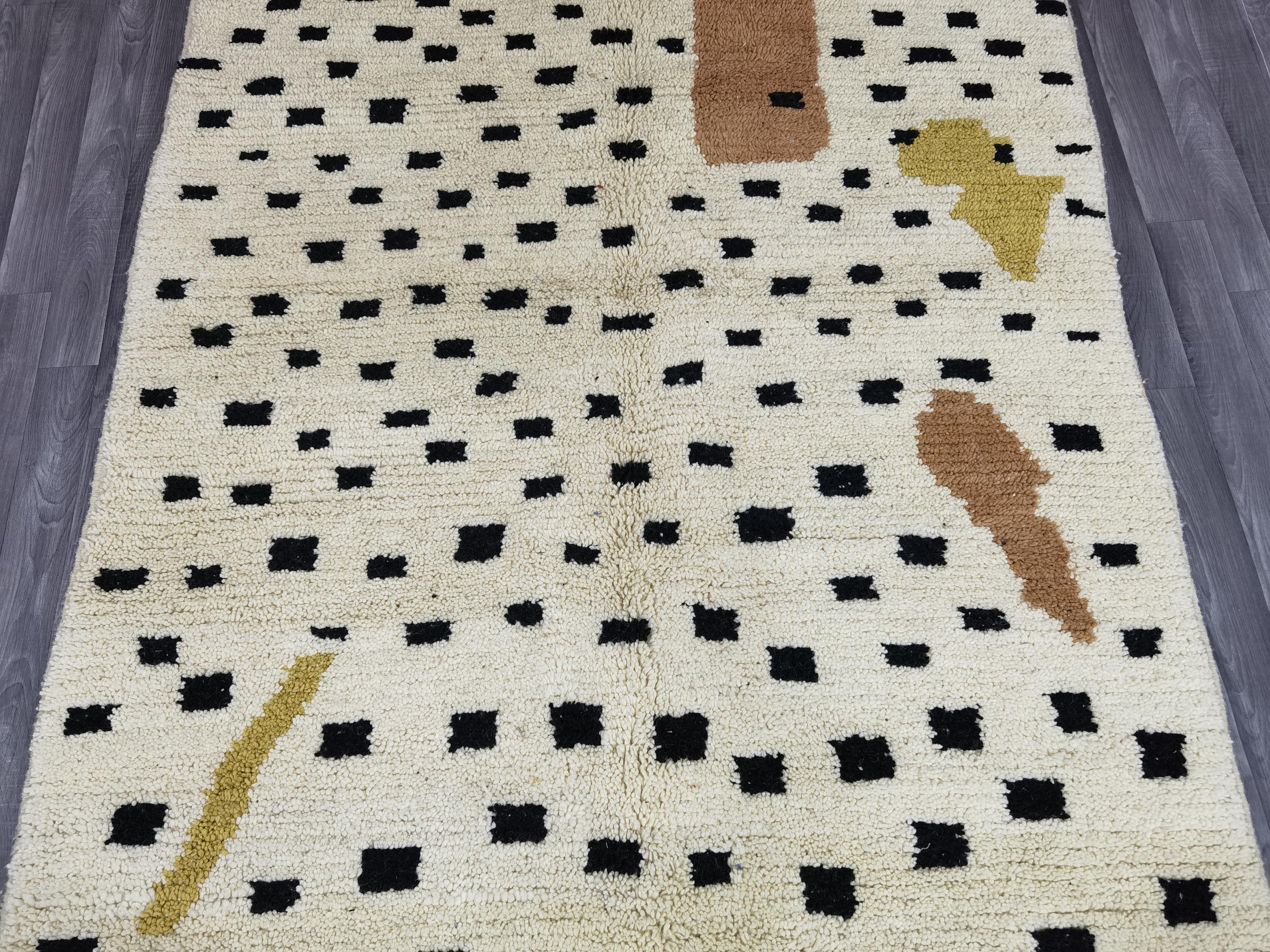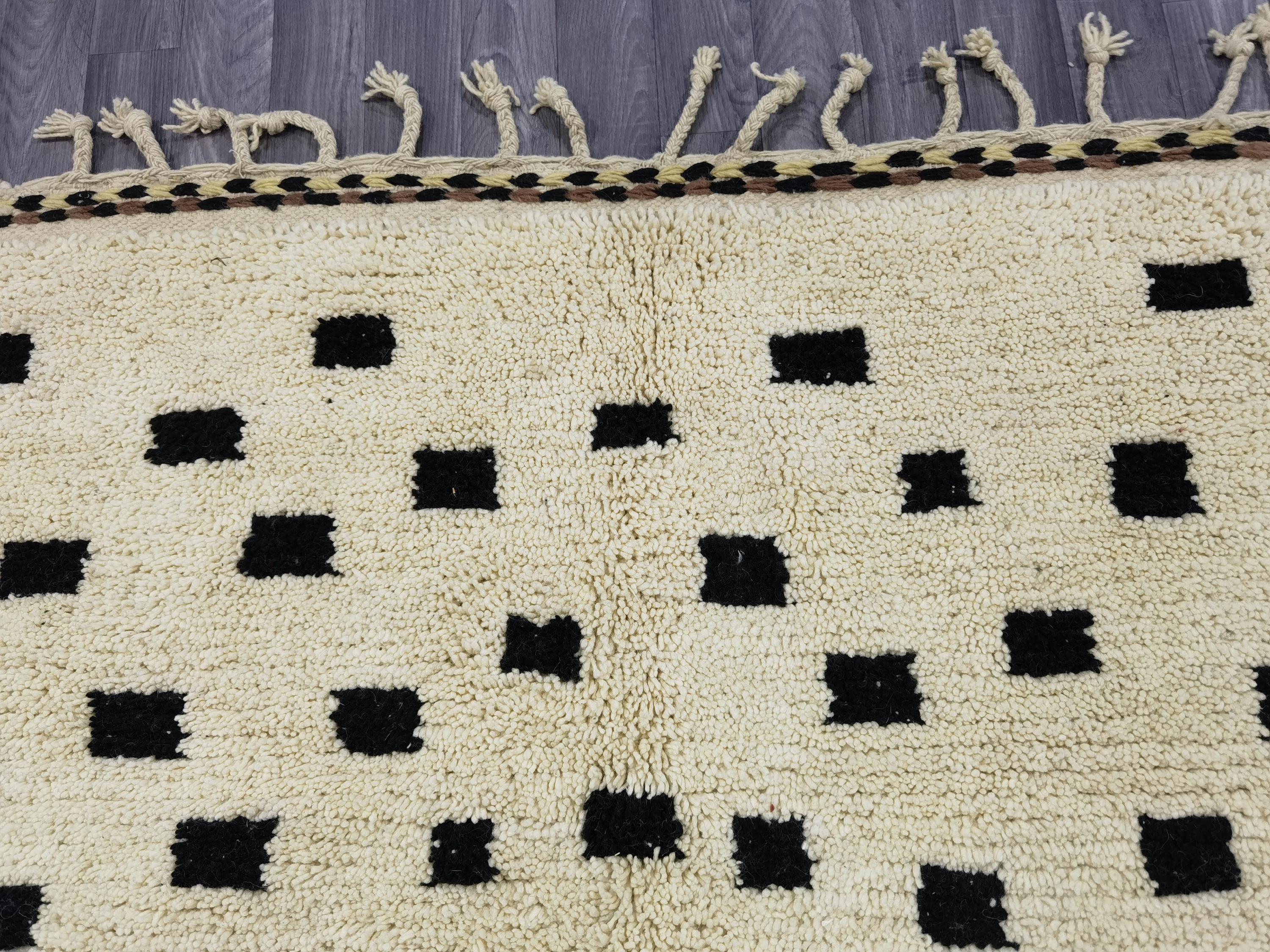 Hand-Knotted Beni Ourain Rug: White & Black Moroccan Wool Carpet