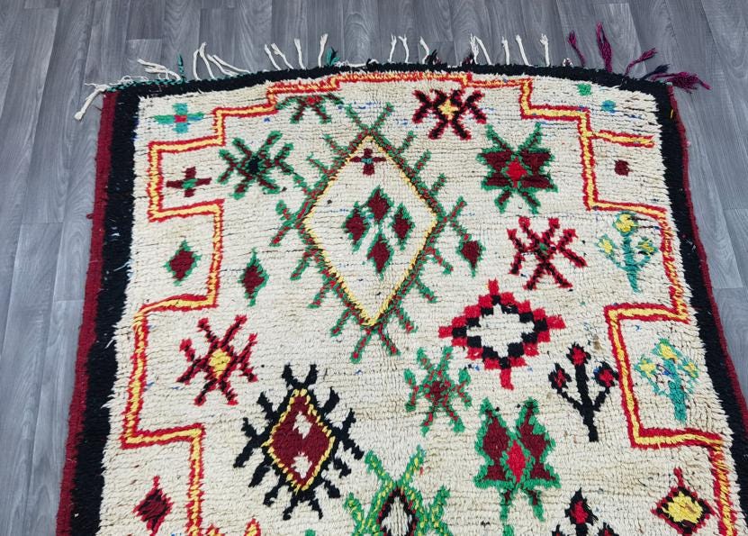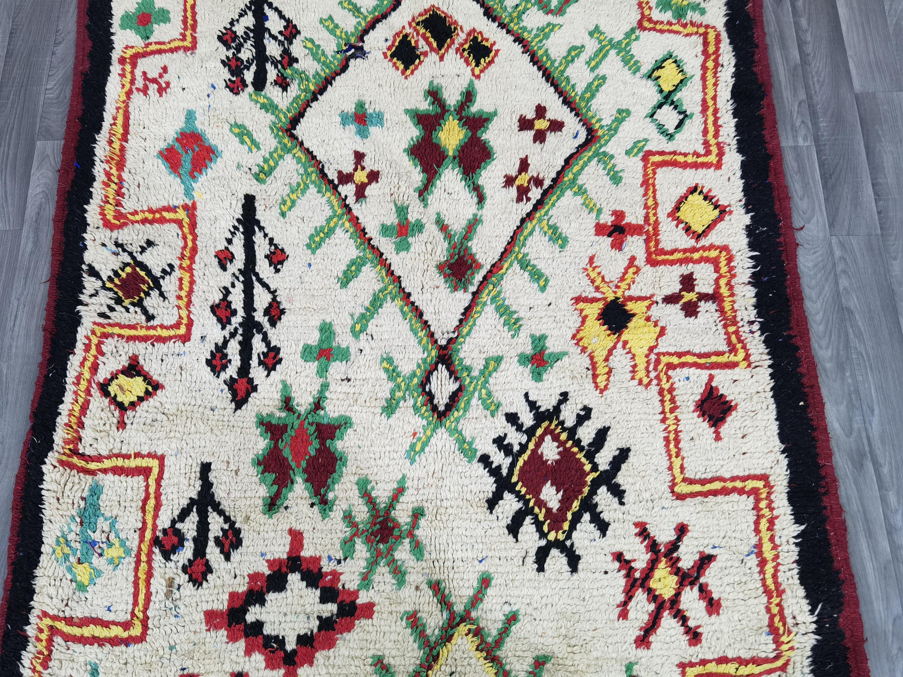 Boujaad is a vibrant and colorful wool runner that will add life to any room in your home. Made from 100% wool, this rug is perfect for use in the living room, bedroom, or anywhere you want to add some beautiful Moroccan flair. The soft and fluffy texture makes it comfortable to walk on, and the vivid colors will brighten up any space. Whether you're looking for a traditional shag rug or something a little more bohemian, Boujaad is sure to be a hit with your guests.
