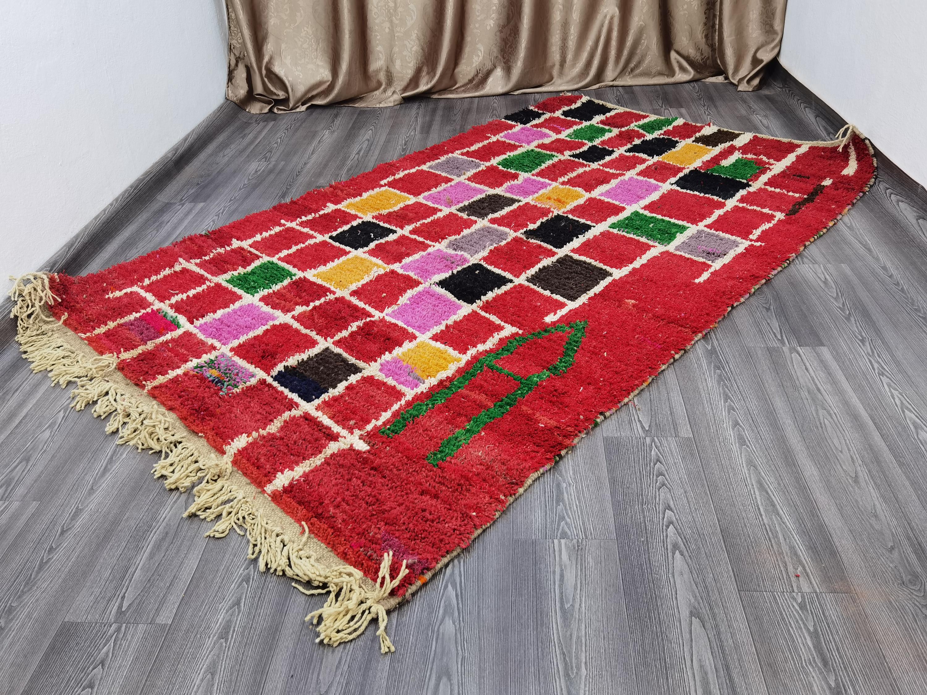 Red Boujaad Rug: Modern Moroccan Berber Wool Rug