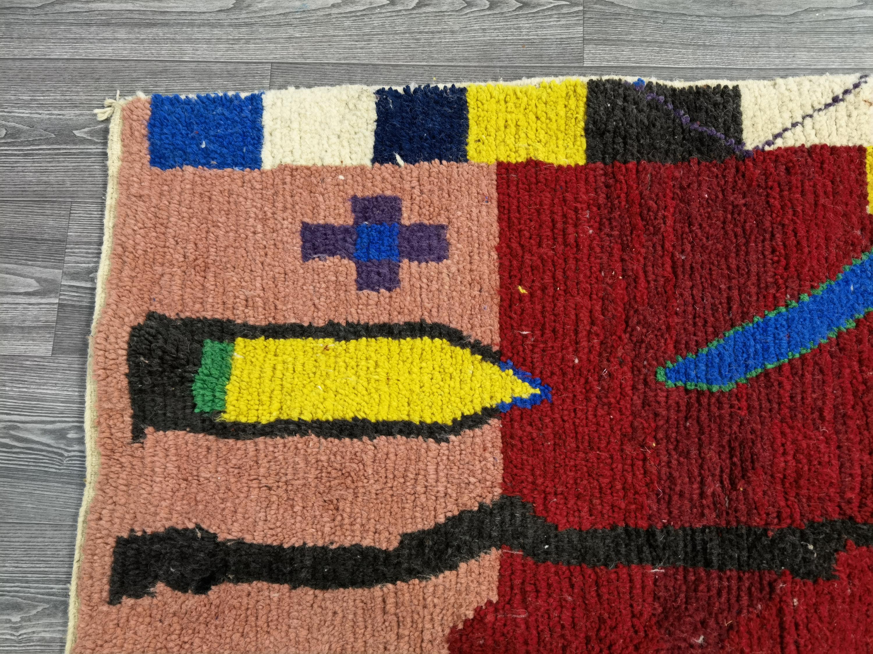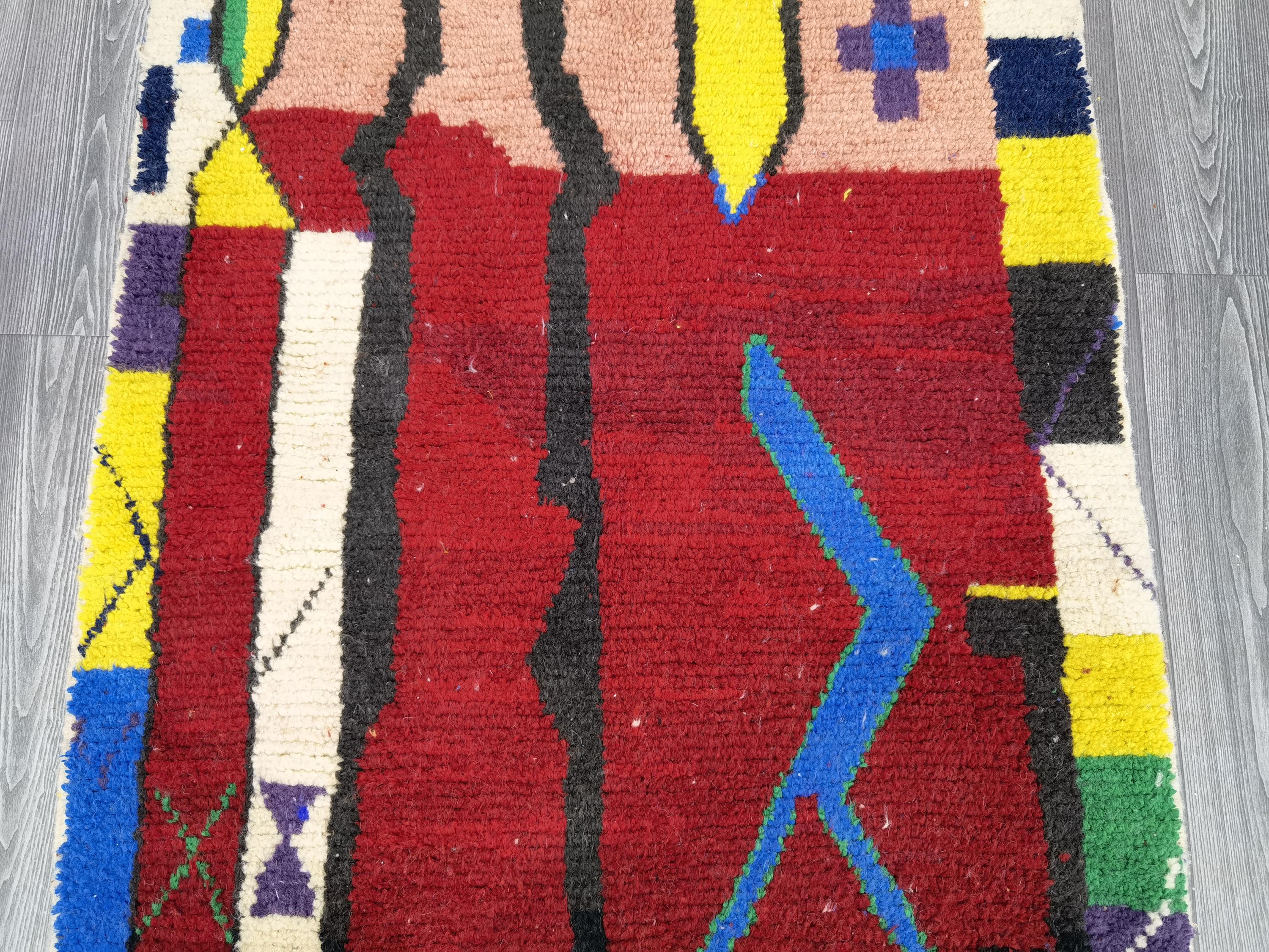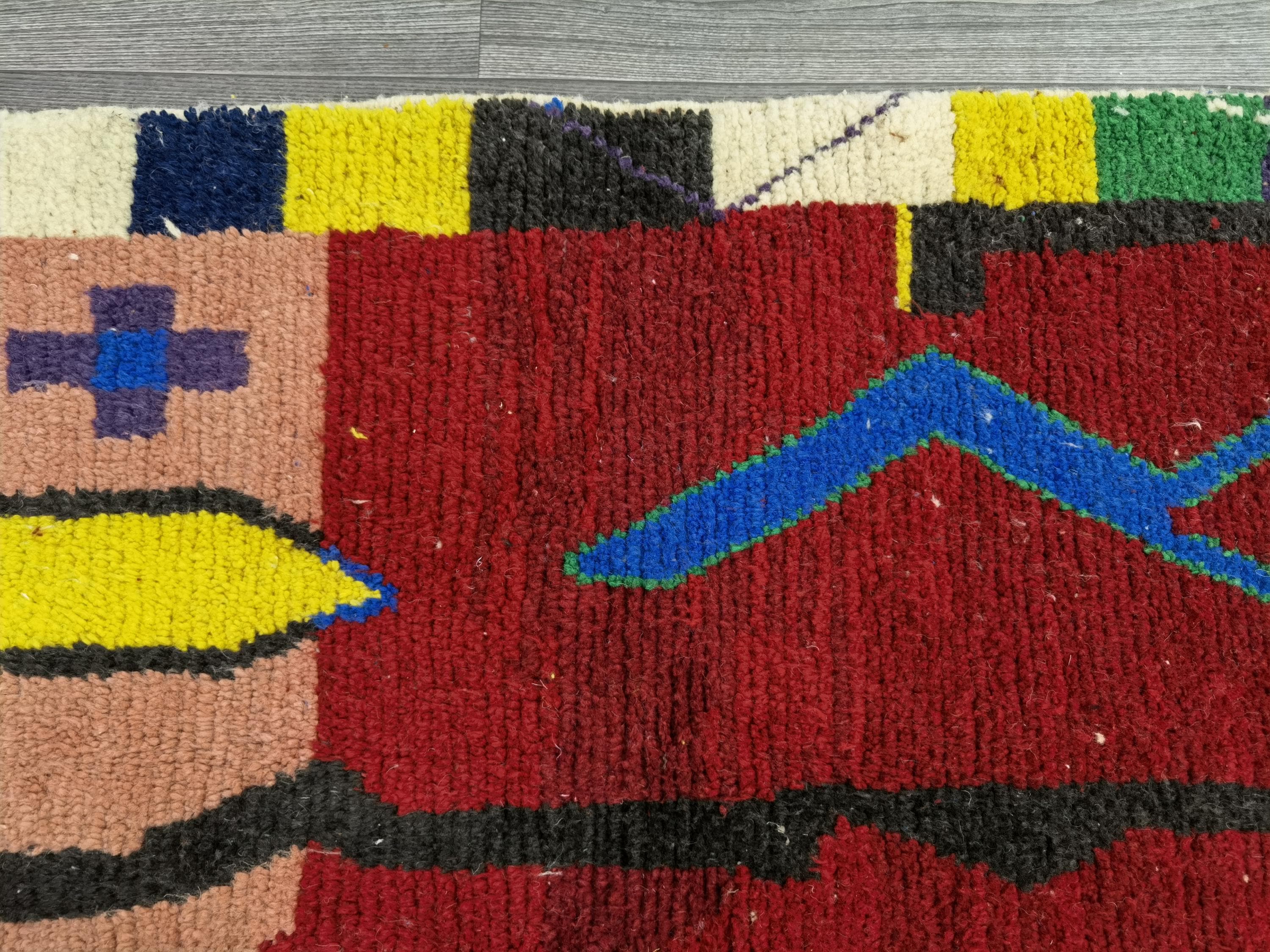 Custom Boujad Rug: Multicolored Moroccan Wool Carpet