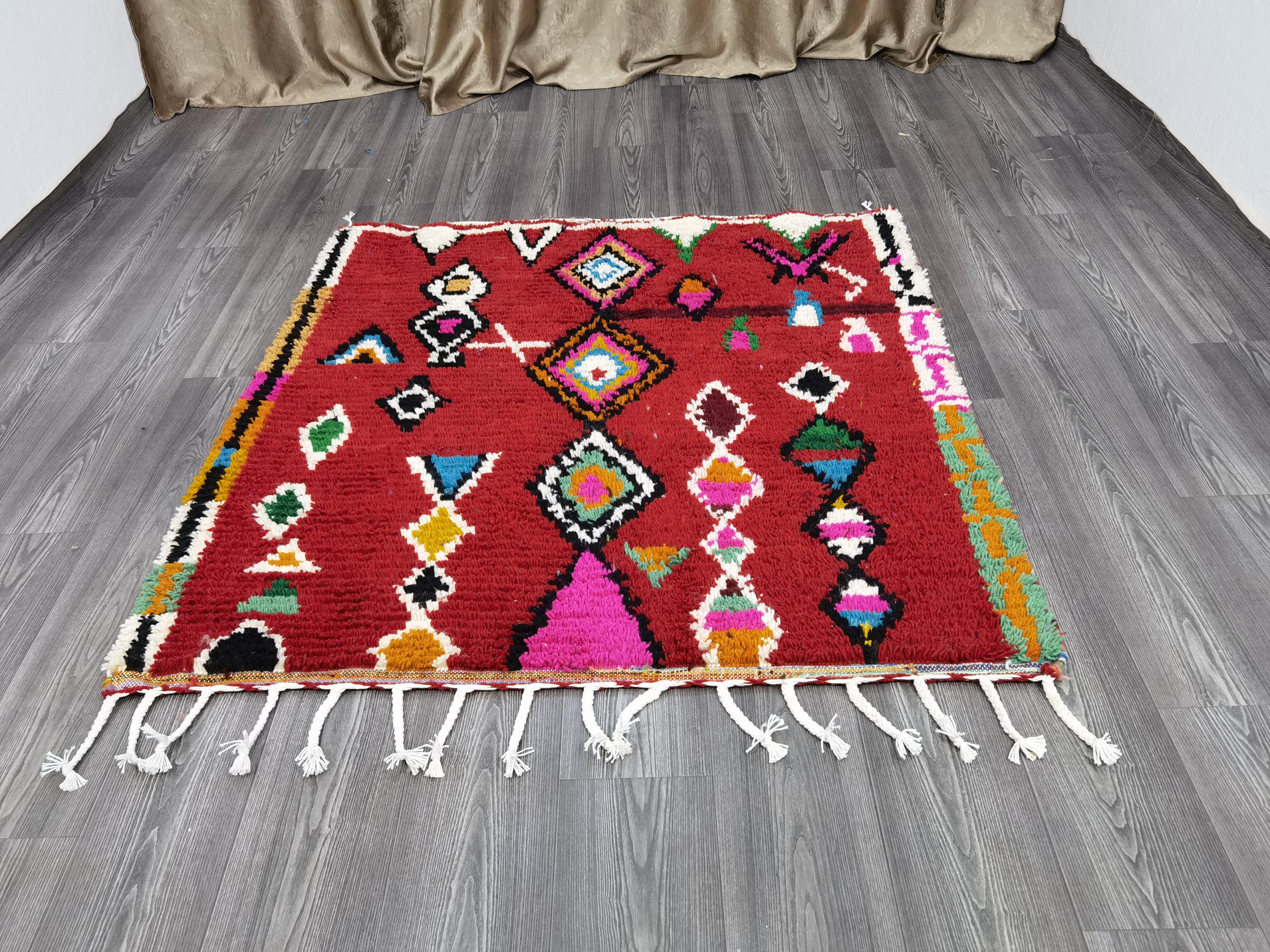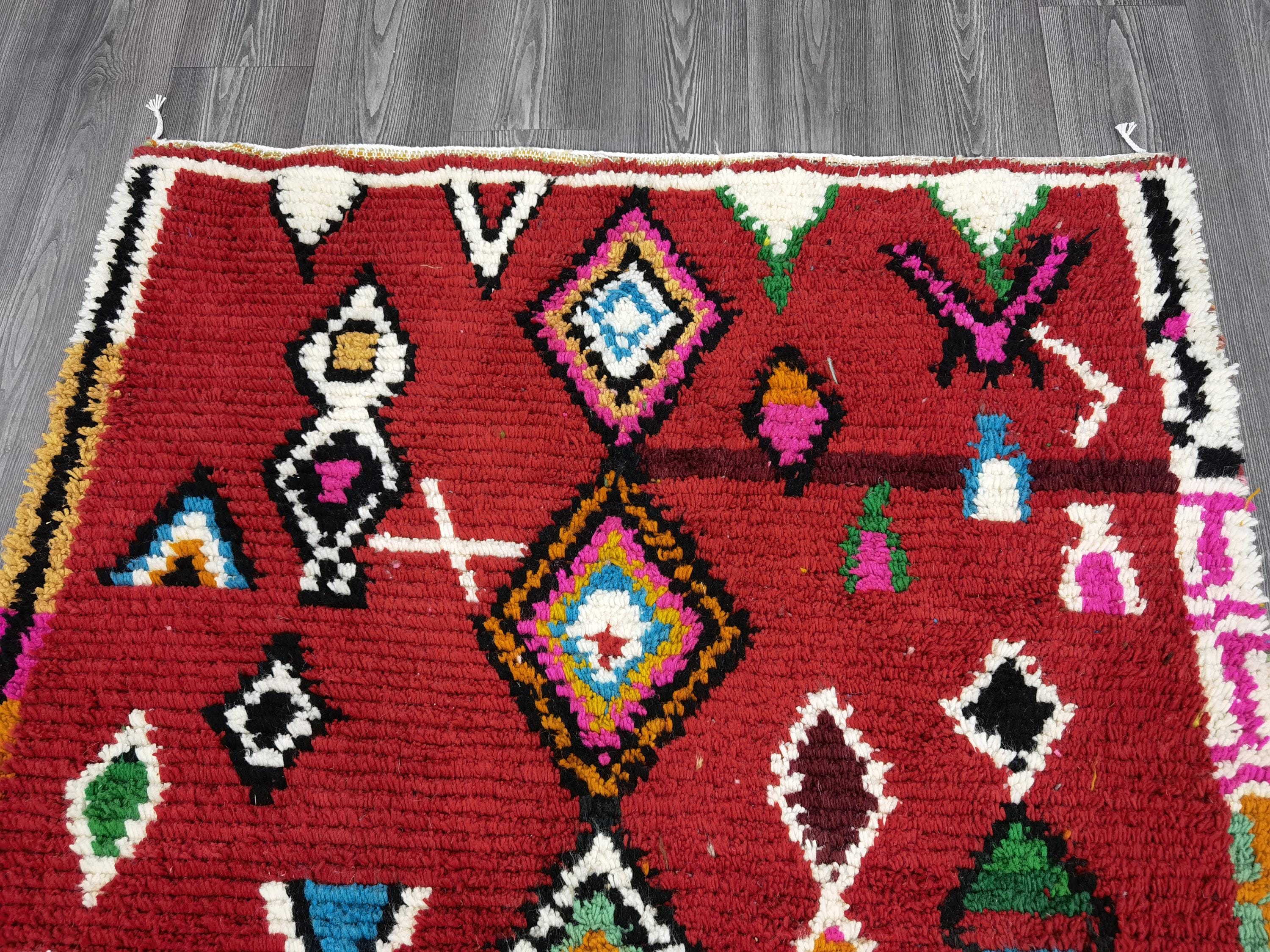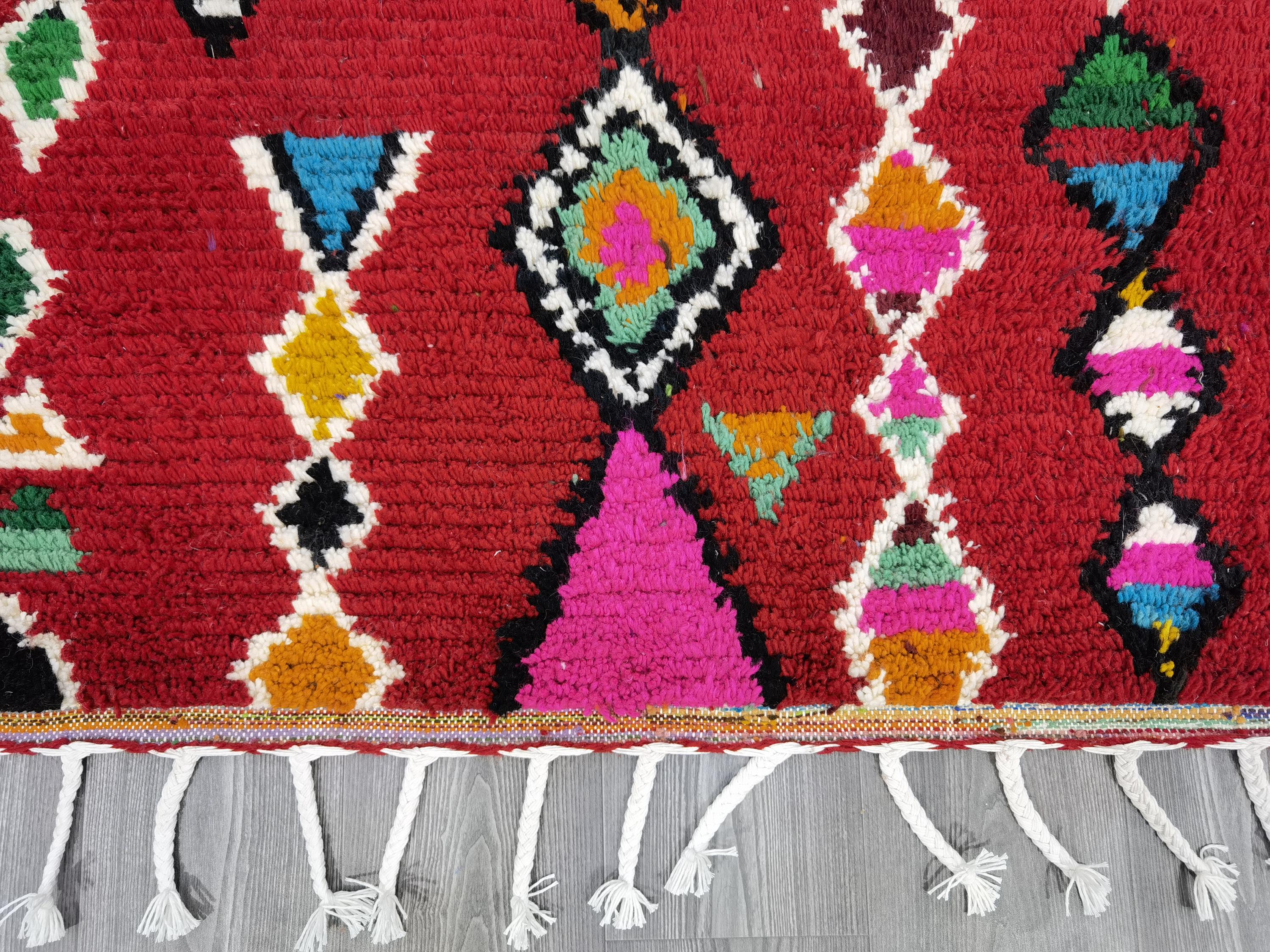 Handmade Wool Moroccan Rug: Red Bohemian Carpet