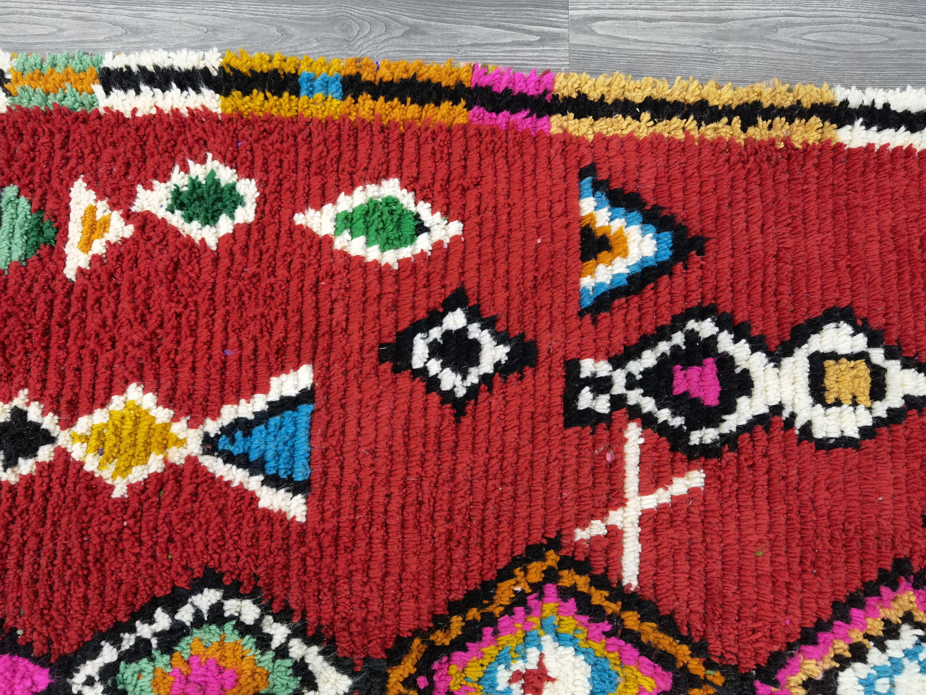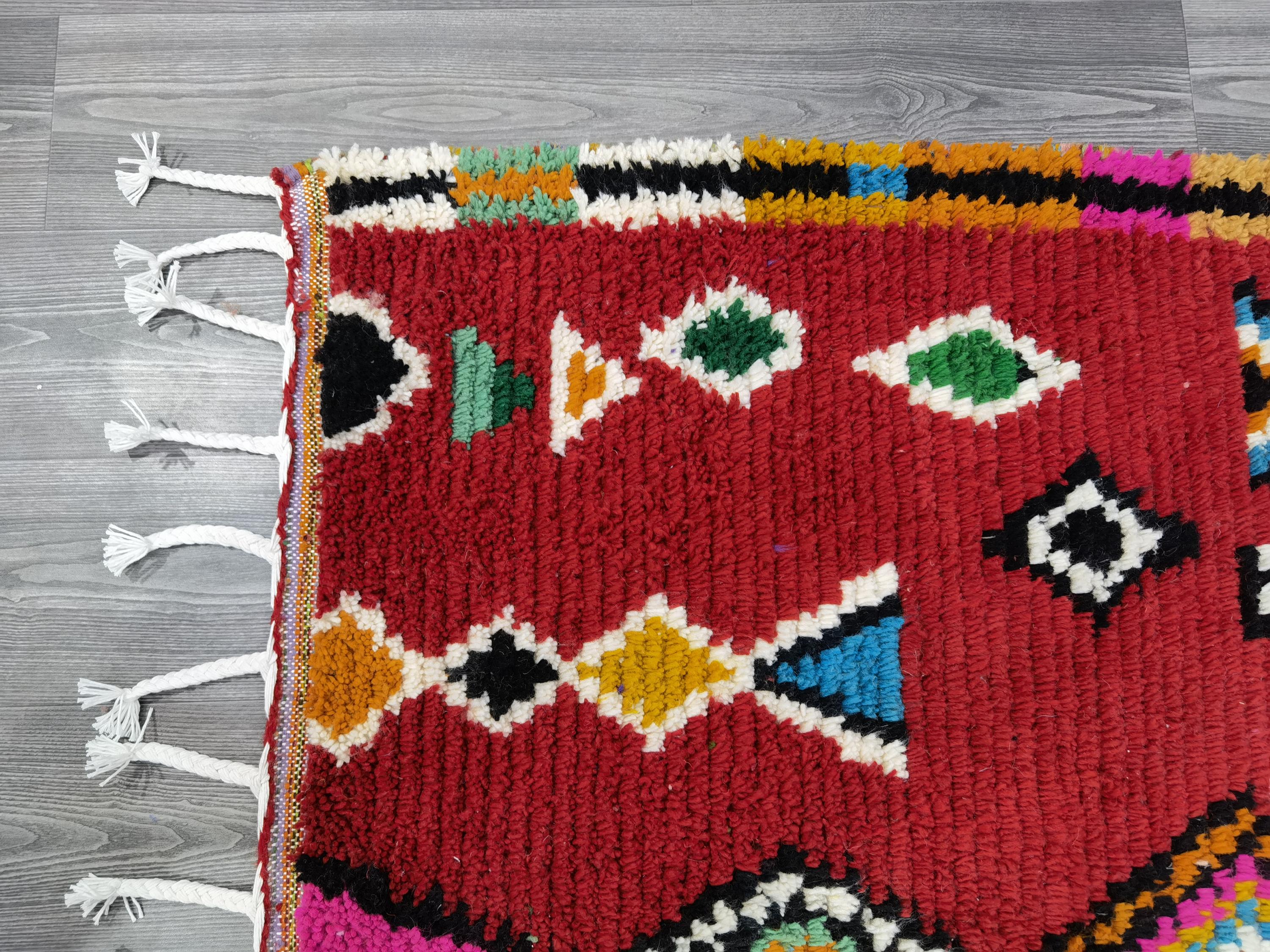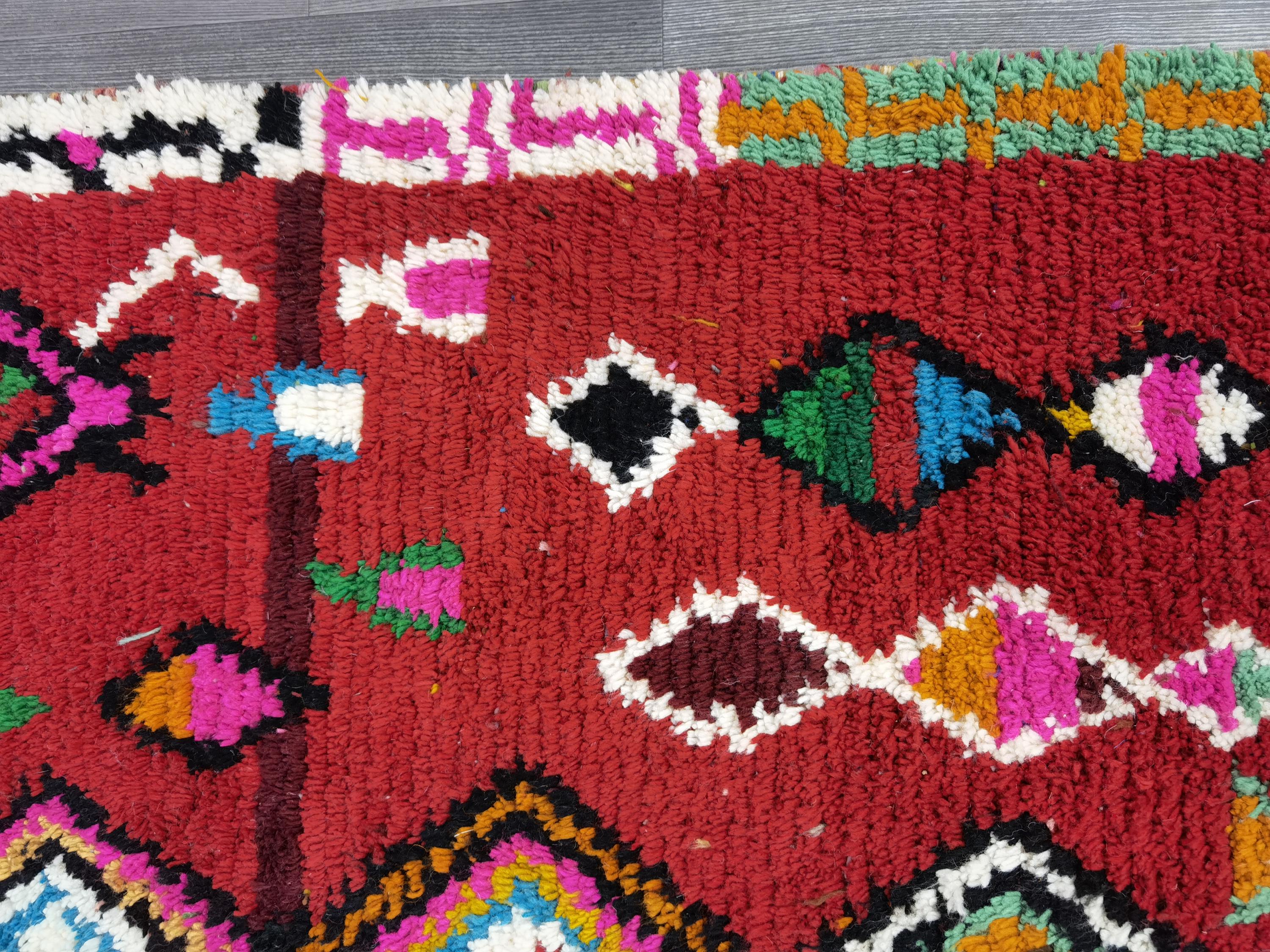 Handmade Wool Moroccan Rug: Red Bohemian Carpet
