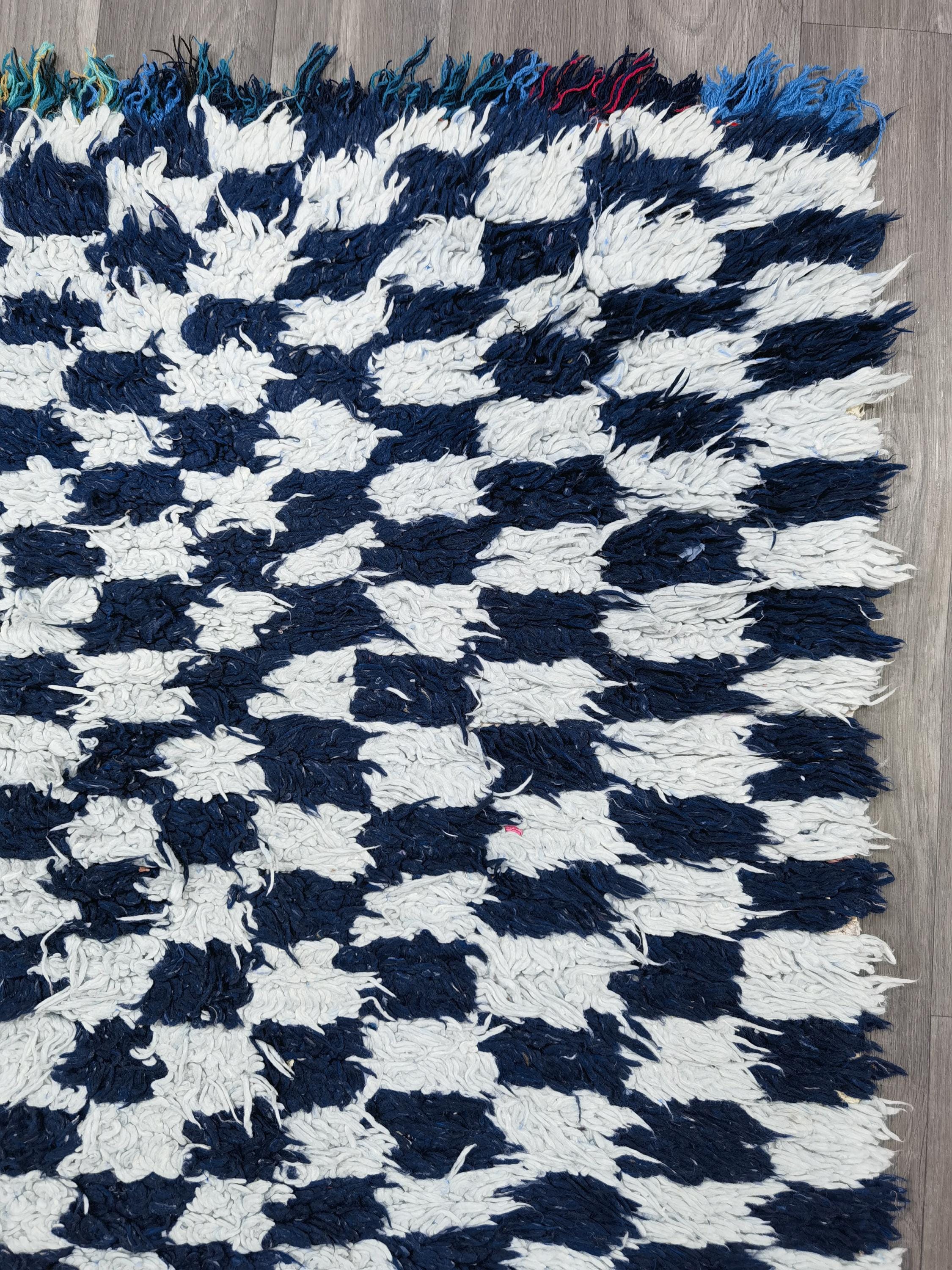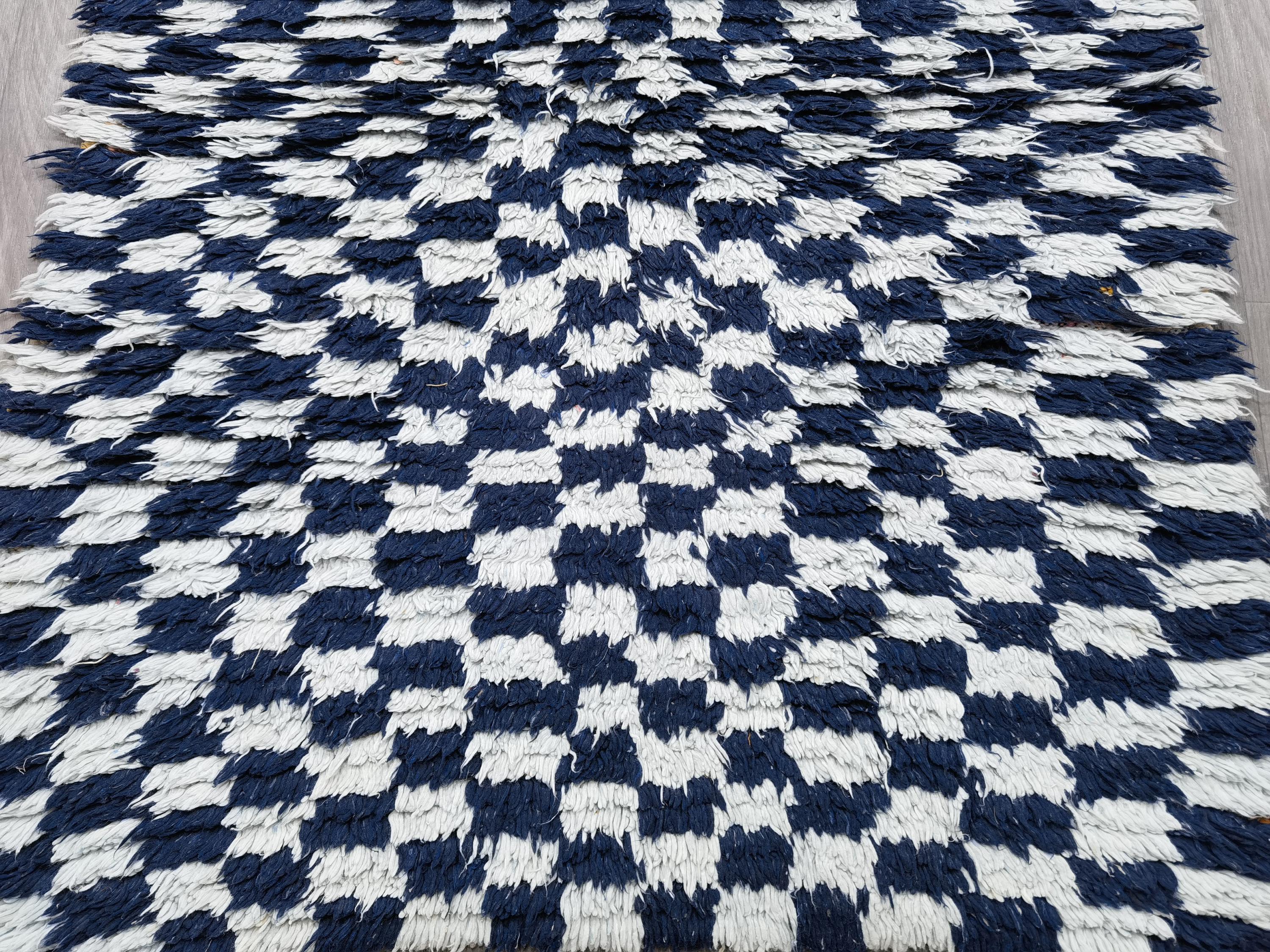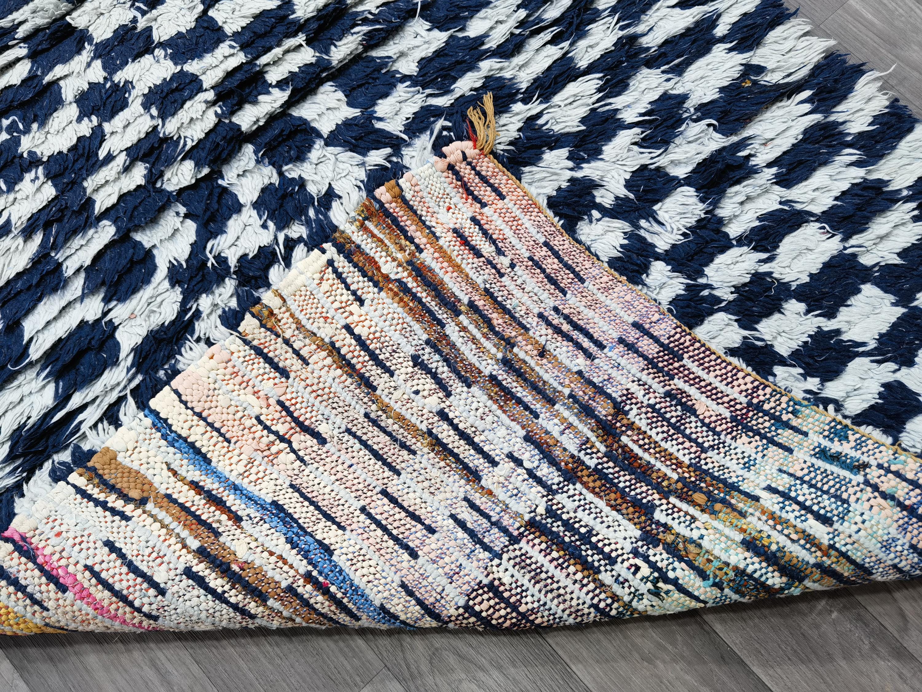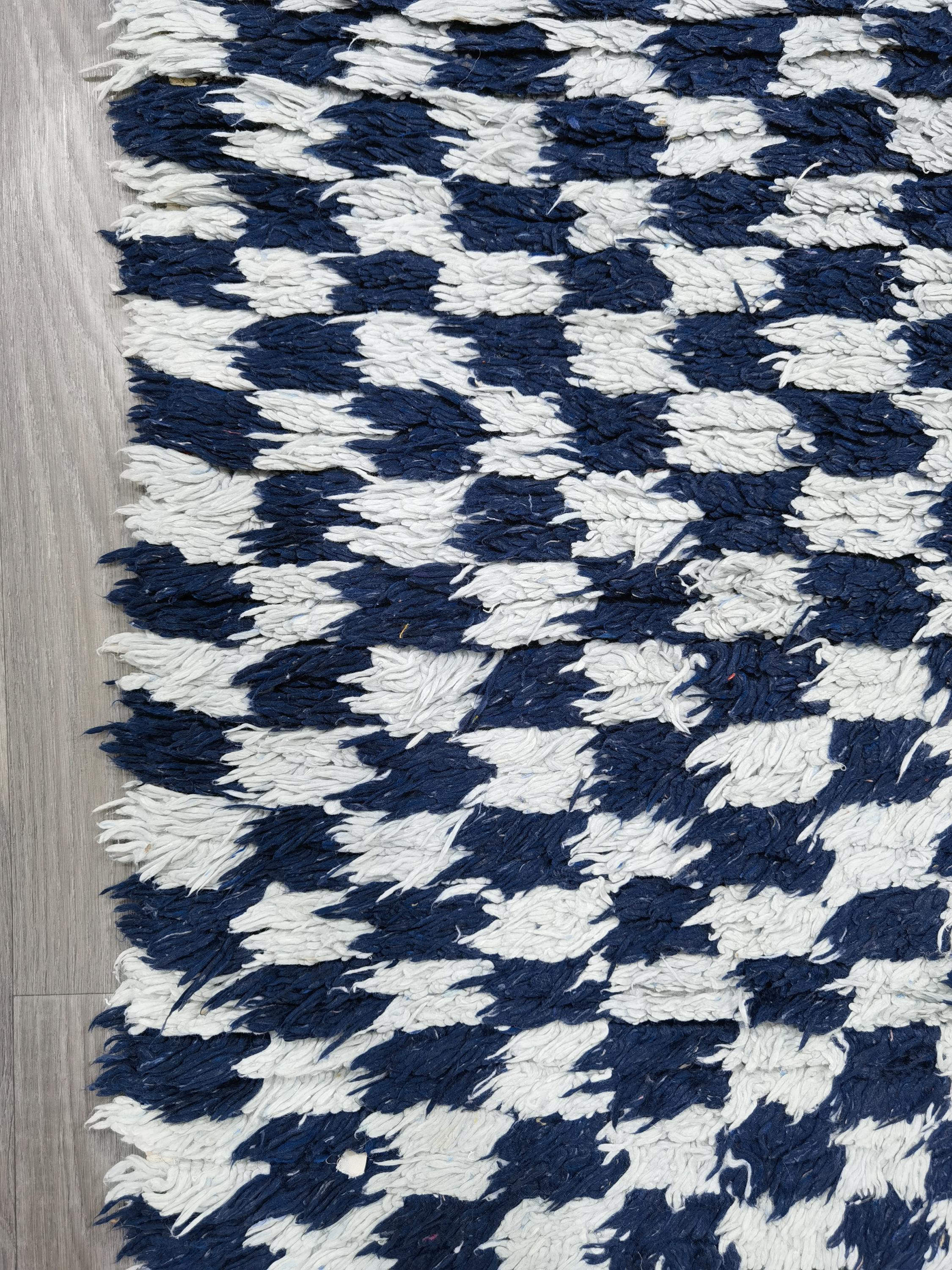 Blue Moroccan Azilal Runner Rug: Vintage Tribal Wool Rug (3x6.3)