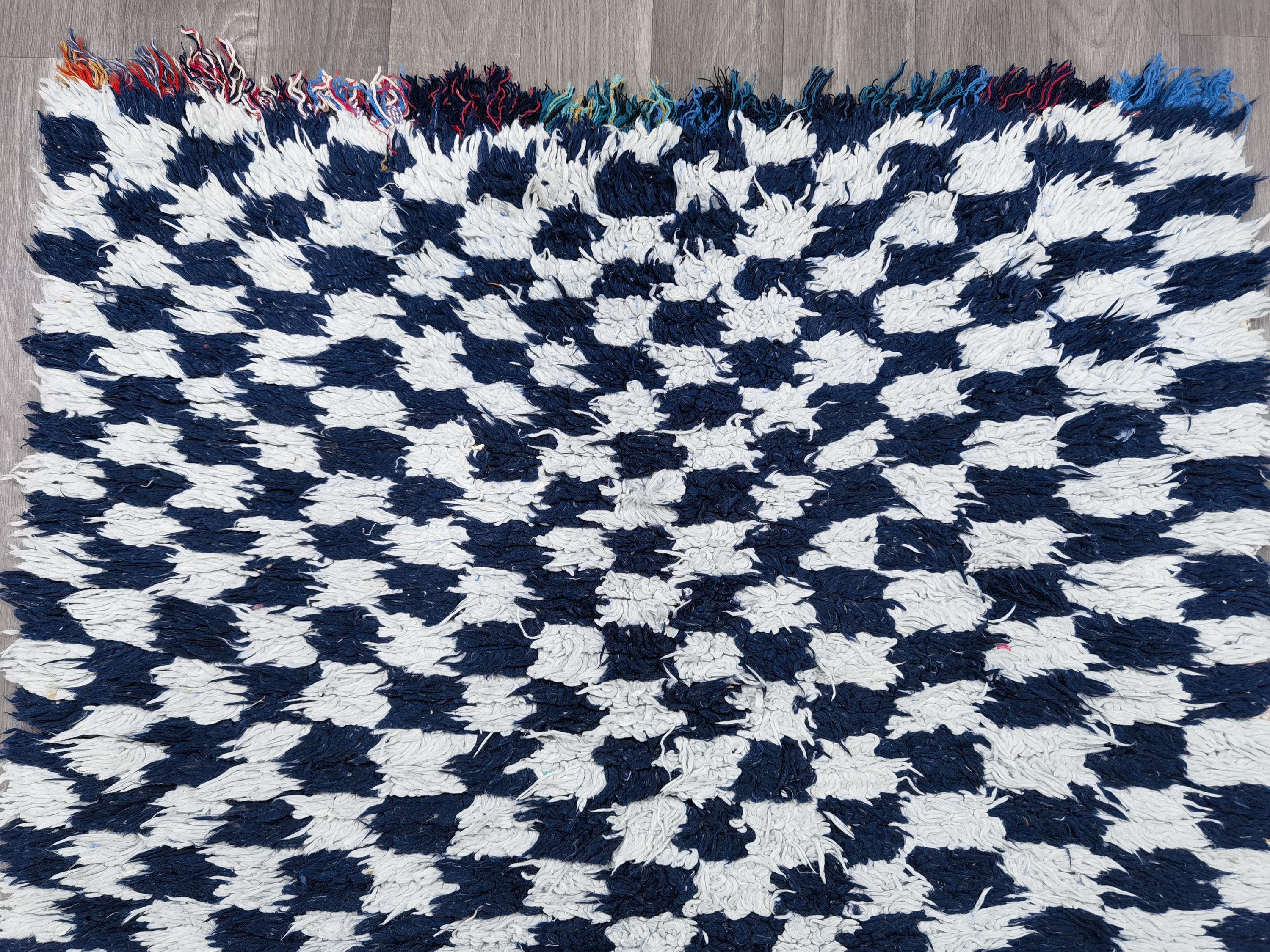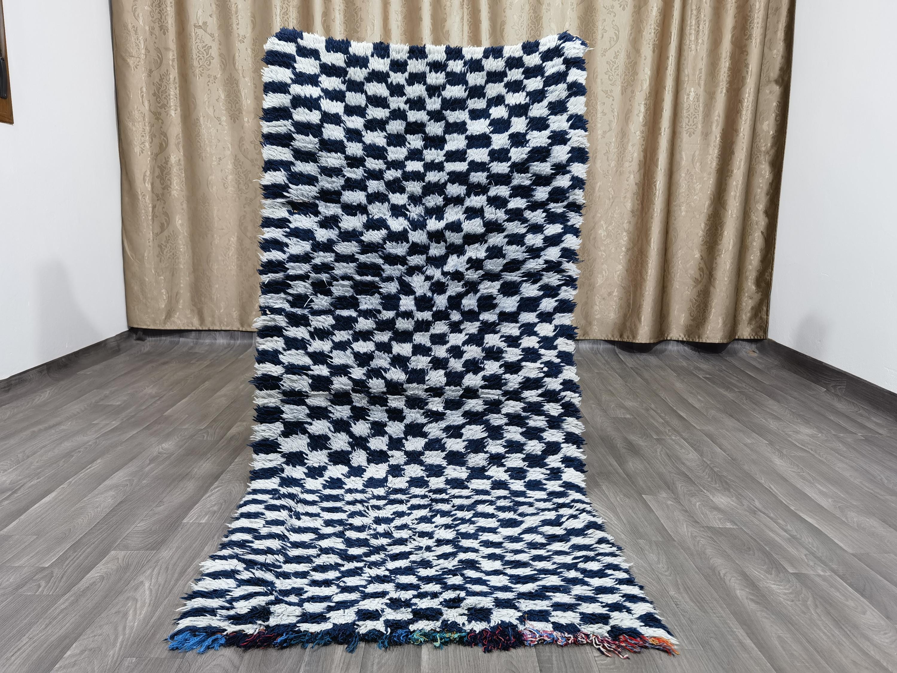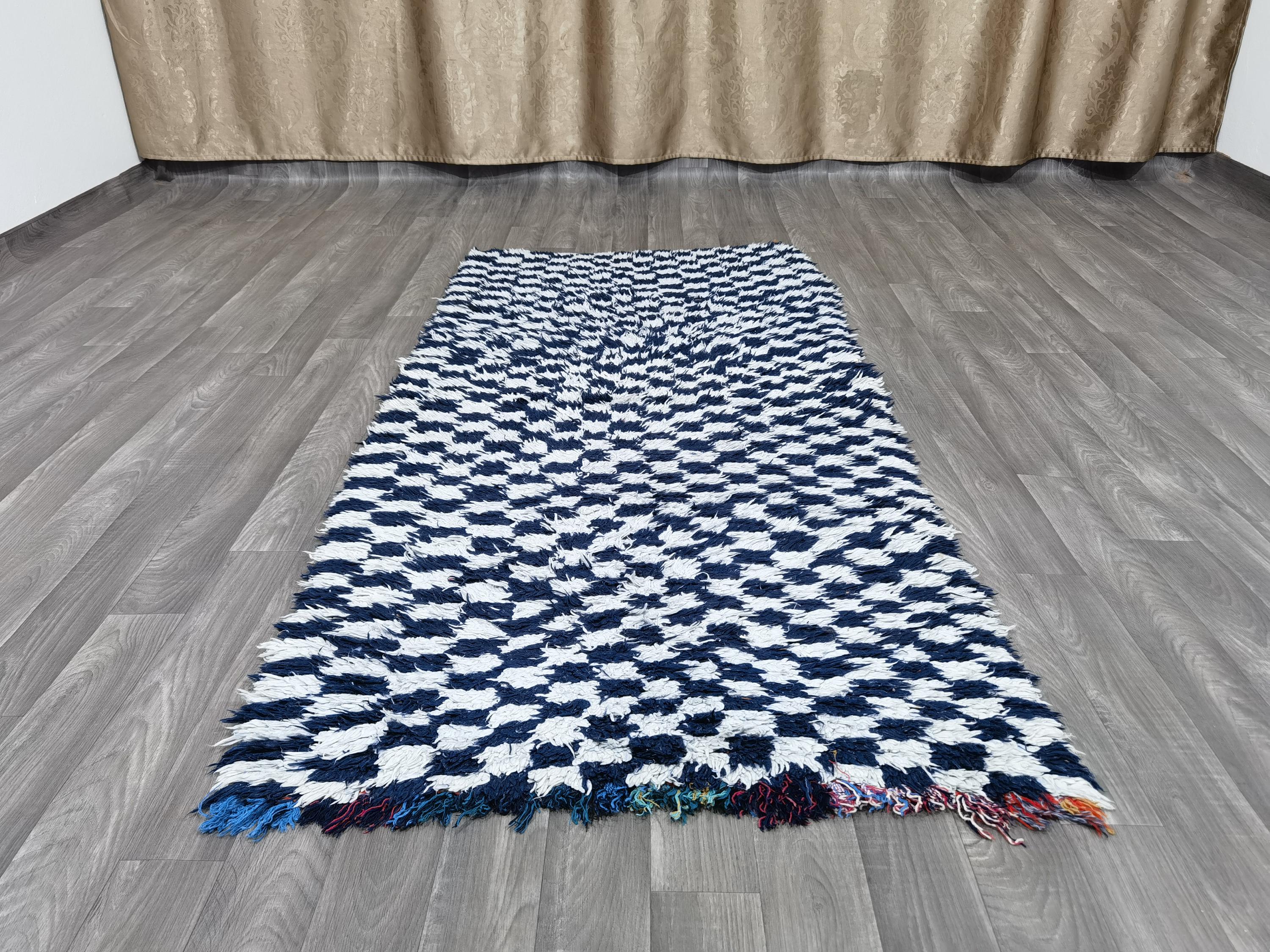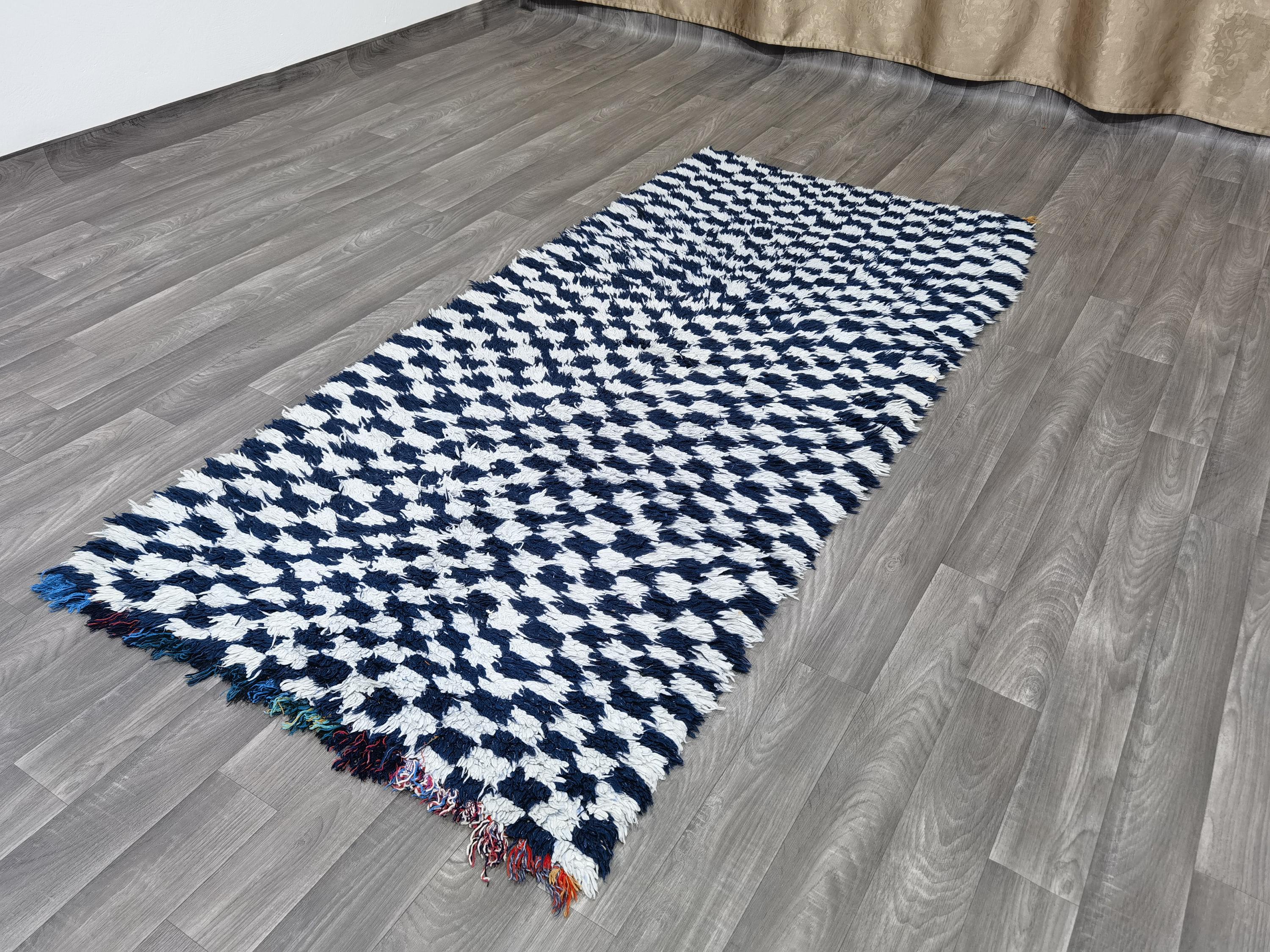 Blue Moroccan Azilal Runner Rug: Vintage Tribal Wool Rug (3x6.3)