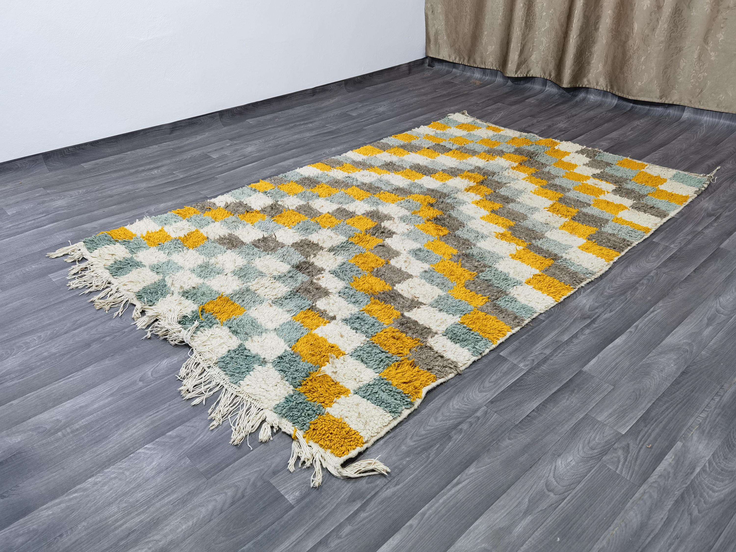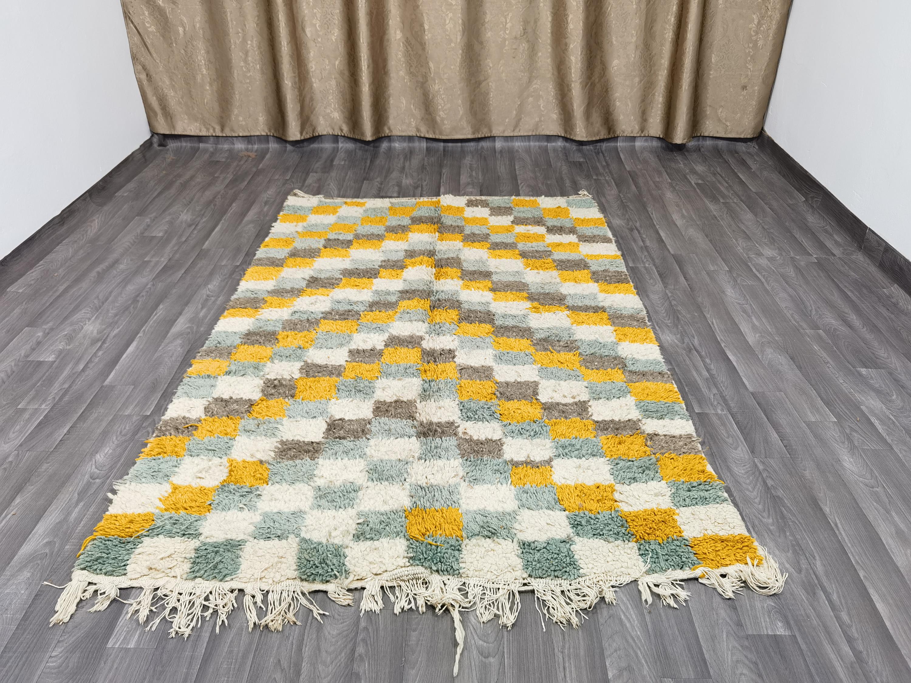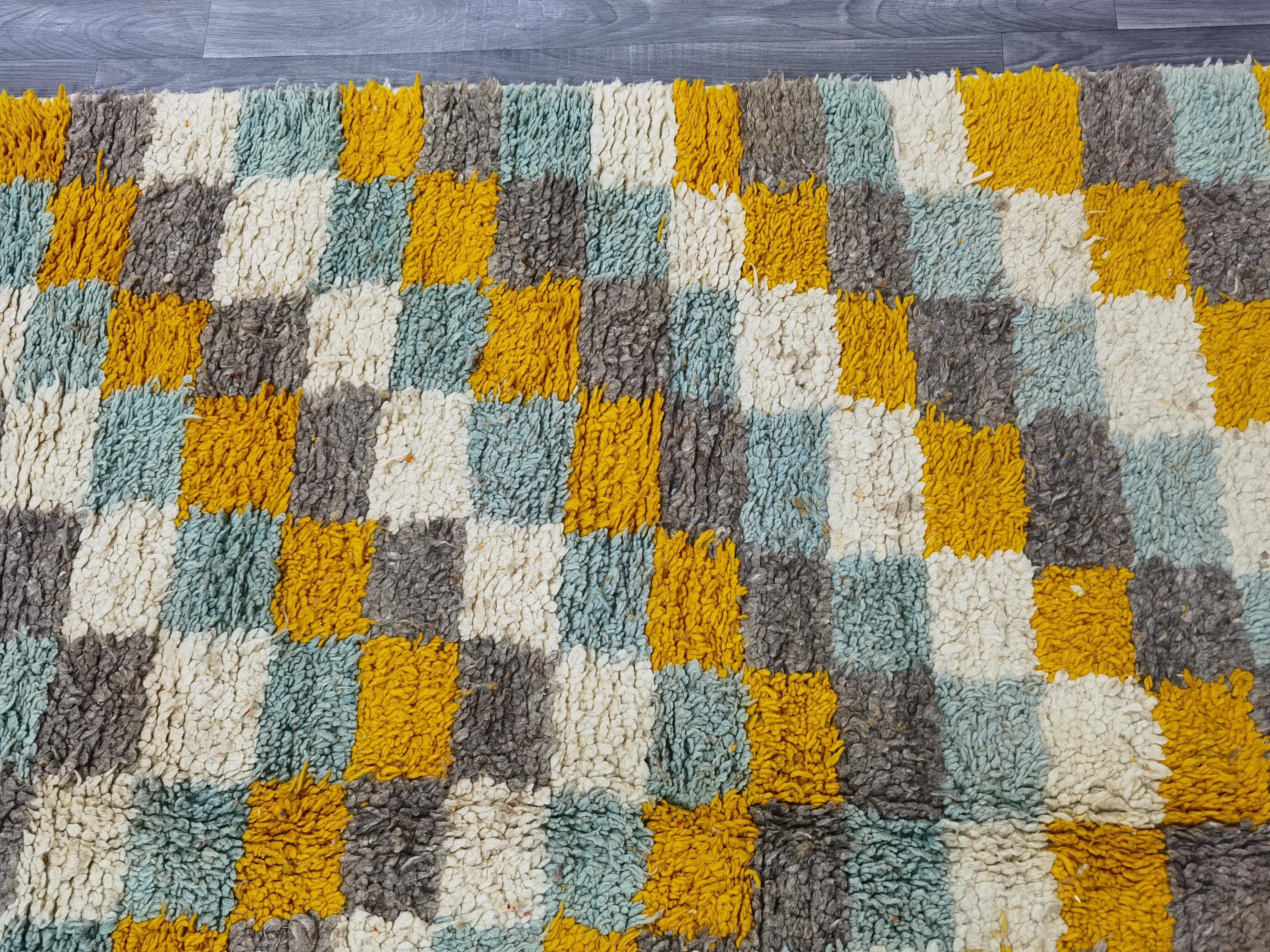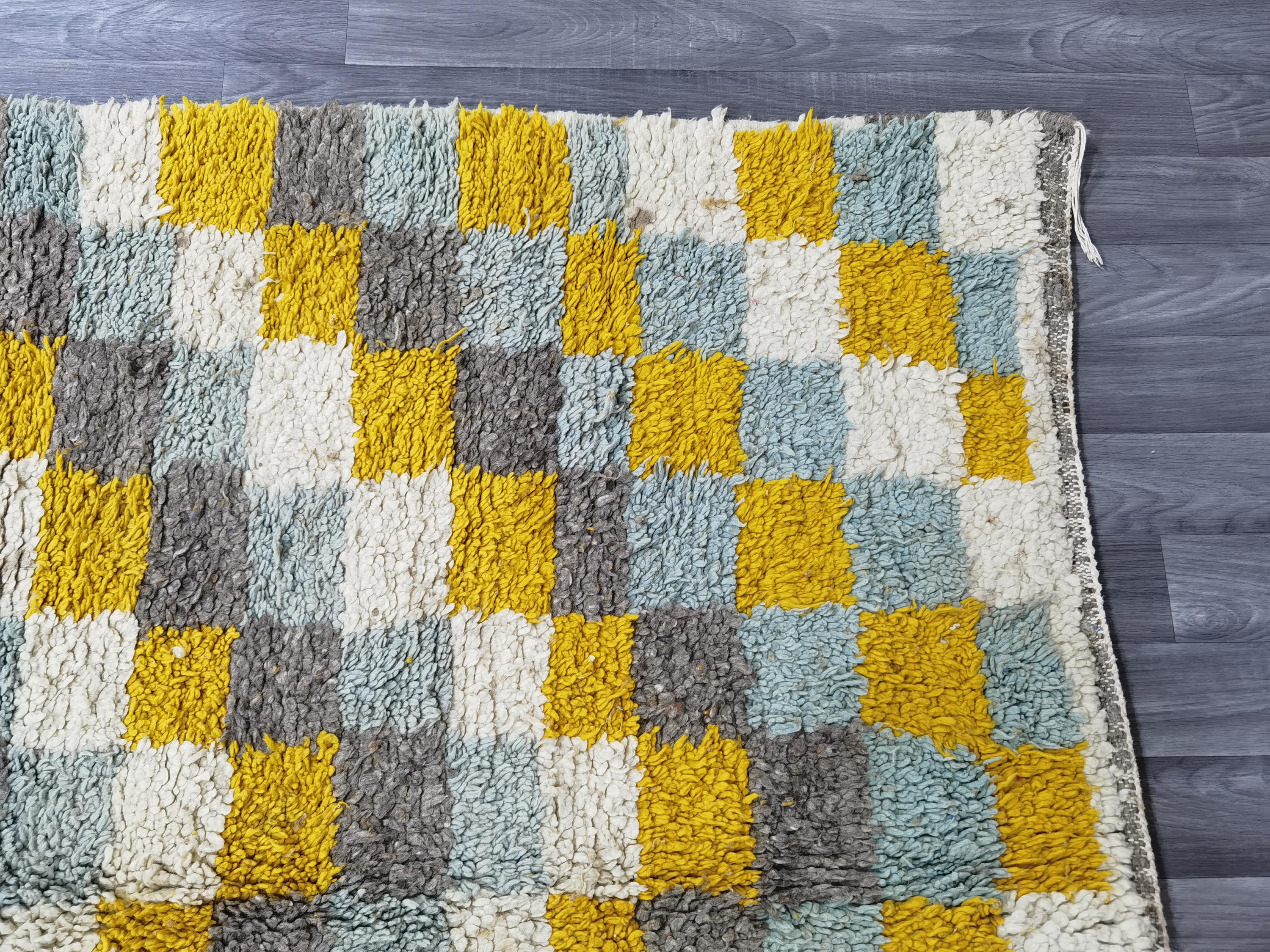 Berber Checkered Rug: Boujaad Moroccan Wool Rug, Yellow & Green