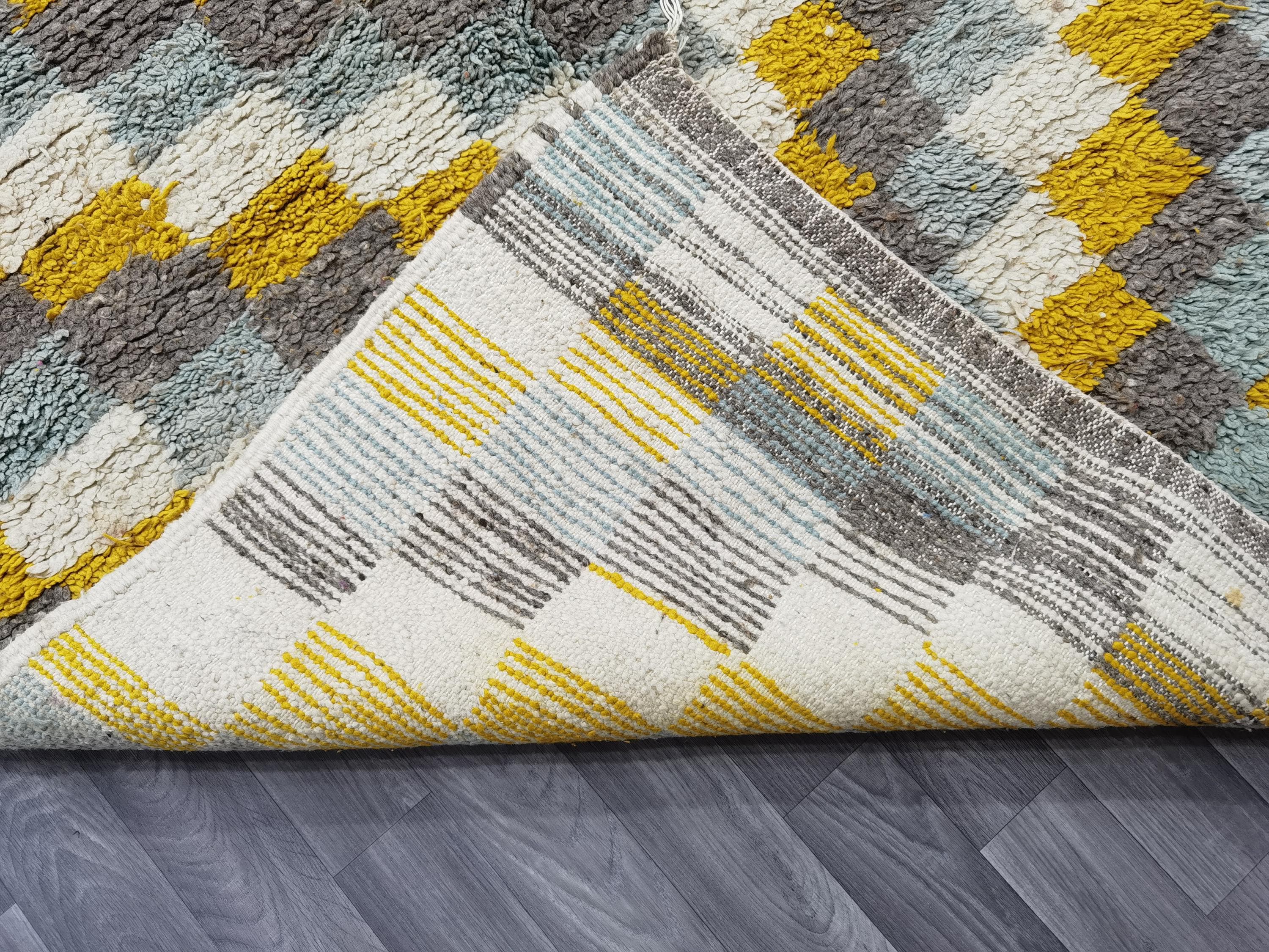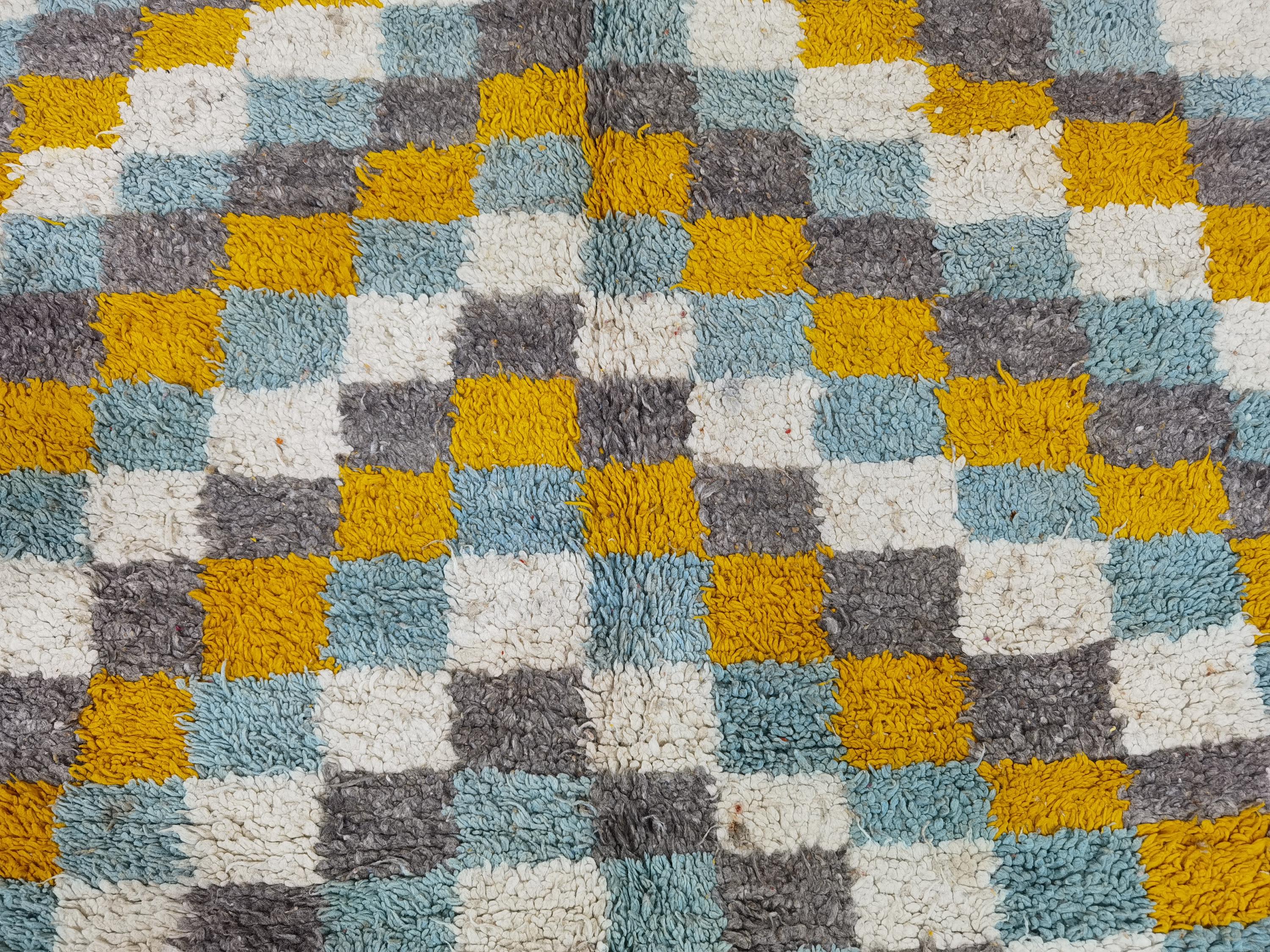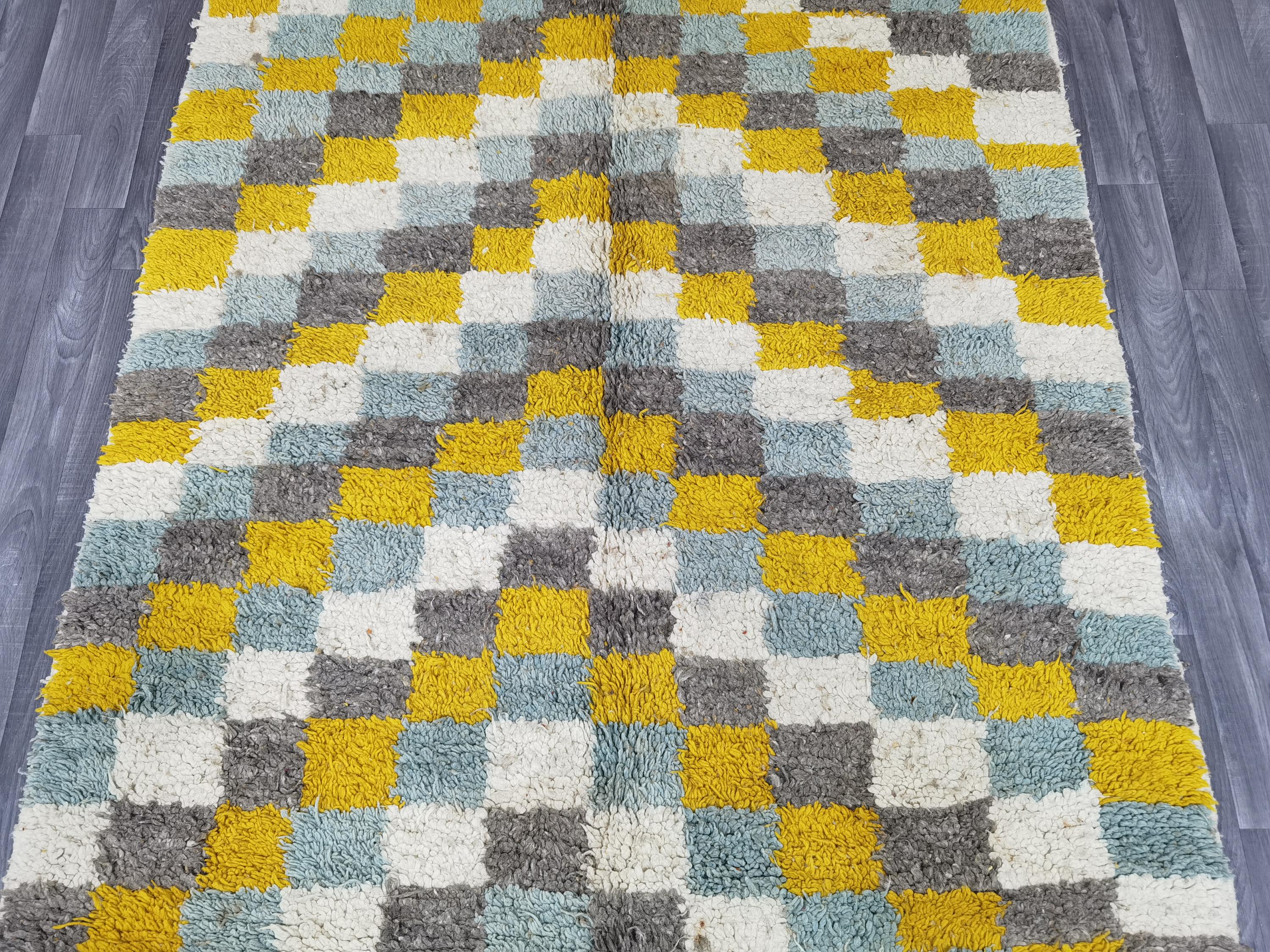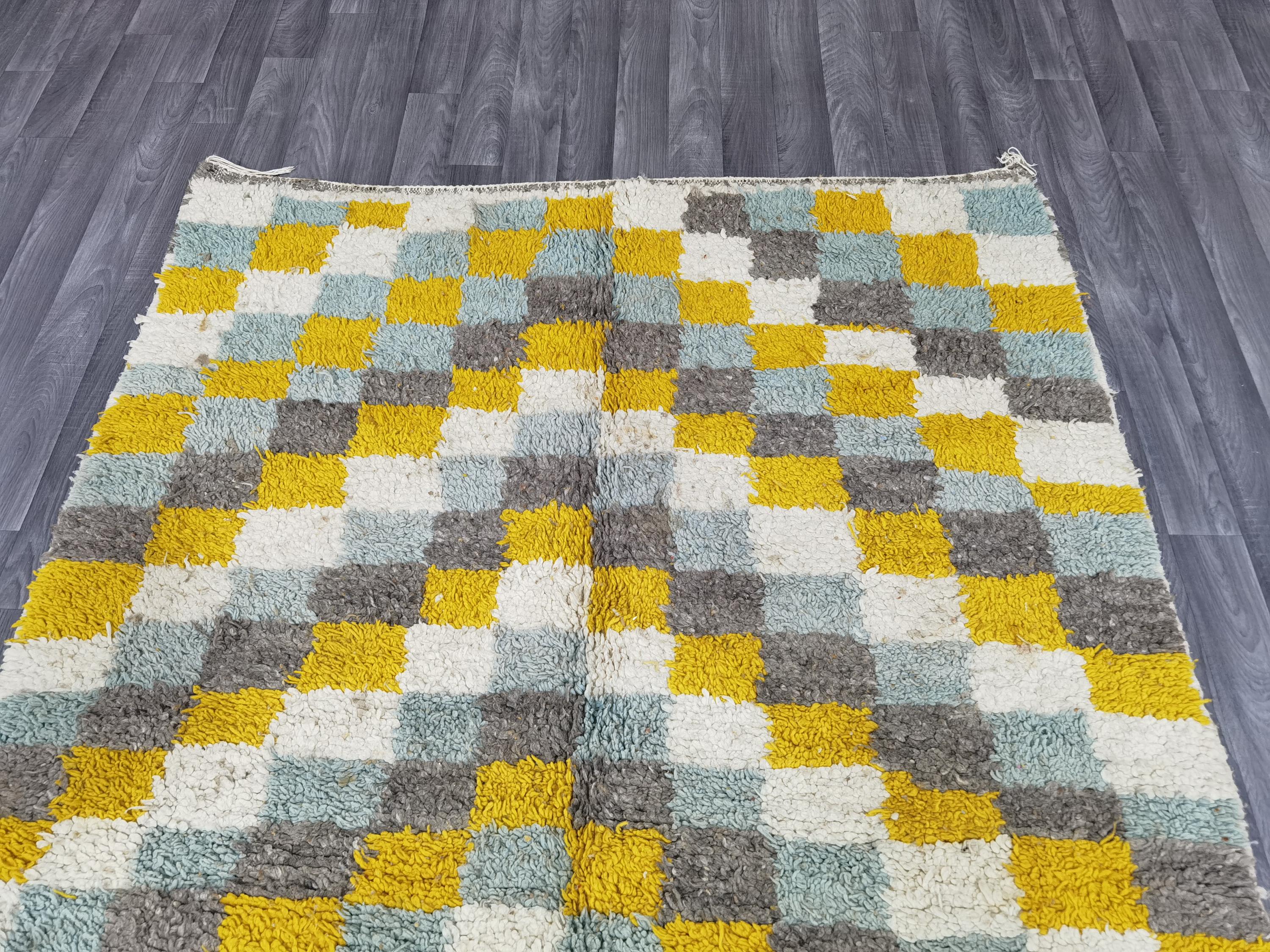 Berber Checkered Rug: Boujaad Moroccan Wool Rug, Yellow & Green