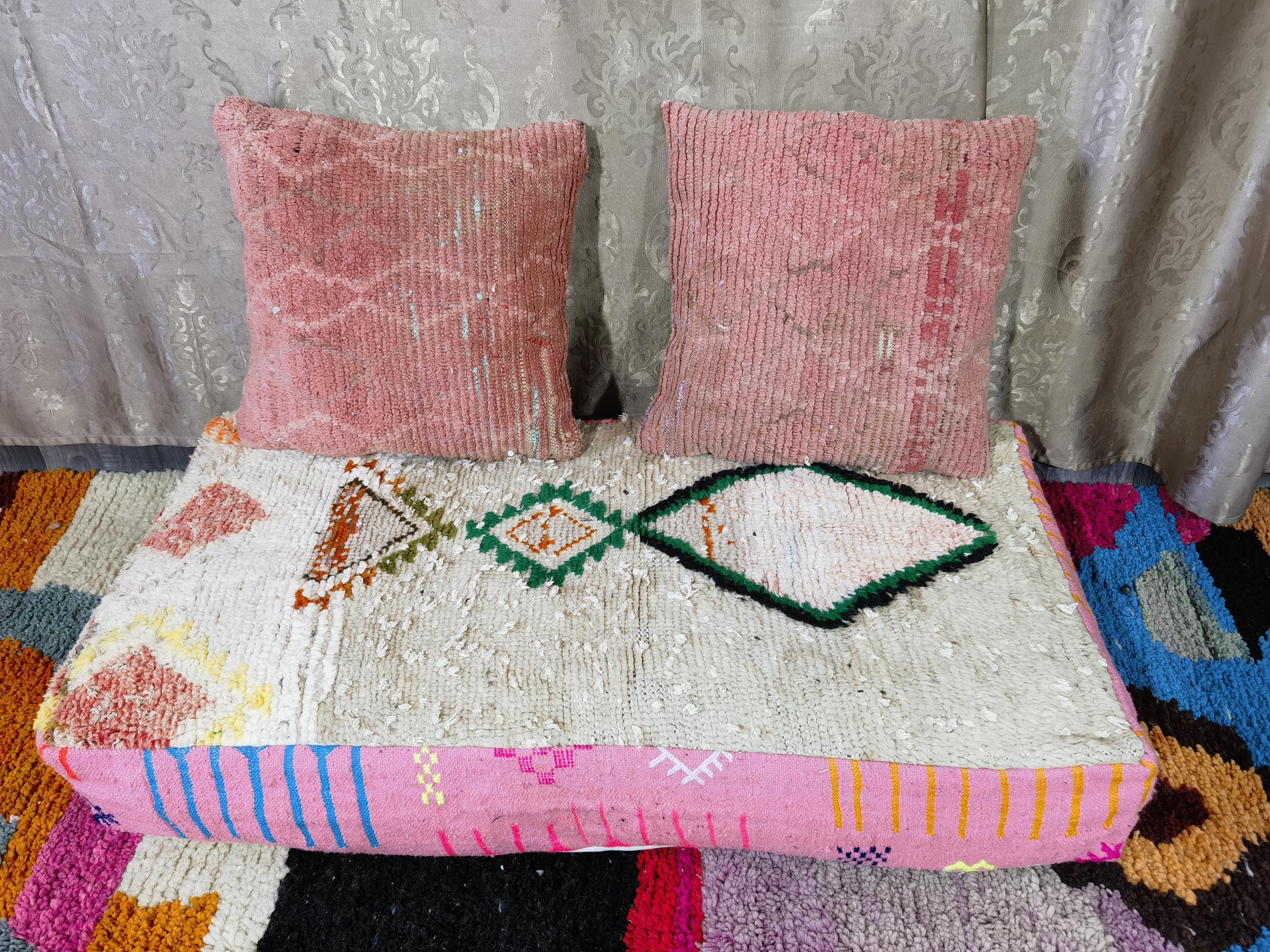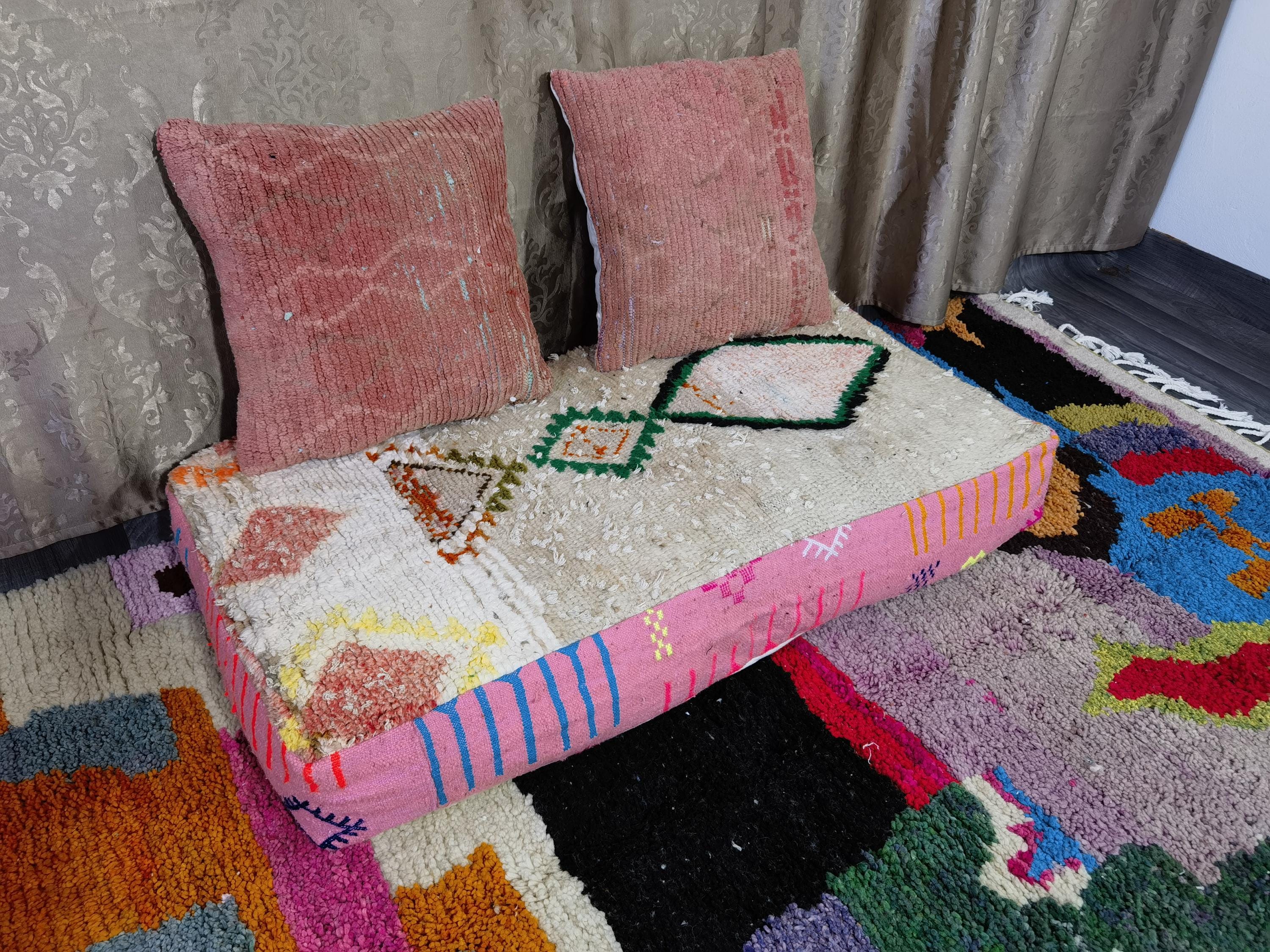 Moroccan Floor couch - Unstuffed Complete set Long Floor Cushion 4 ft (120 x60x20 cm) + 2 Back Pillows