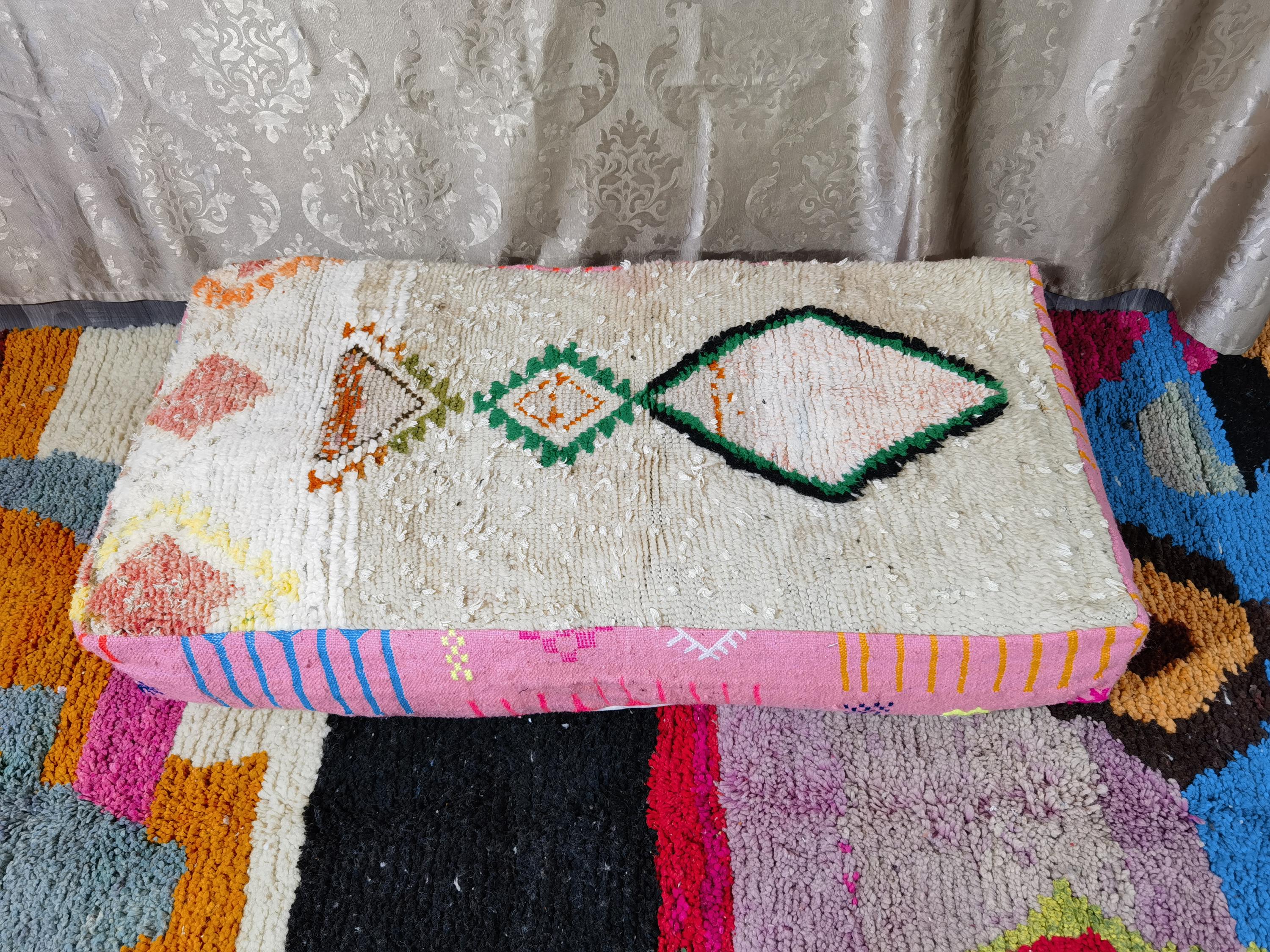 Introducing the newest addition to your Moroccan decor: the kilim pouf! This stylish floor cushion is made of 100% wool and features a Berber design. Perfect for adding a touch of sophistication to any room, the kilim pouf is perfect for lounging around or using as a seat.