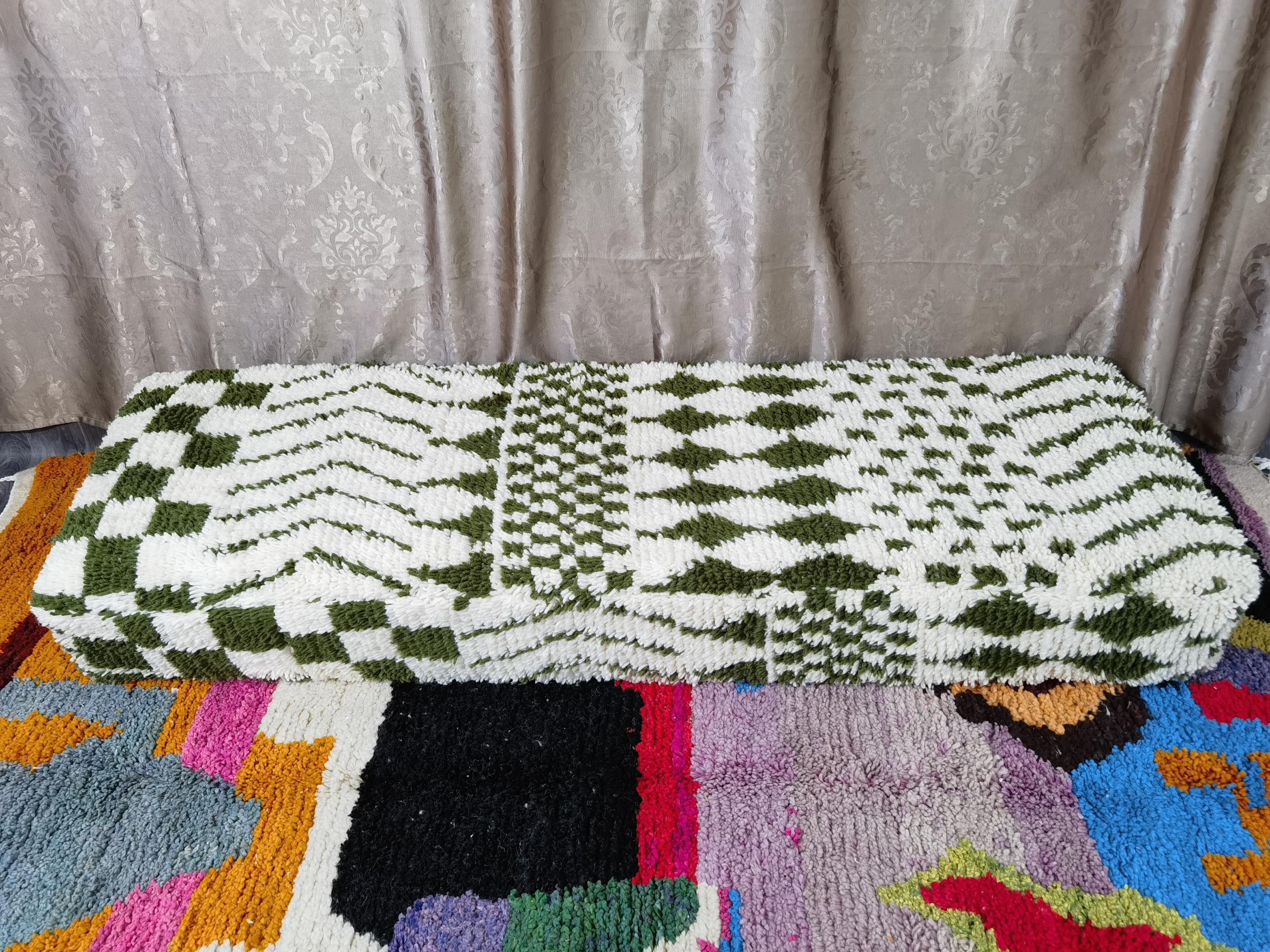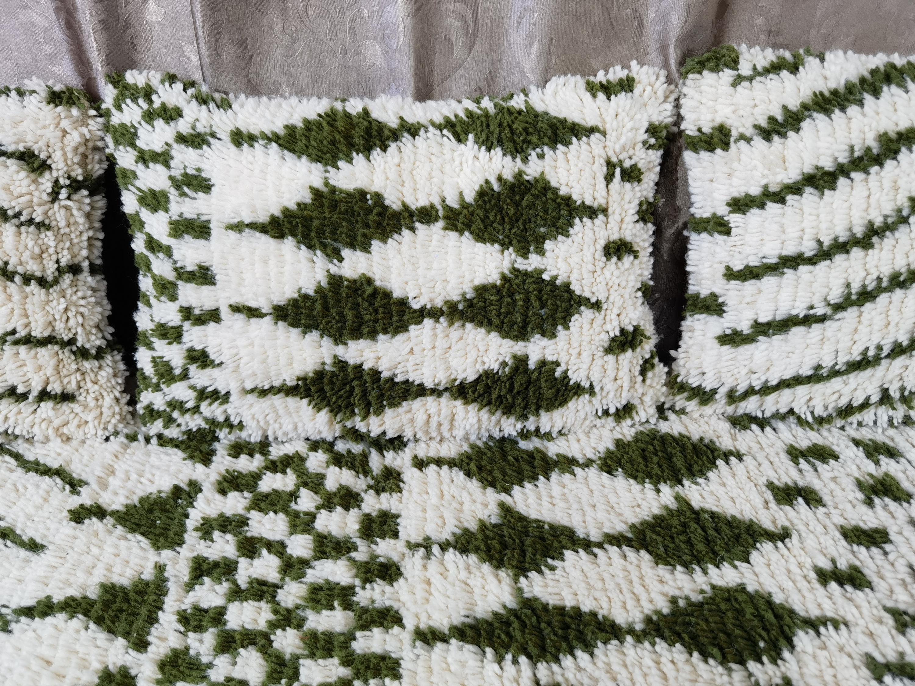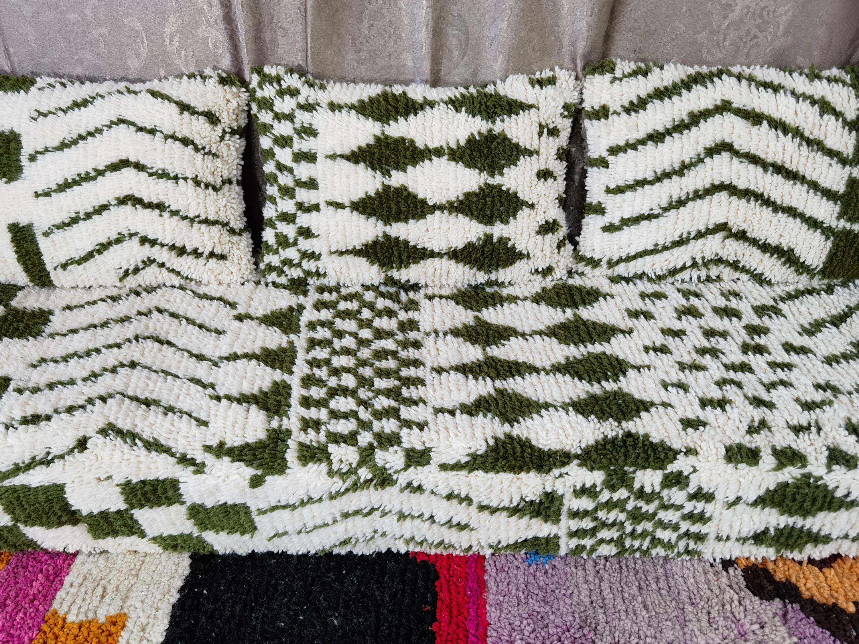 Moroccan Green and White Floor couch - Unstuffed Complete set Long Floor Cushion , Set of 6 ft (180x60x20 cm) + Back Pillows, Pillow cases