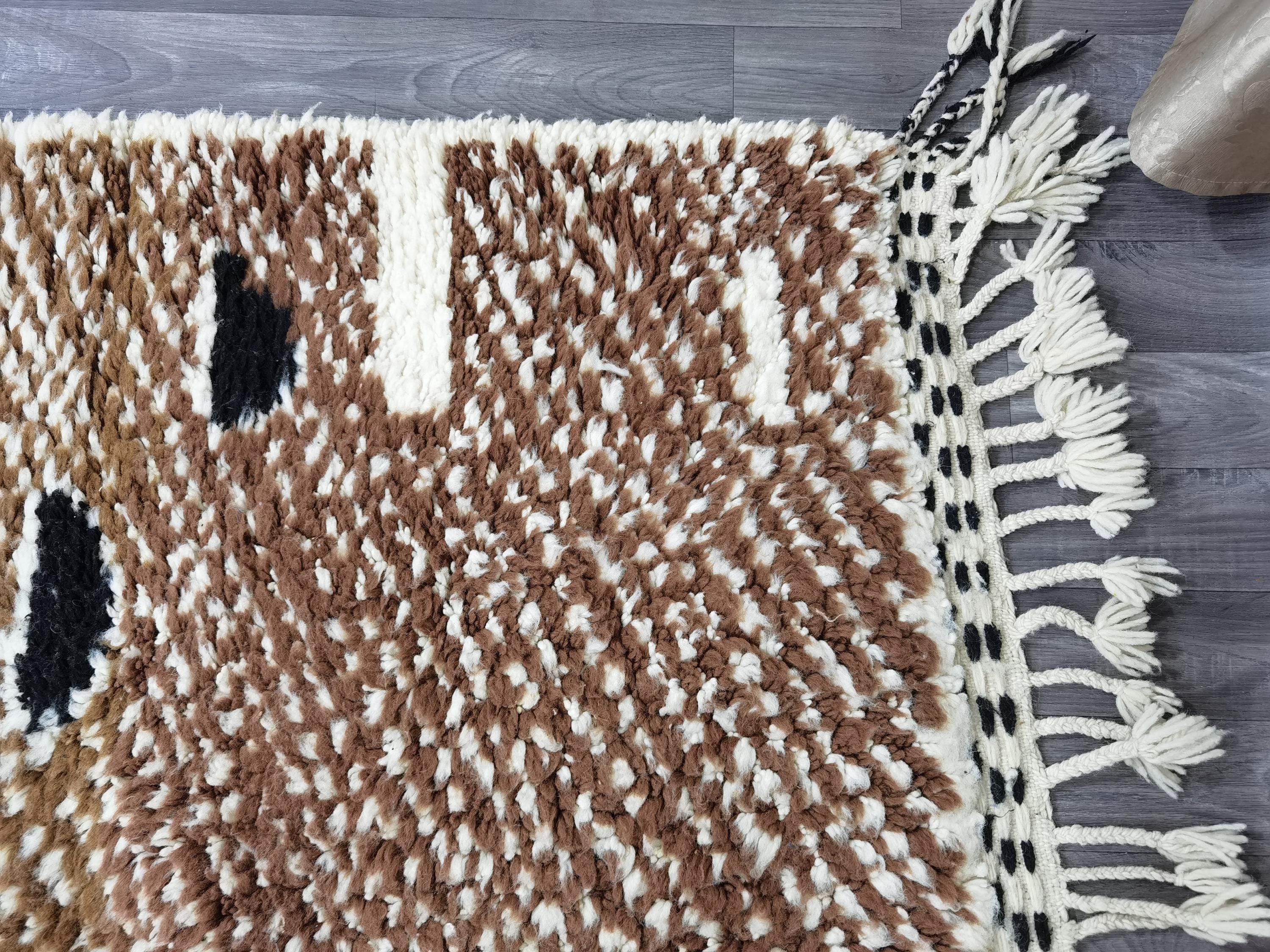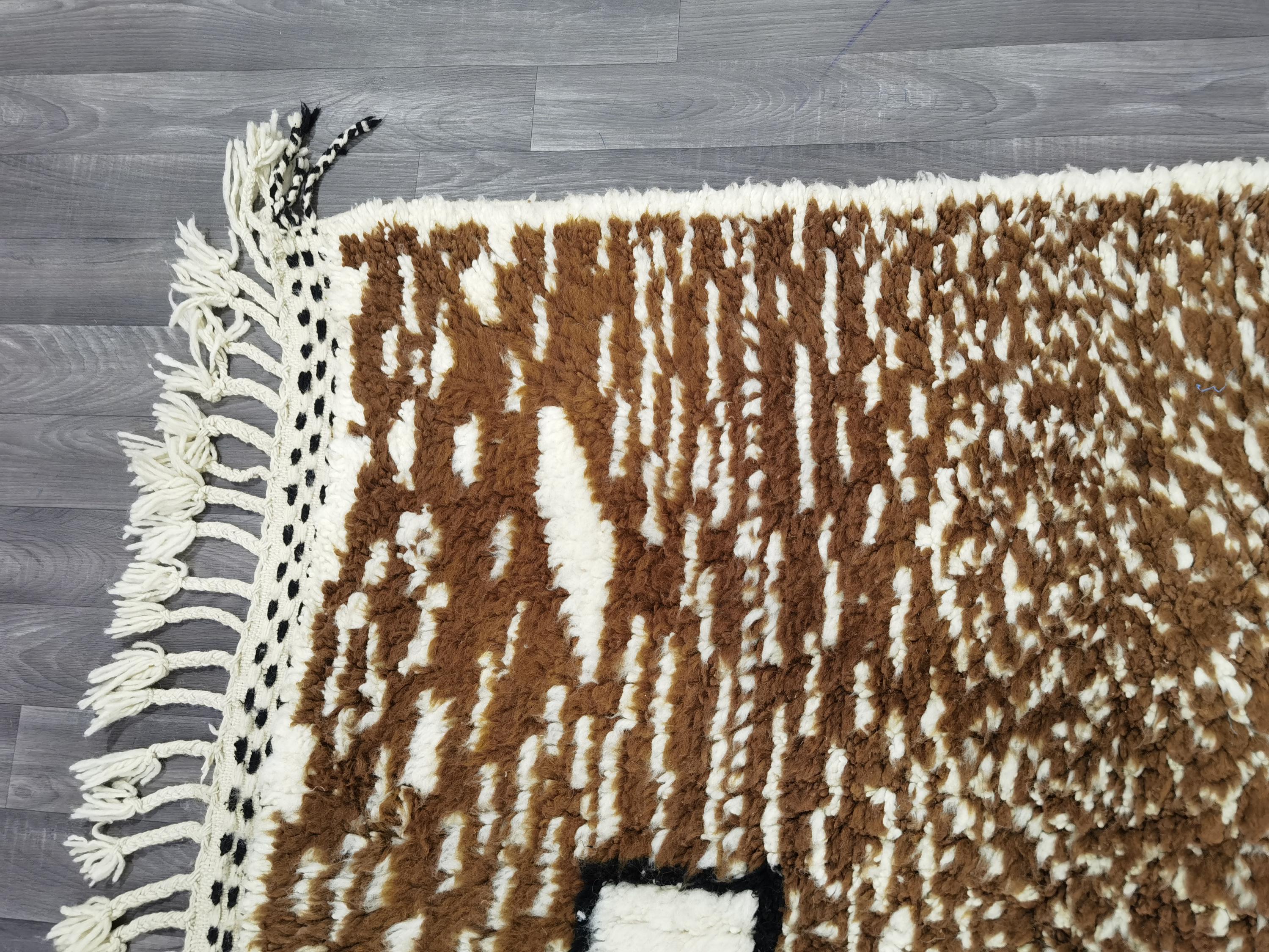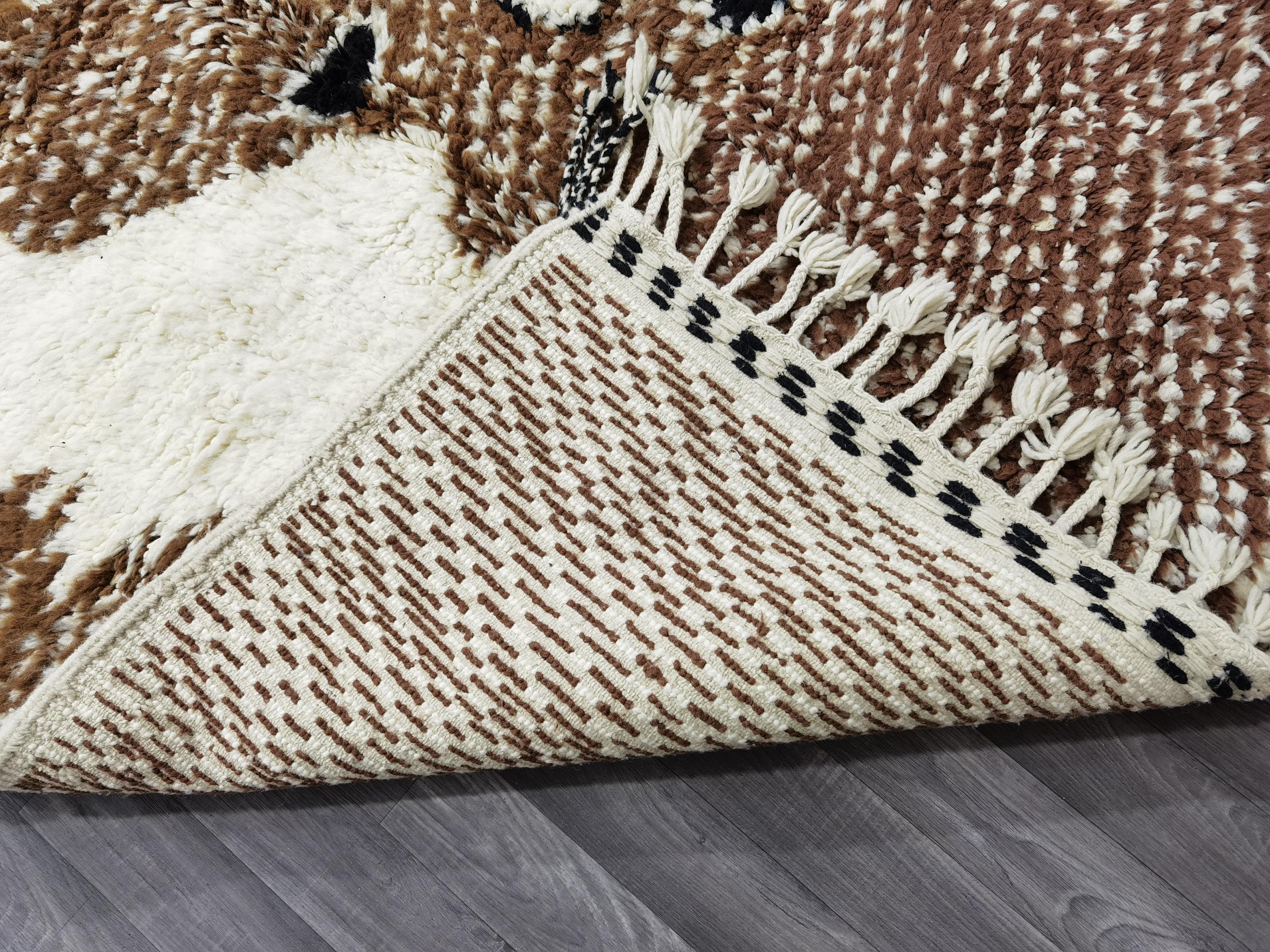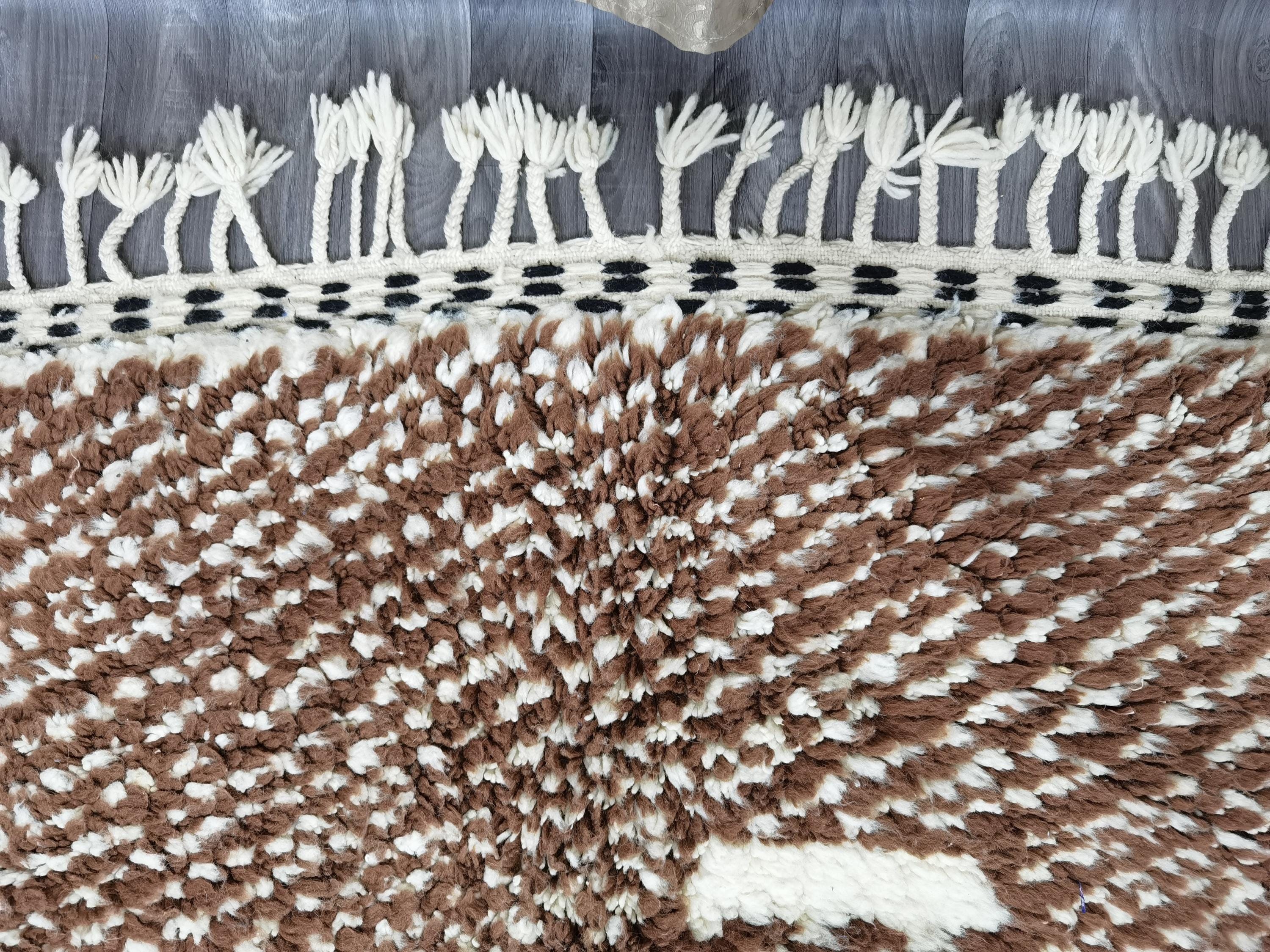 AMAZING MOROCCAN BROWN Rug - Beni Ourain Wool Rug - Brown & White Geometric Carpet .