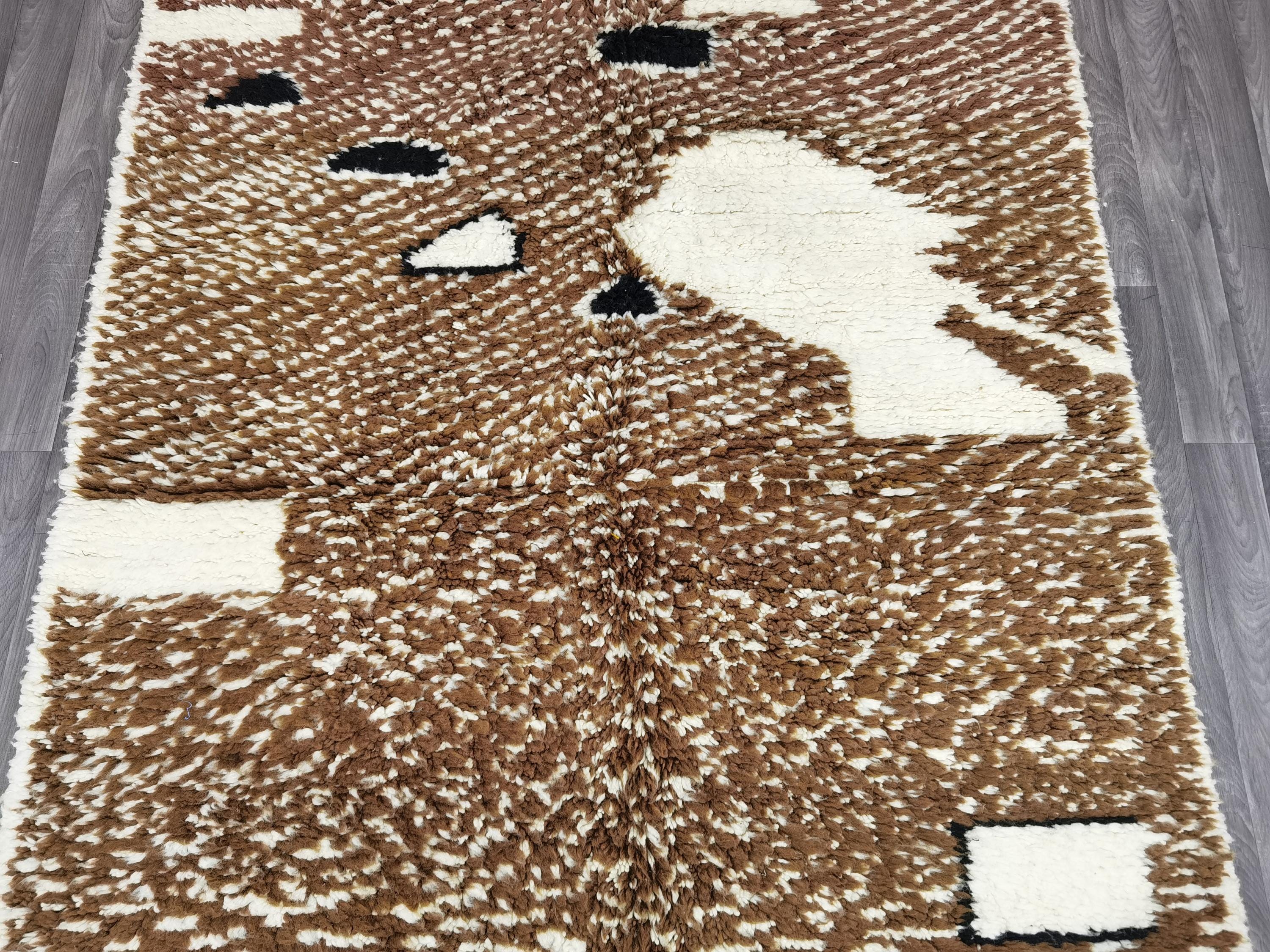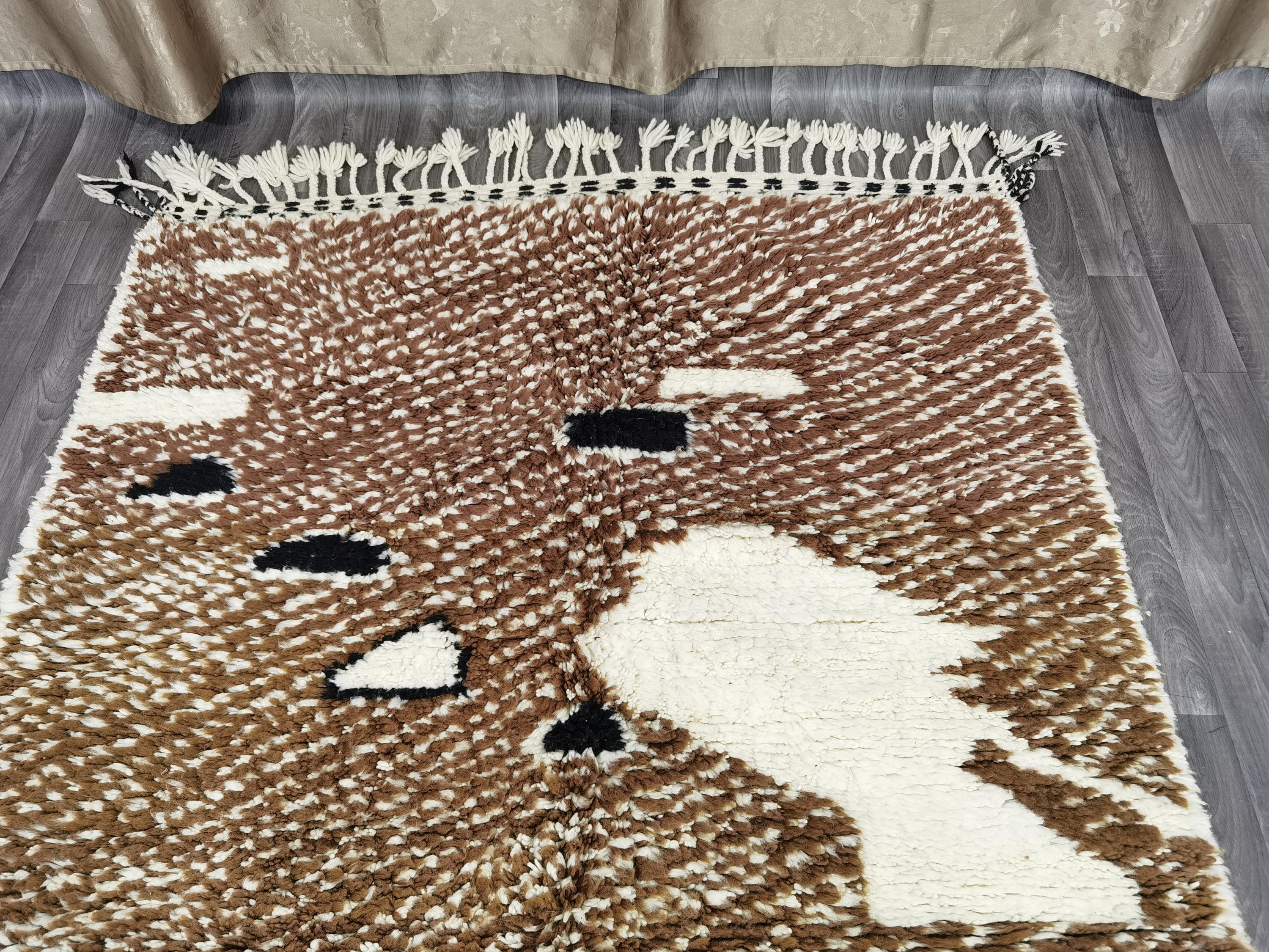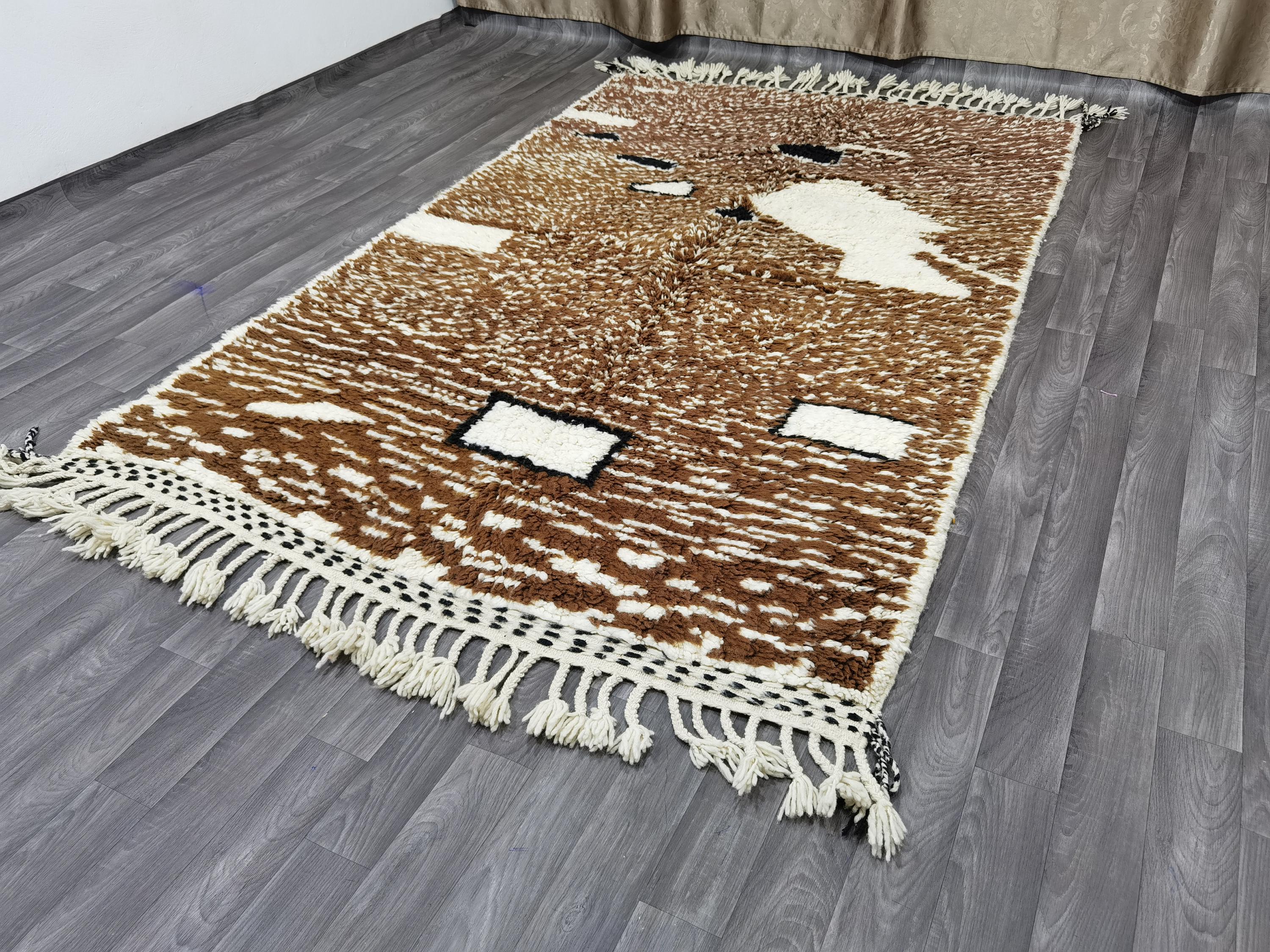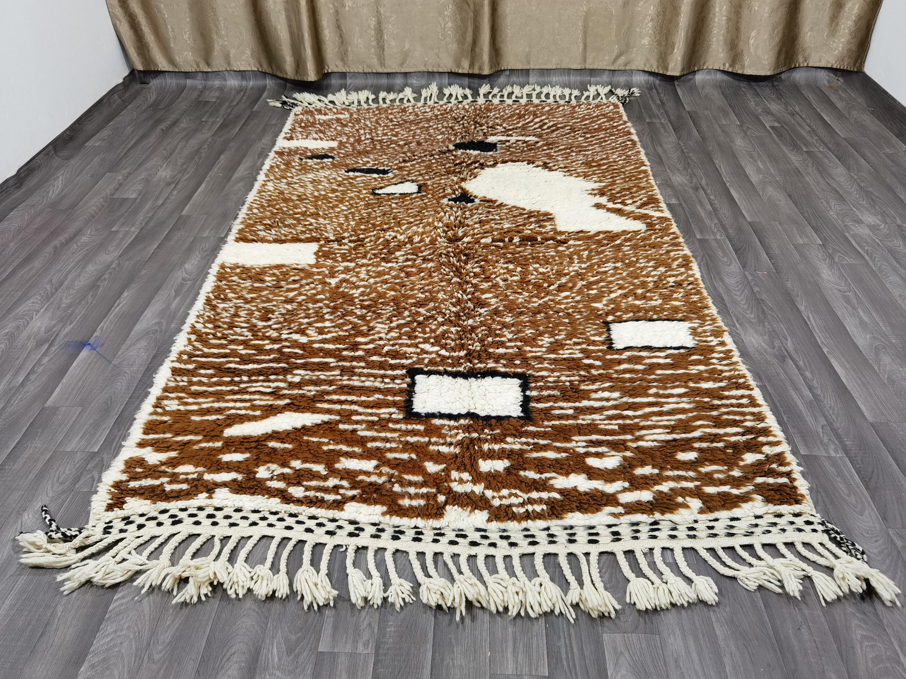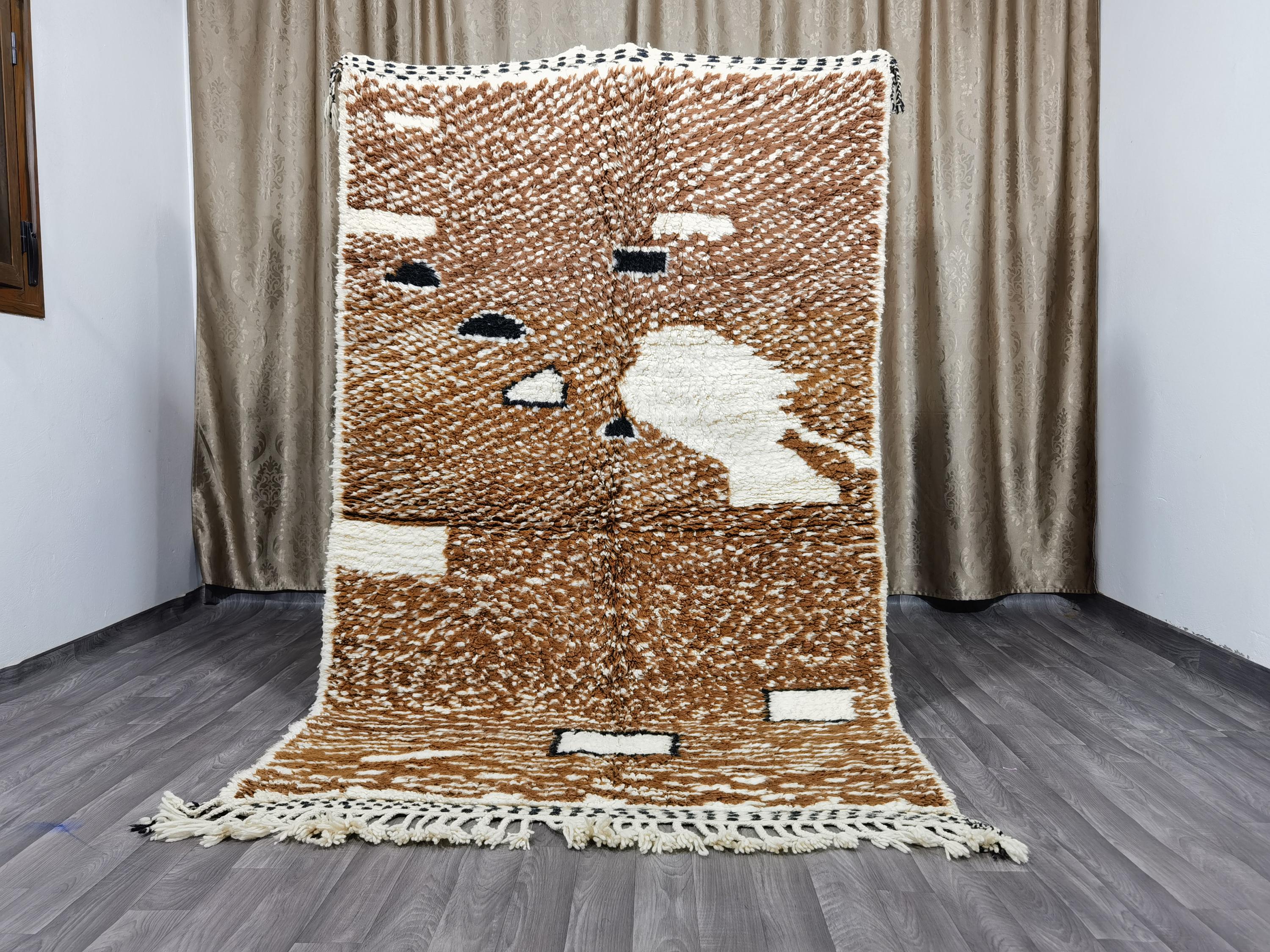 AMAZING MOROCCAN BROWN Rug - Beni Ourain Wool Rug - Brown & White Geometric Carpet .